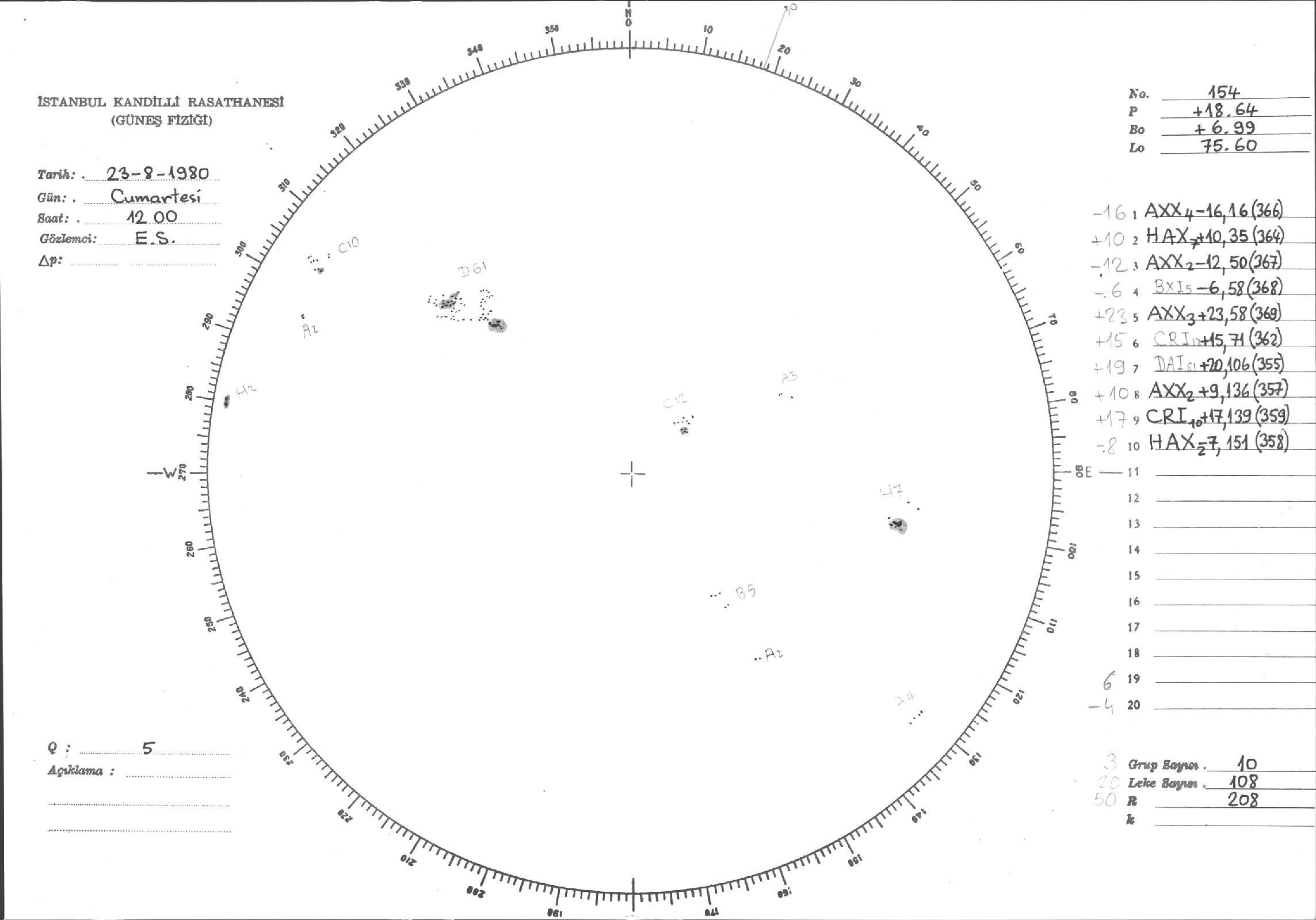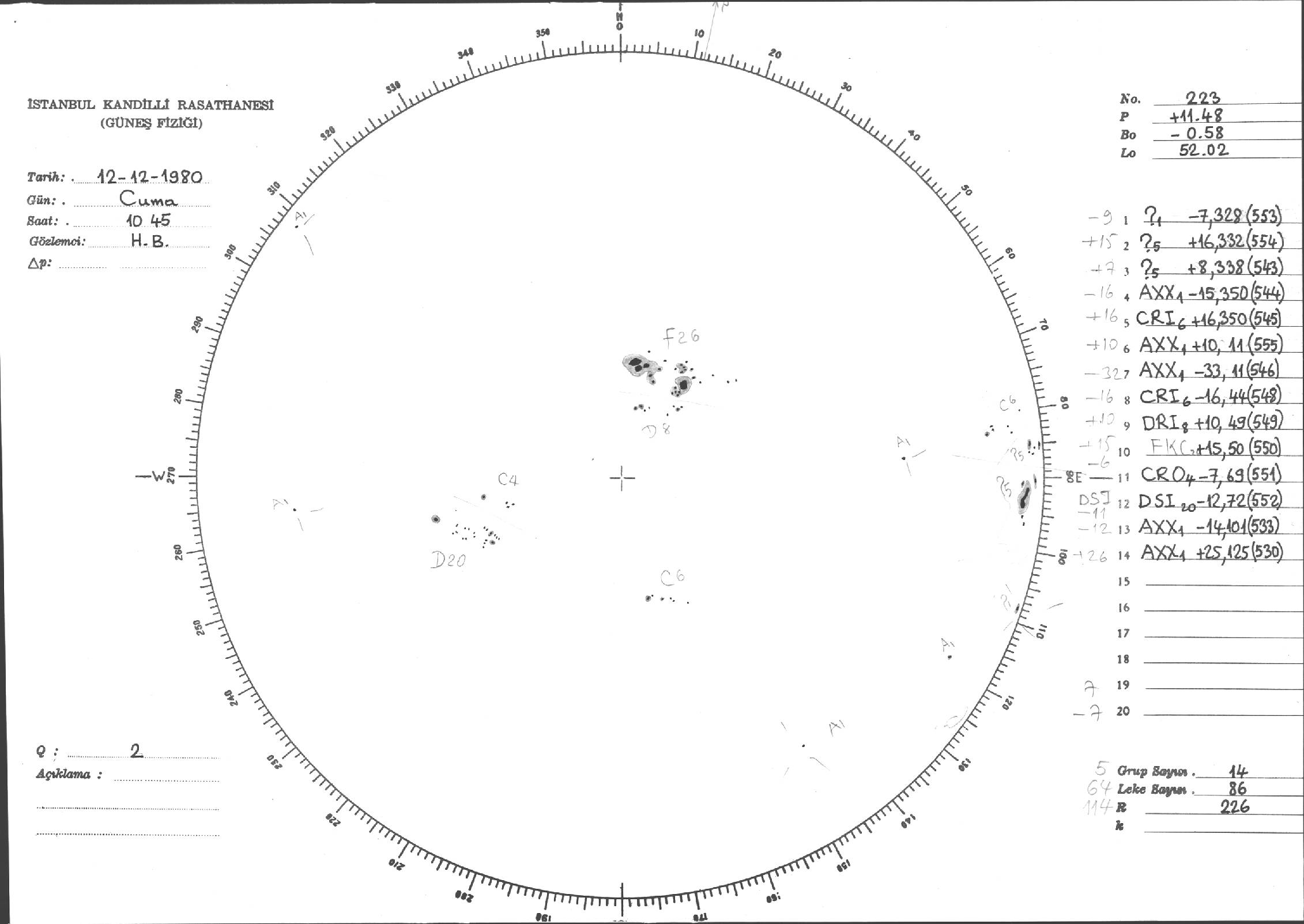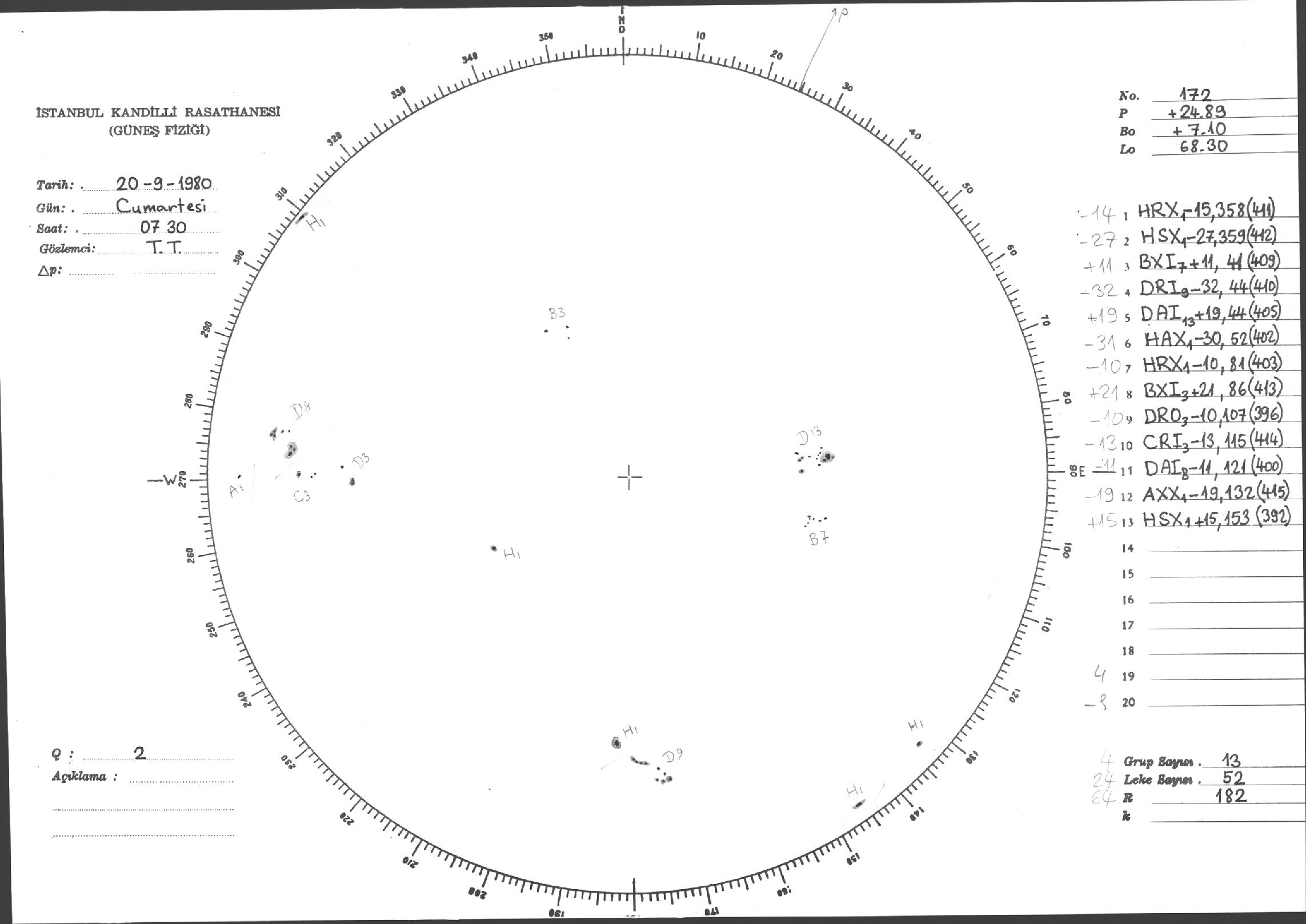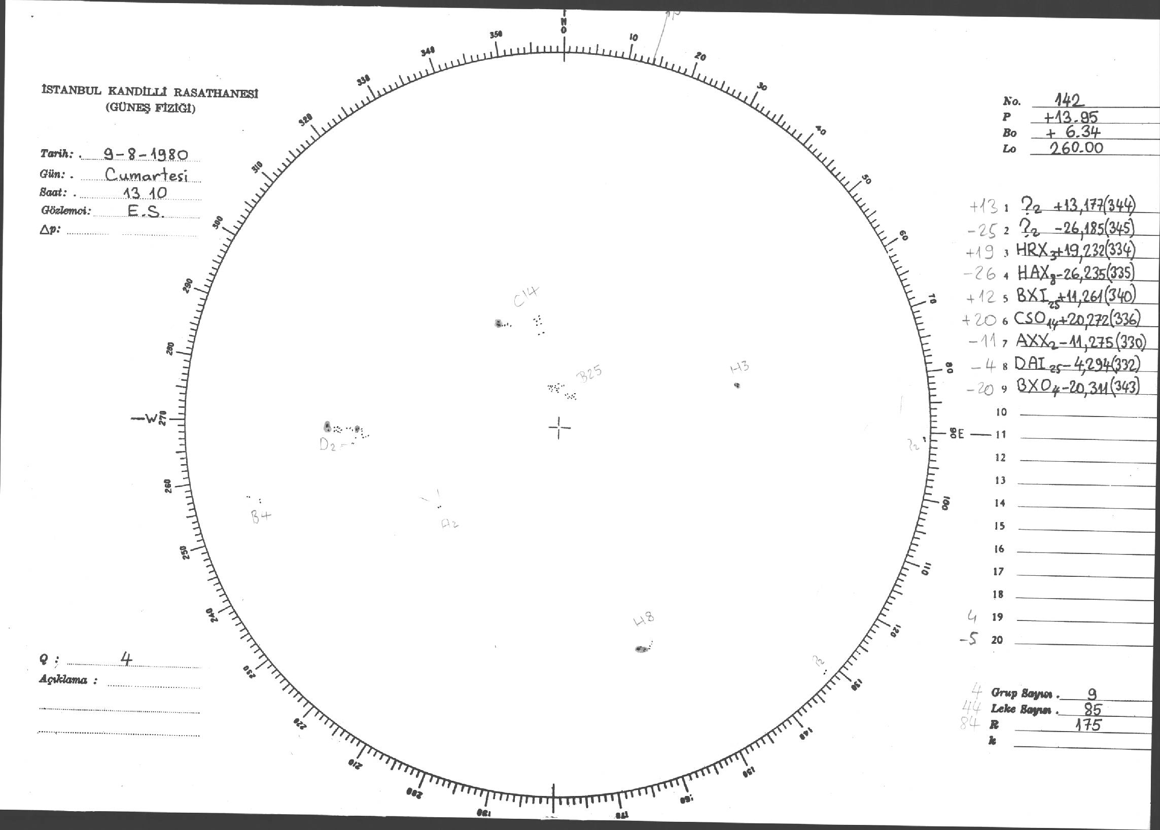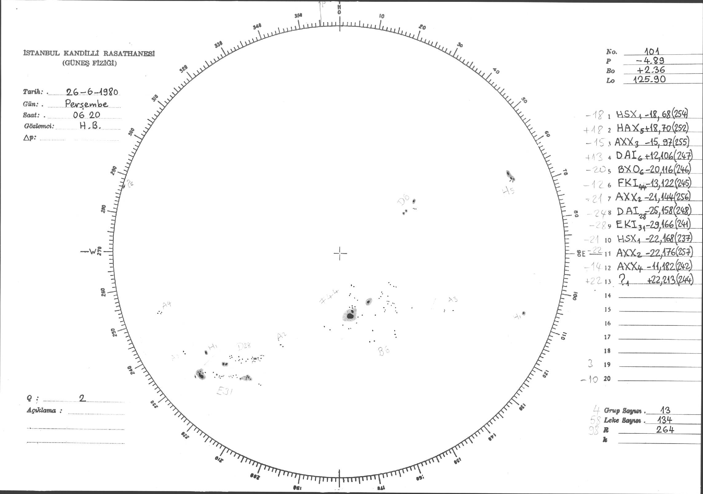 Güneş Lekesi Çizimleri / Kandilli Sunspot Drawings