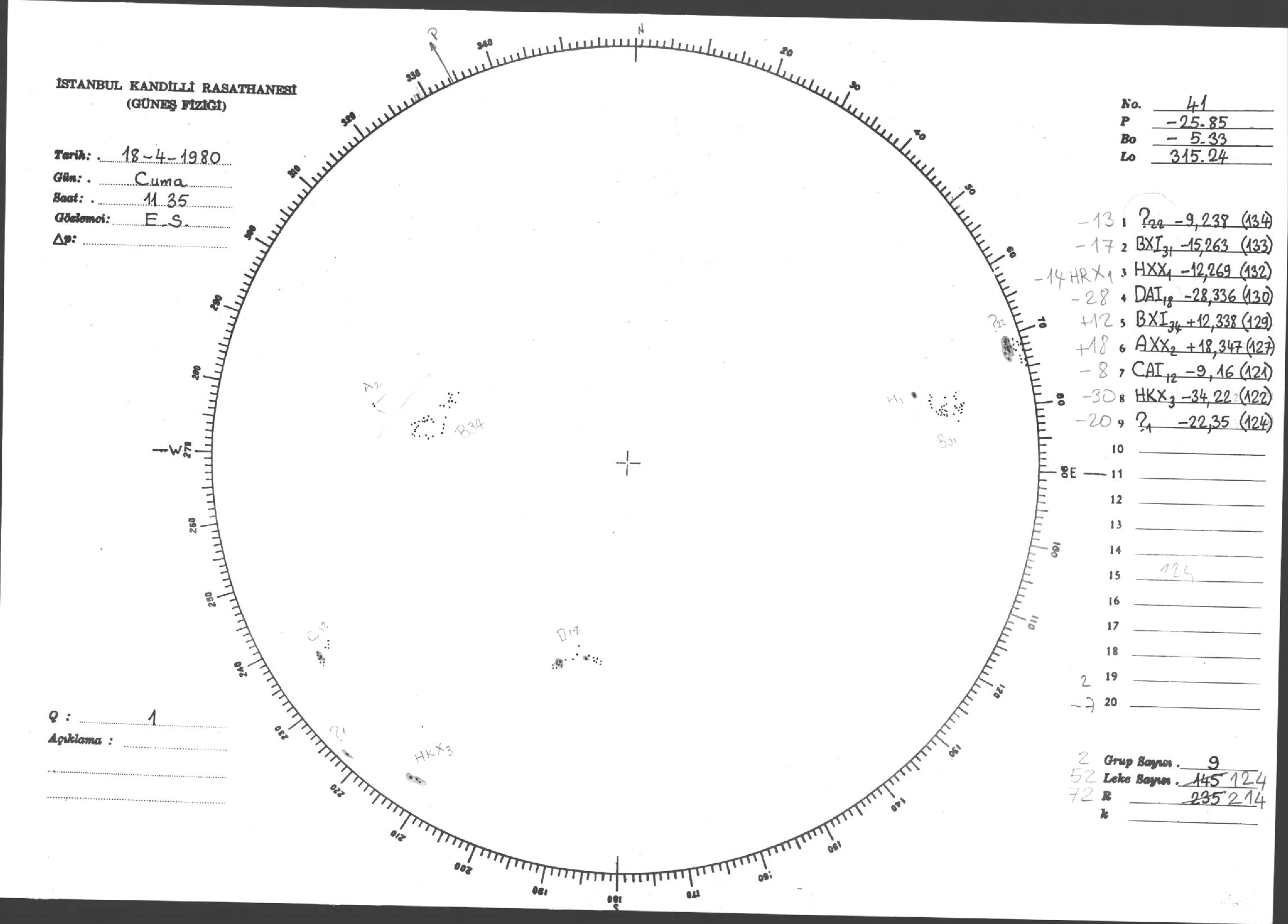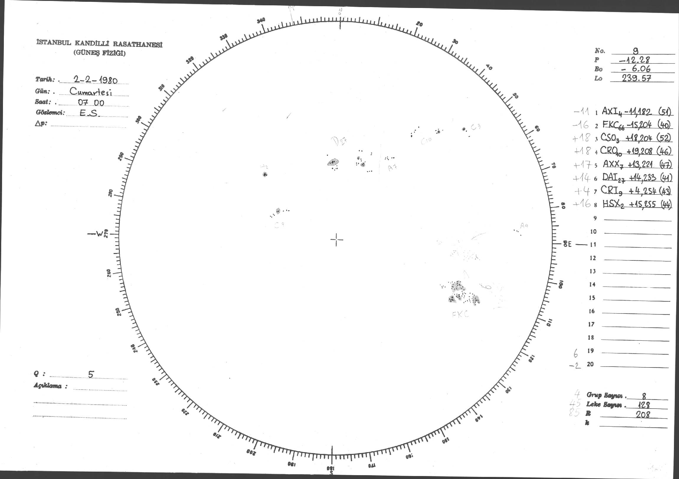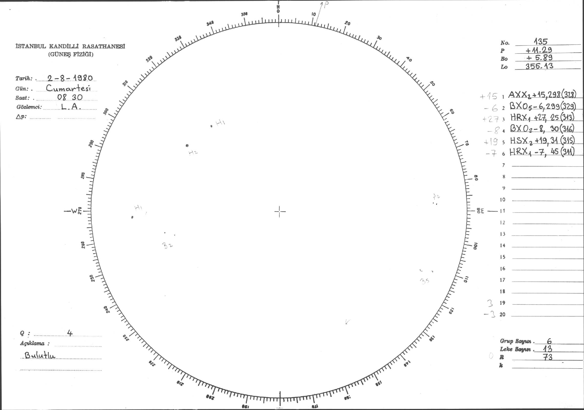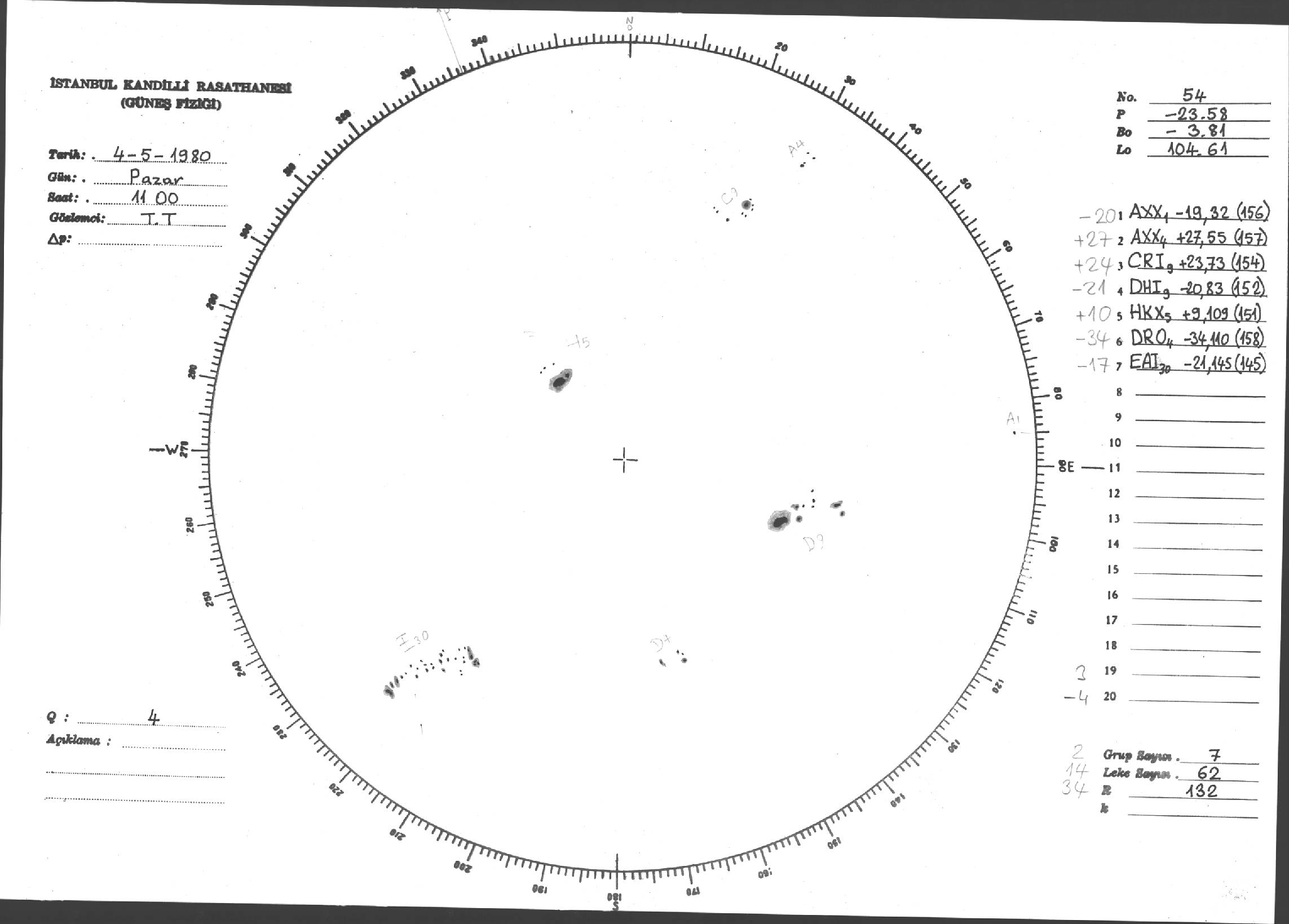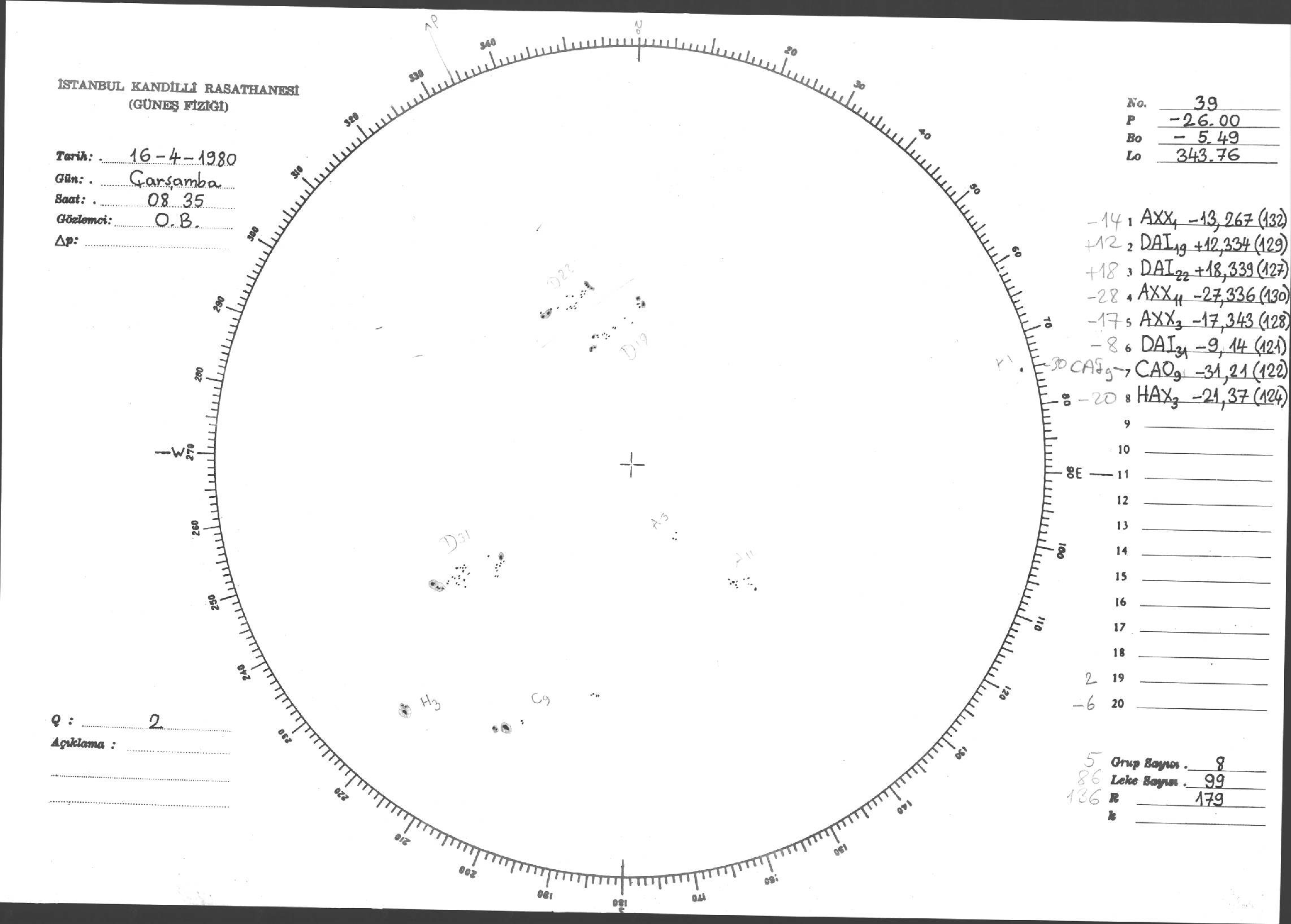 Güneş Lekesi Çizimleri / Kandilli Sunspot Drawings