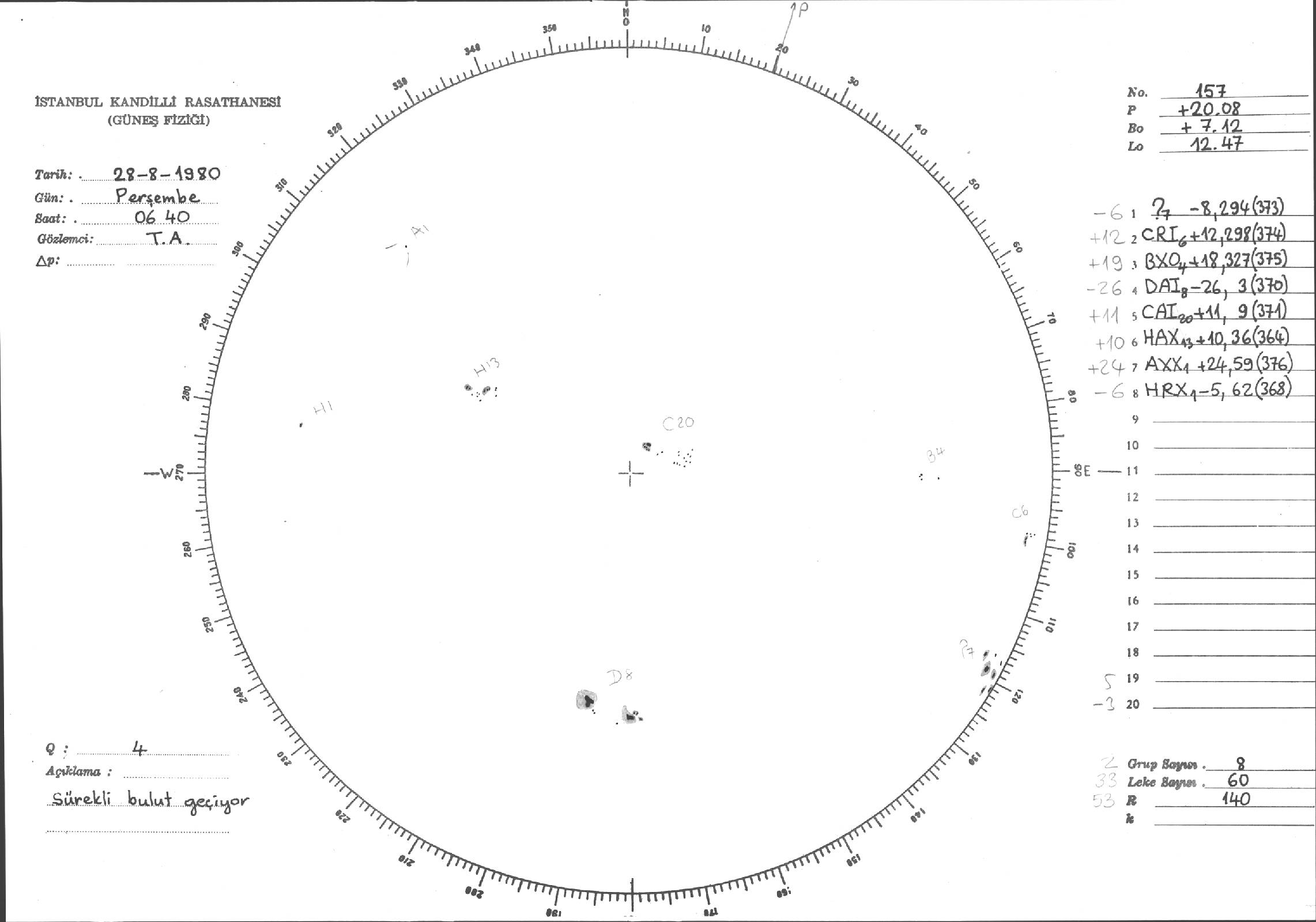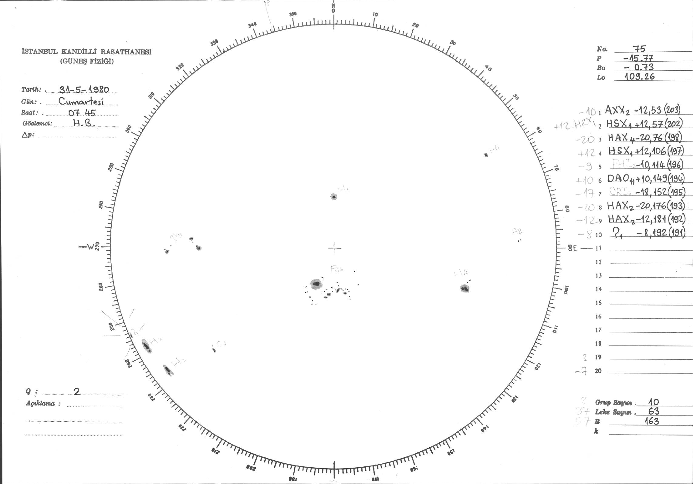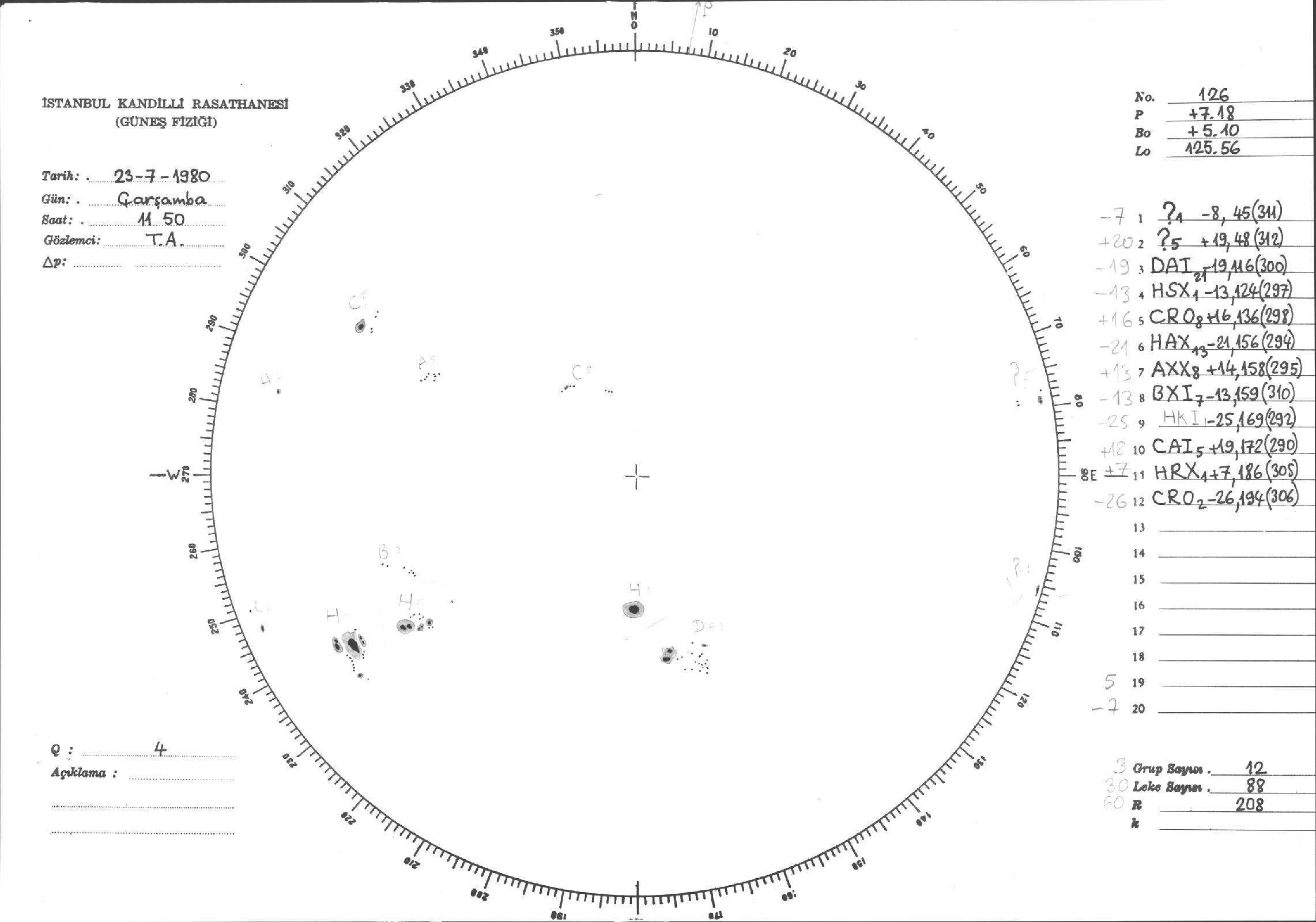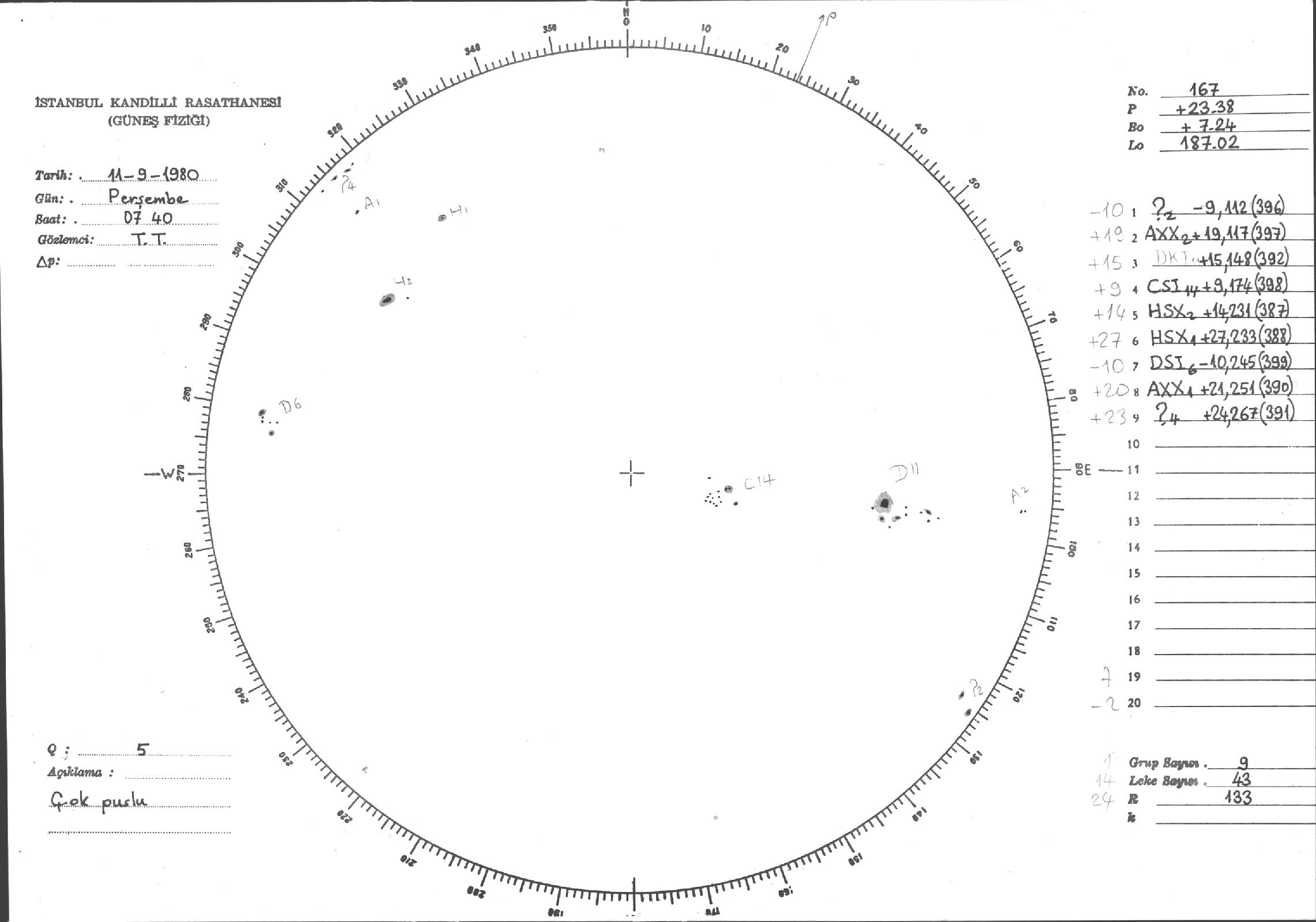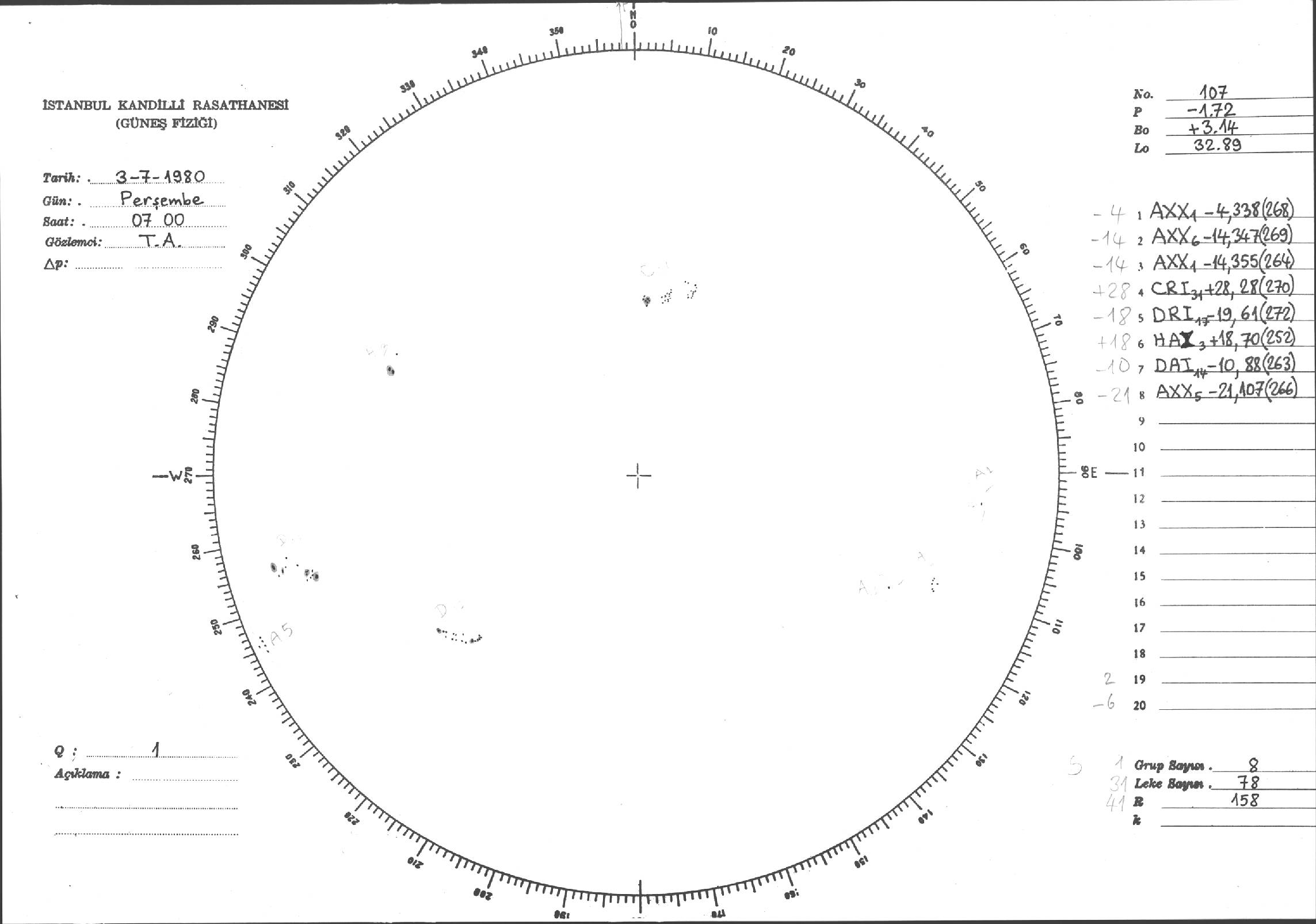 Güneş Lekesi Çizimleri / Kandilli Sunspot Drawings