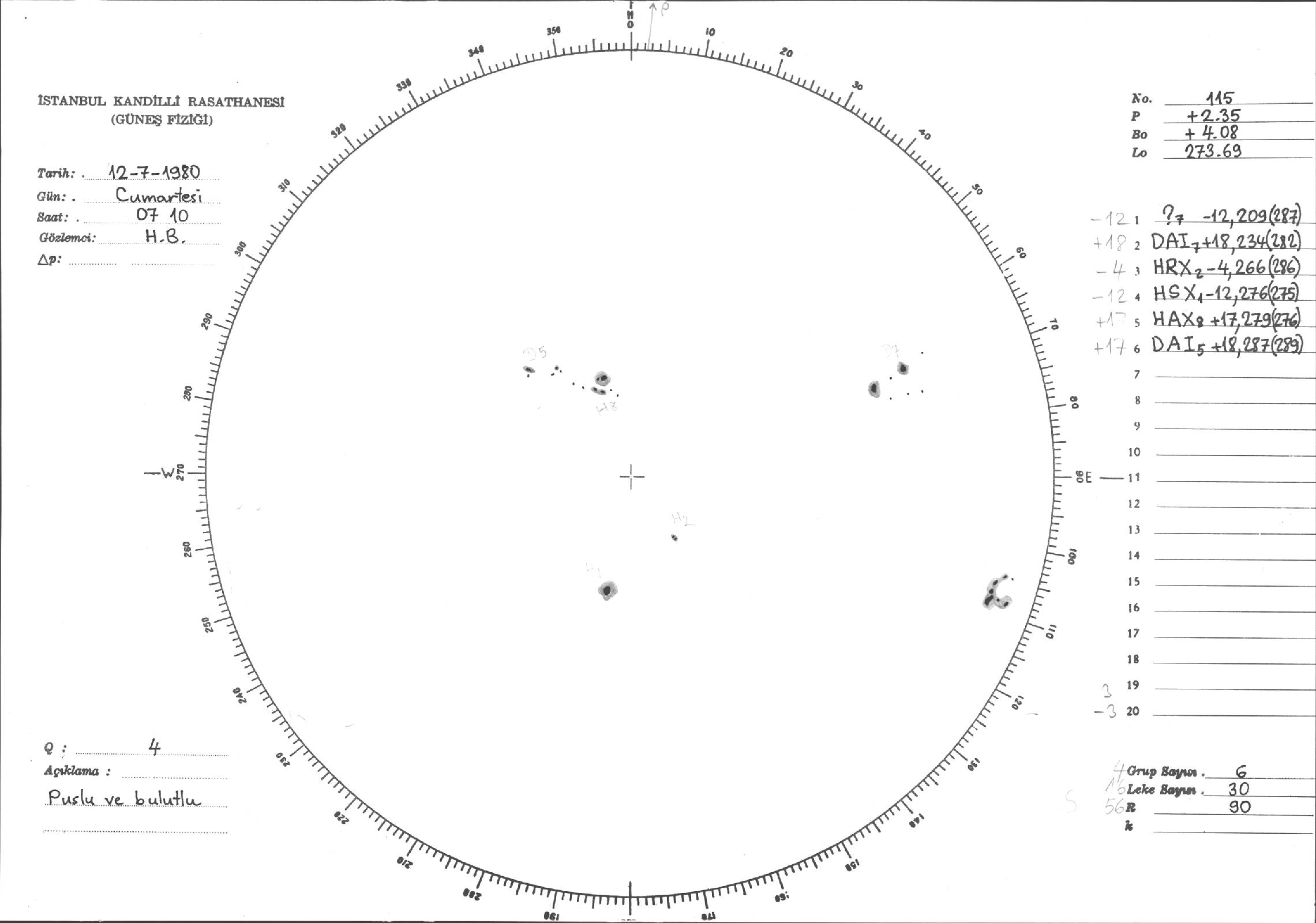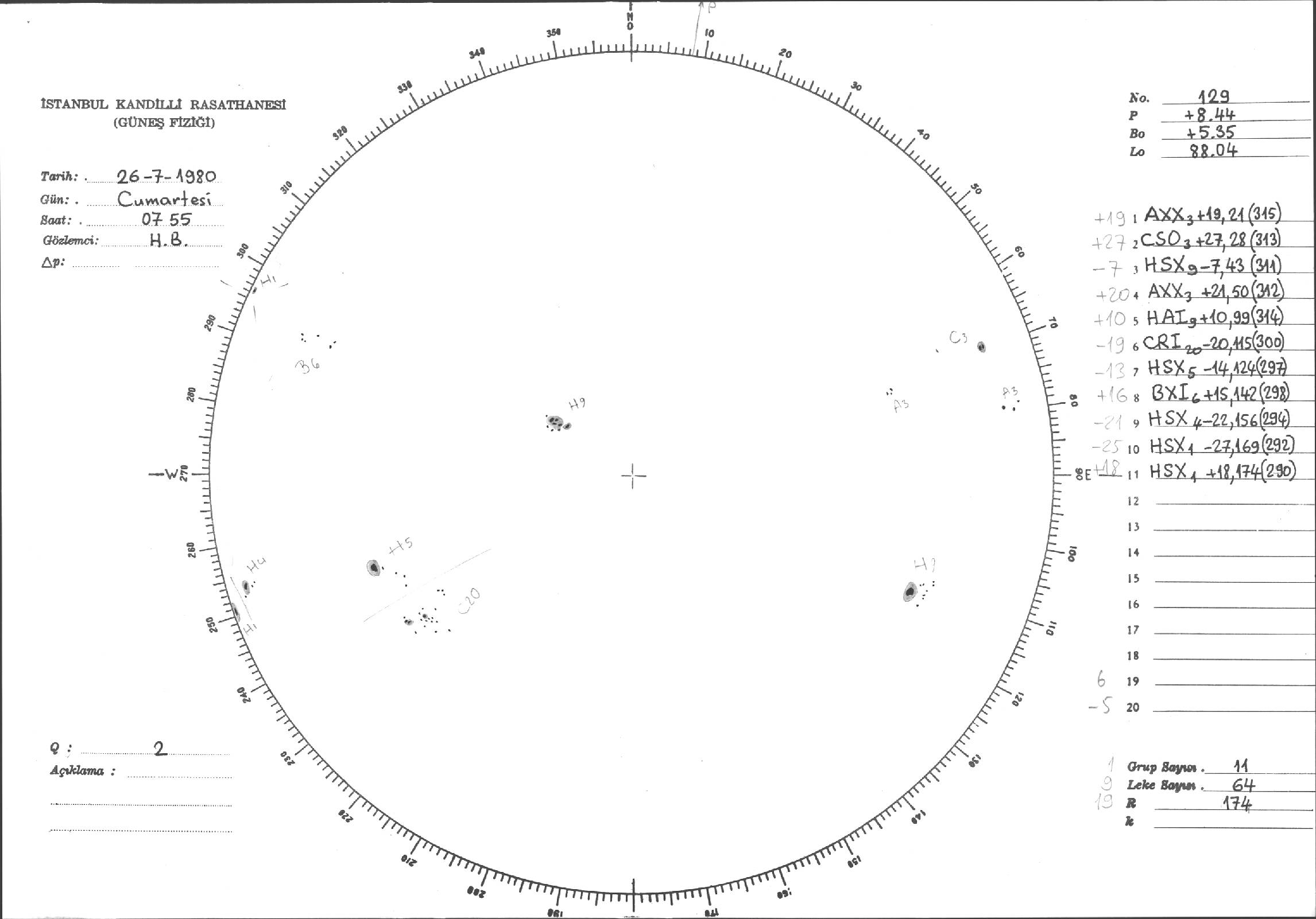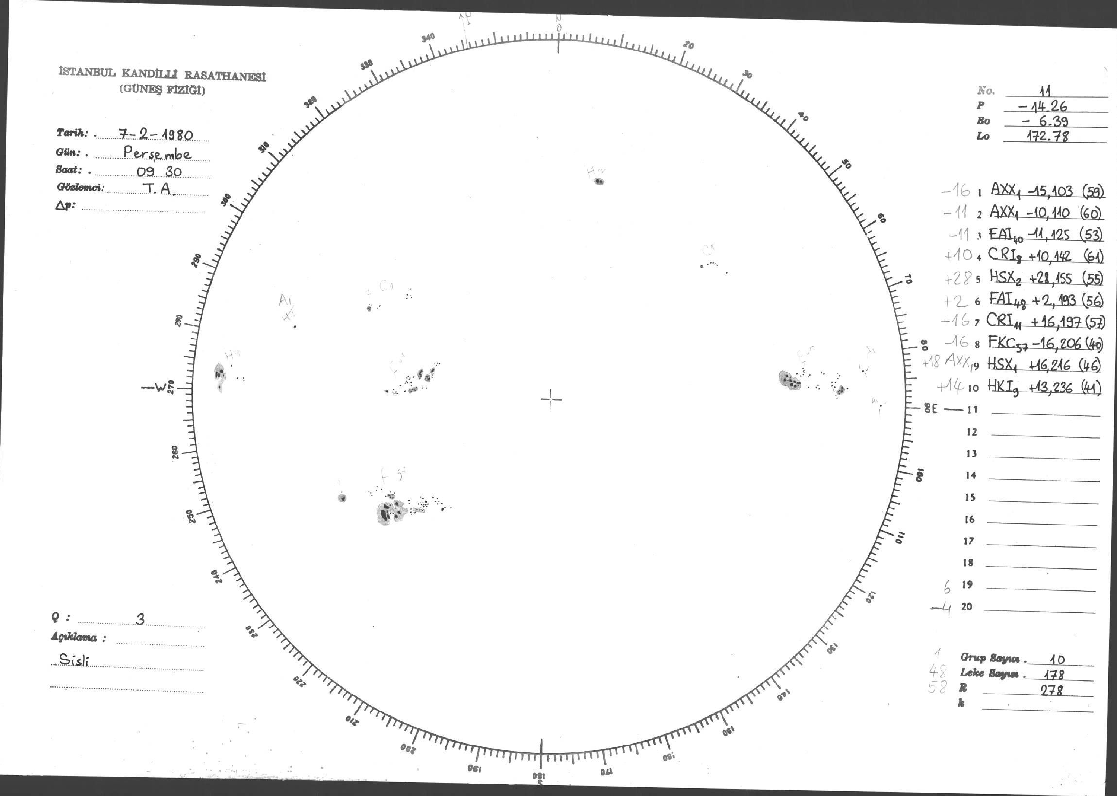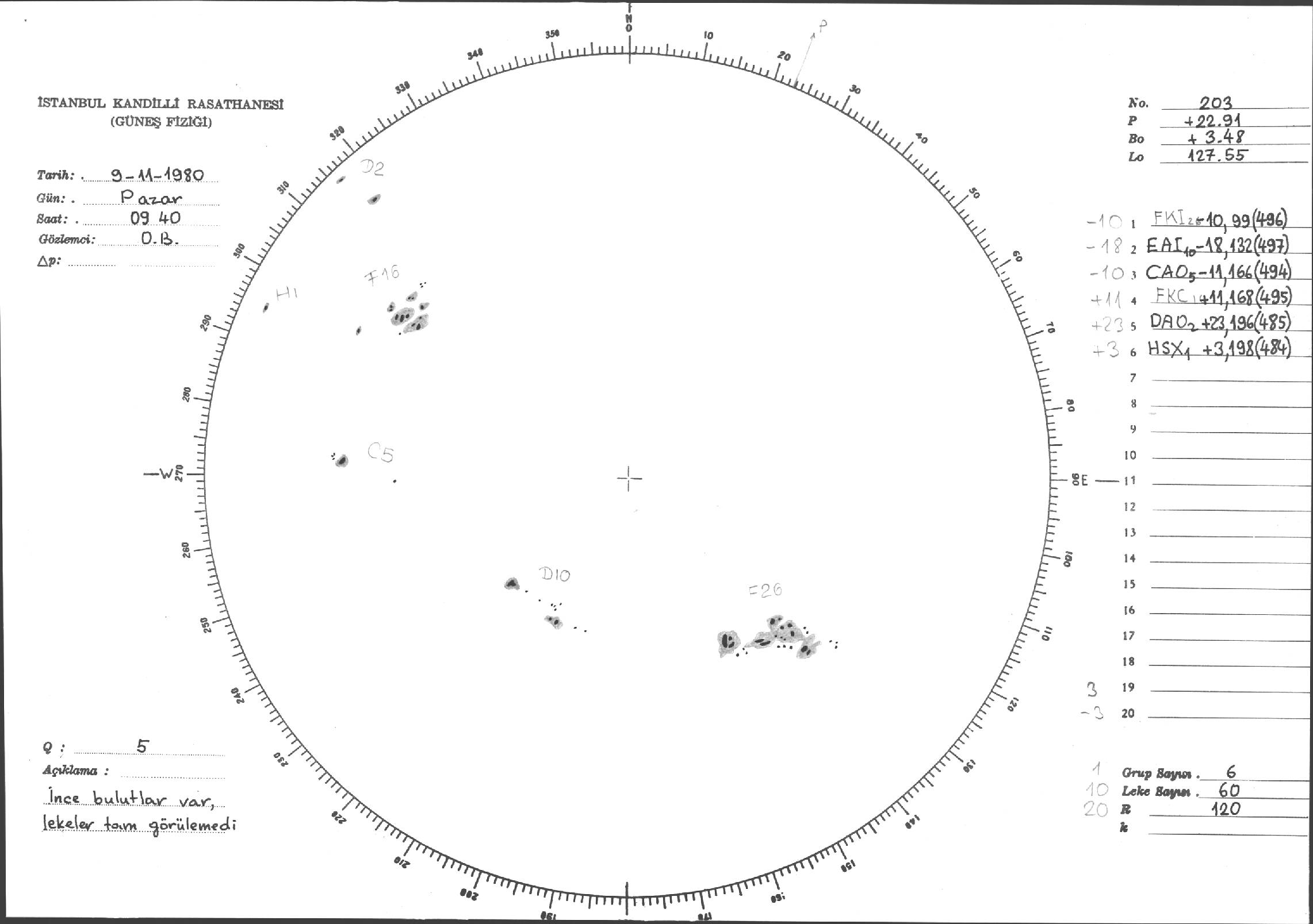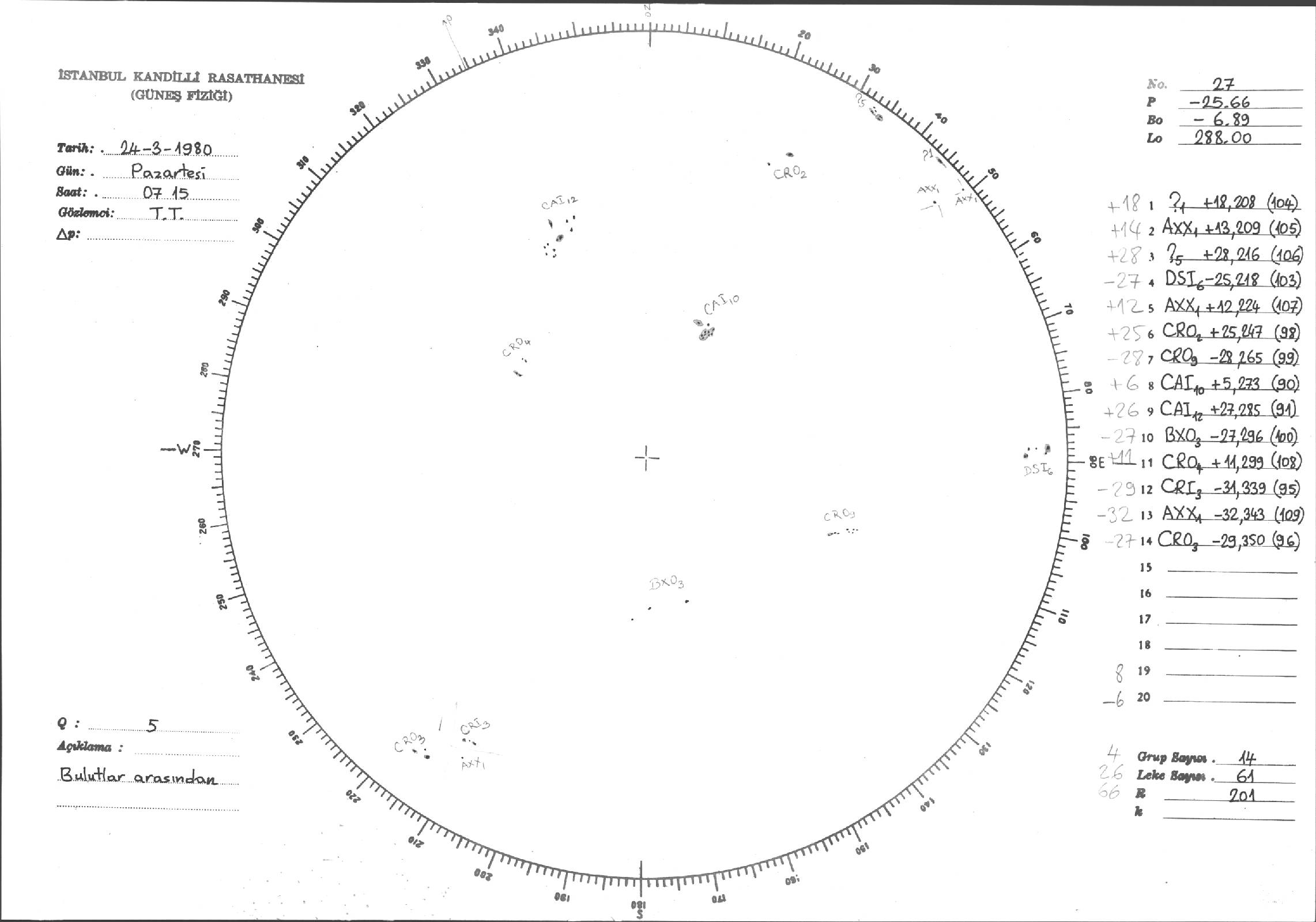 Güneş Lekesi Çizimleri / Kandilli Sunspot Drawings