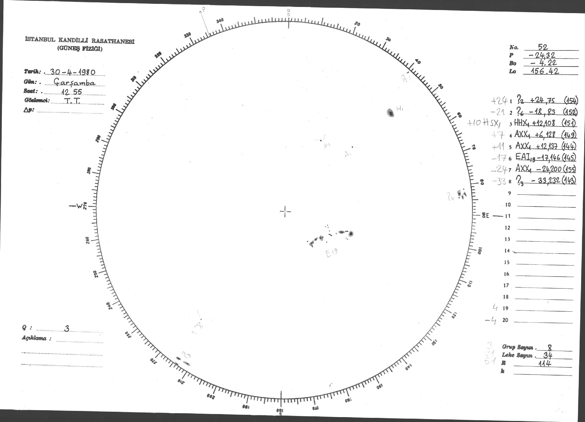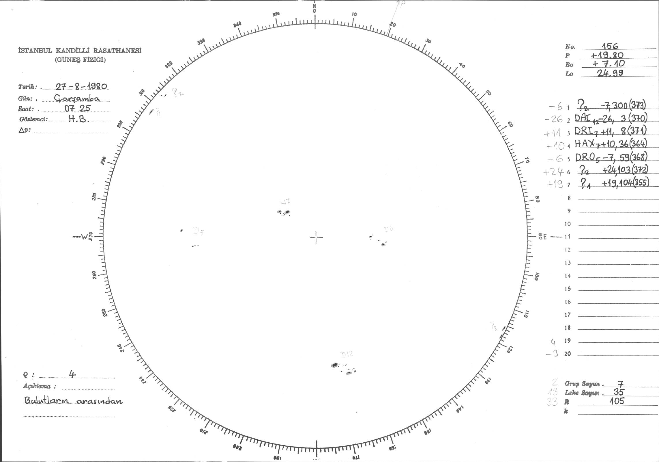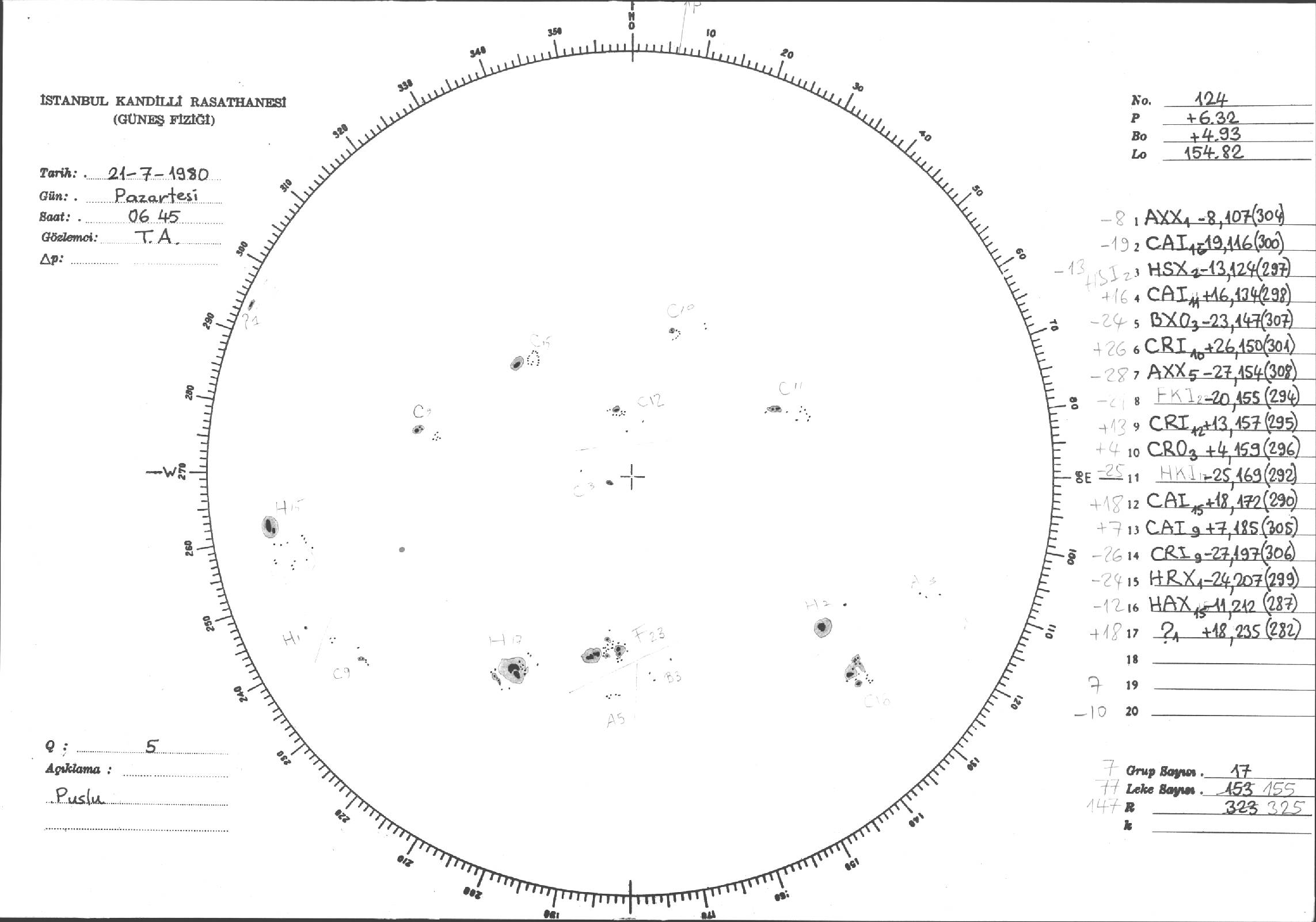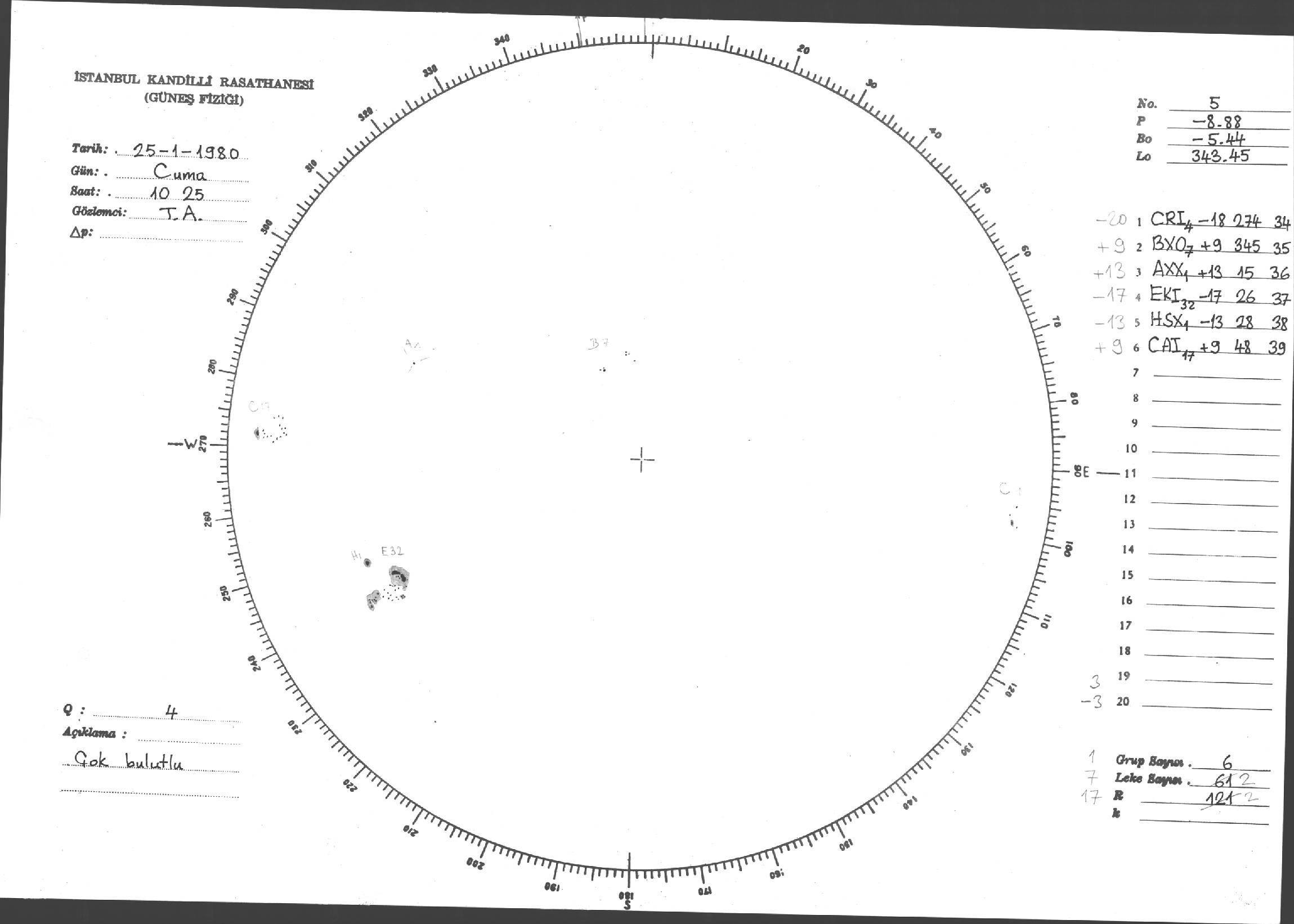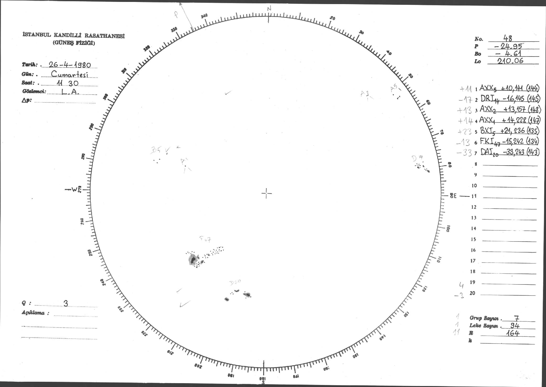 Güneş Lekesi Çizimleri / Kandilli Sunspot Drawings