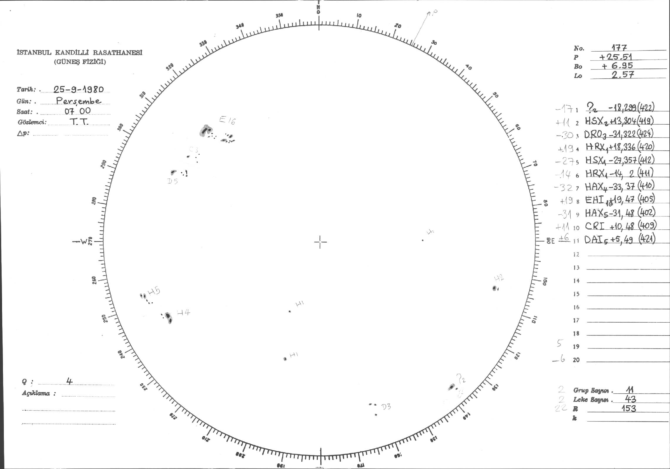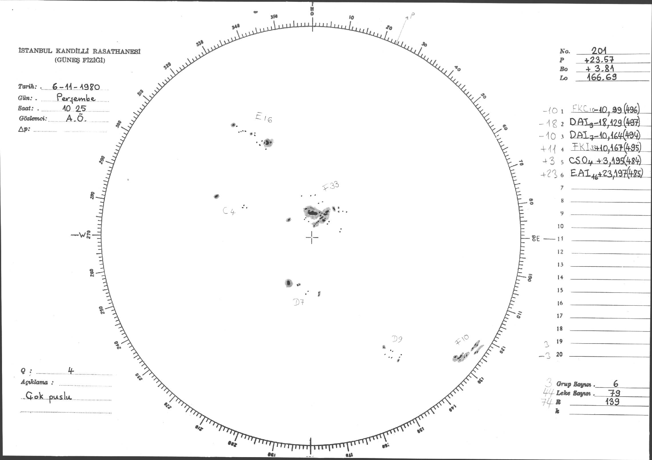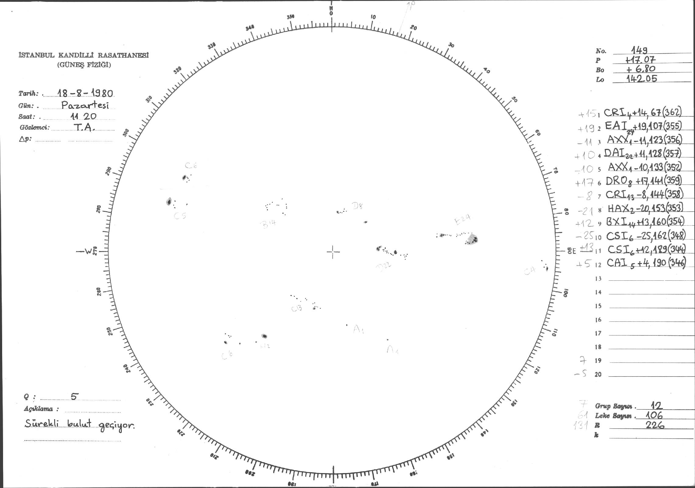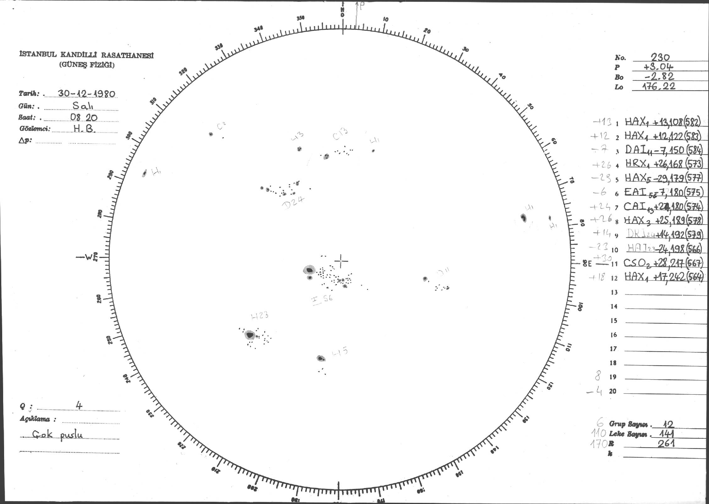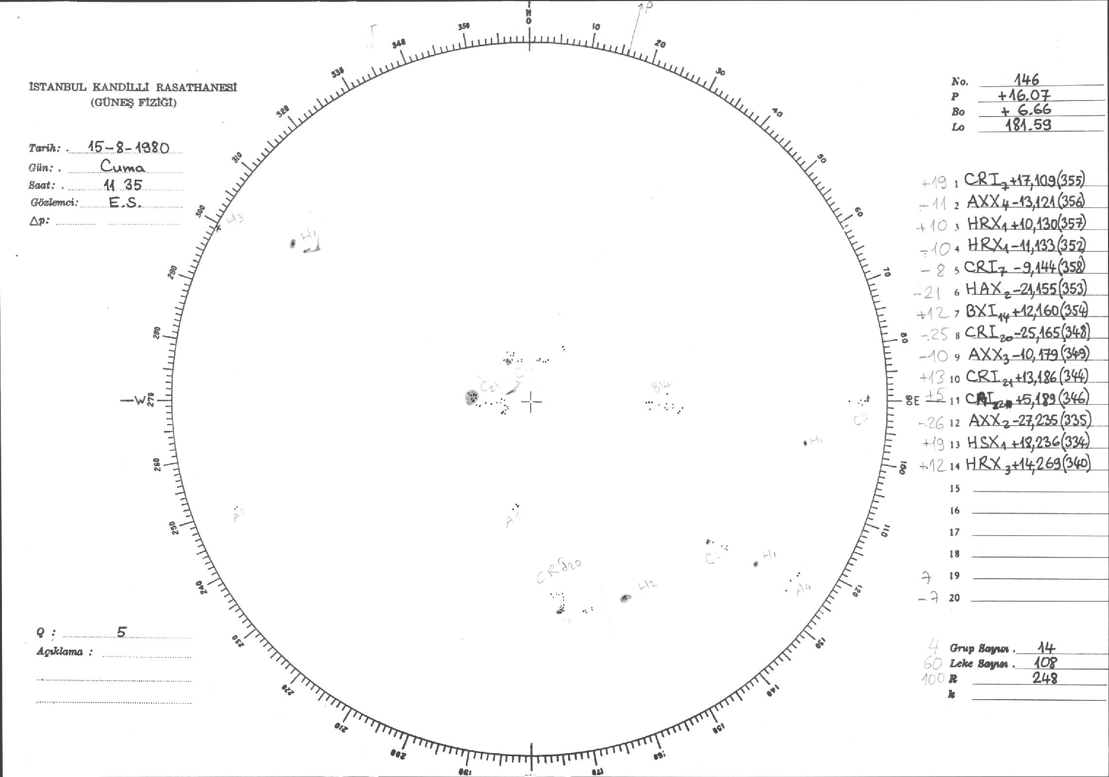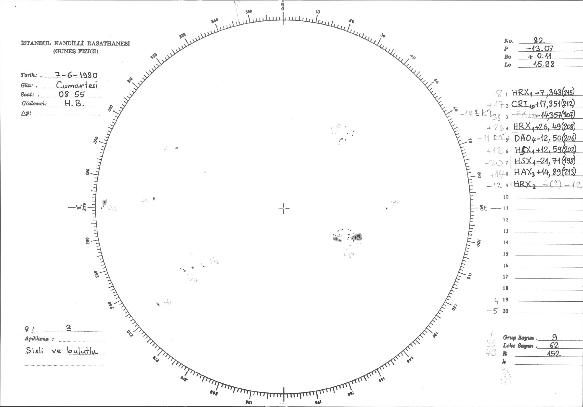 Güneş Lekesi Çizimleri / Kandilli Sunspot Drawings