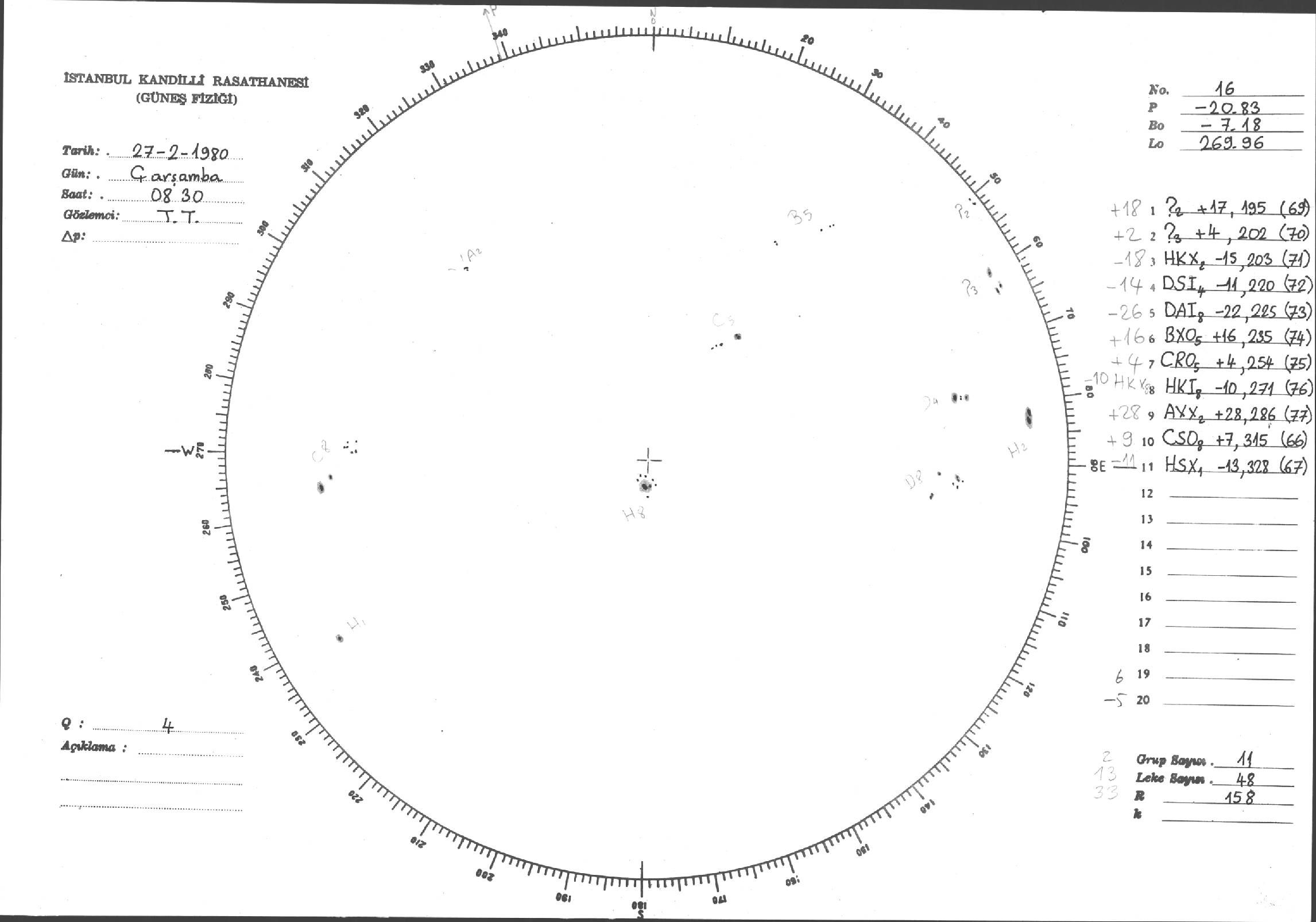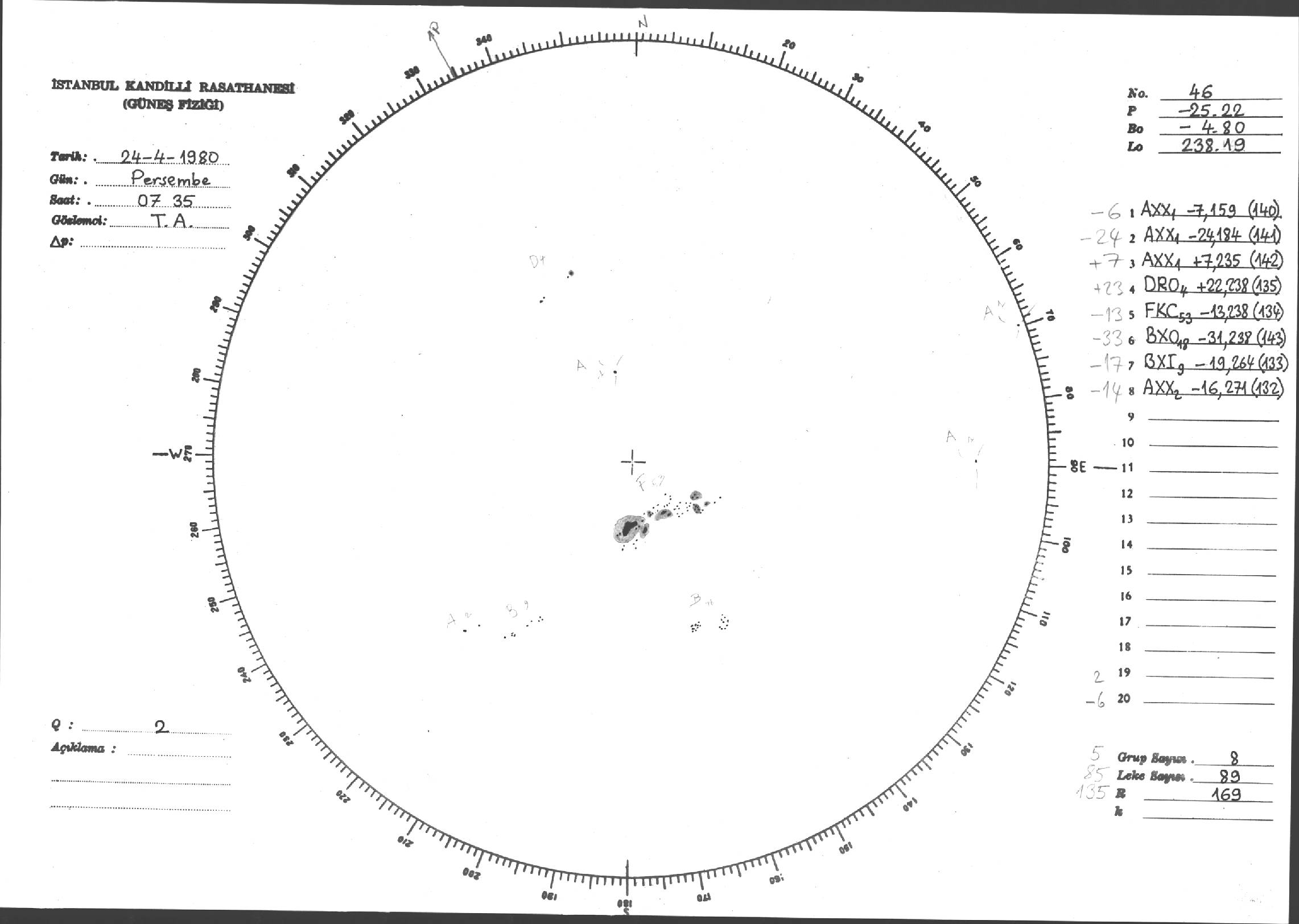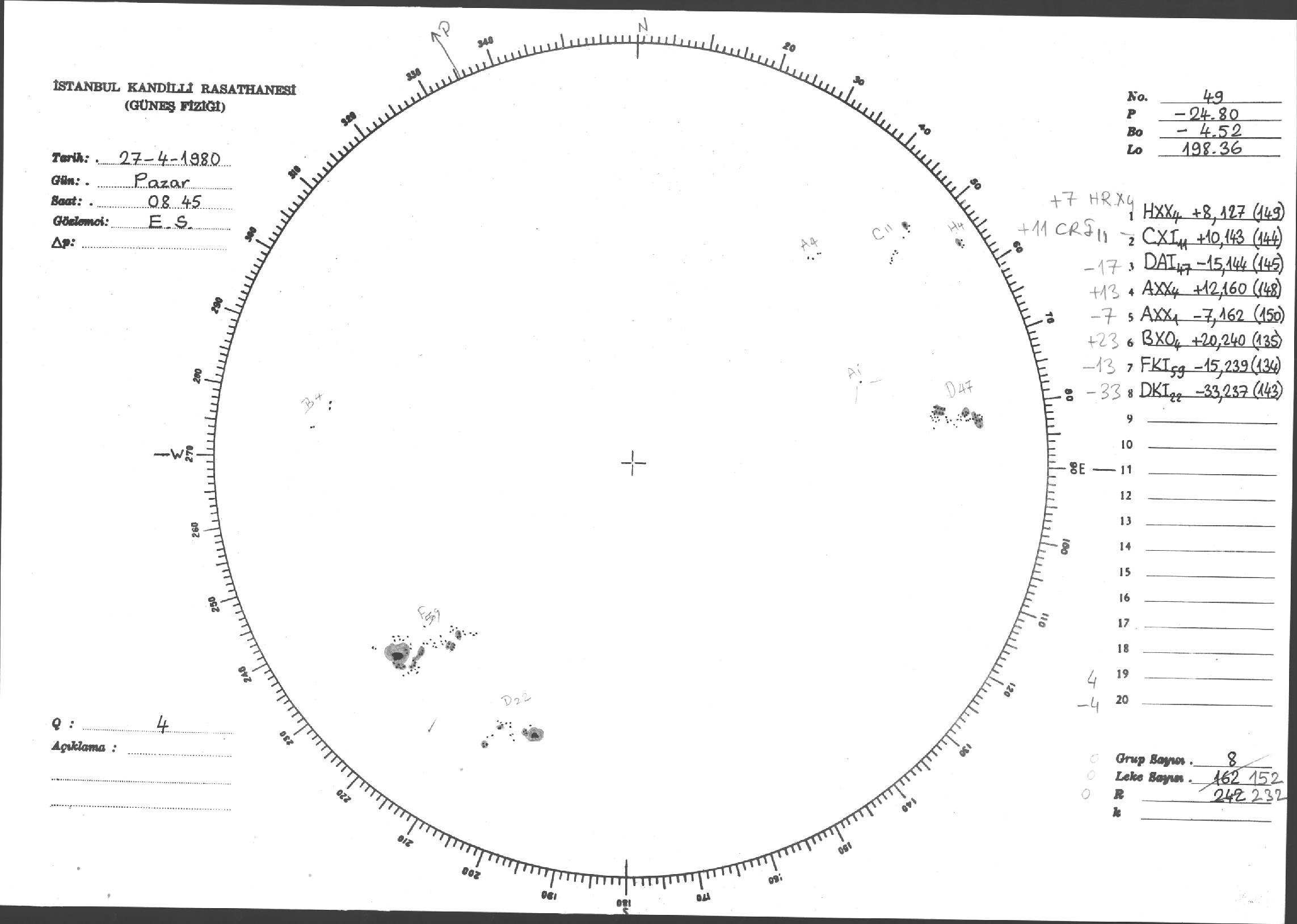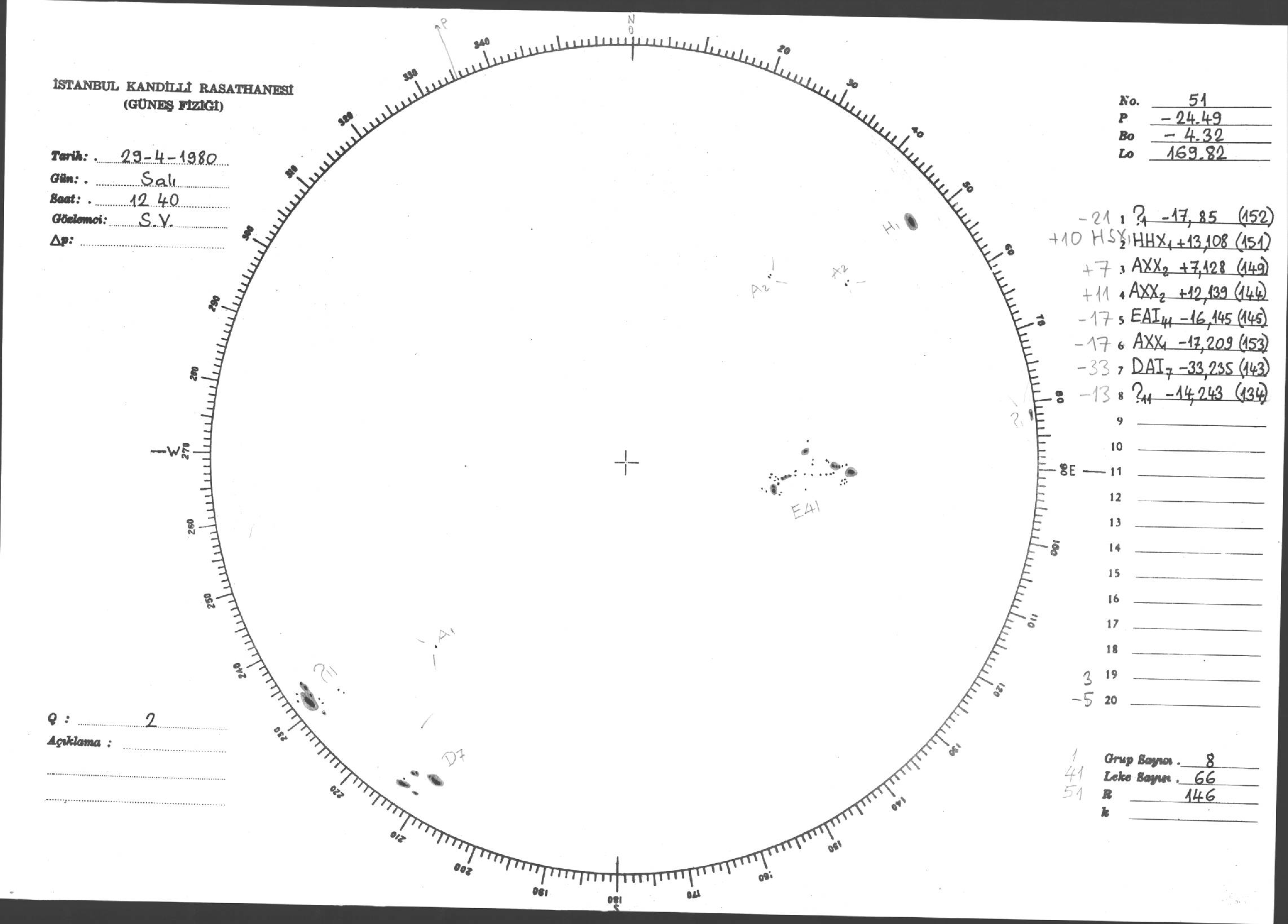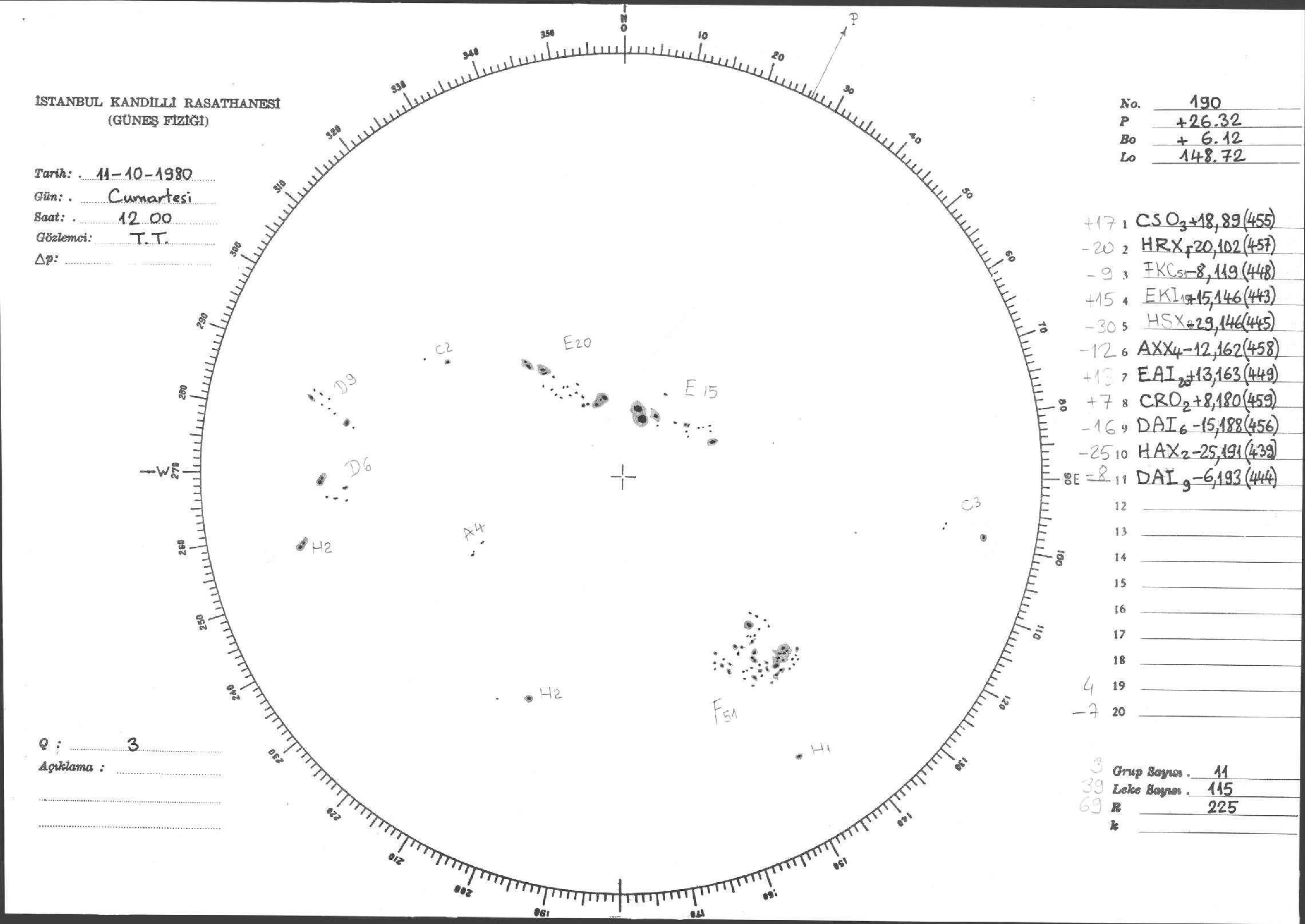 Güneş Lekesi Çizimleri / Kandilli Sunspot Drawings