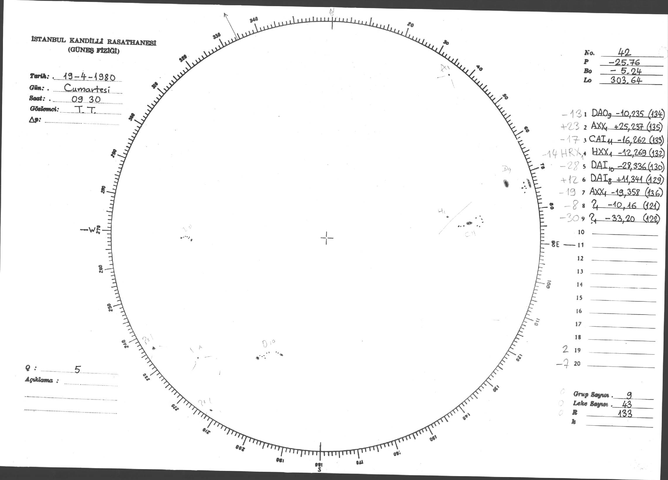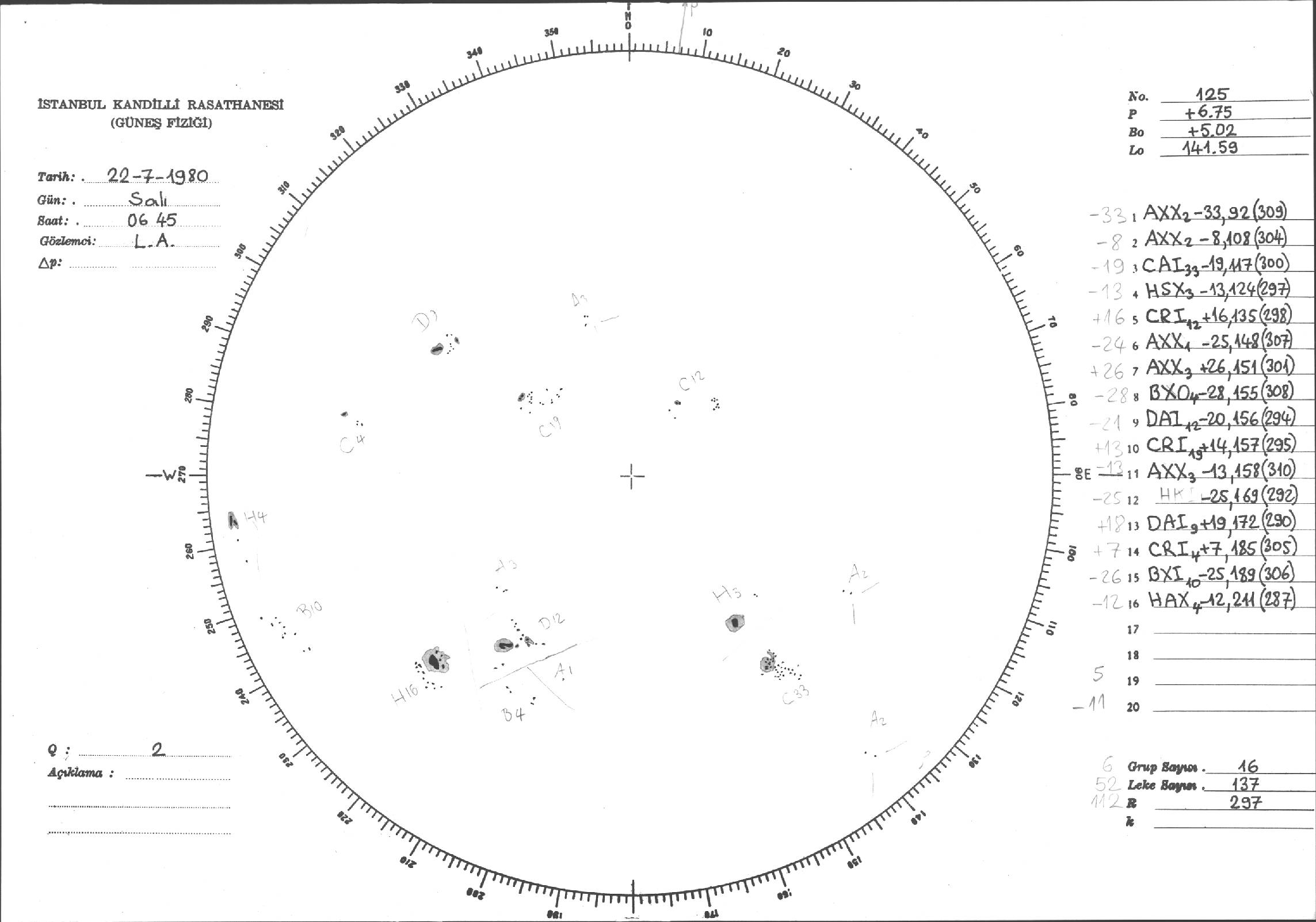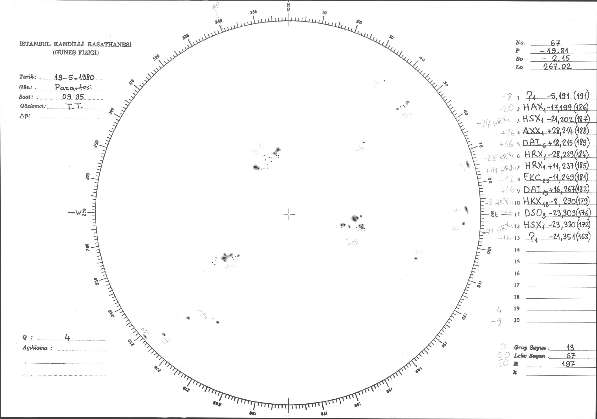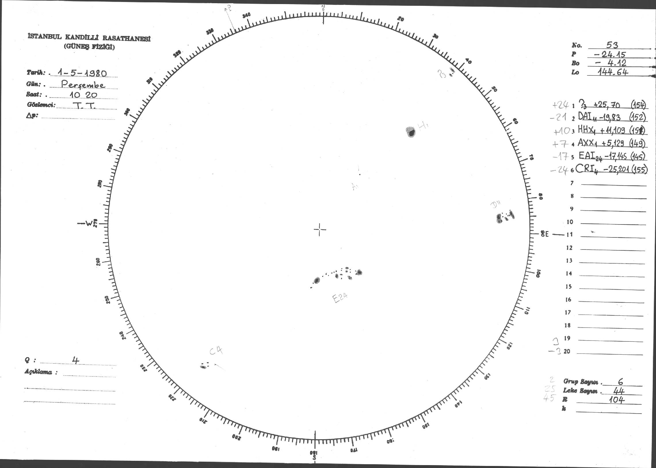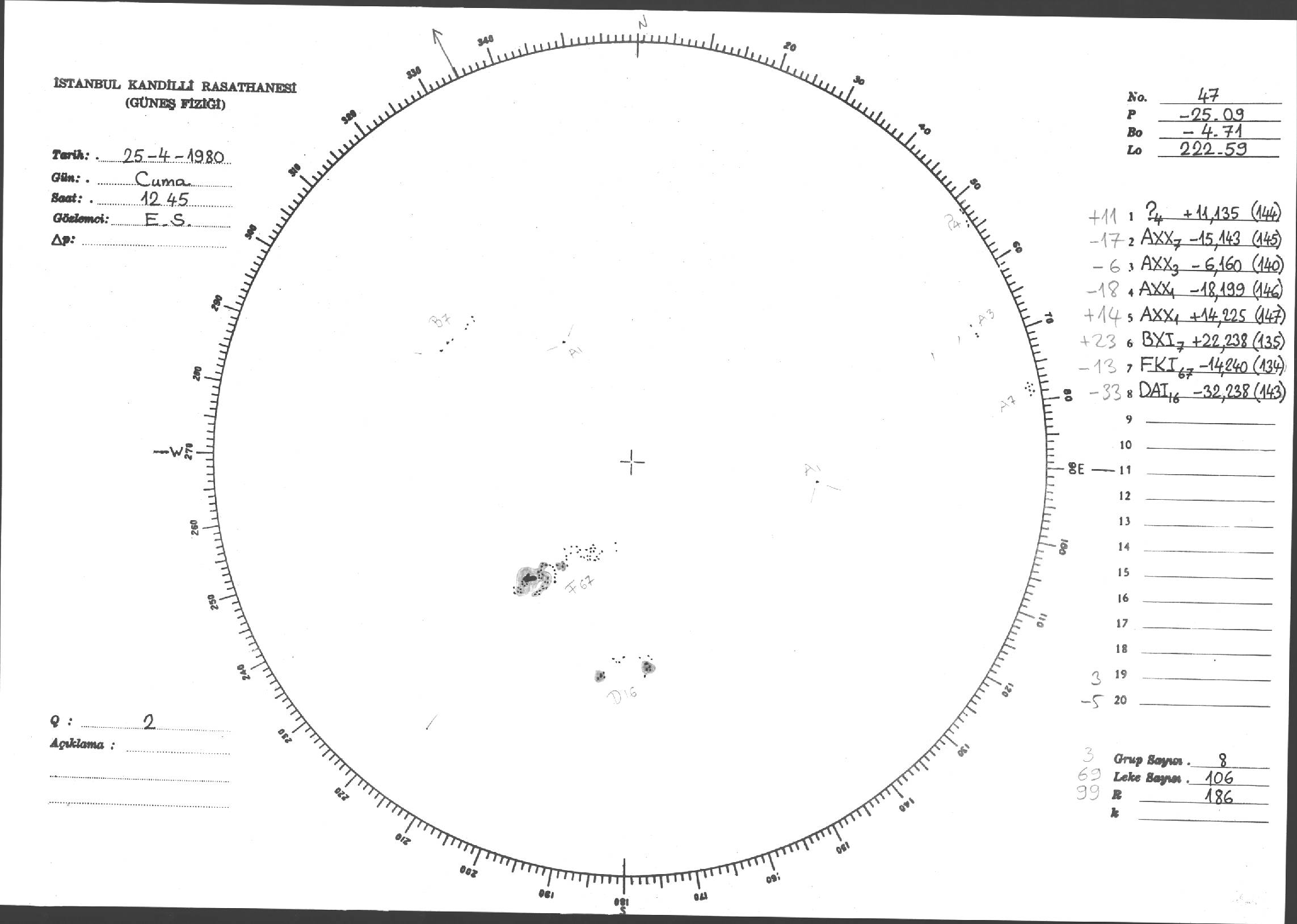 Güneş Lekesi Çizimleri / Kandilli Sunspot Drawings