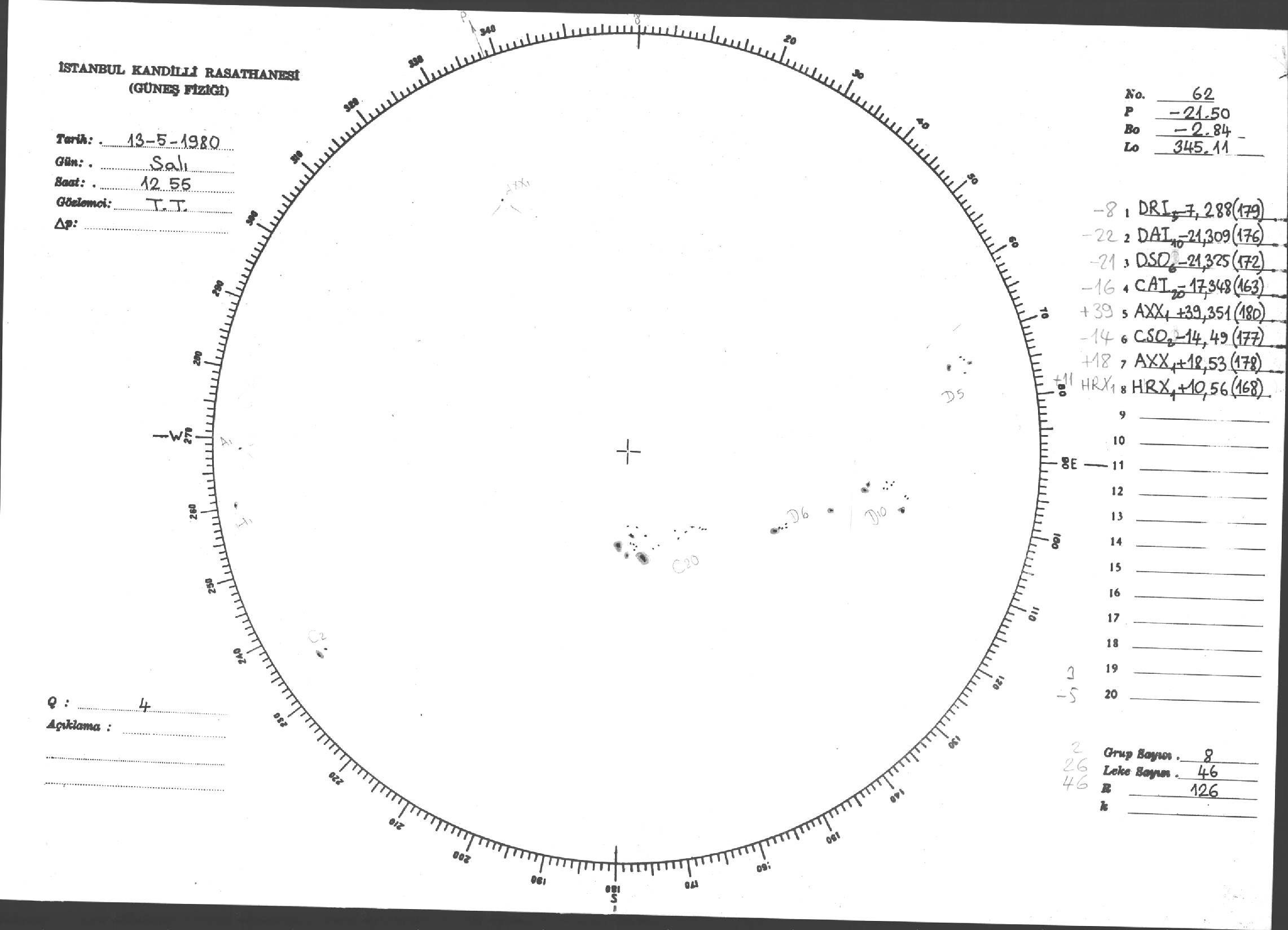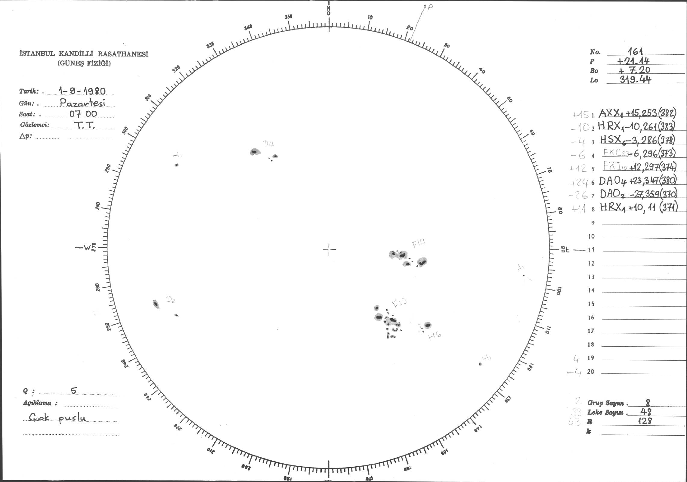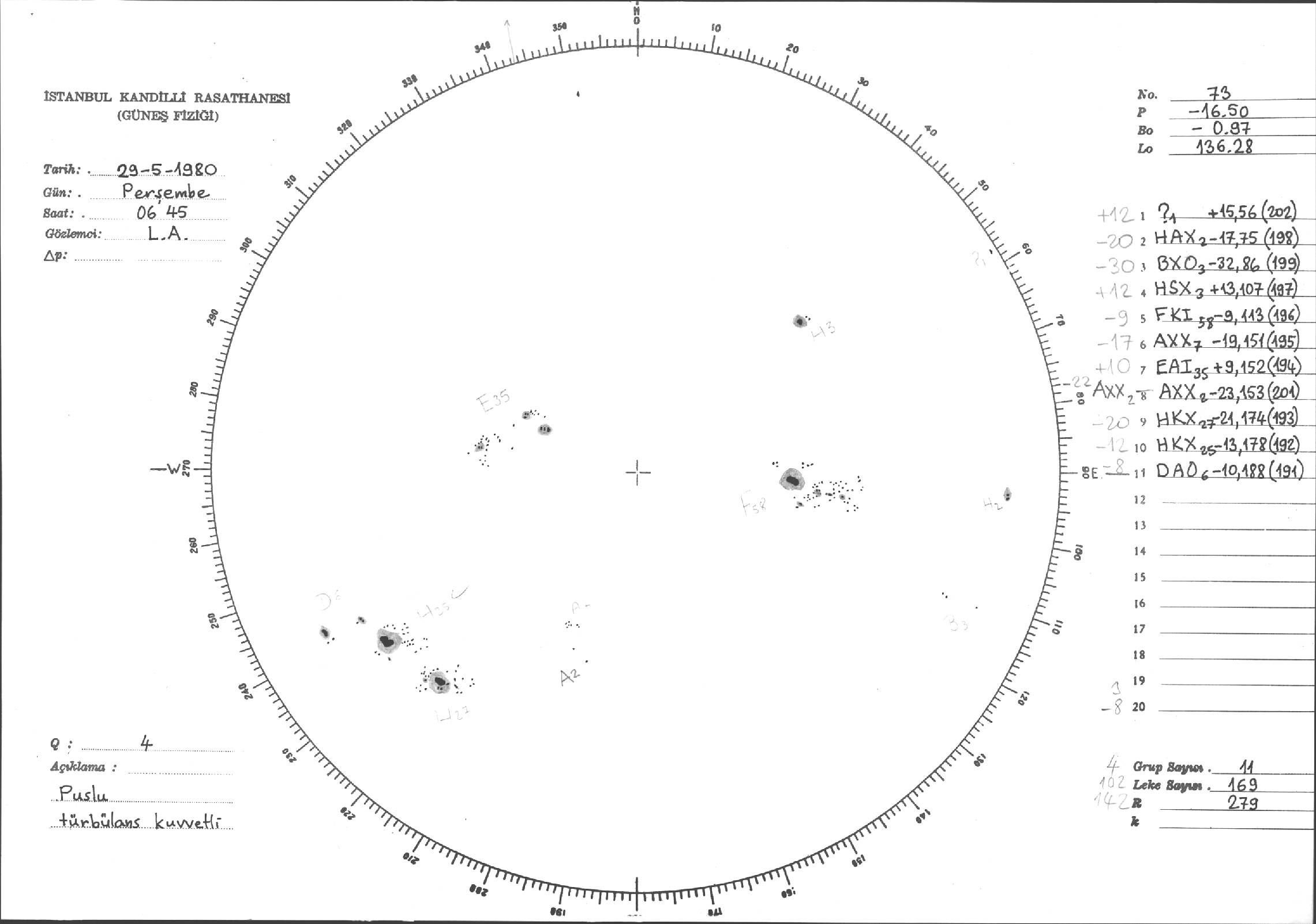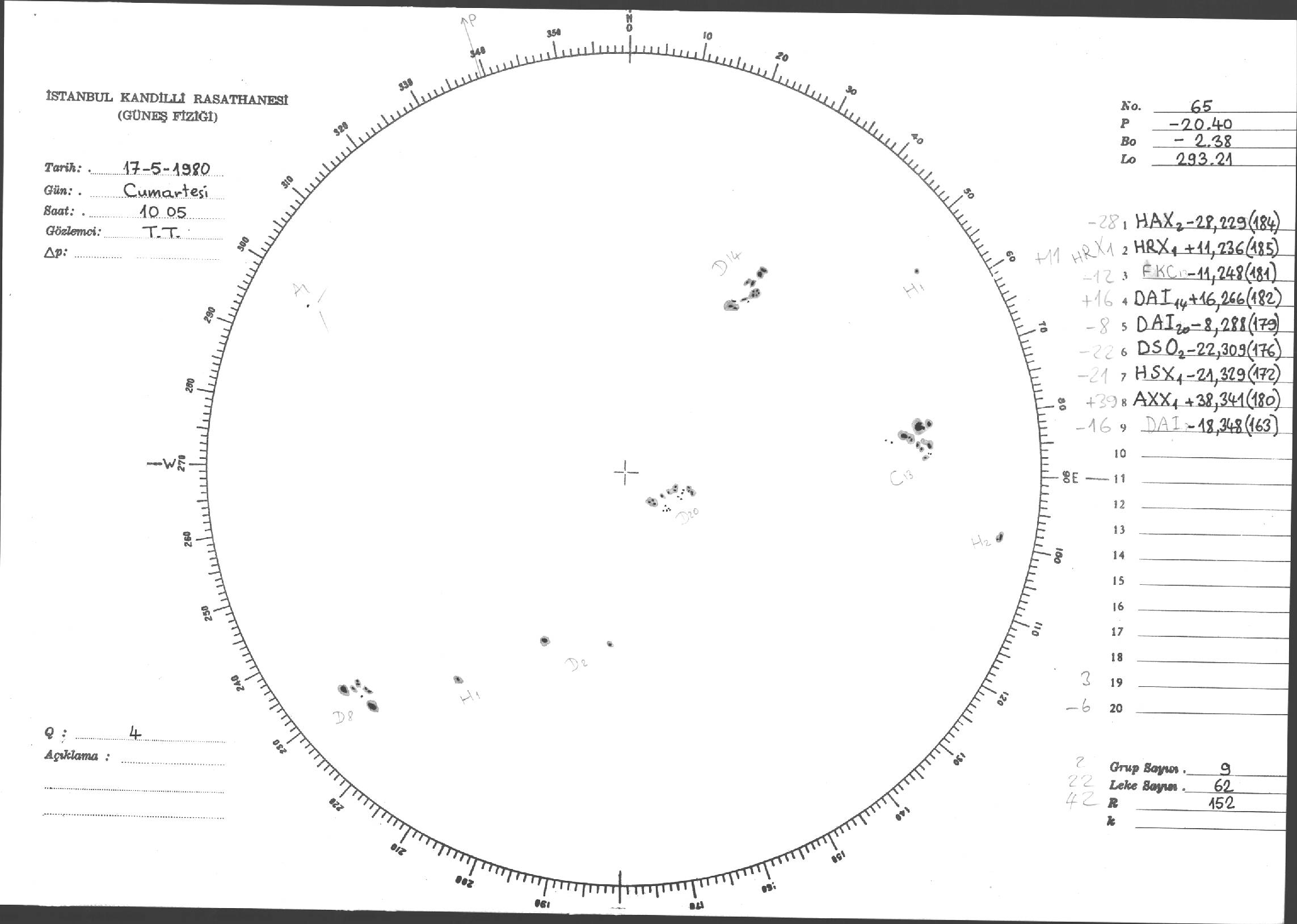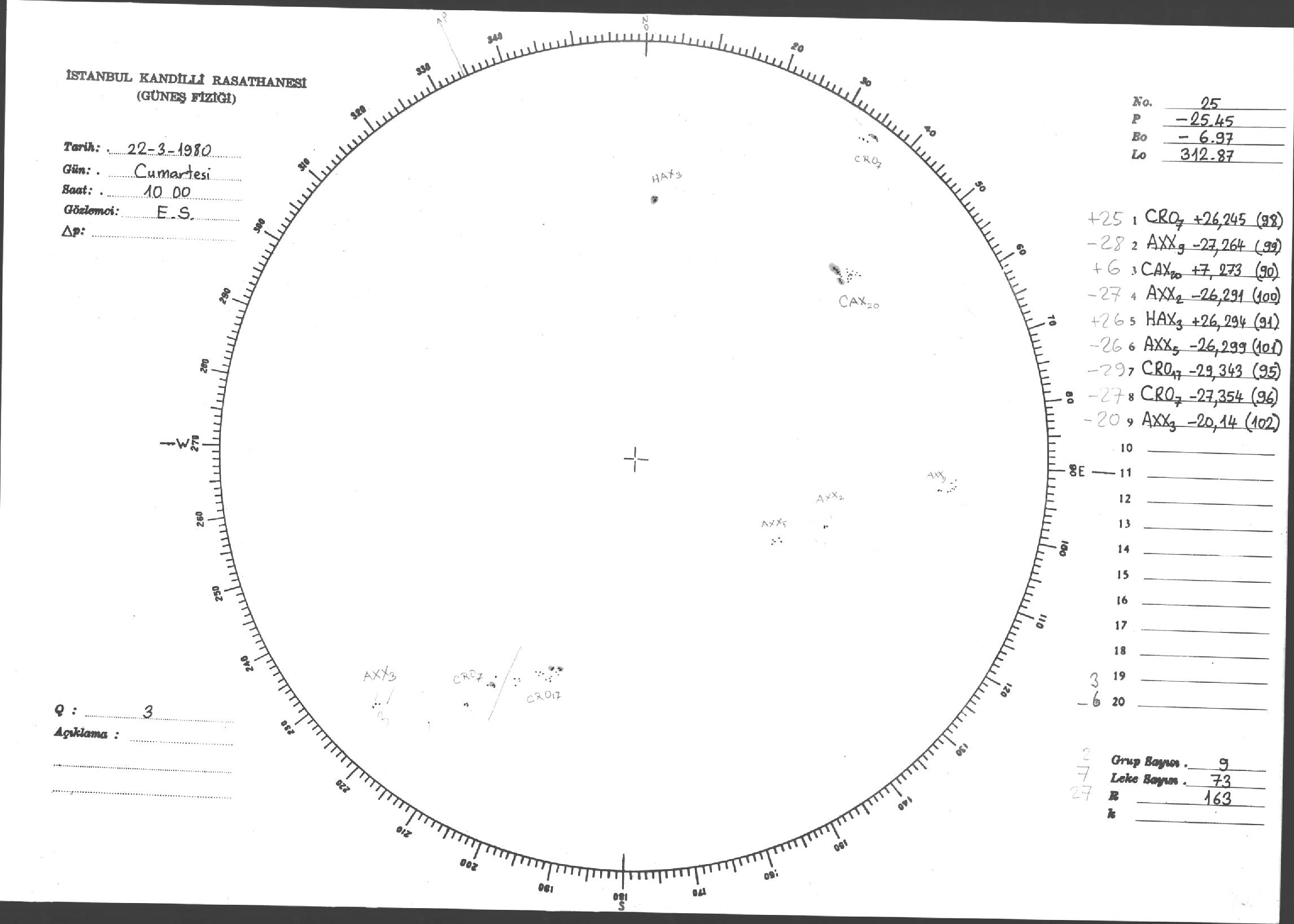 Güneş Lekesi Çizimleri / Kandilli Sunspot Drawings