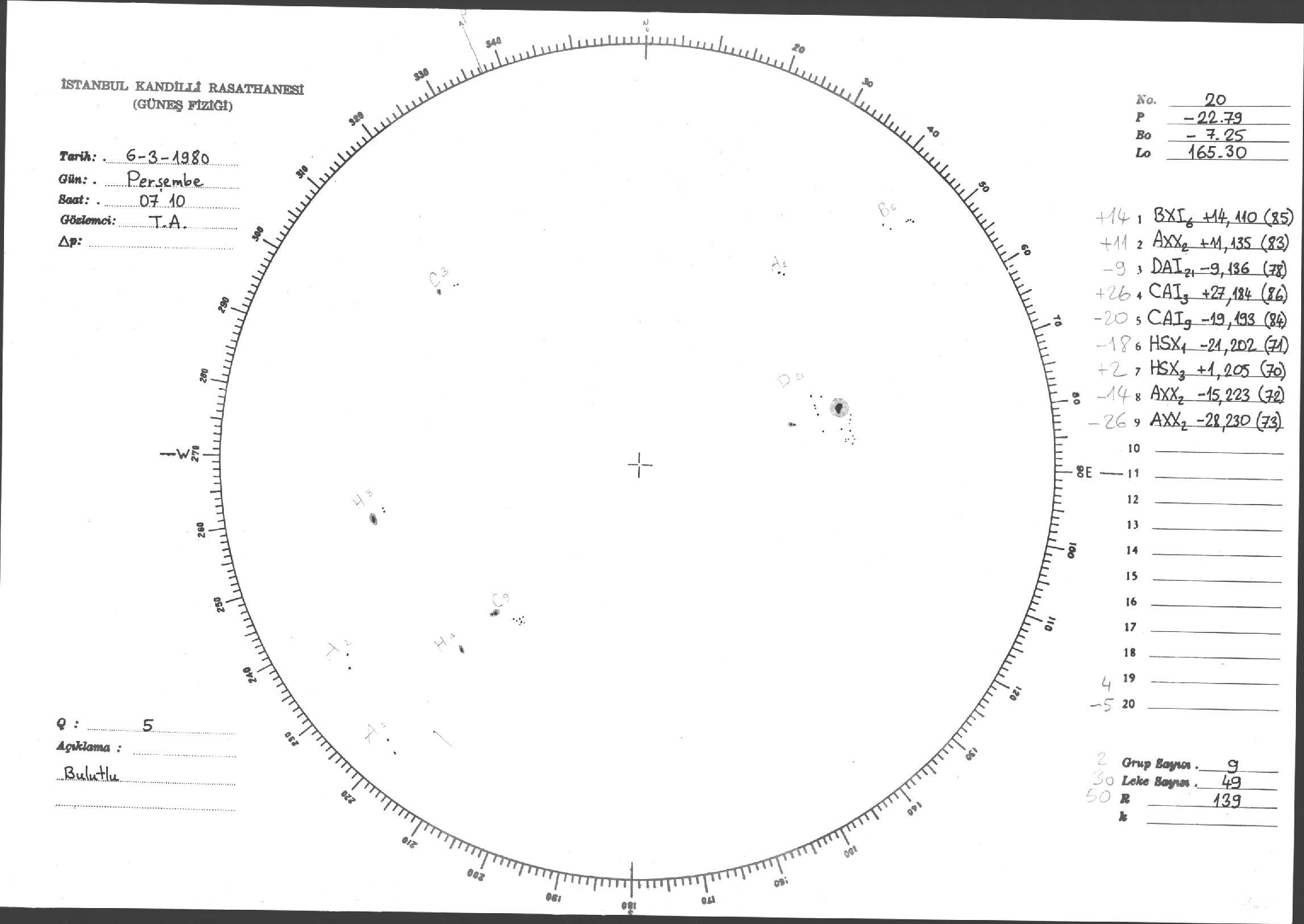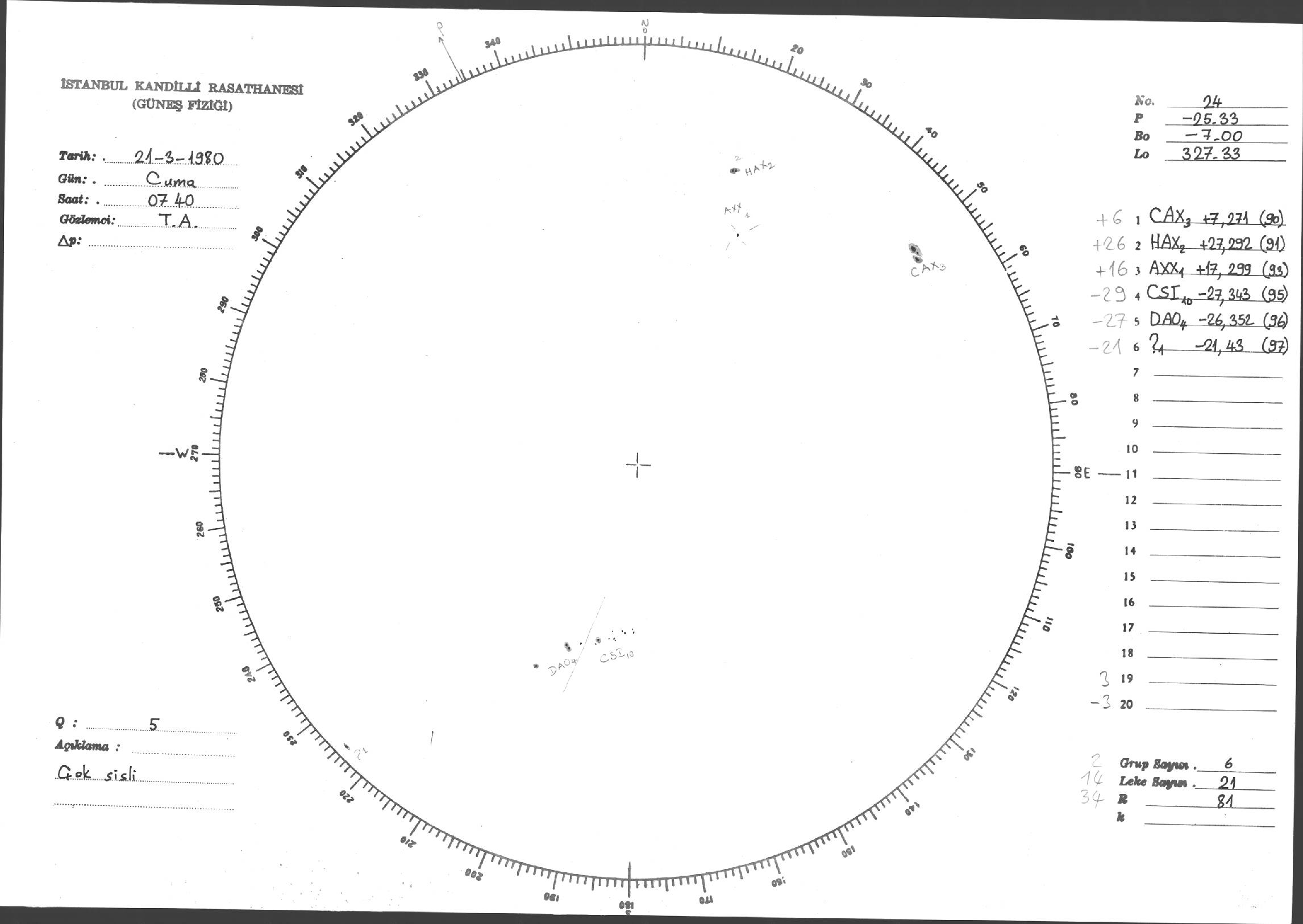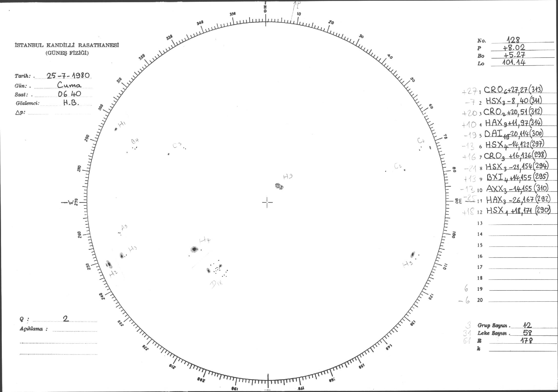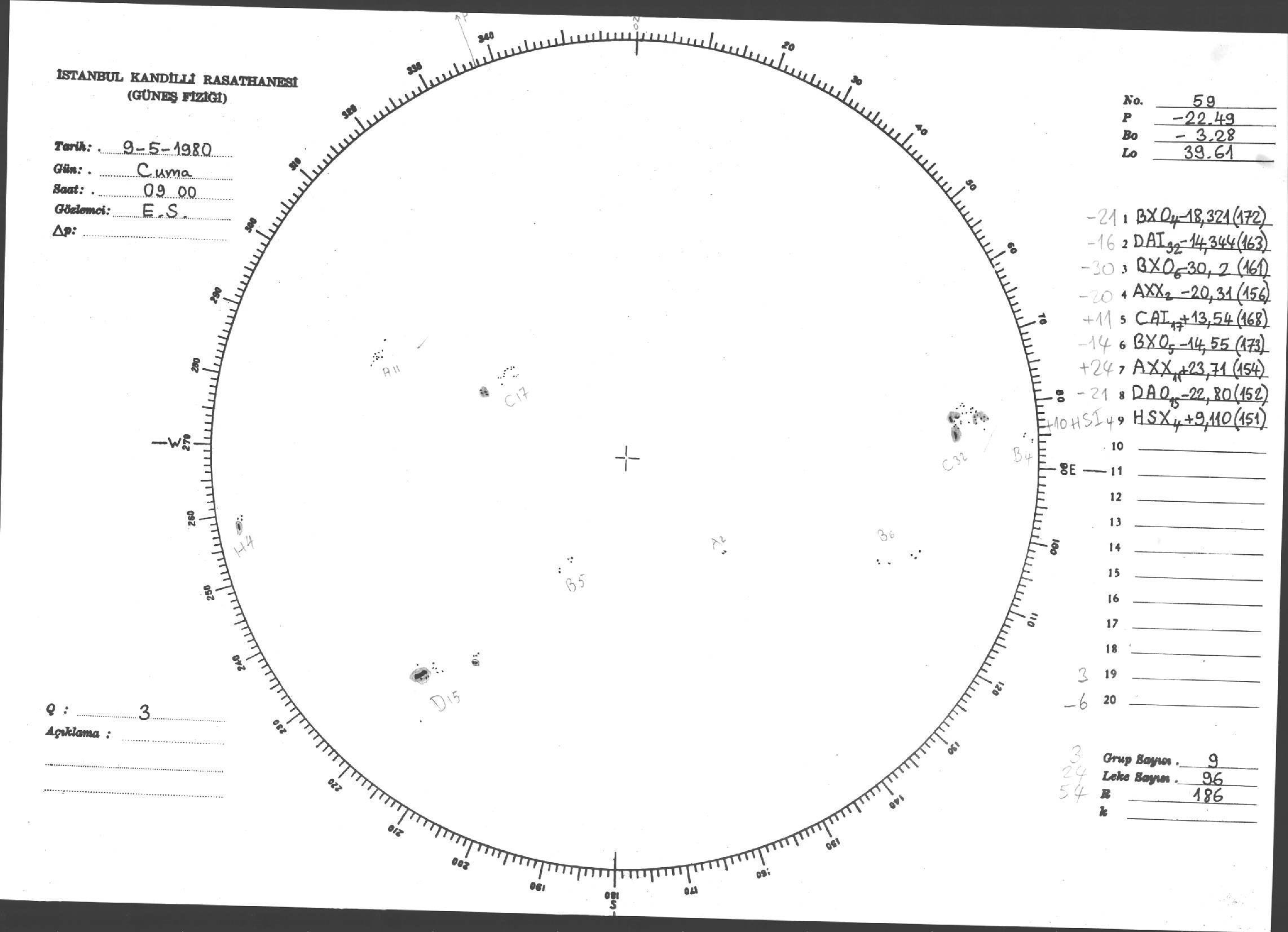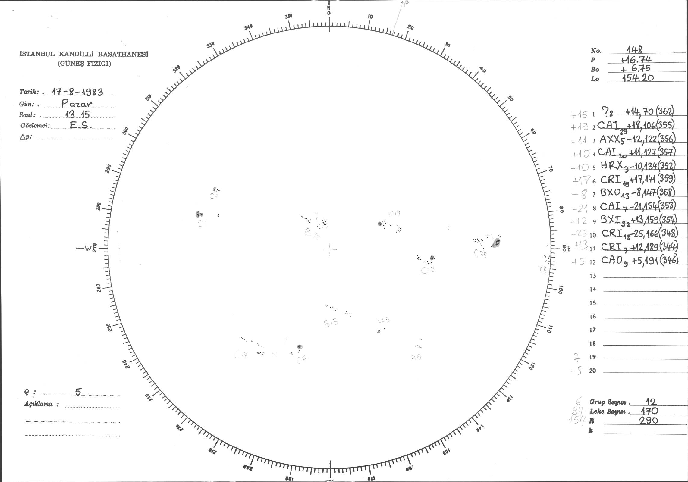 Güneş Lekesi Çizimleri / Kandilli Sunspot Drawings