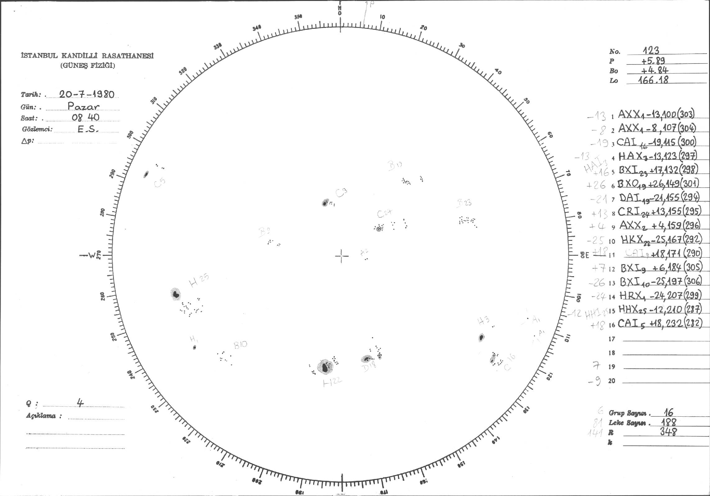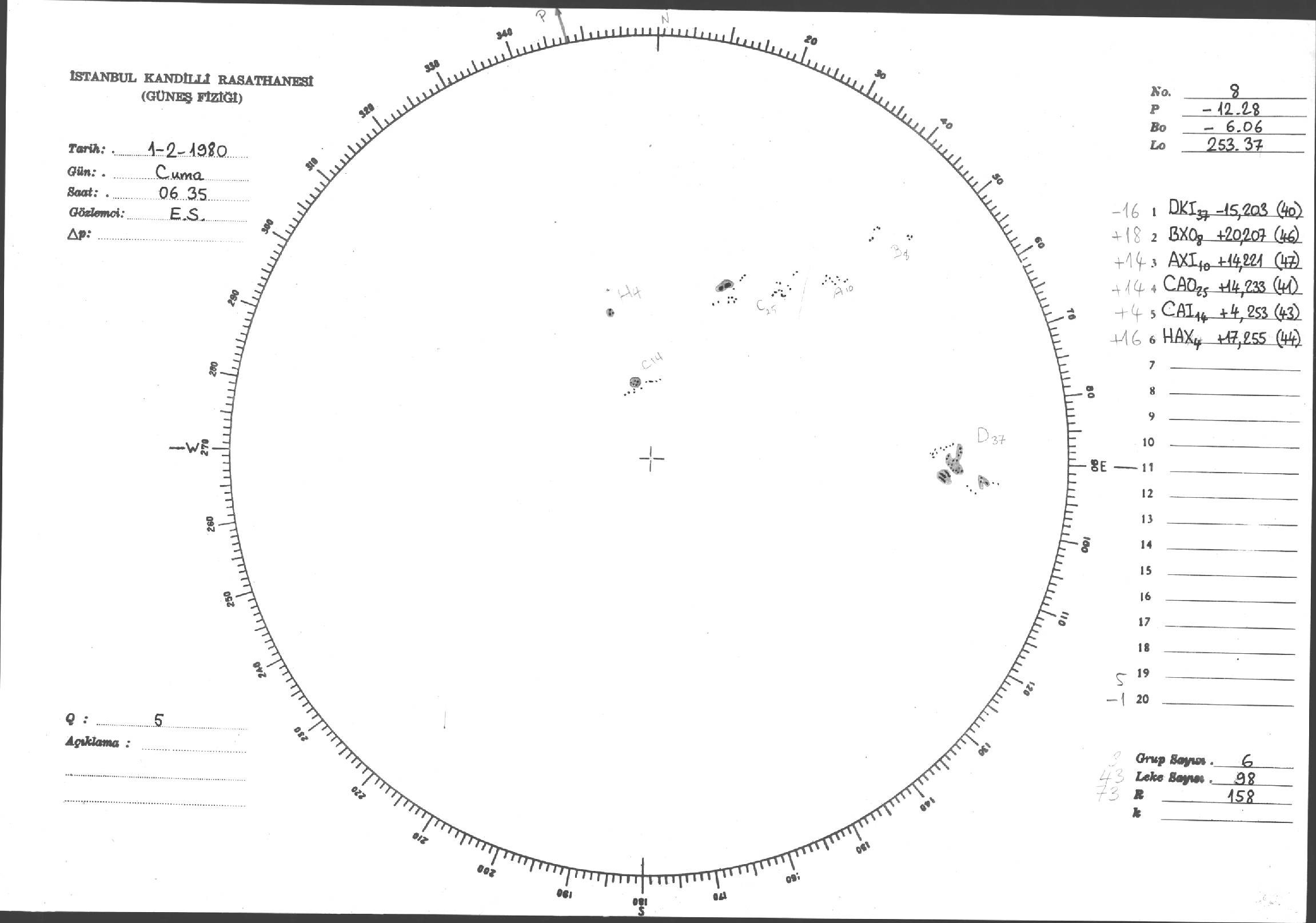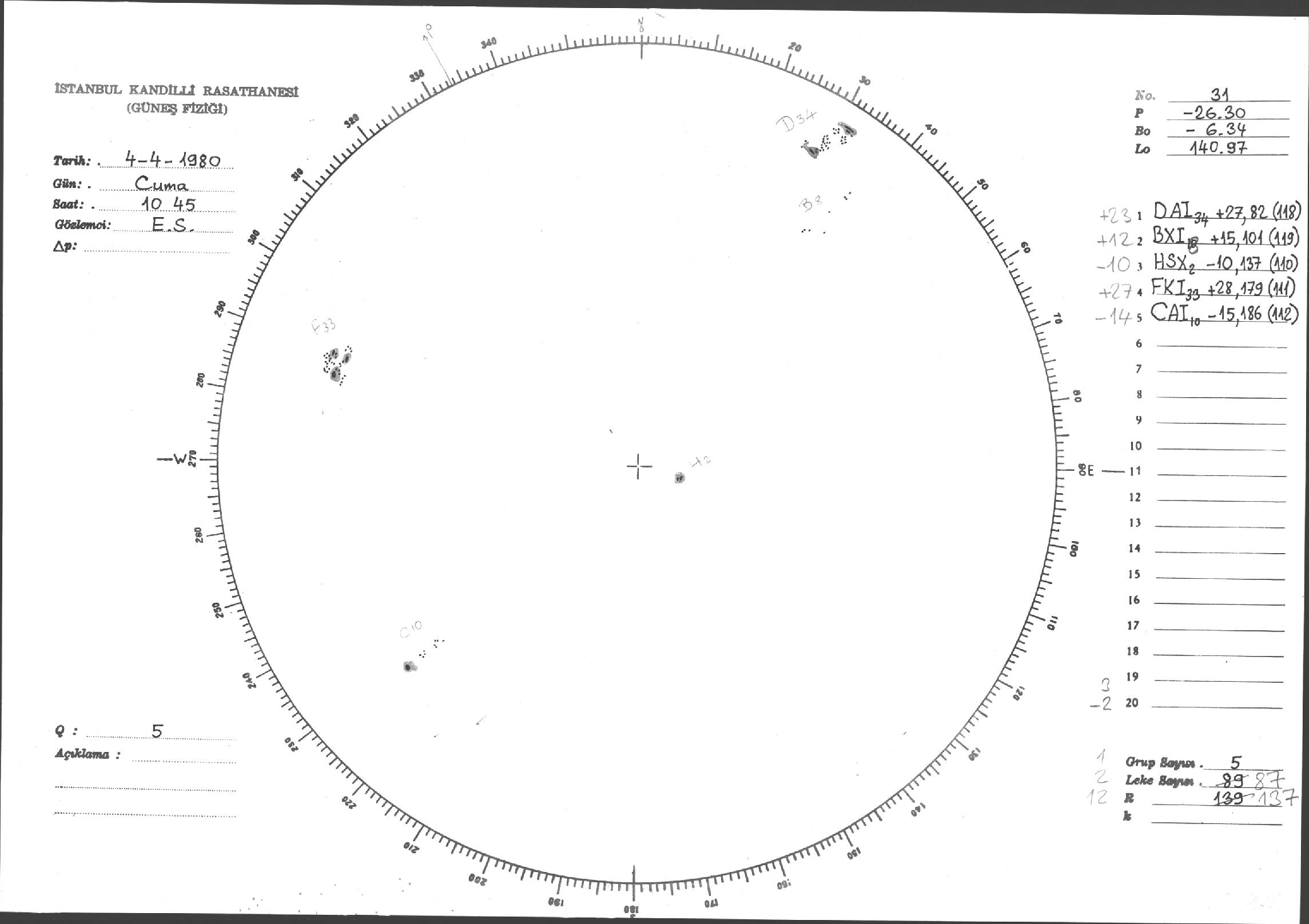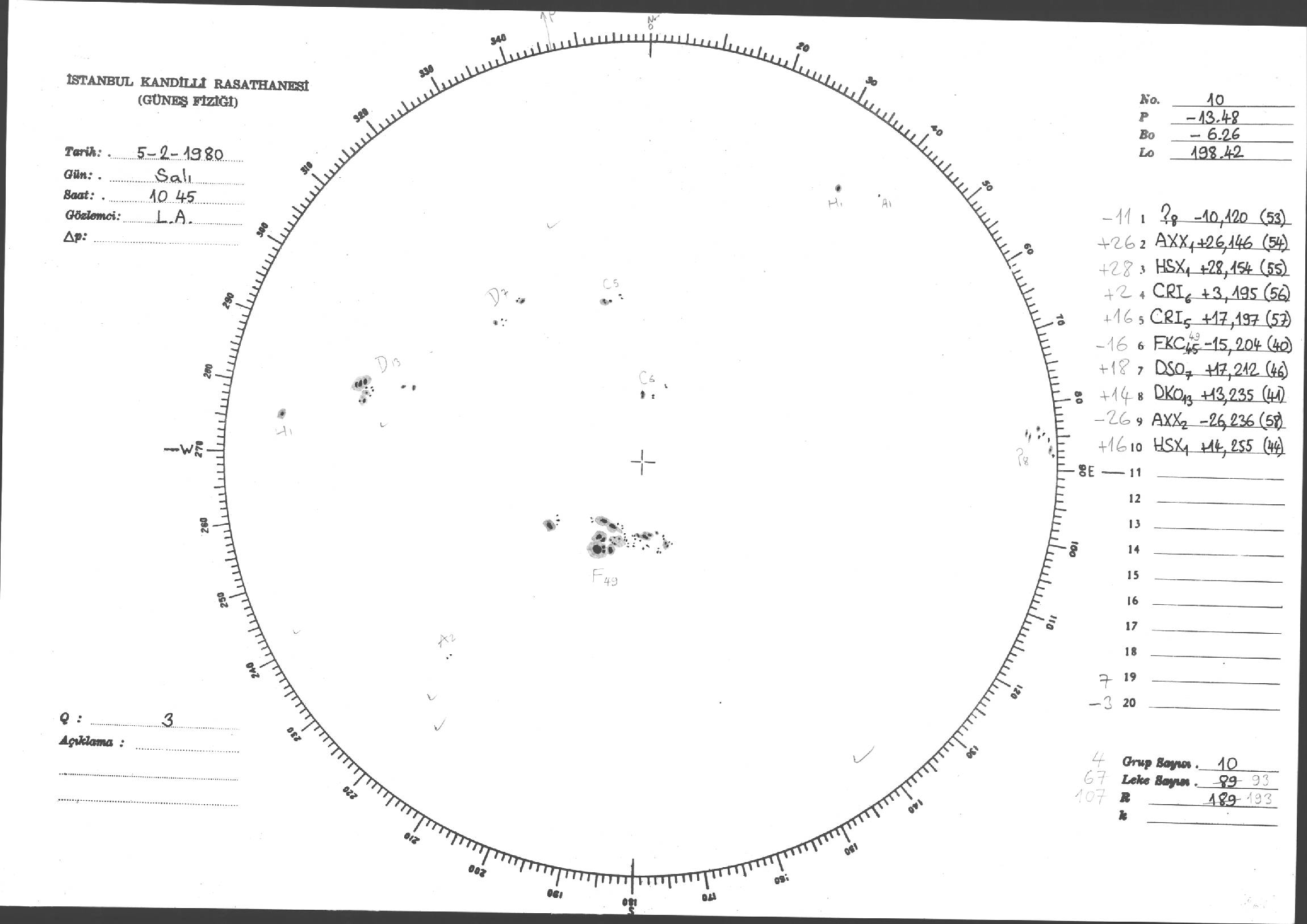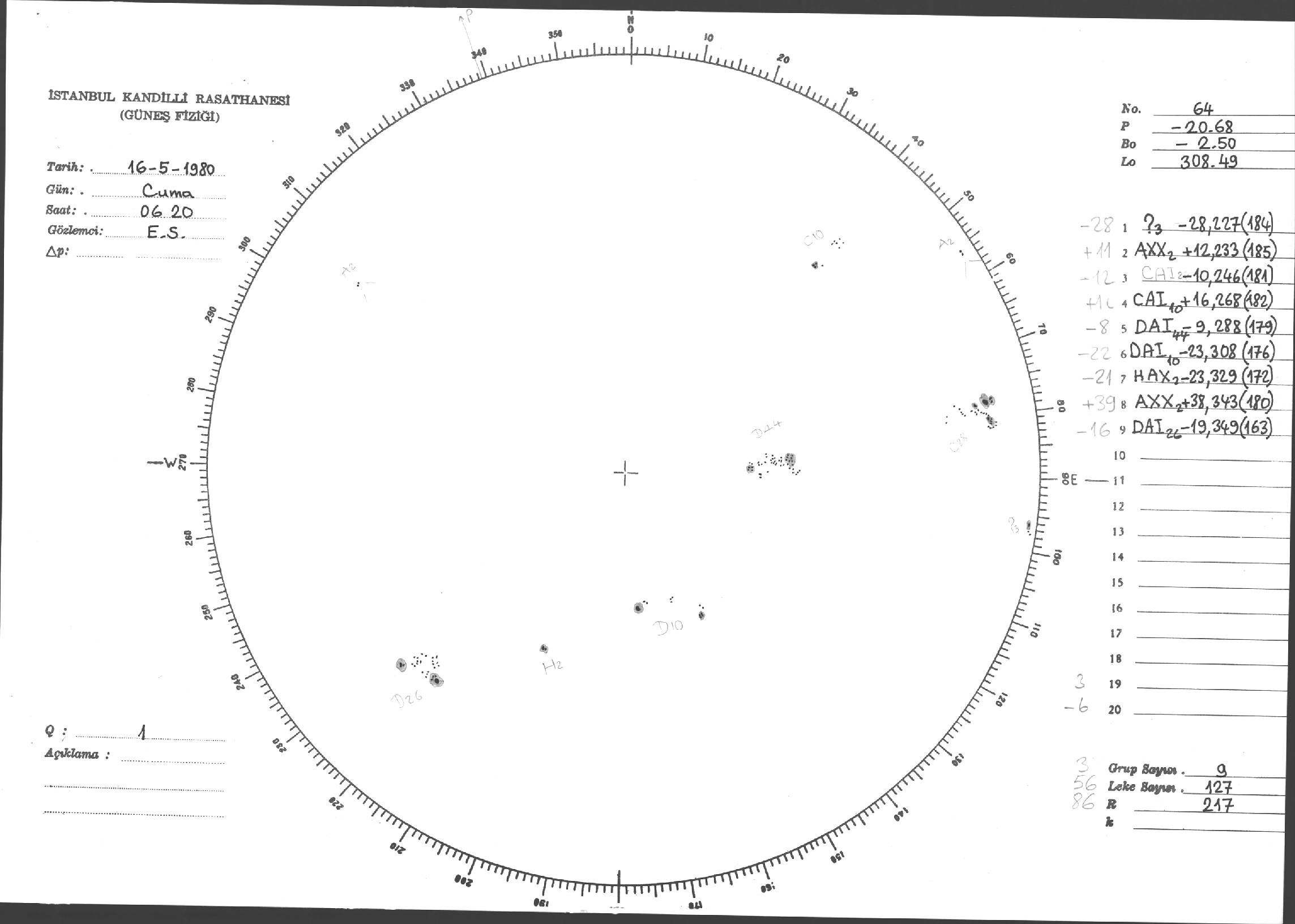 Güneş Lekesi Çizimleri / Kandilli Sunspot Drawings