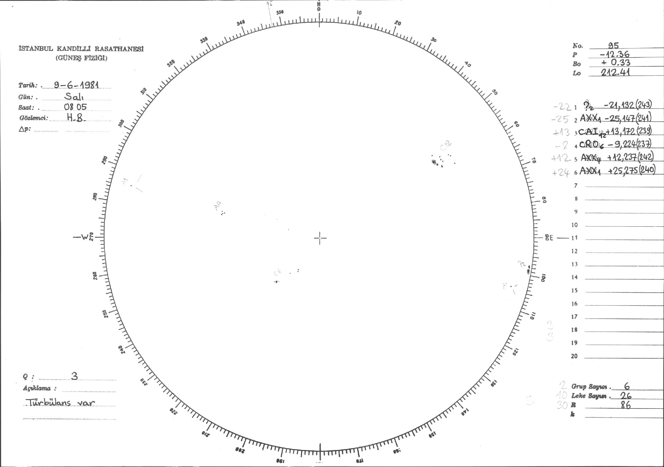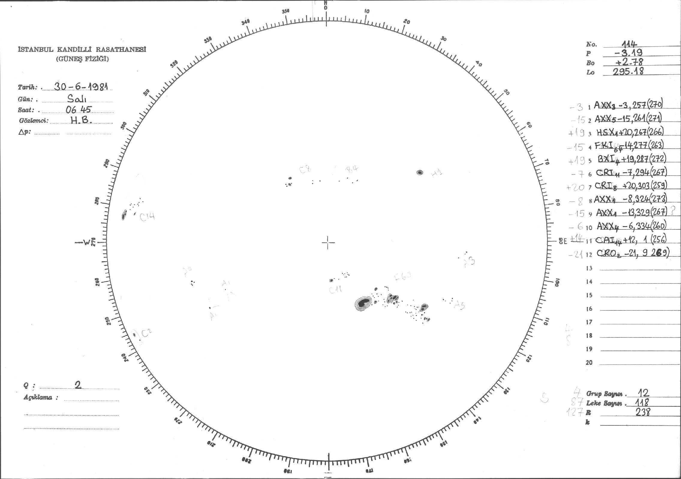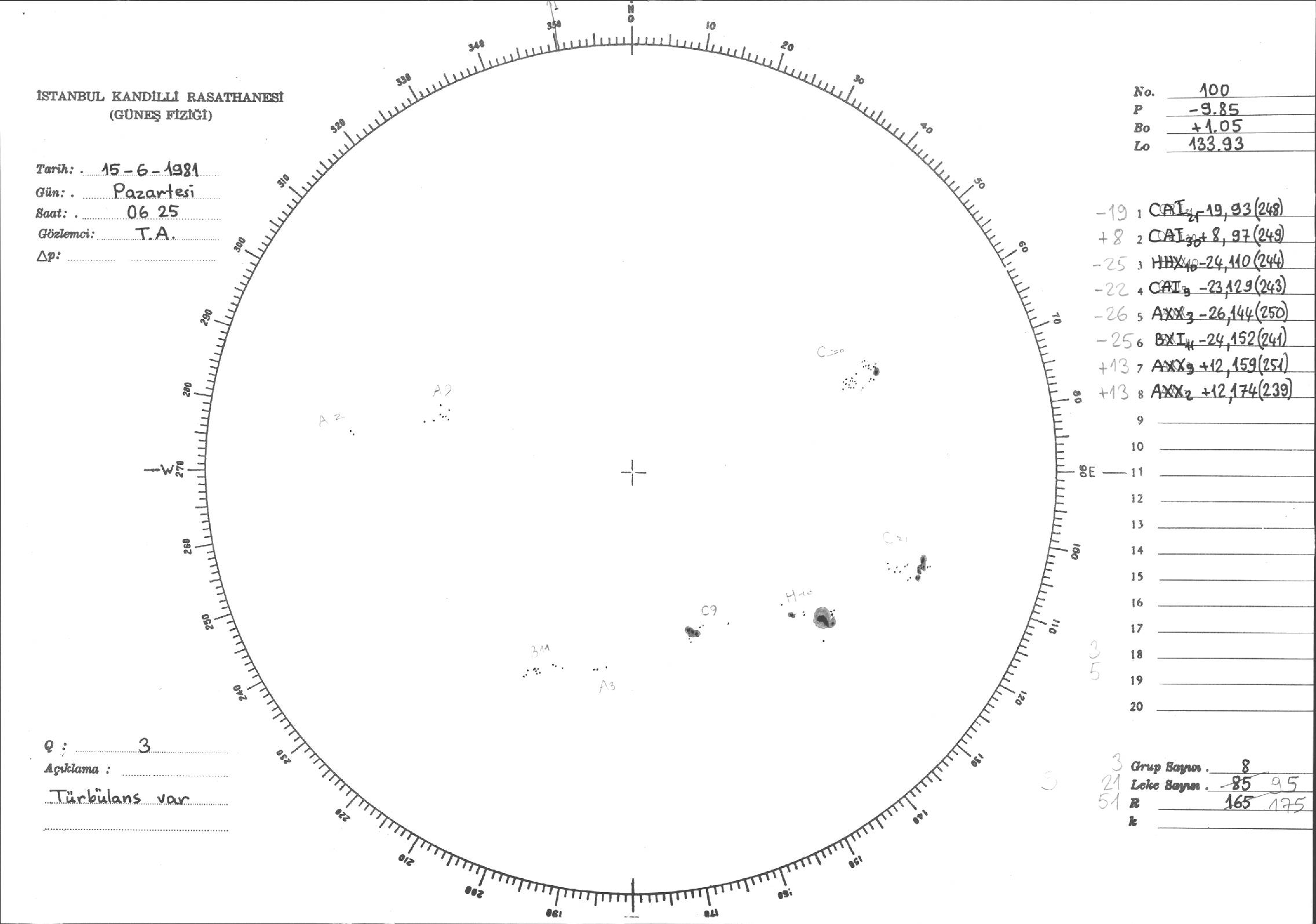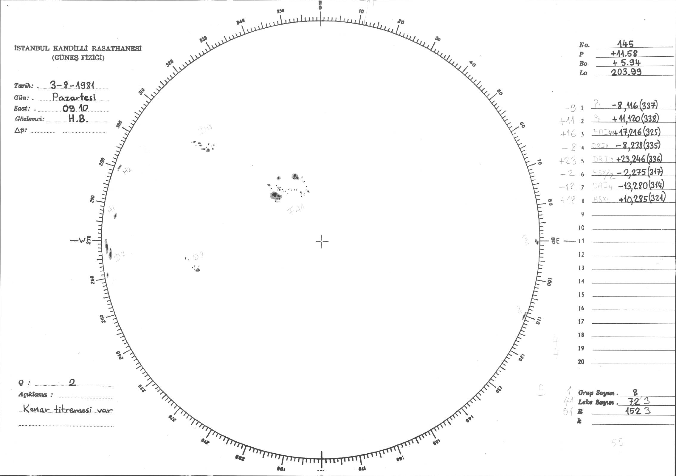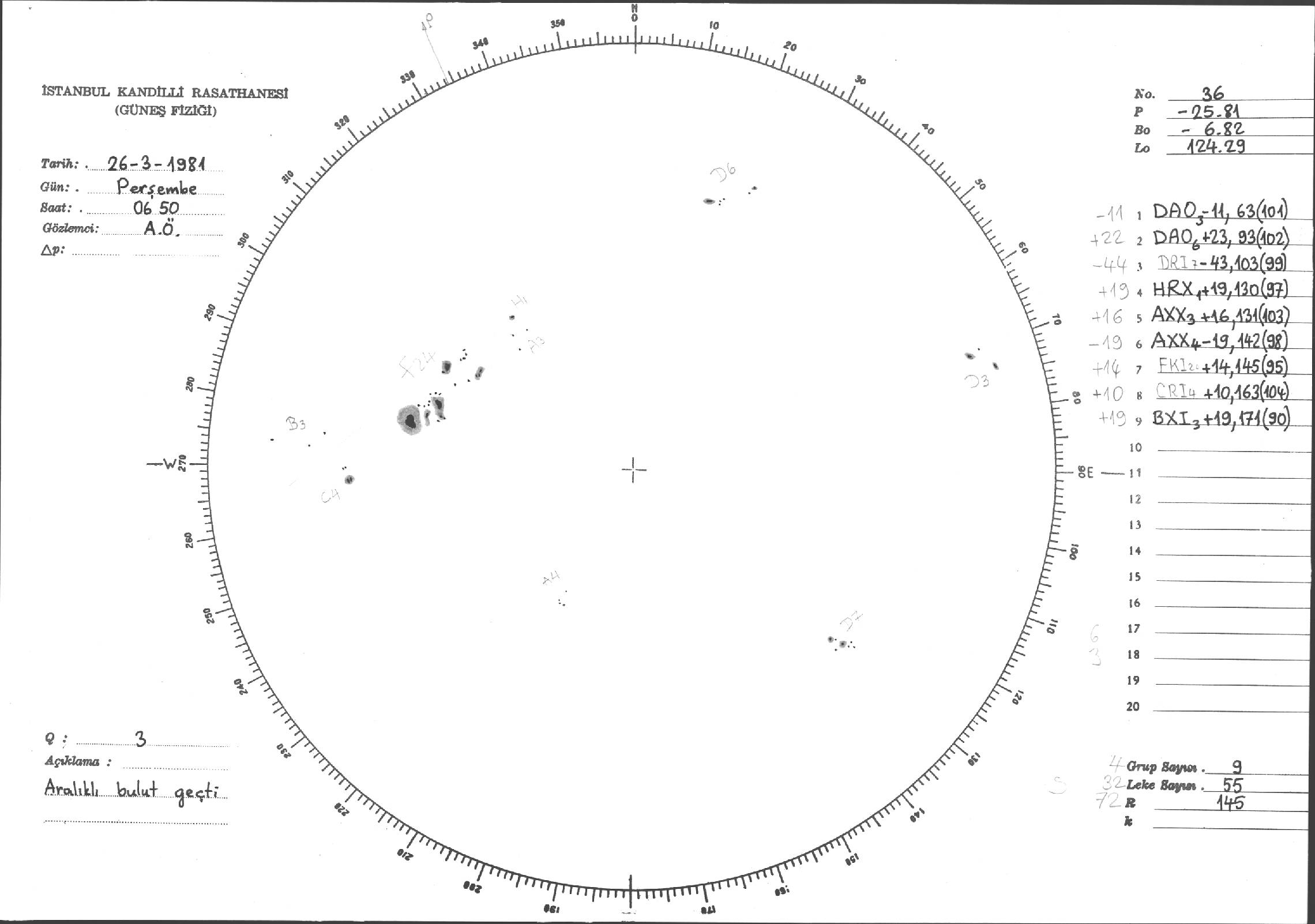 Güneş Lekesi Çizimleri / Kandilli Sunspot Drawings