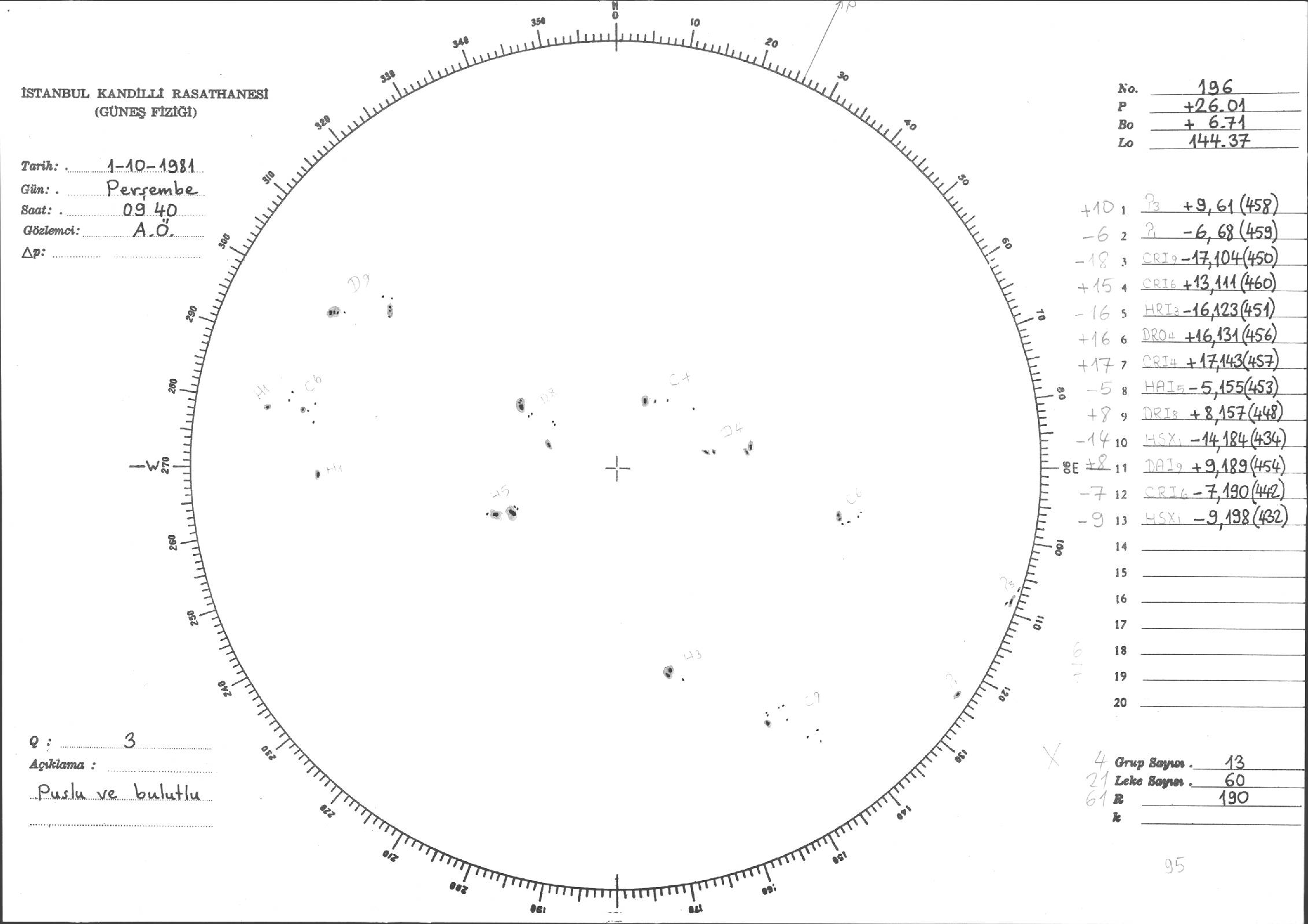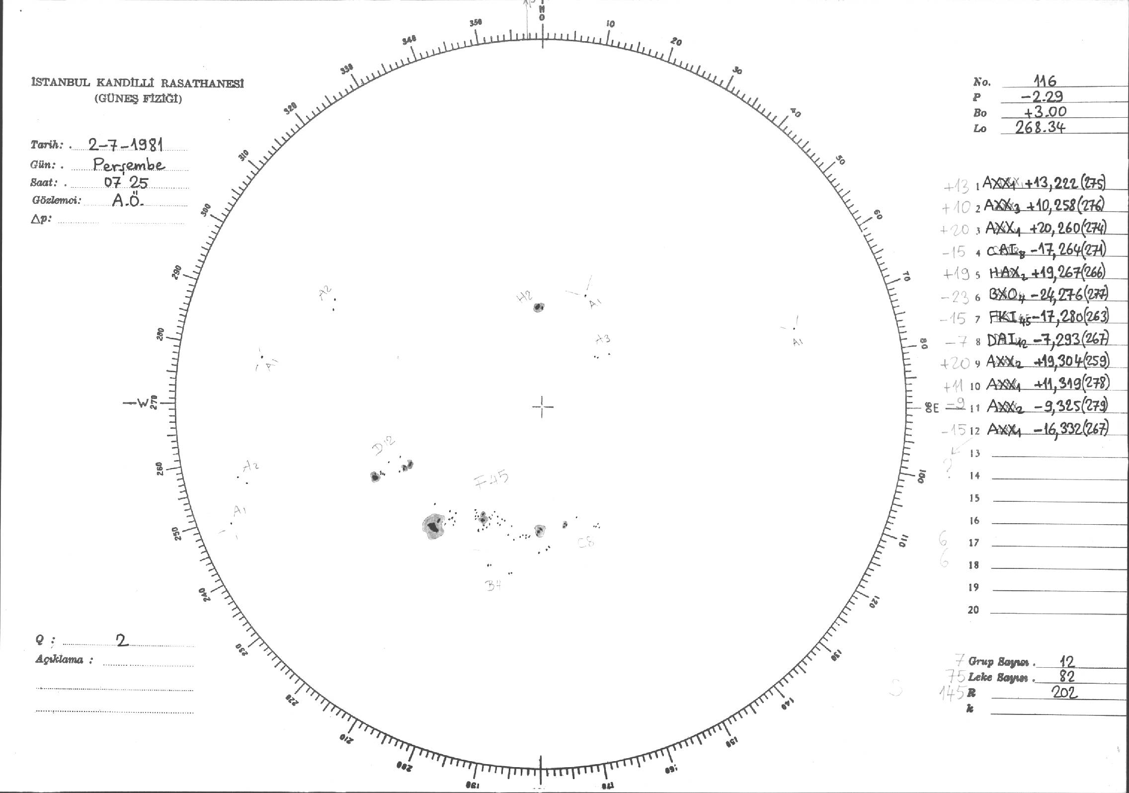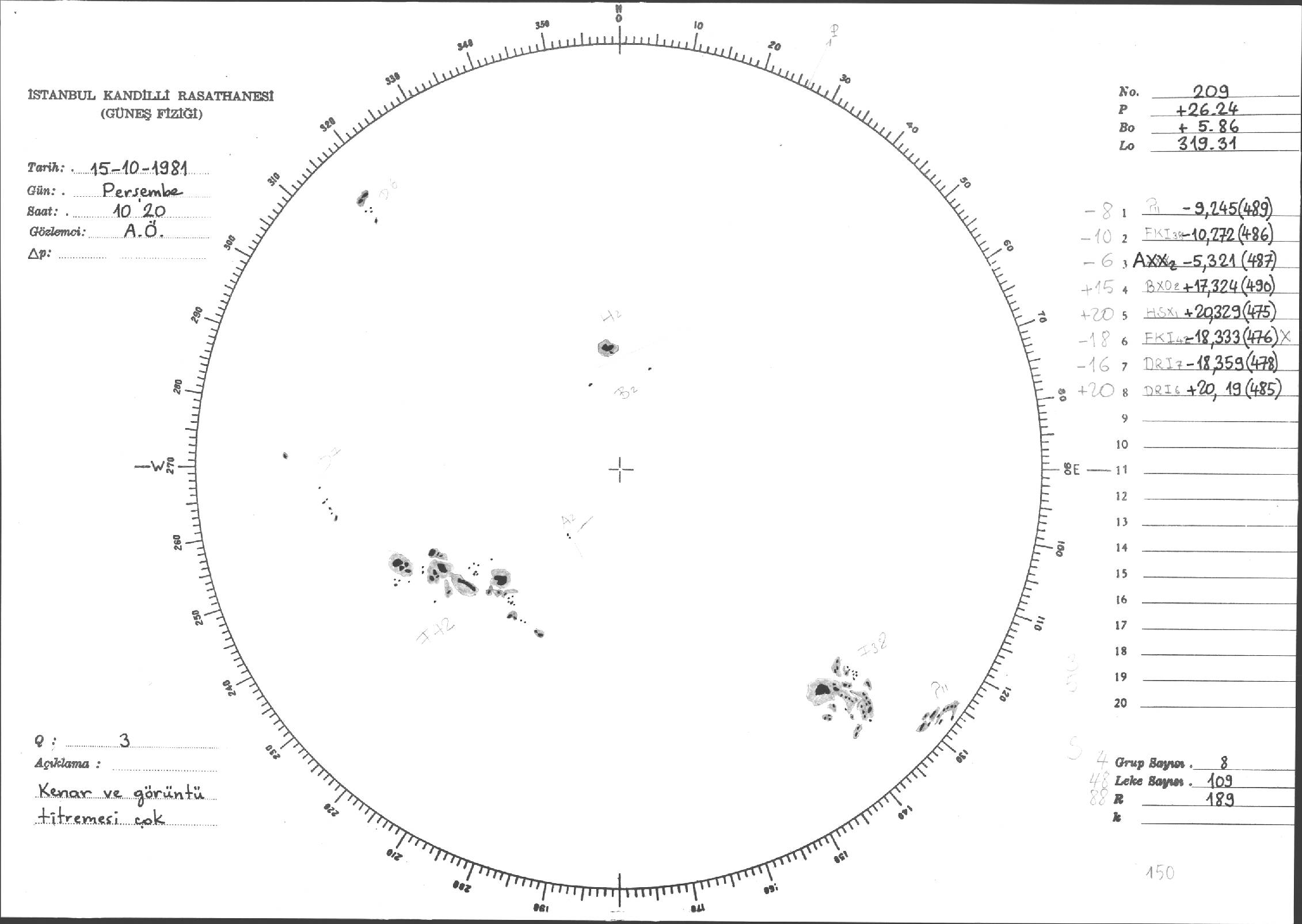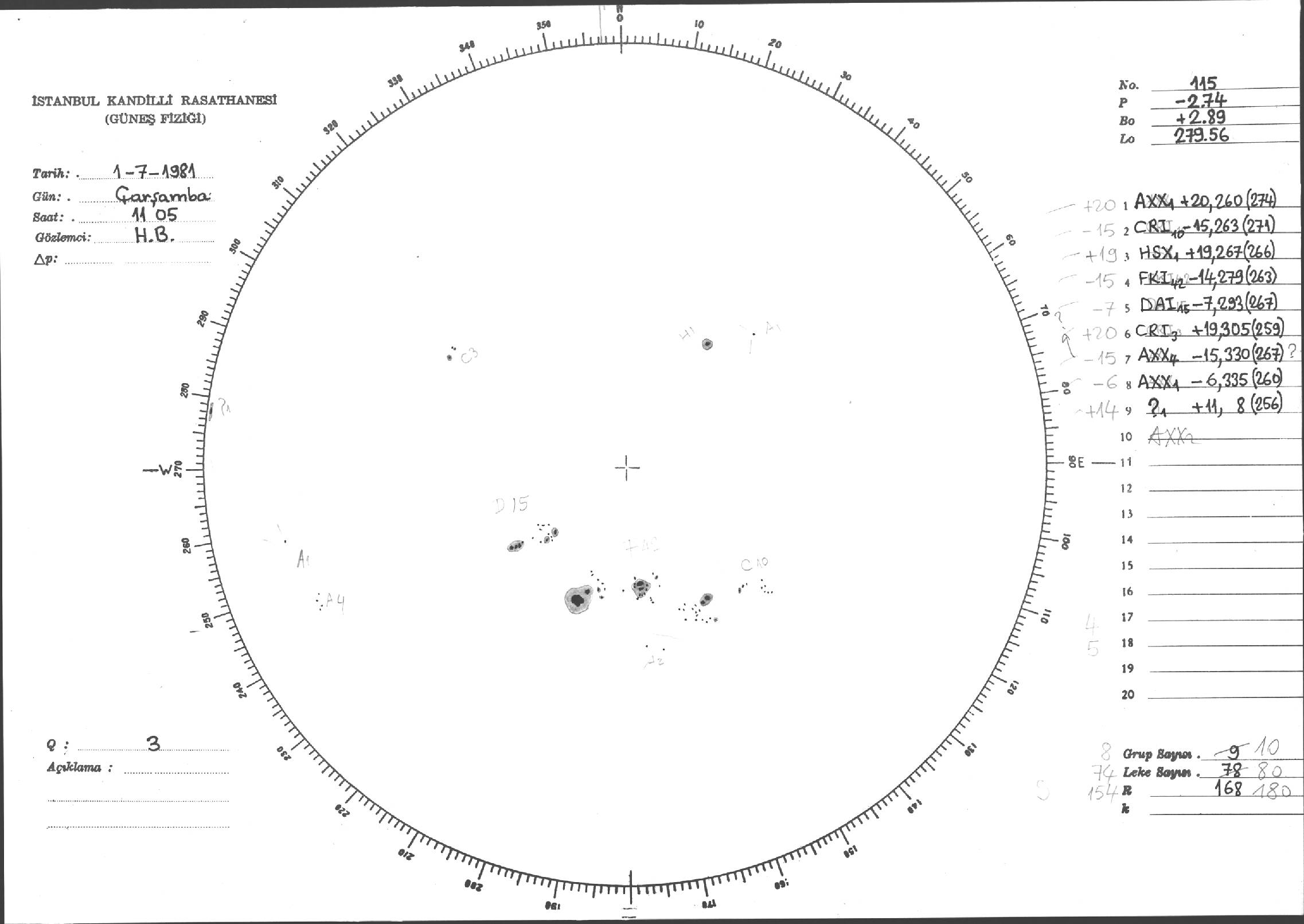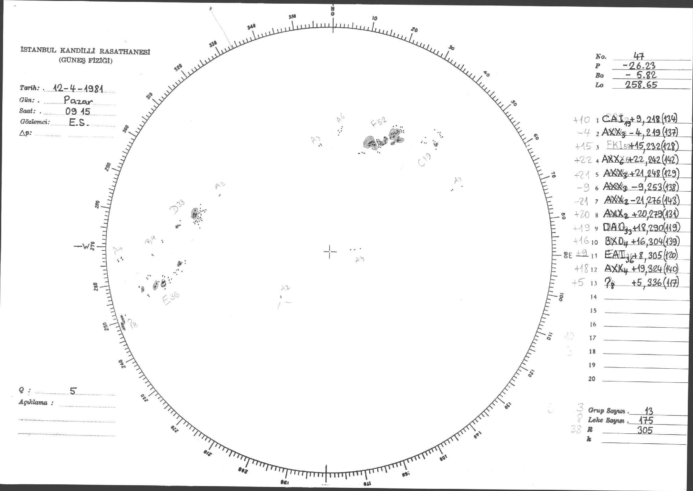 Güneş Lekesi Çizimleri / Kandilli Sunspot Drawings