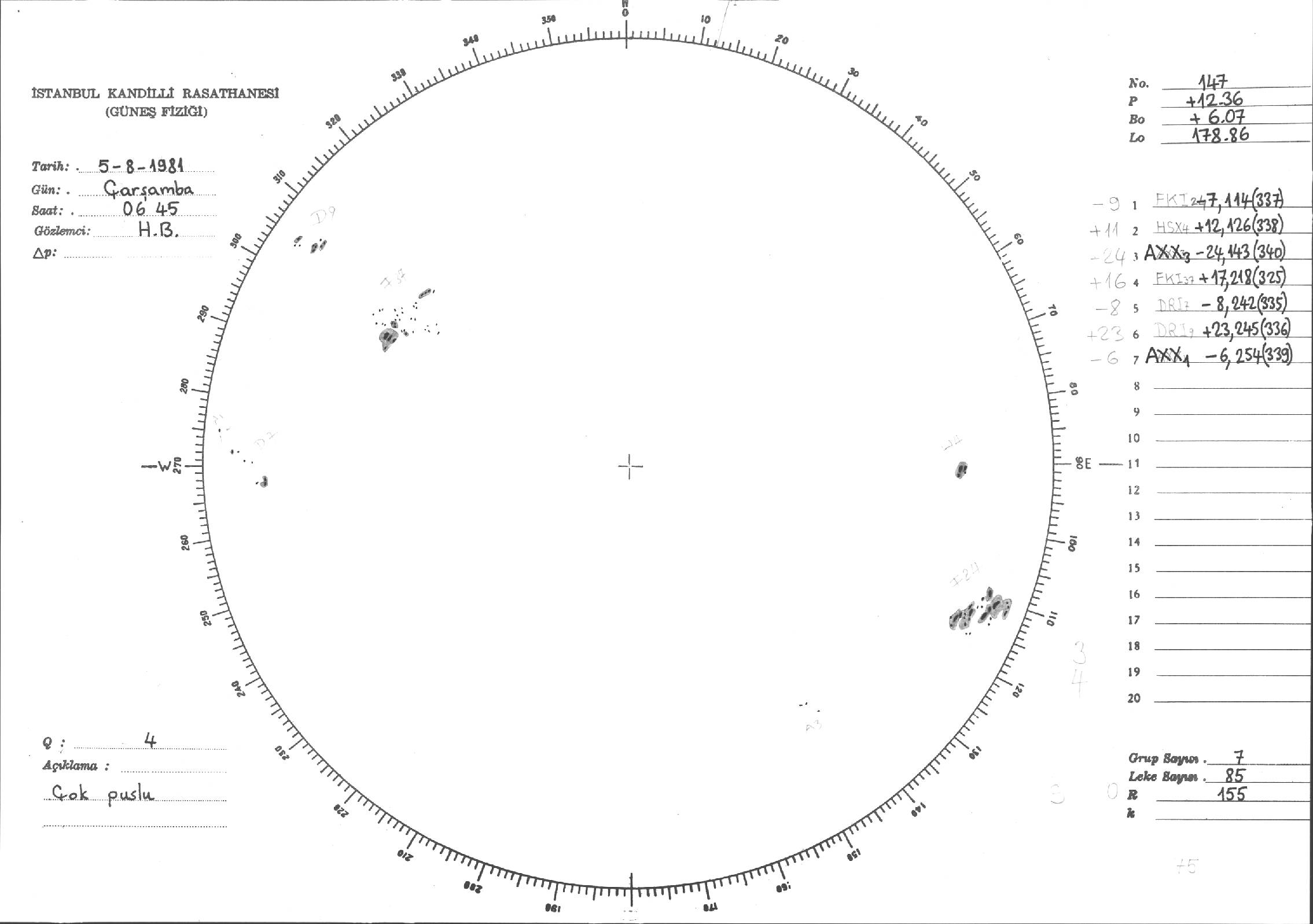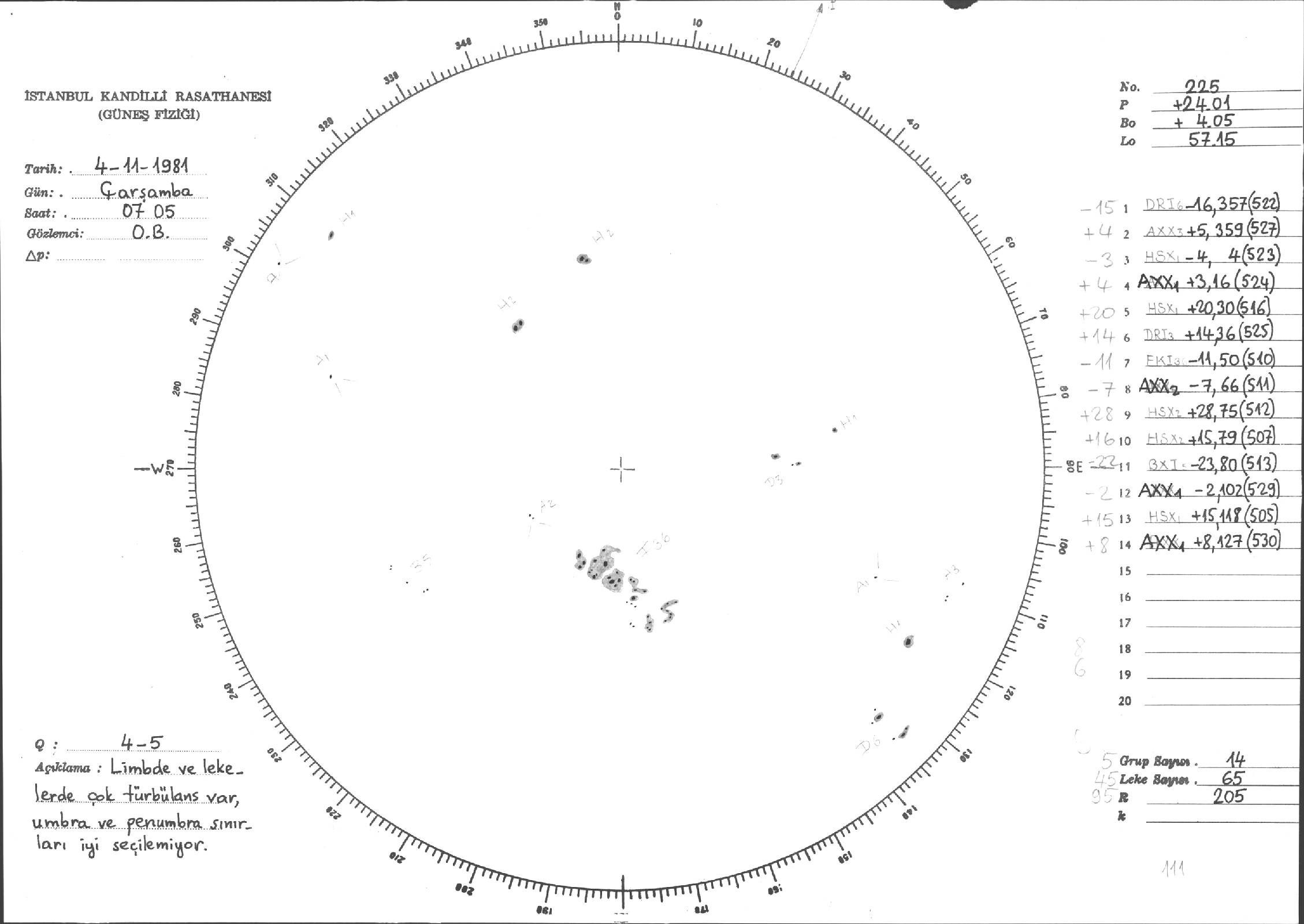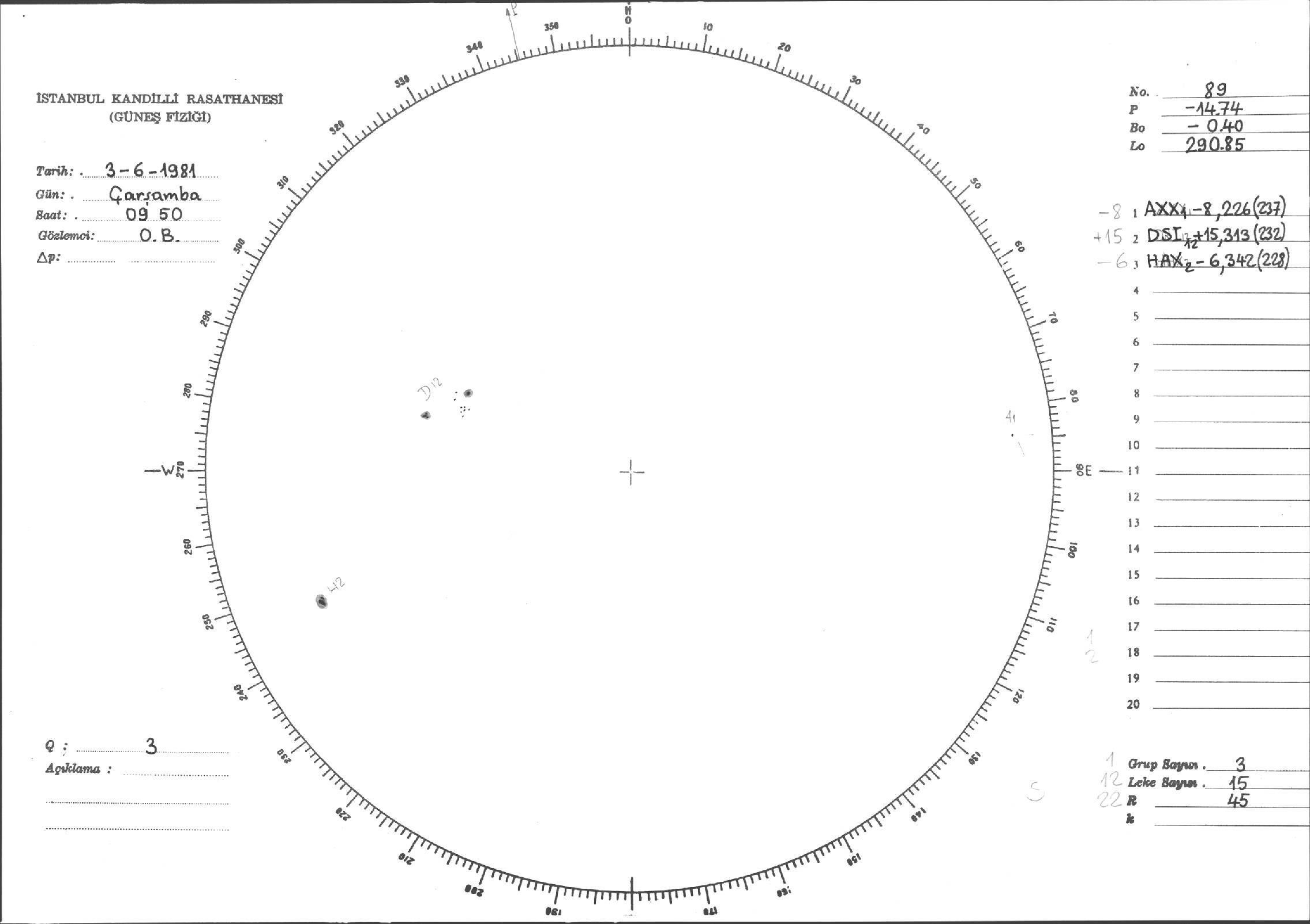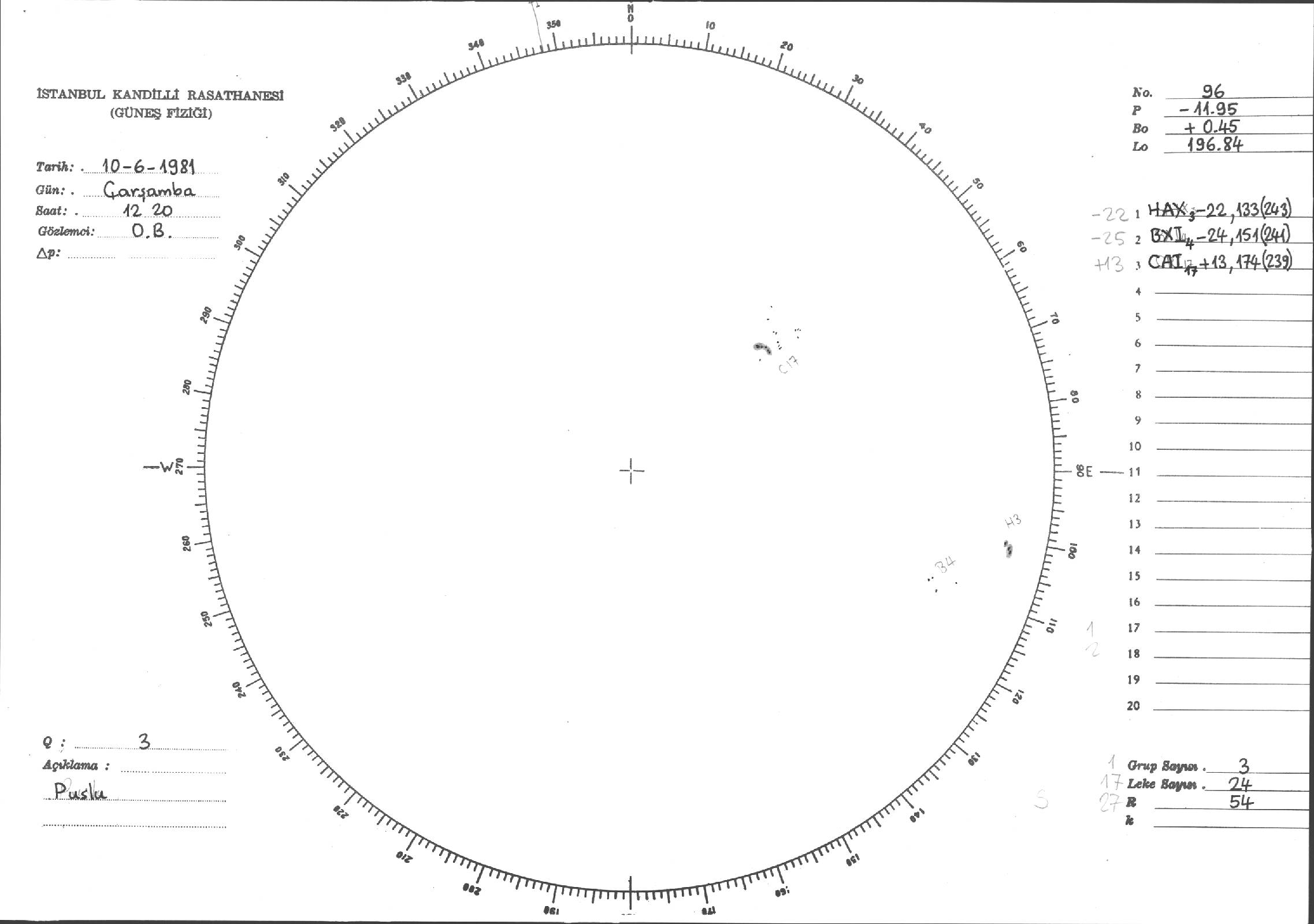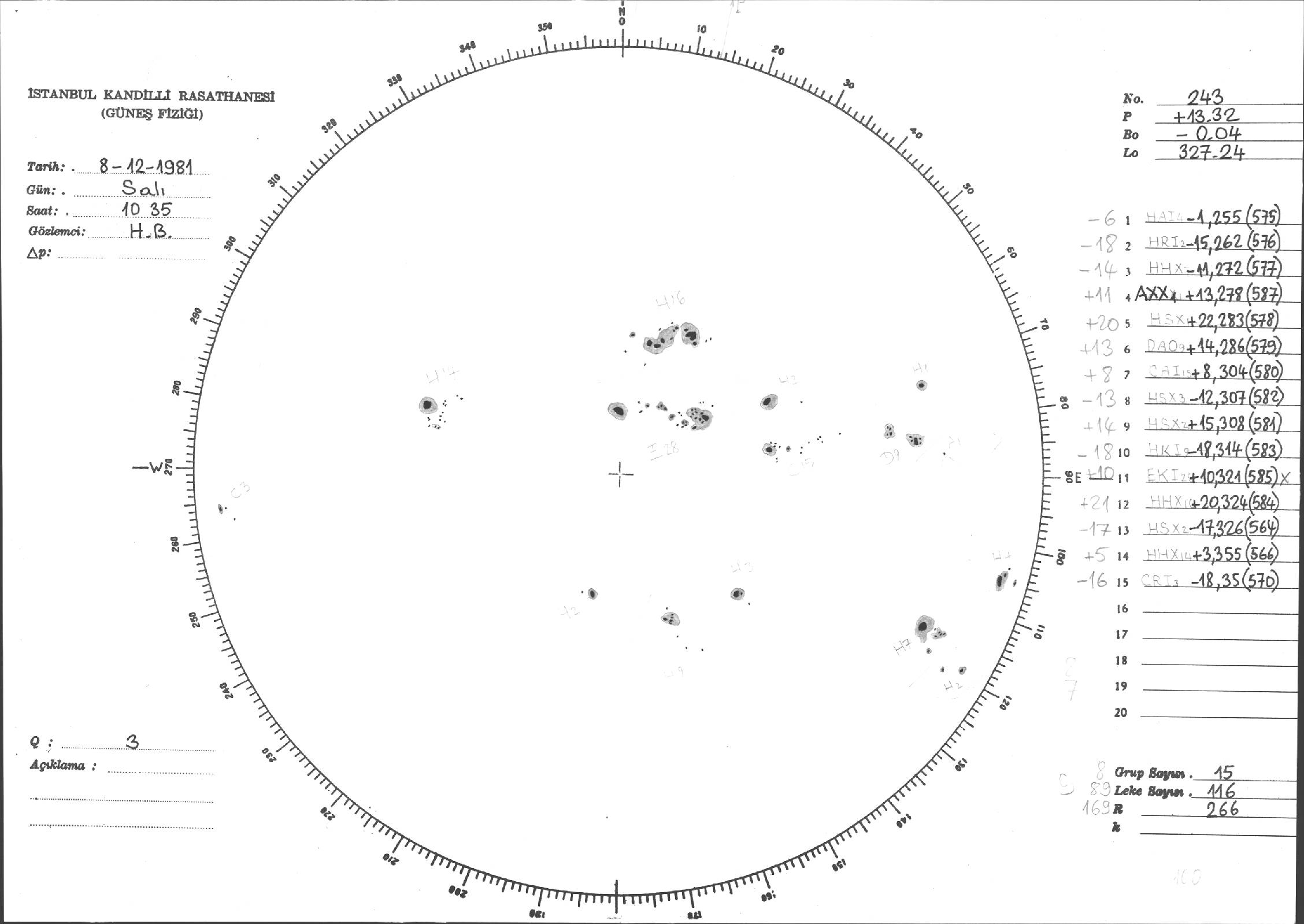 Güneş Lekesi Çizimleri / Kandilli Sunspot Drawings