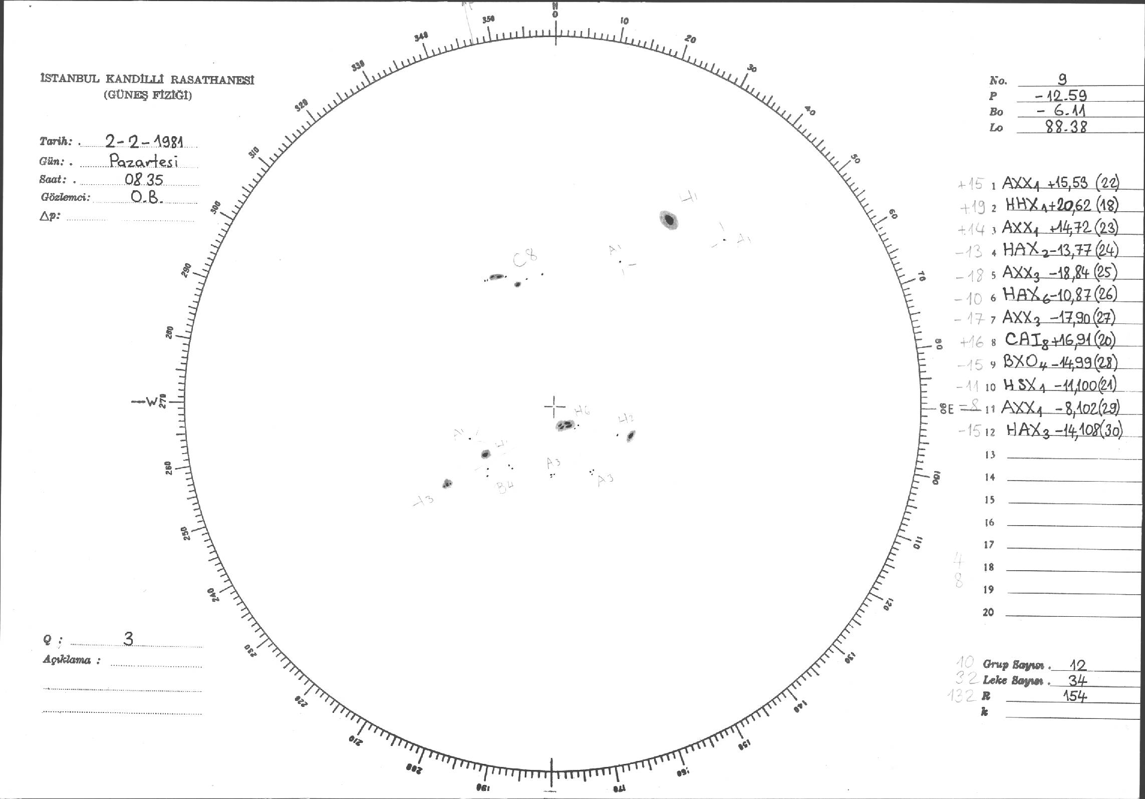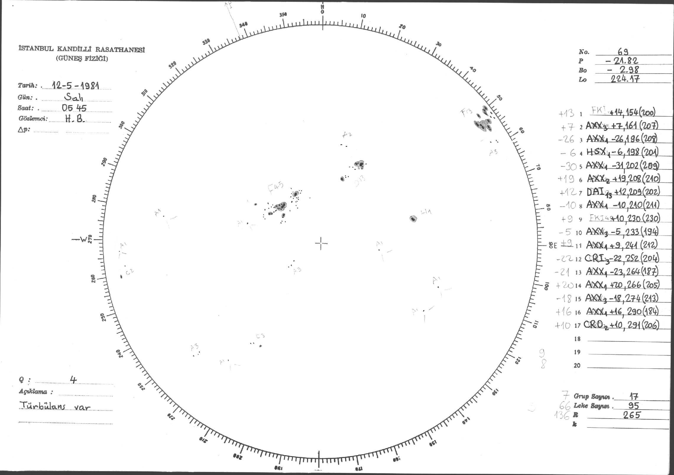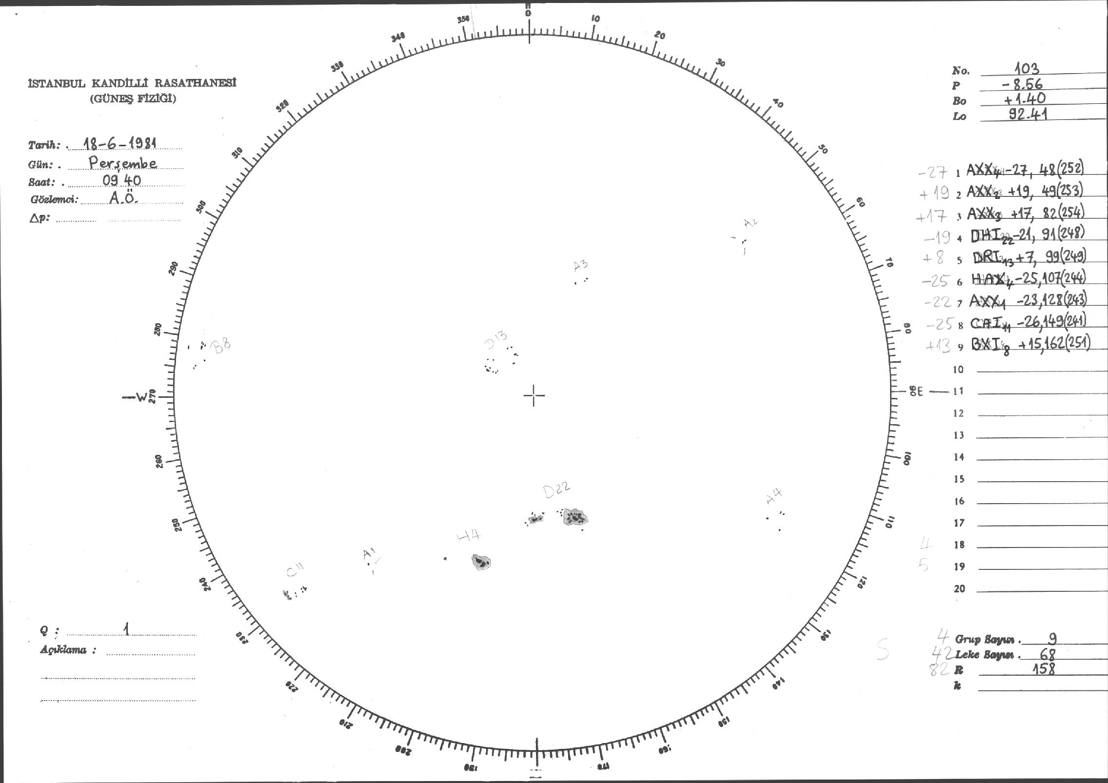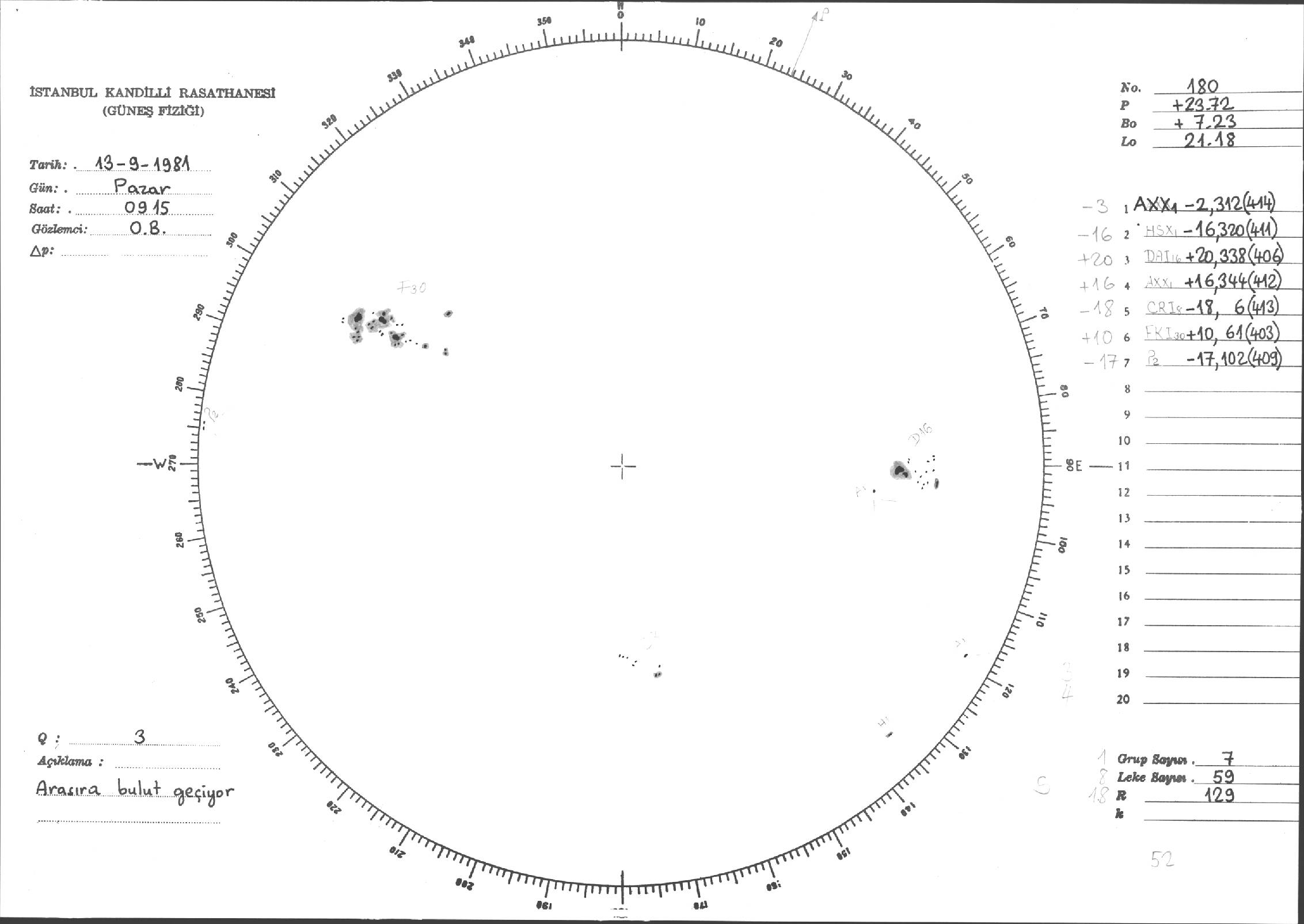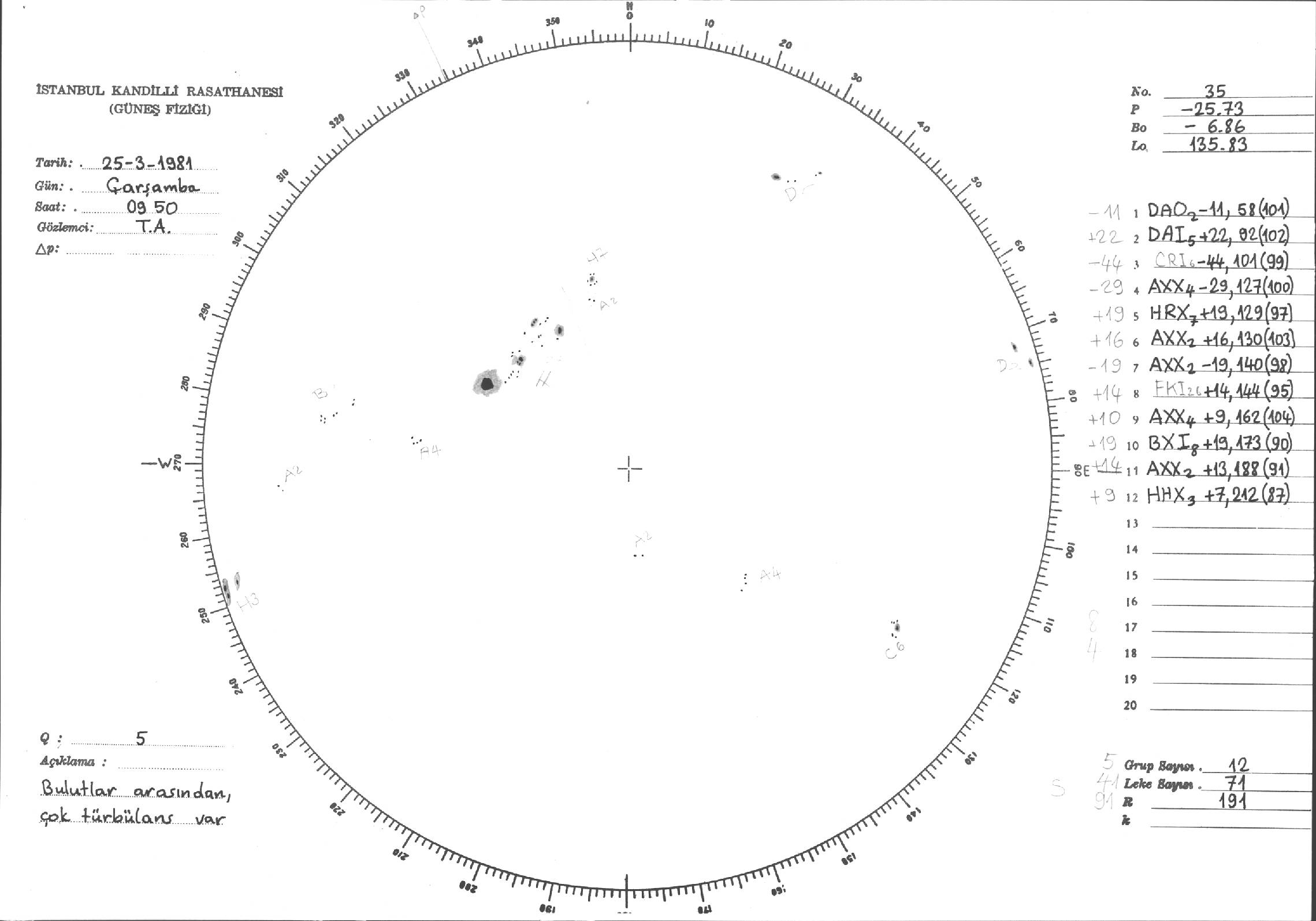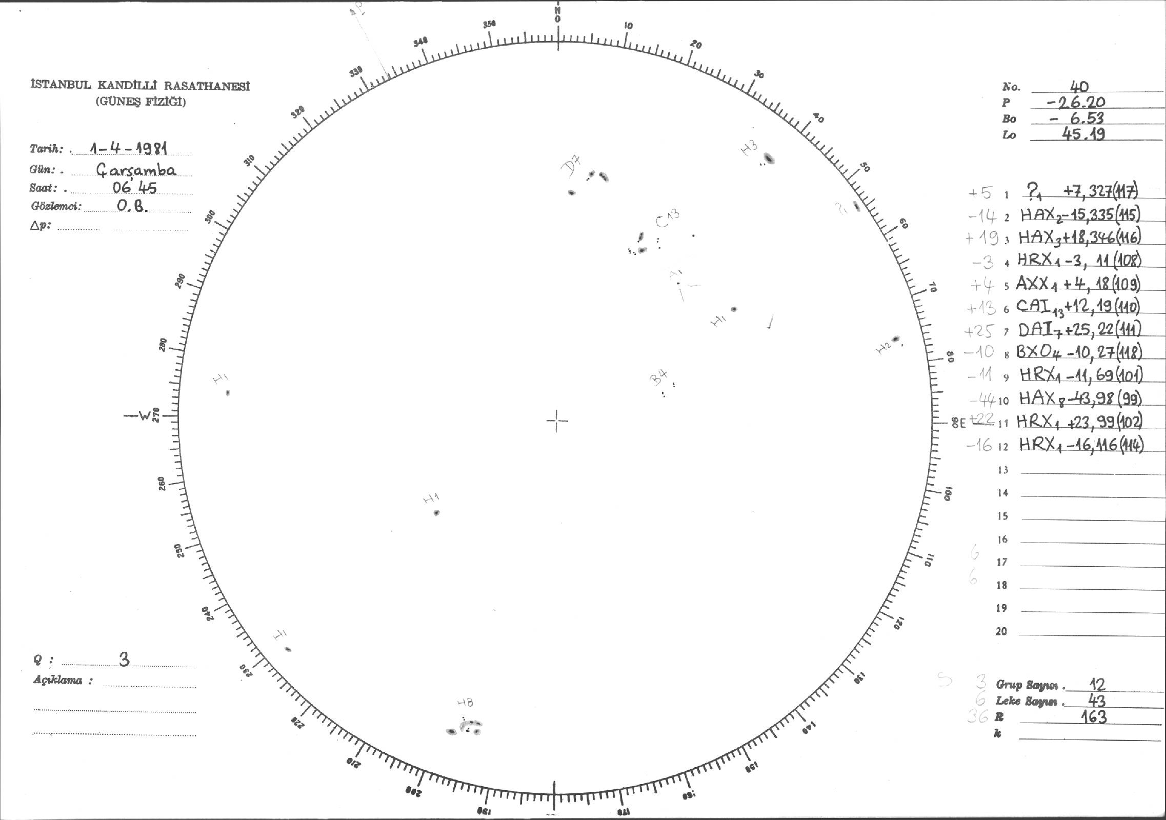 Güneş Lekesi Çizimleri / Kandilli Sunspot Drawings