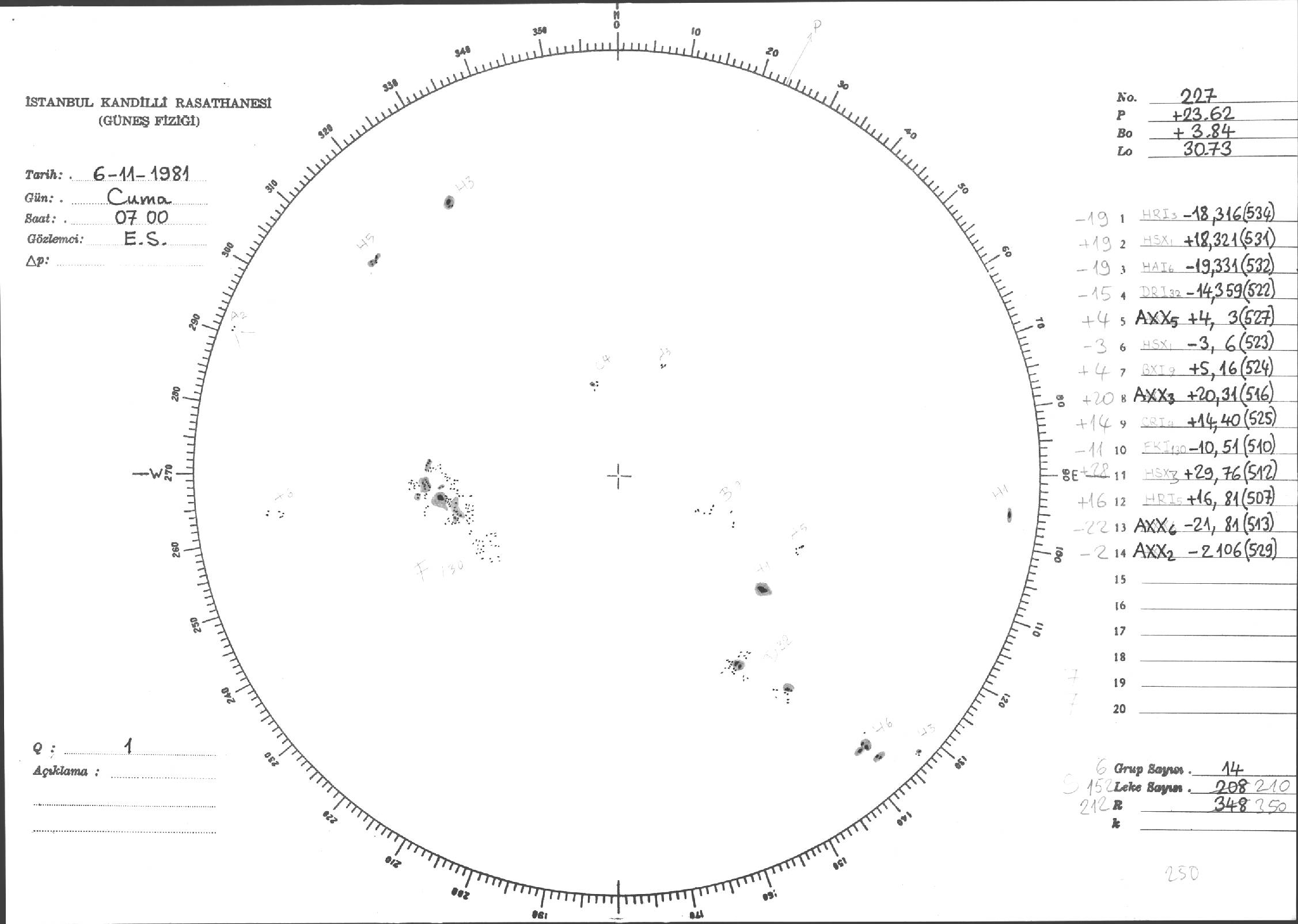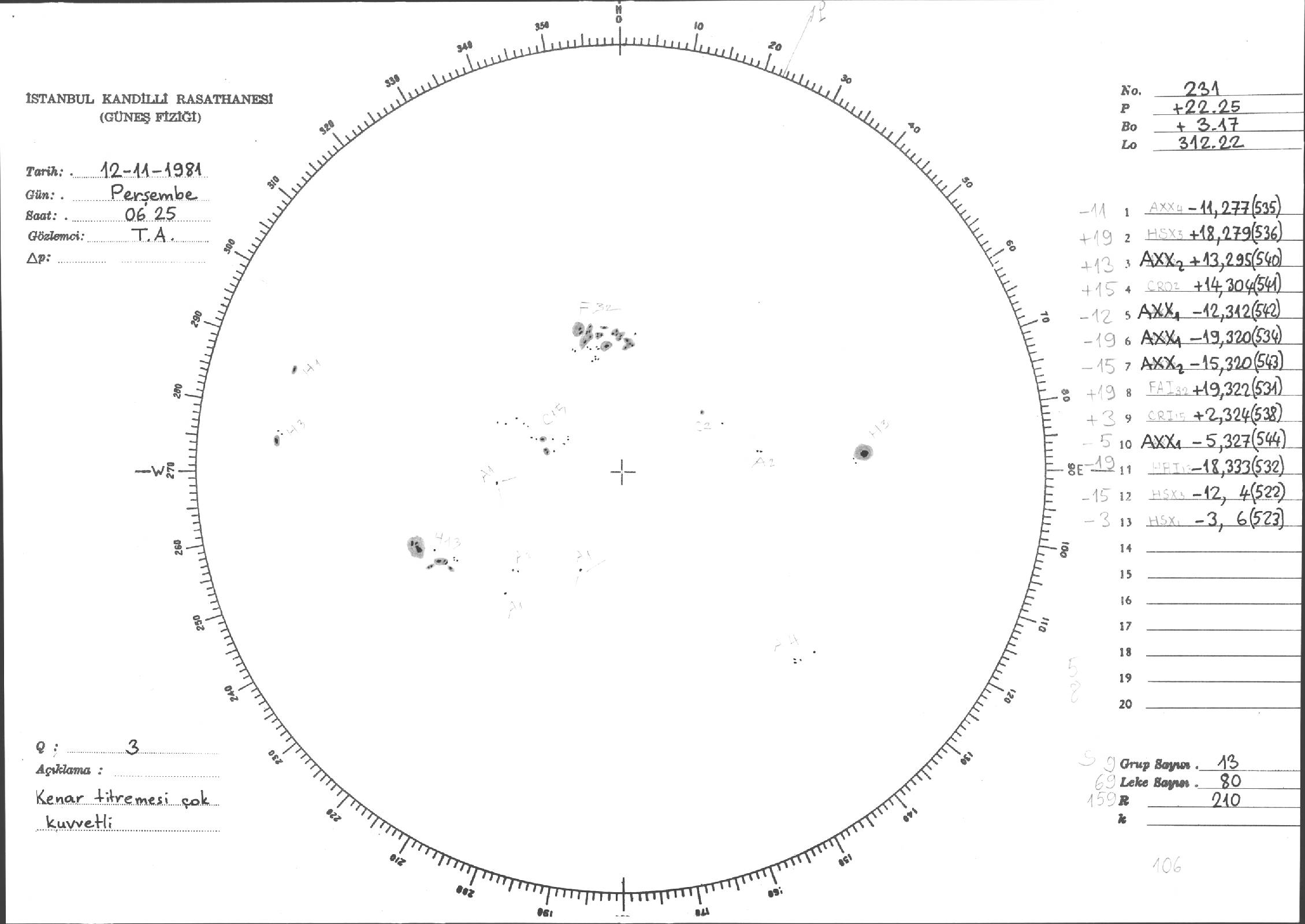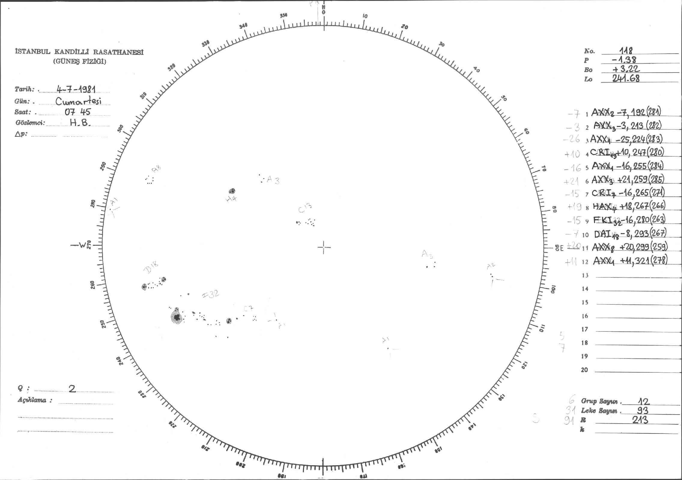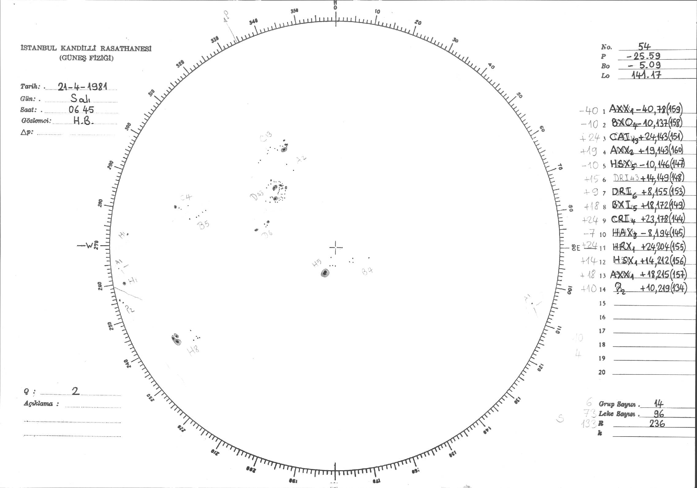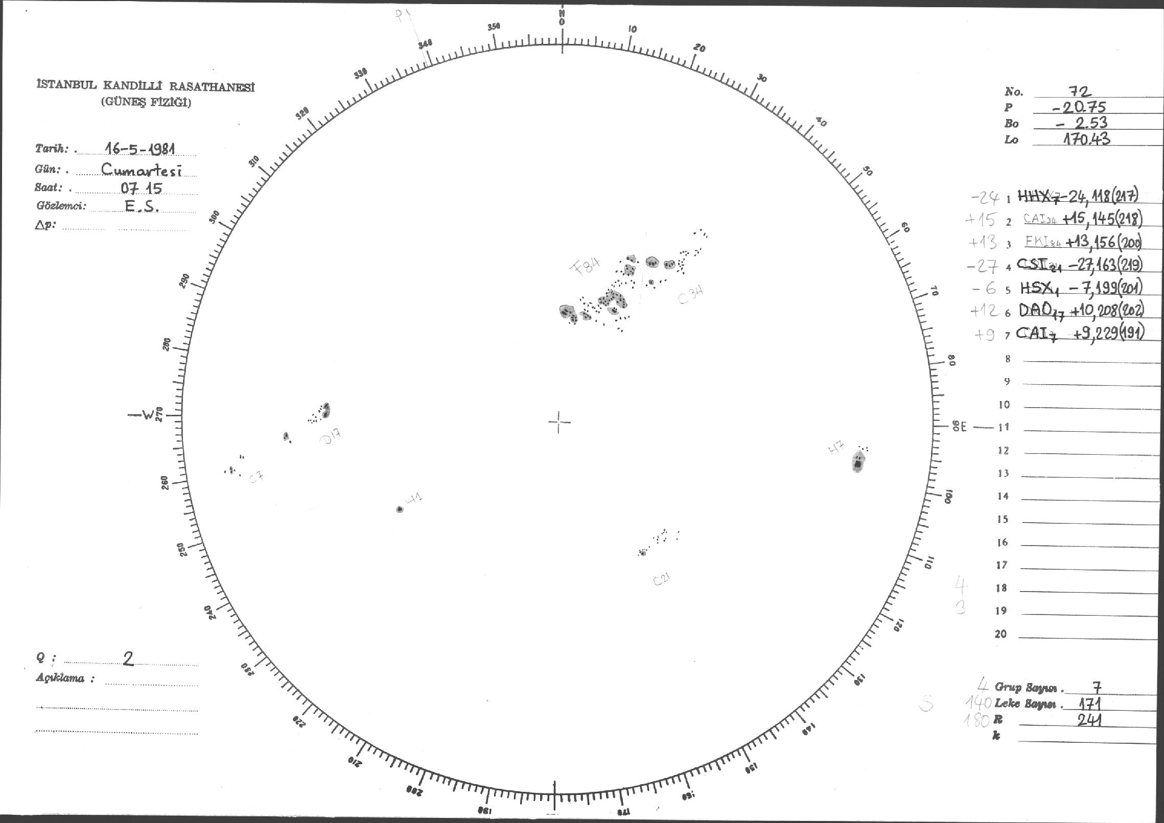 Güneş Lekesi Çizimleri / Kandilli Sunspot Drawings