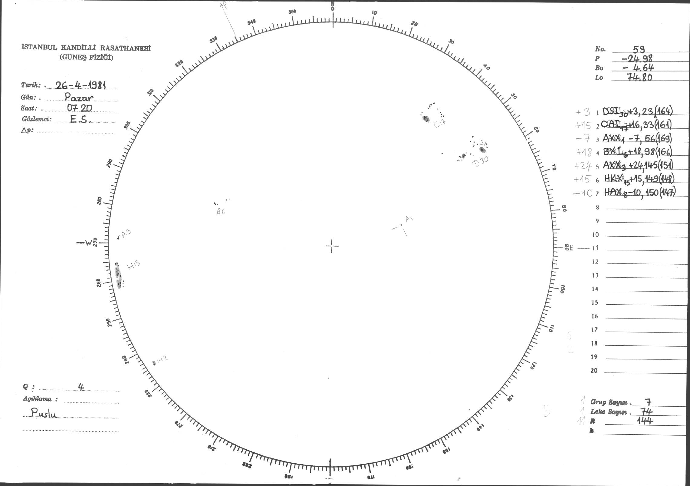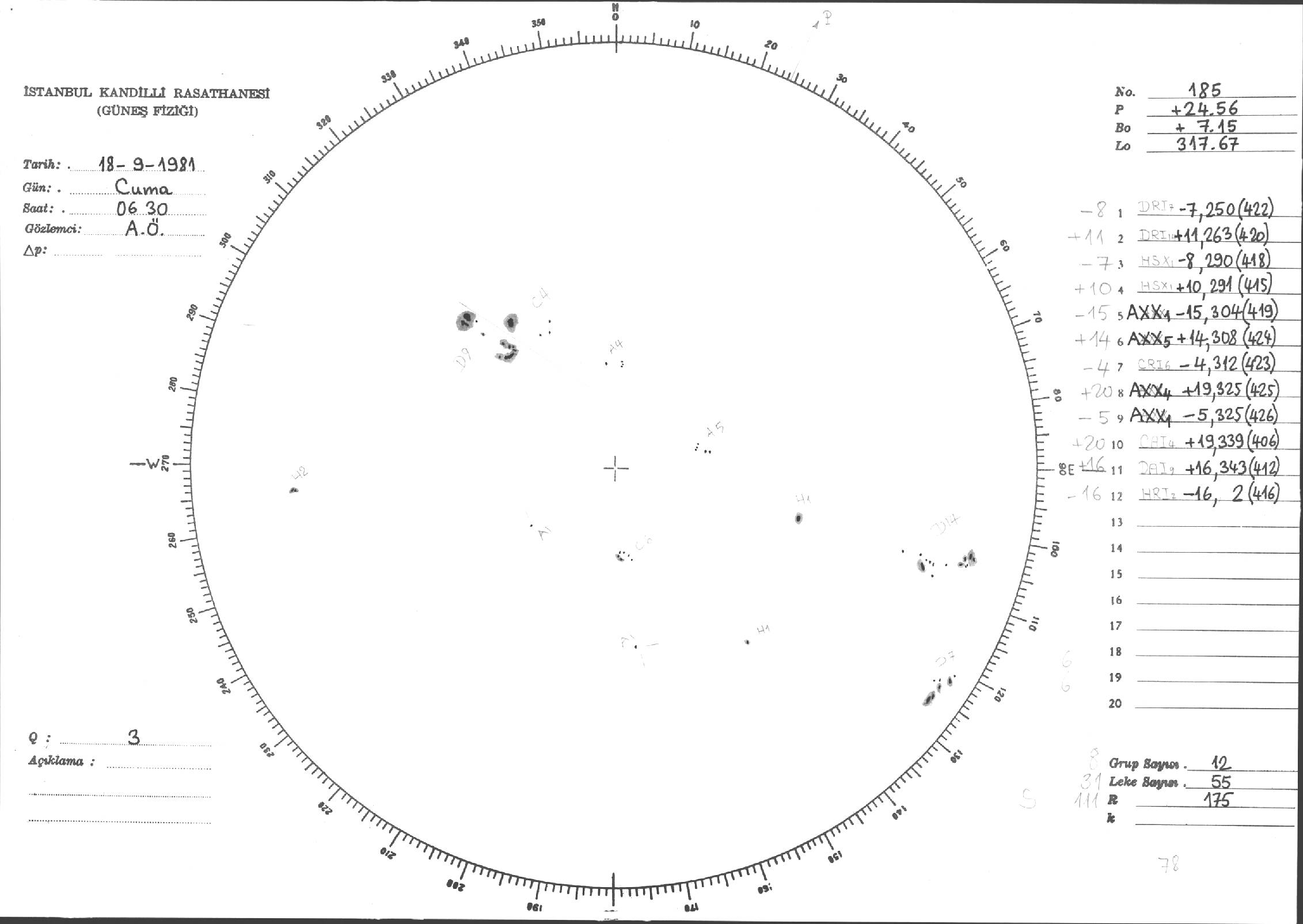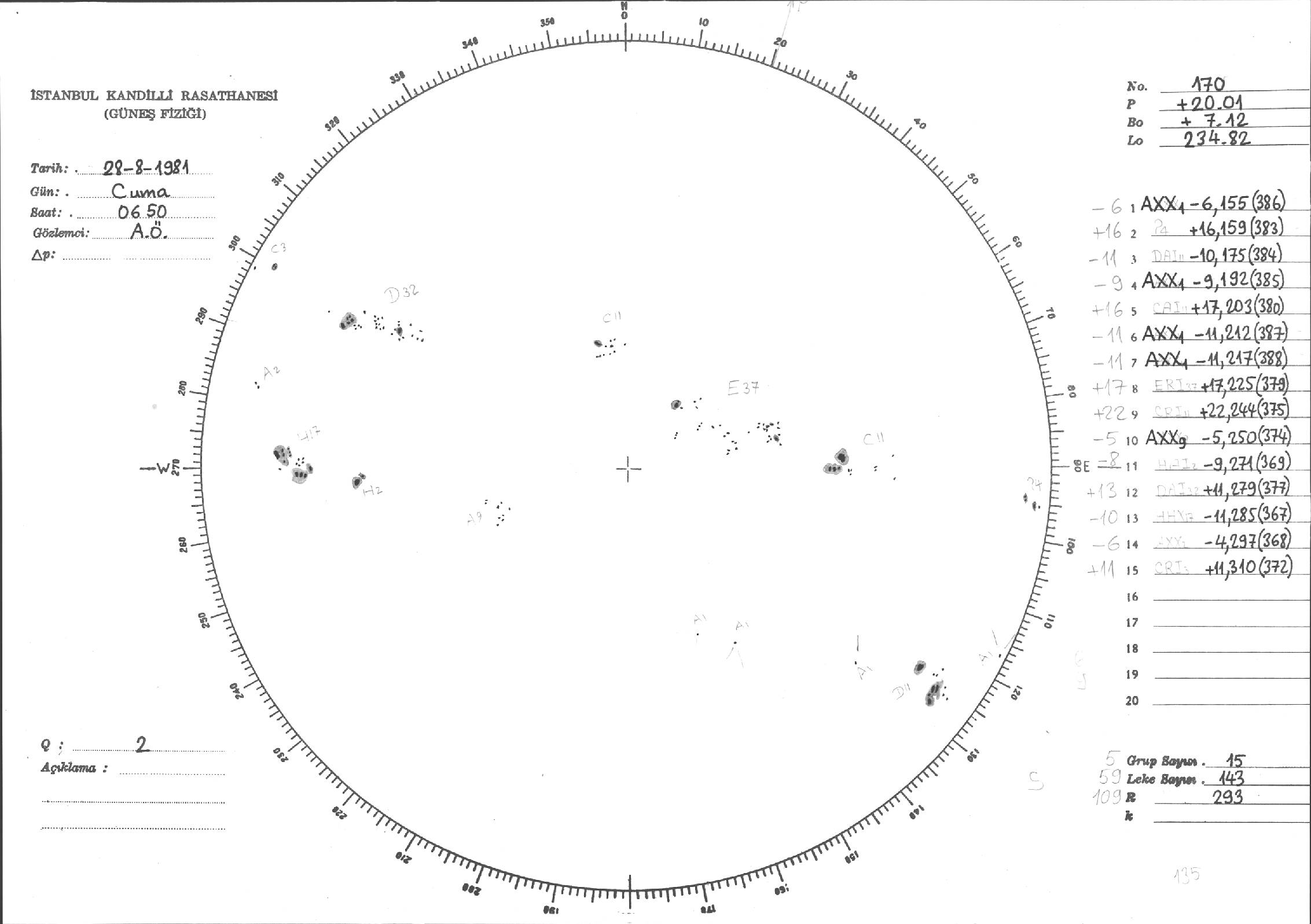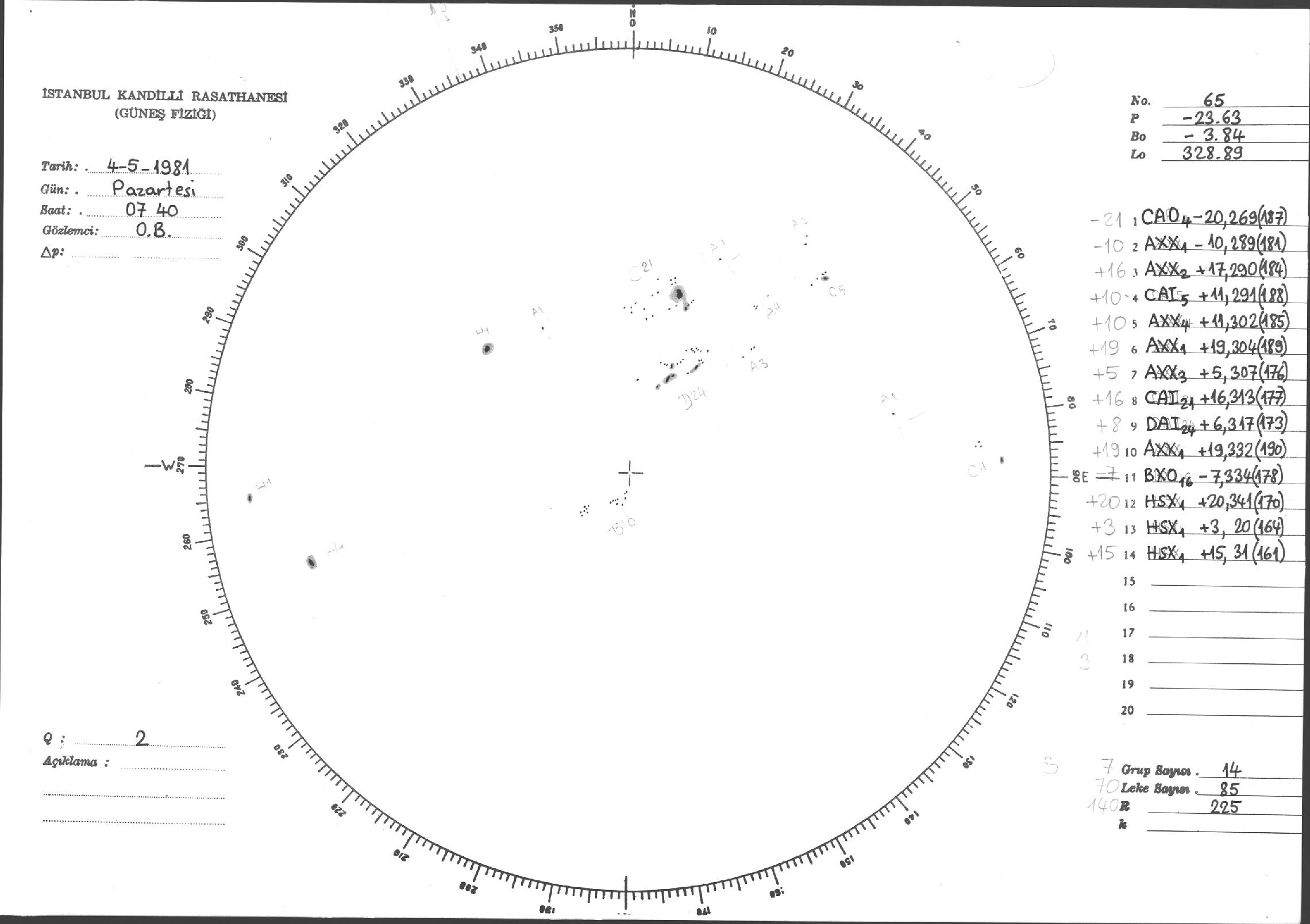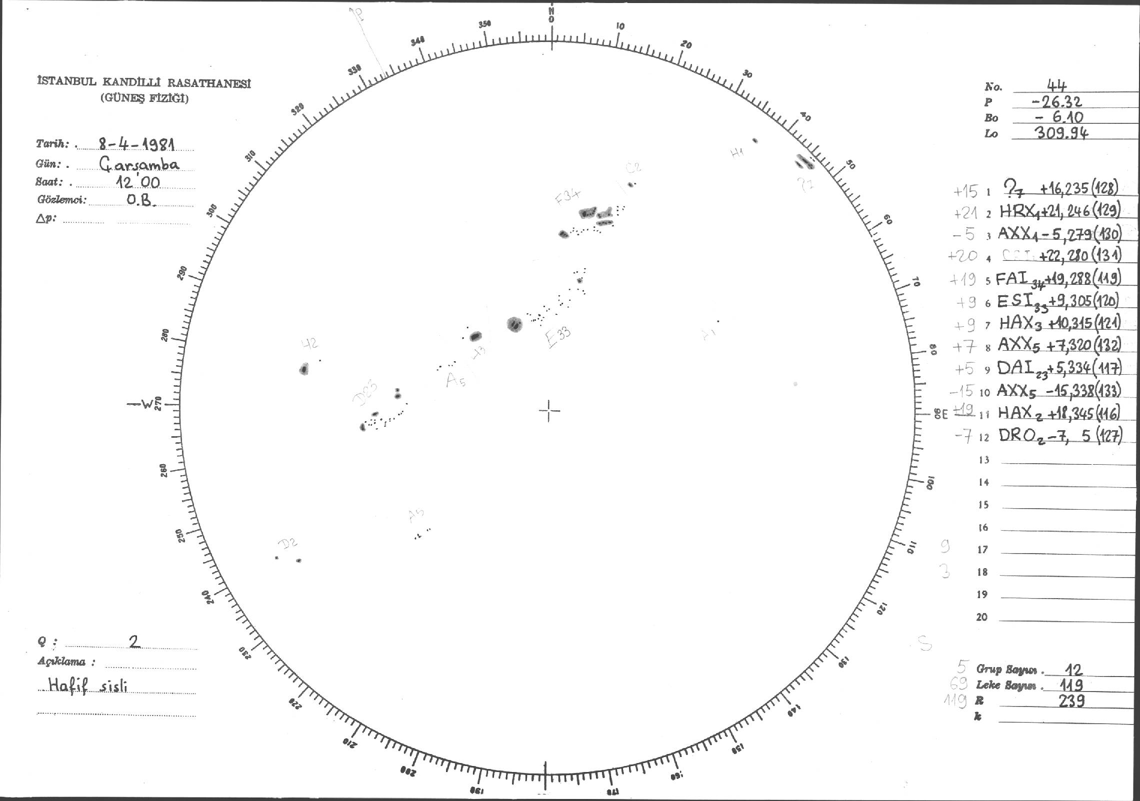 Güneş Lekesi Çizimleri / Kandilli Sunspot Drawings