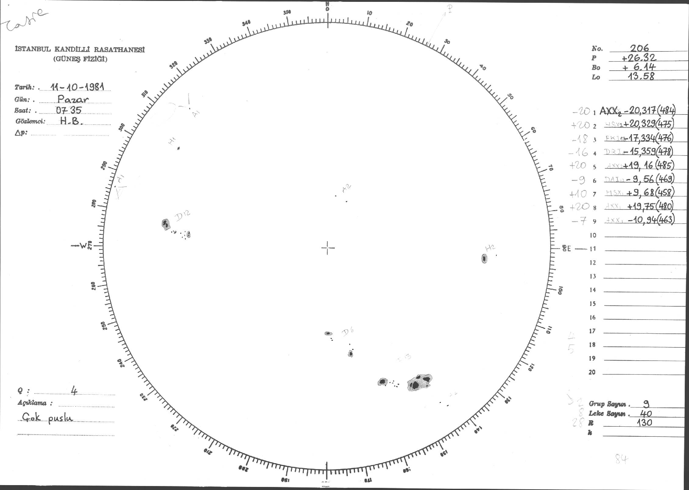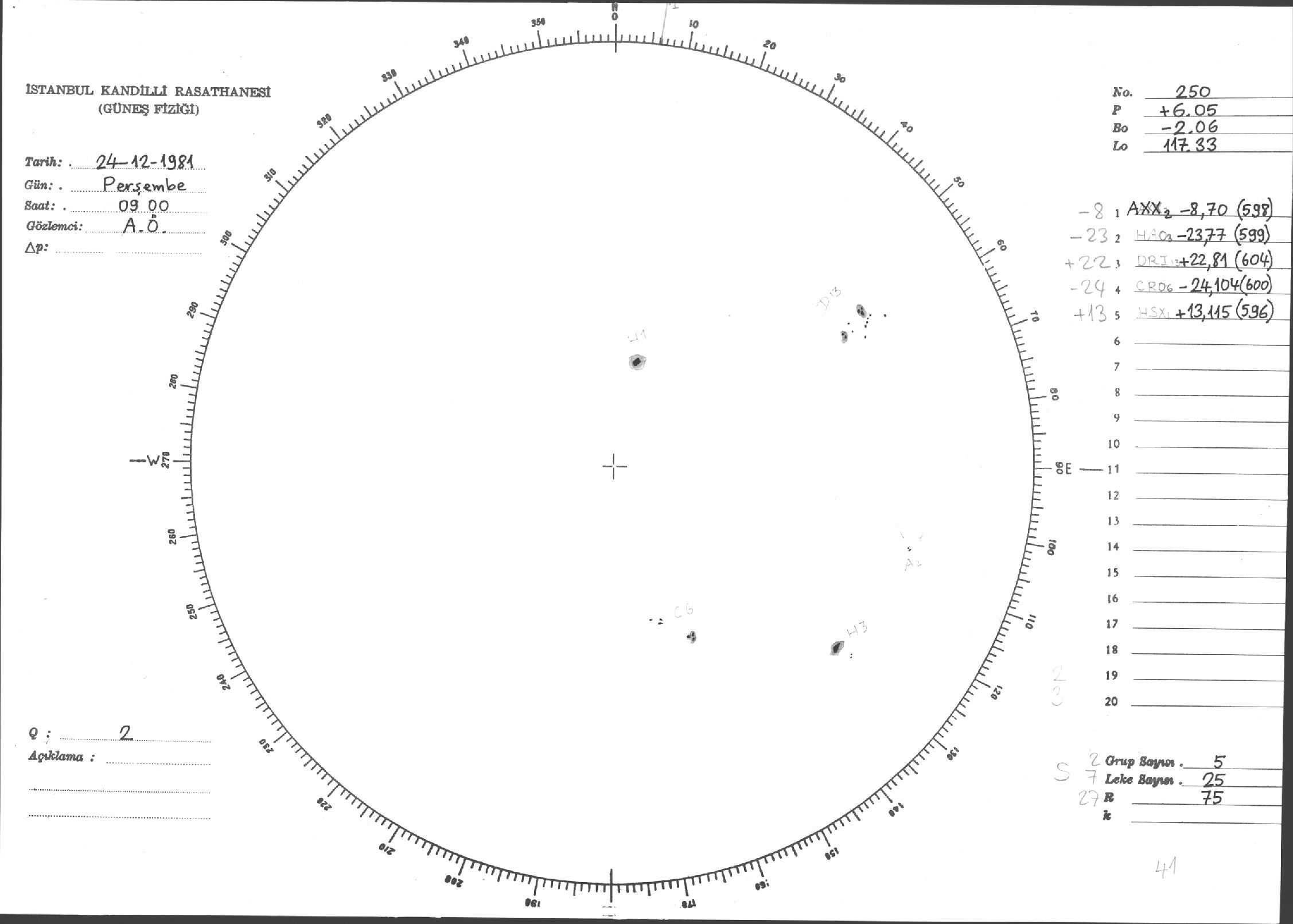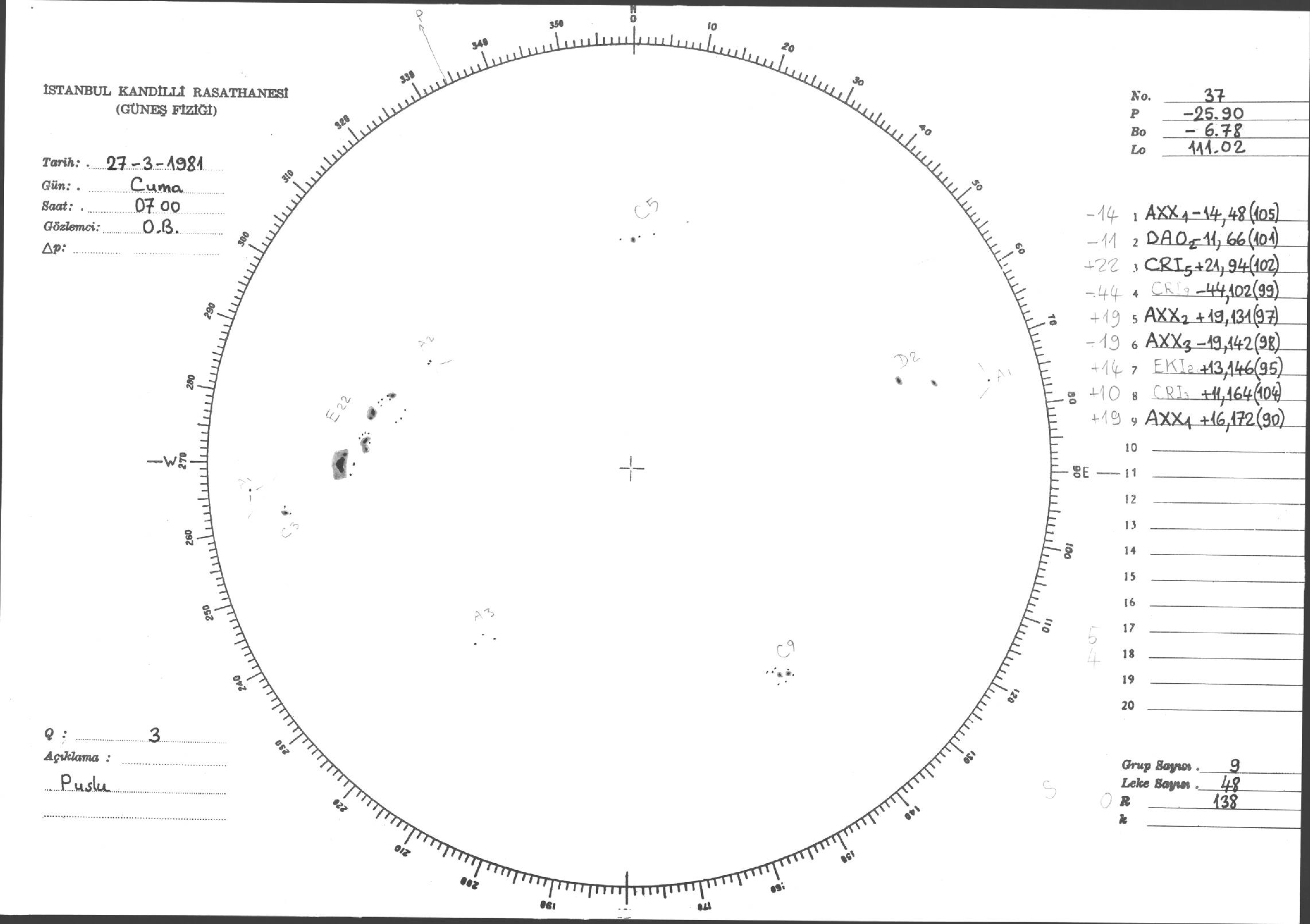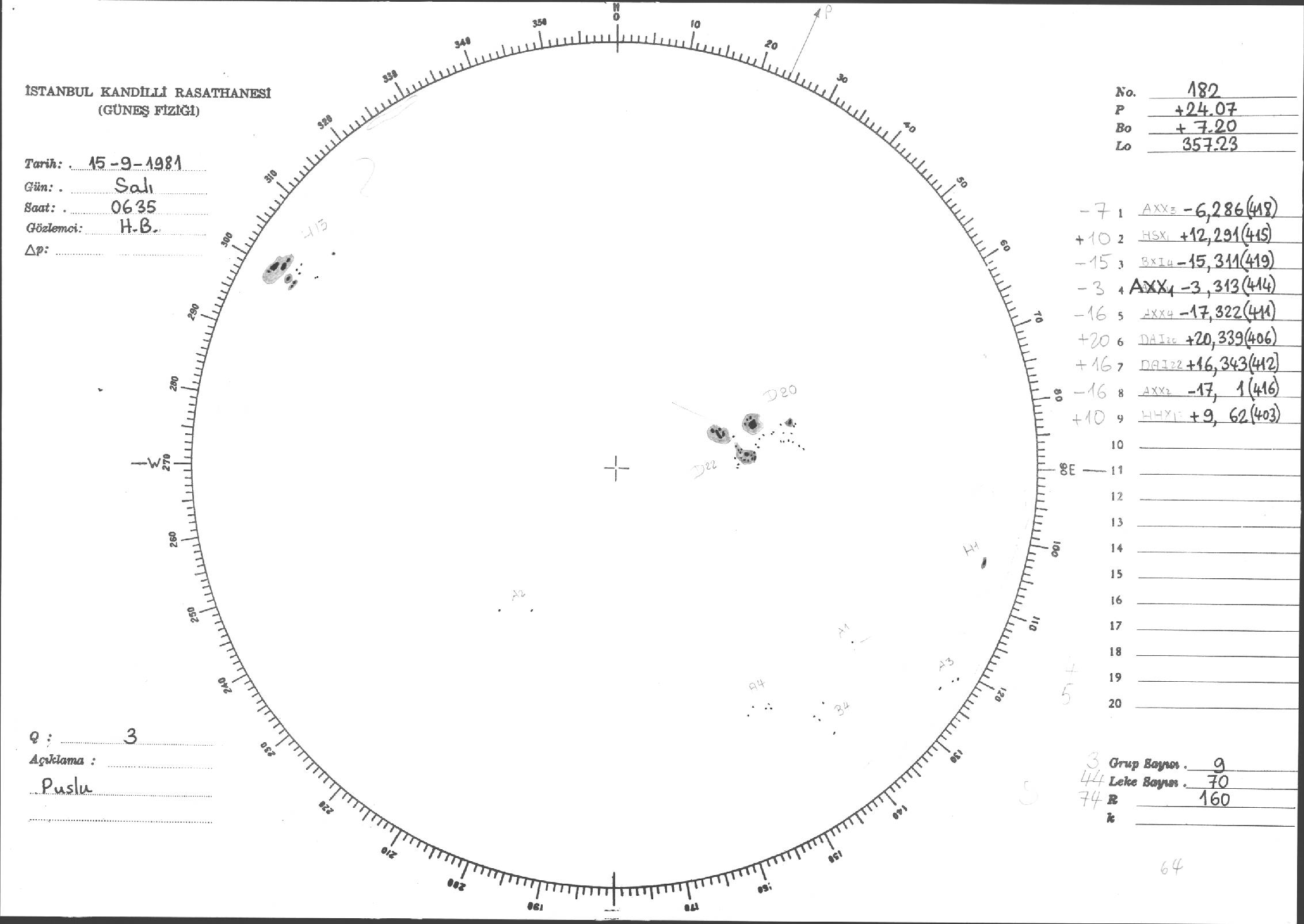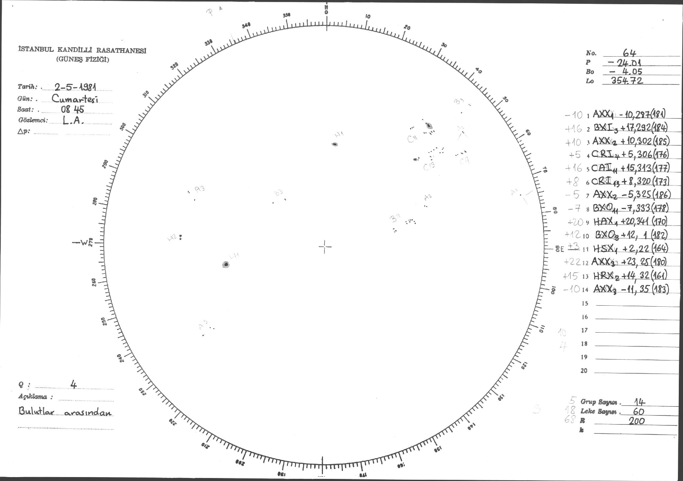 Güneş Lekesi Çizimleri / Kandilli Sunspot Drawings