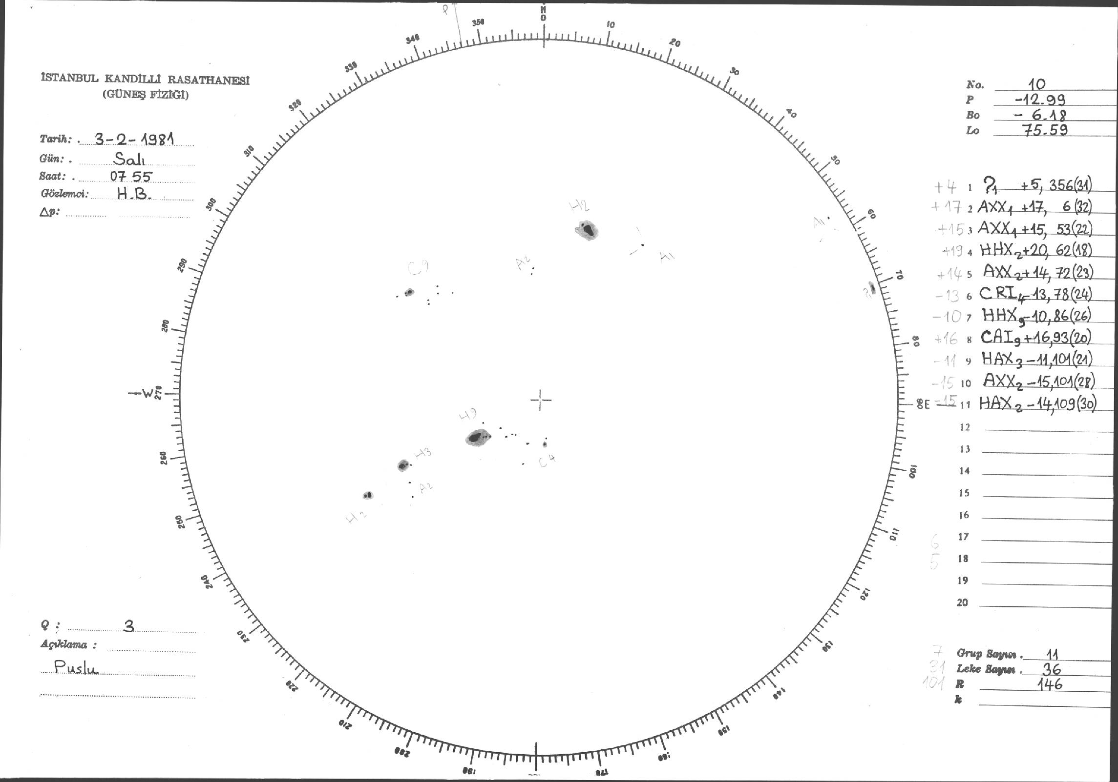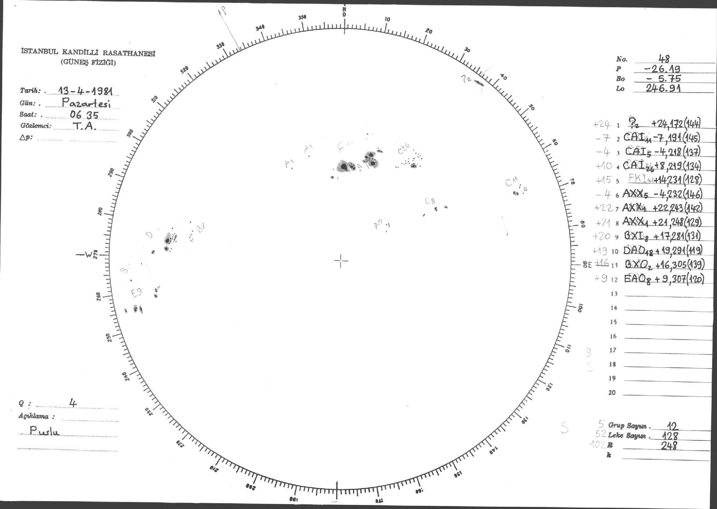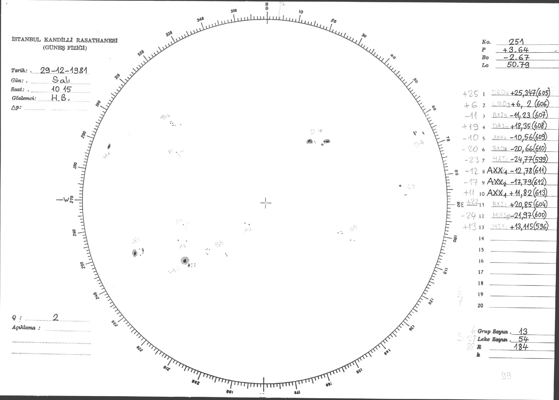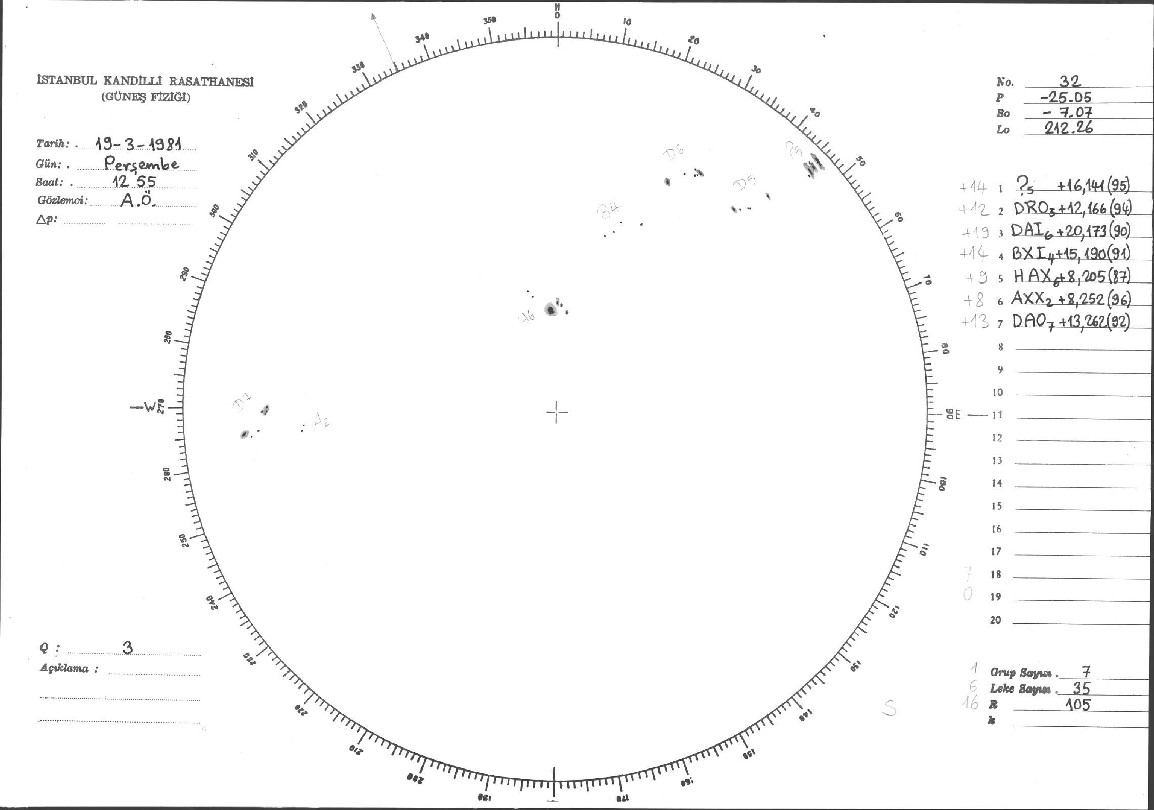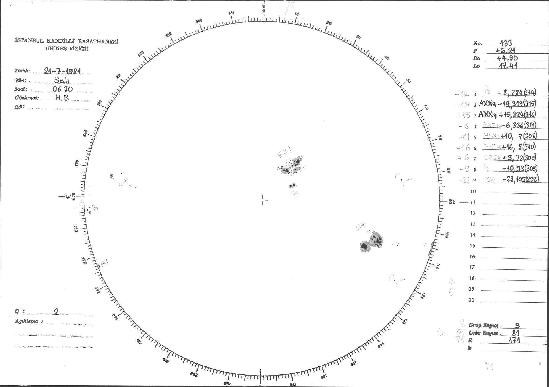 Güneş Lekesi Çizimleri / Kandilli Sunspot Drawings
