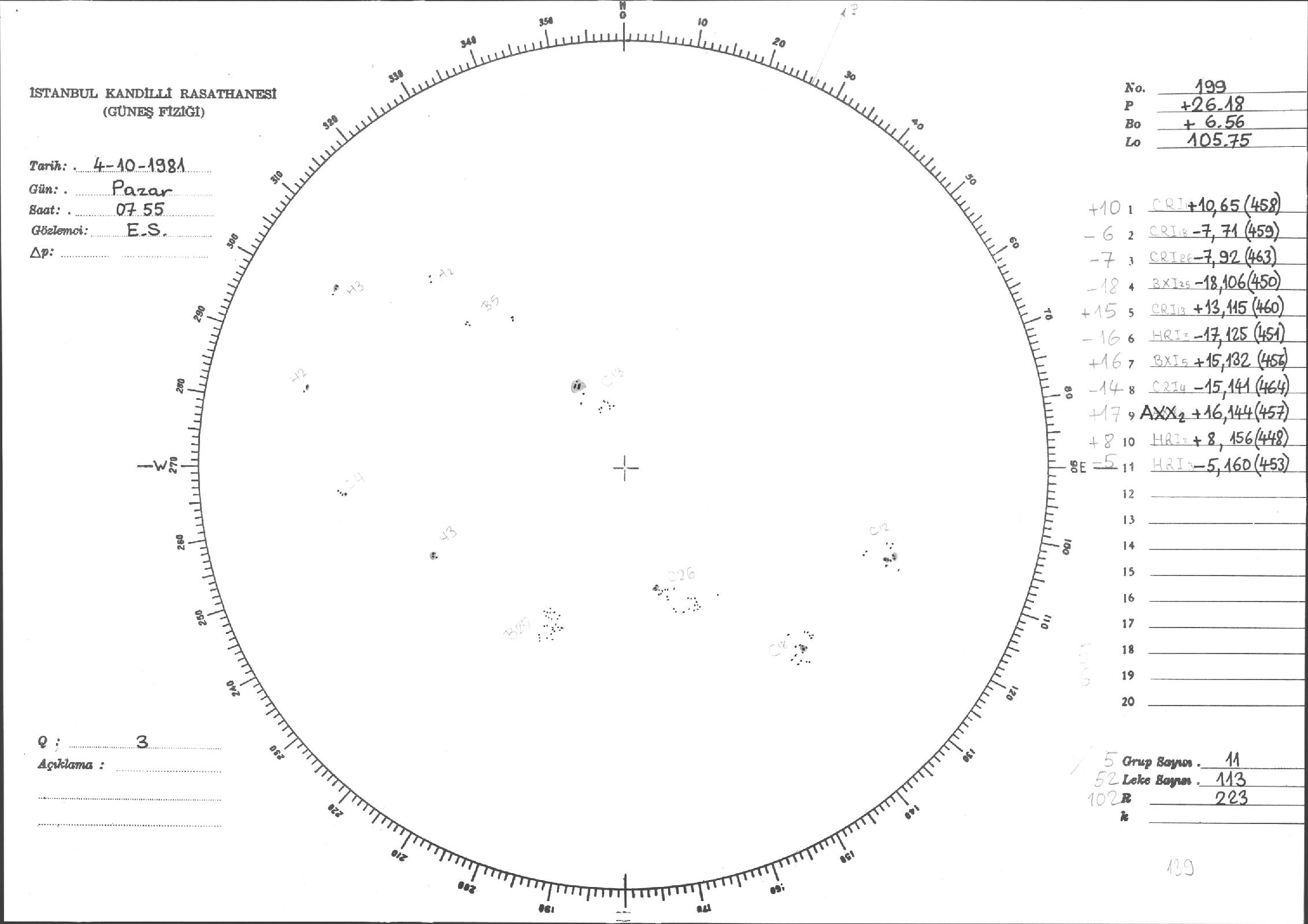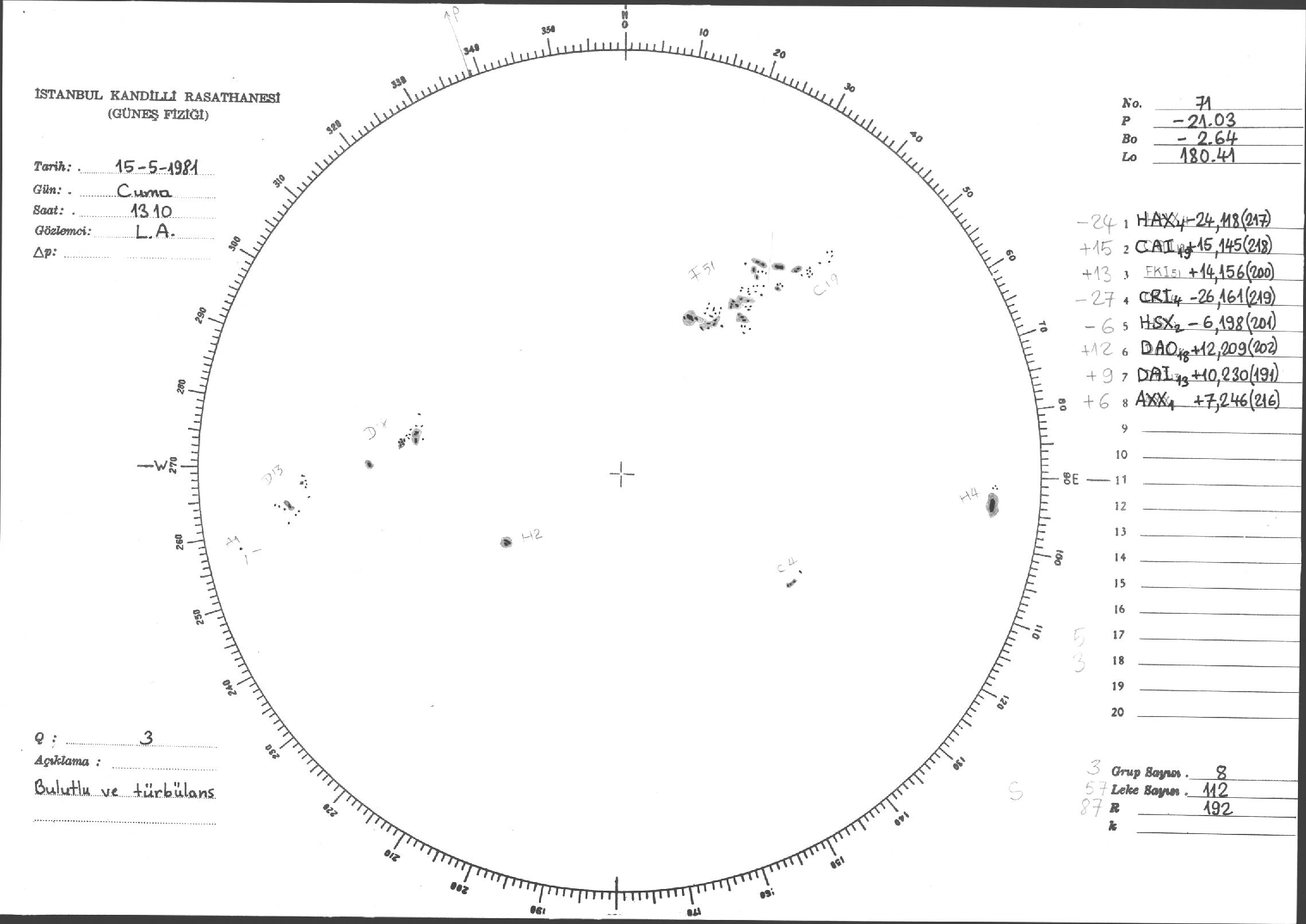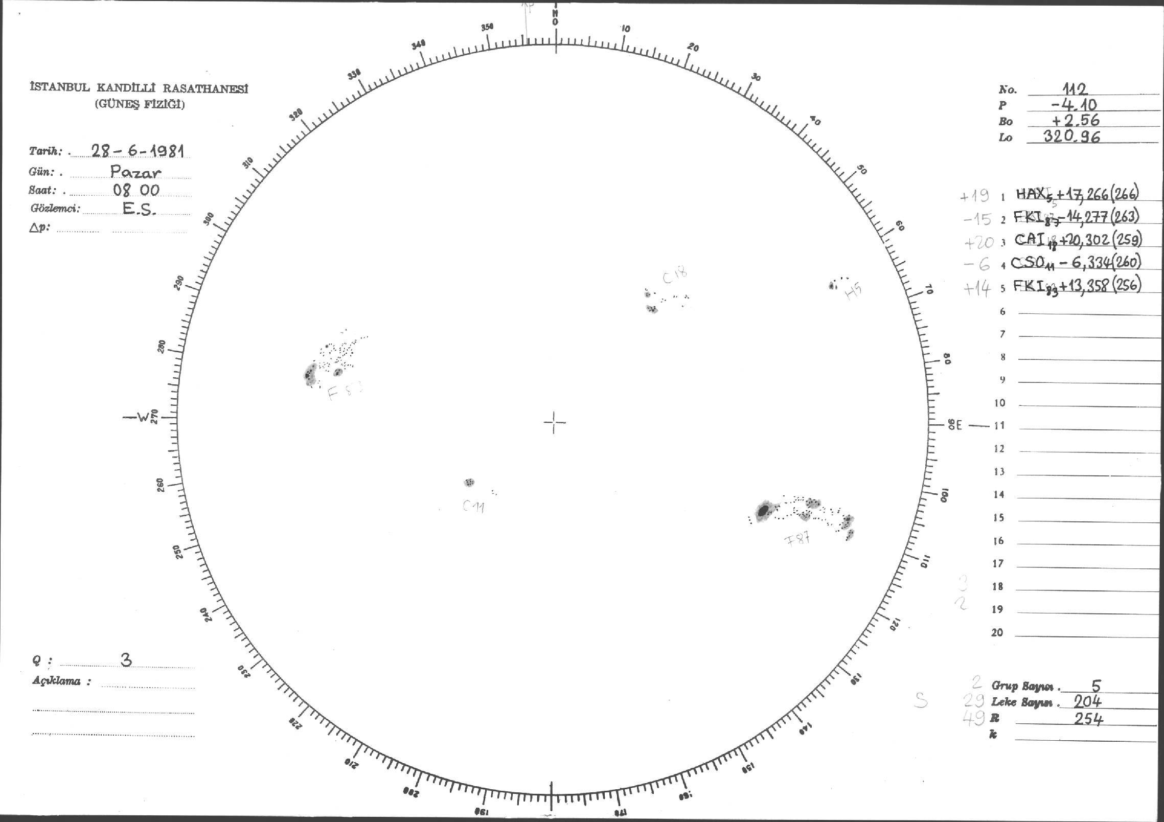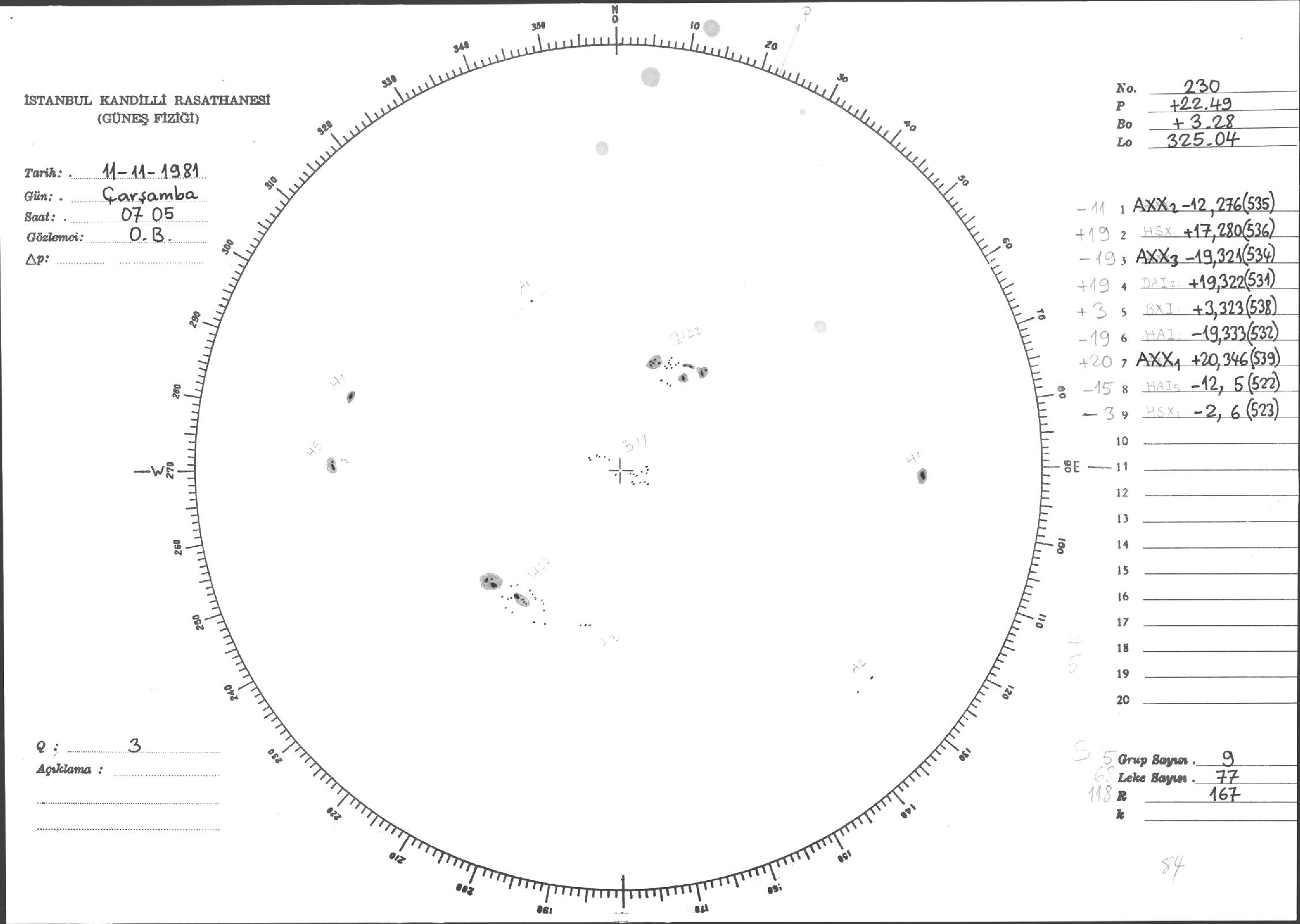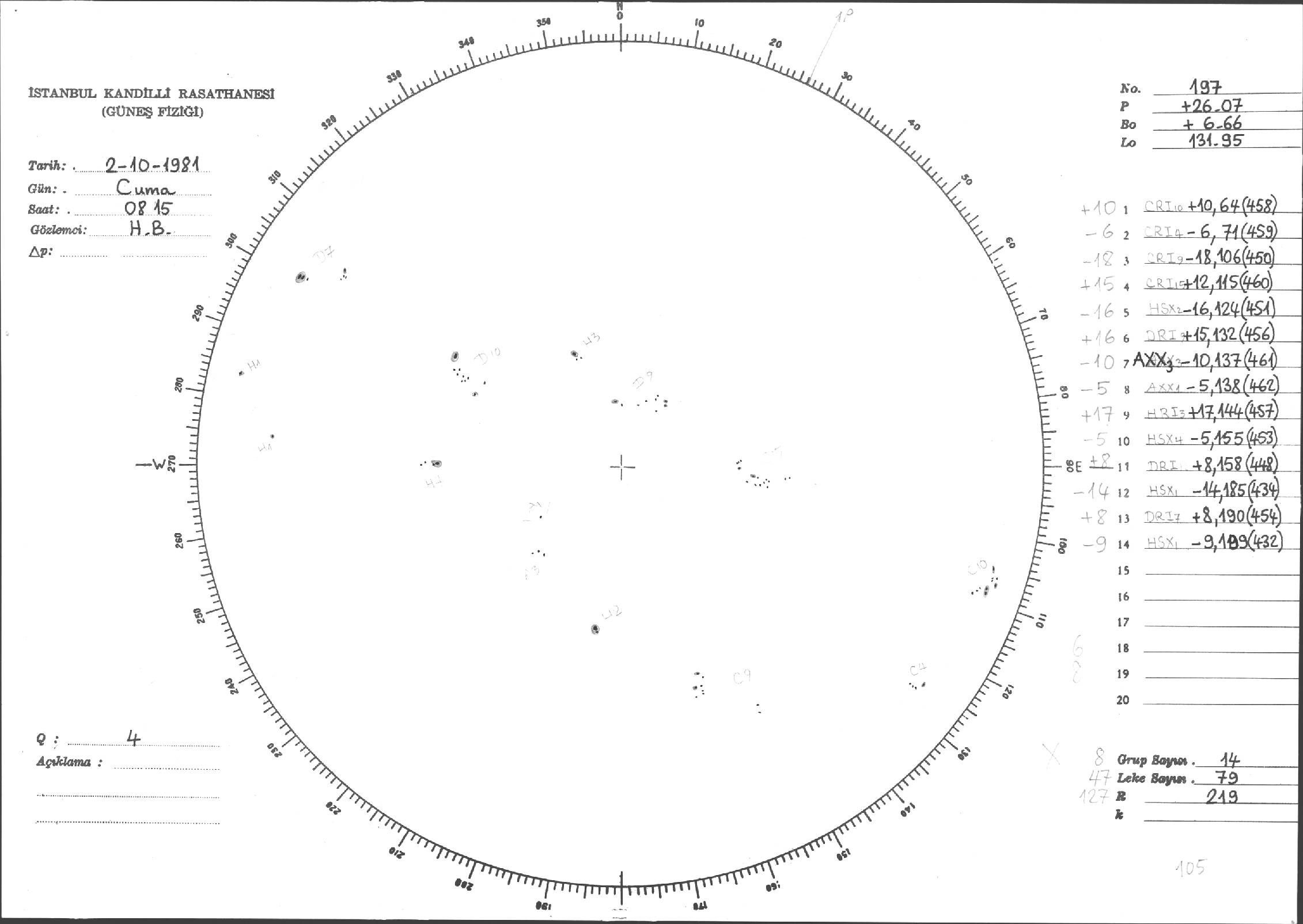 Güneş Lekesi Çizimleri / Kandilli Sunspot Drawings