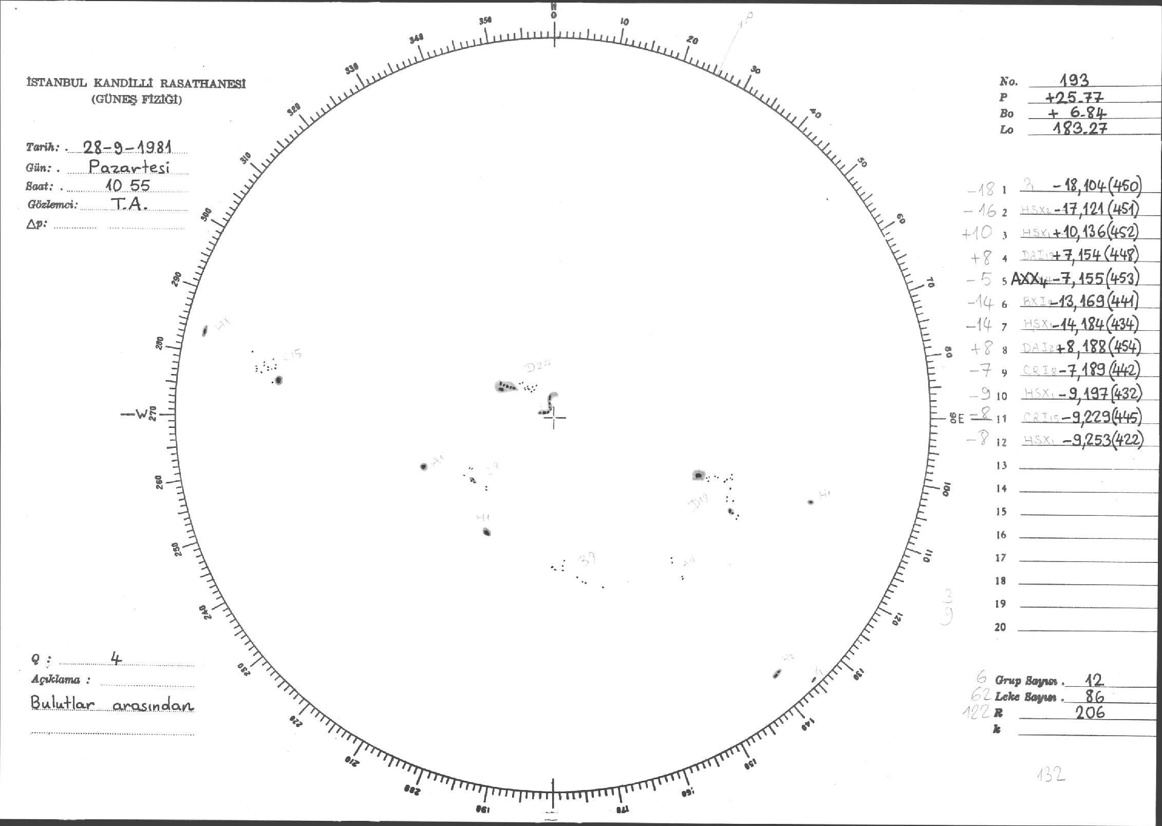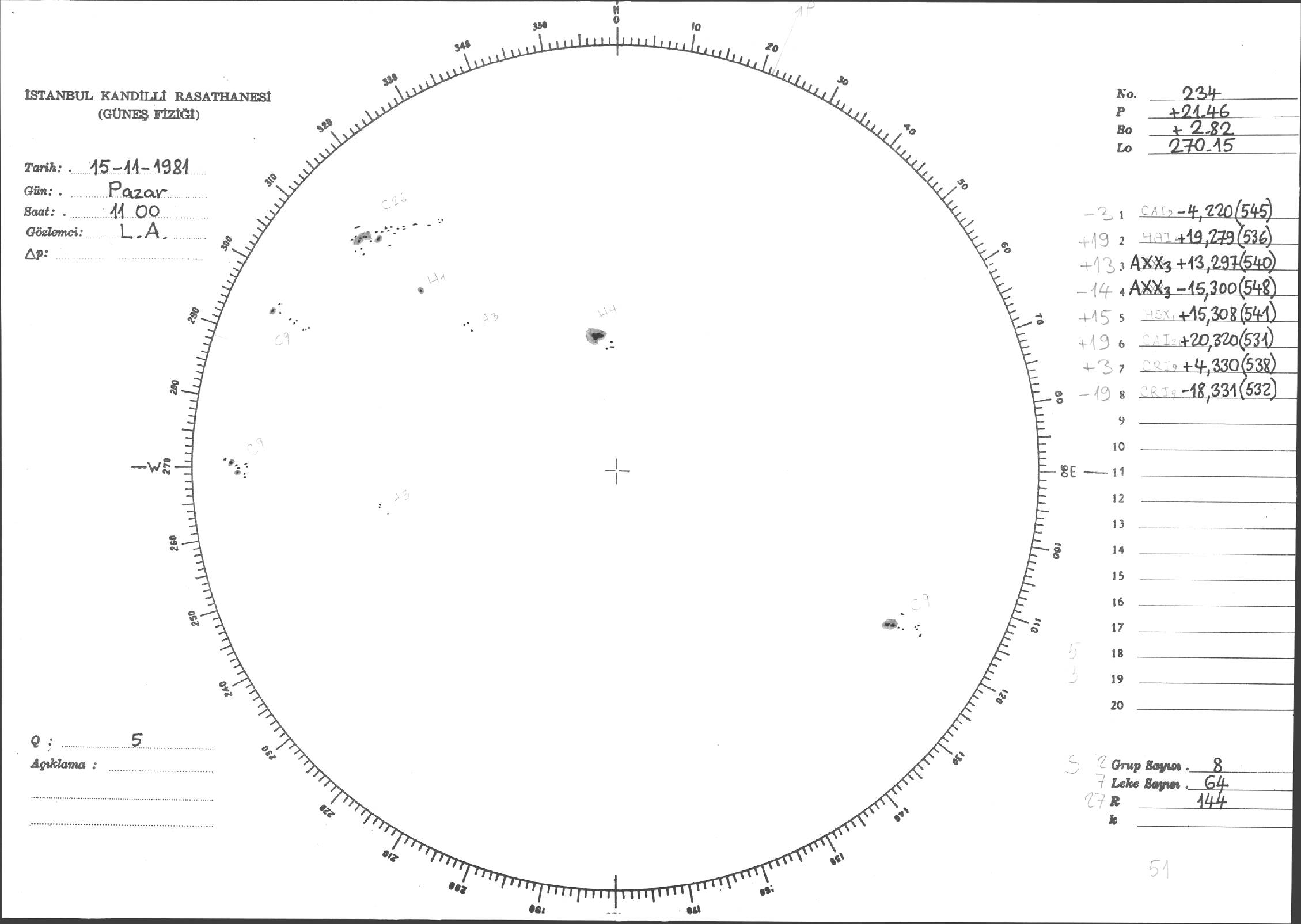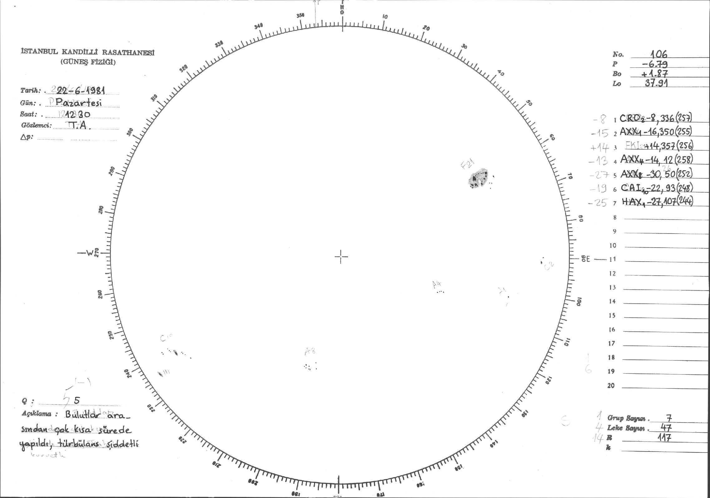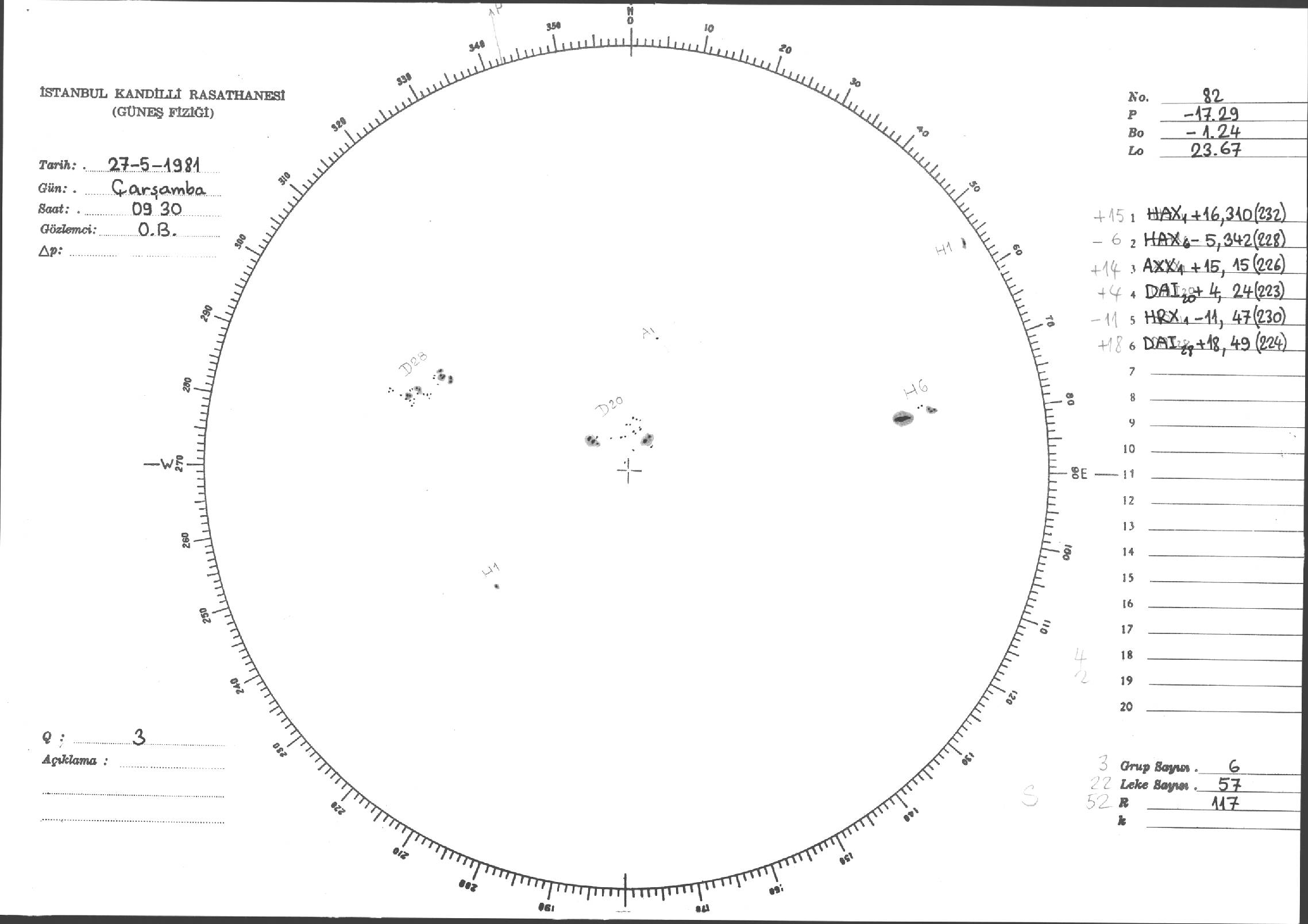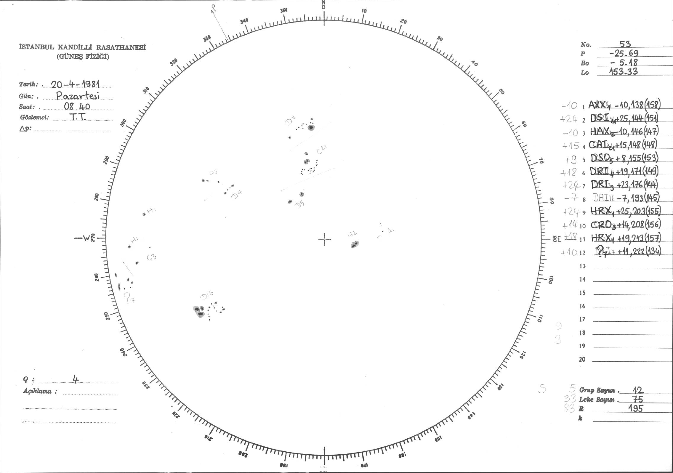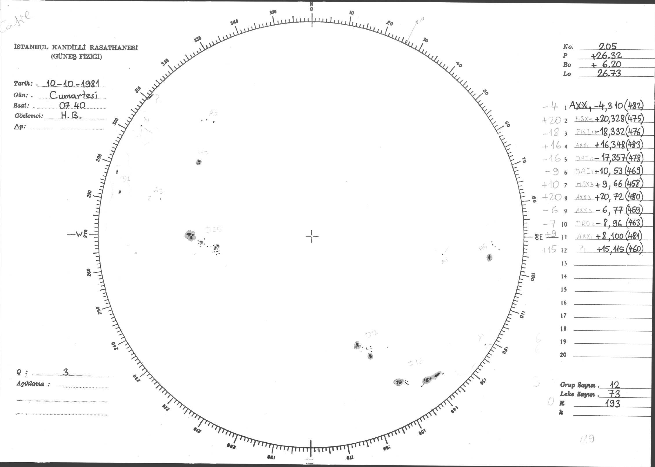 Güneş Lekesi Çizimleri / Kandilli Sunspot Drawings