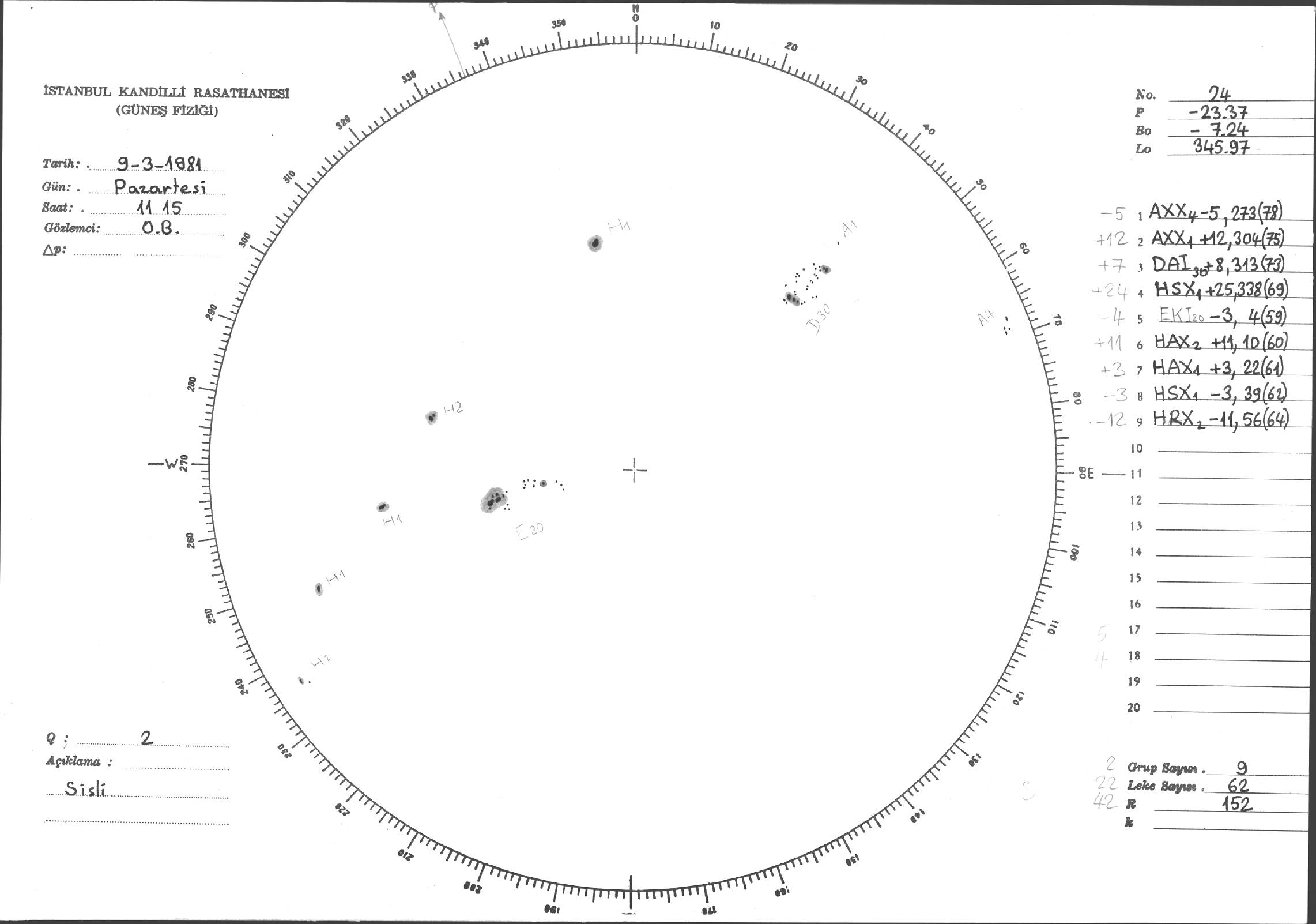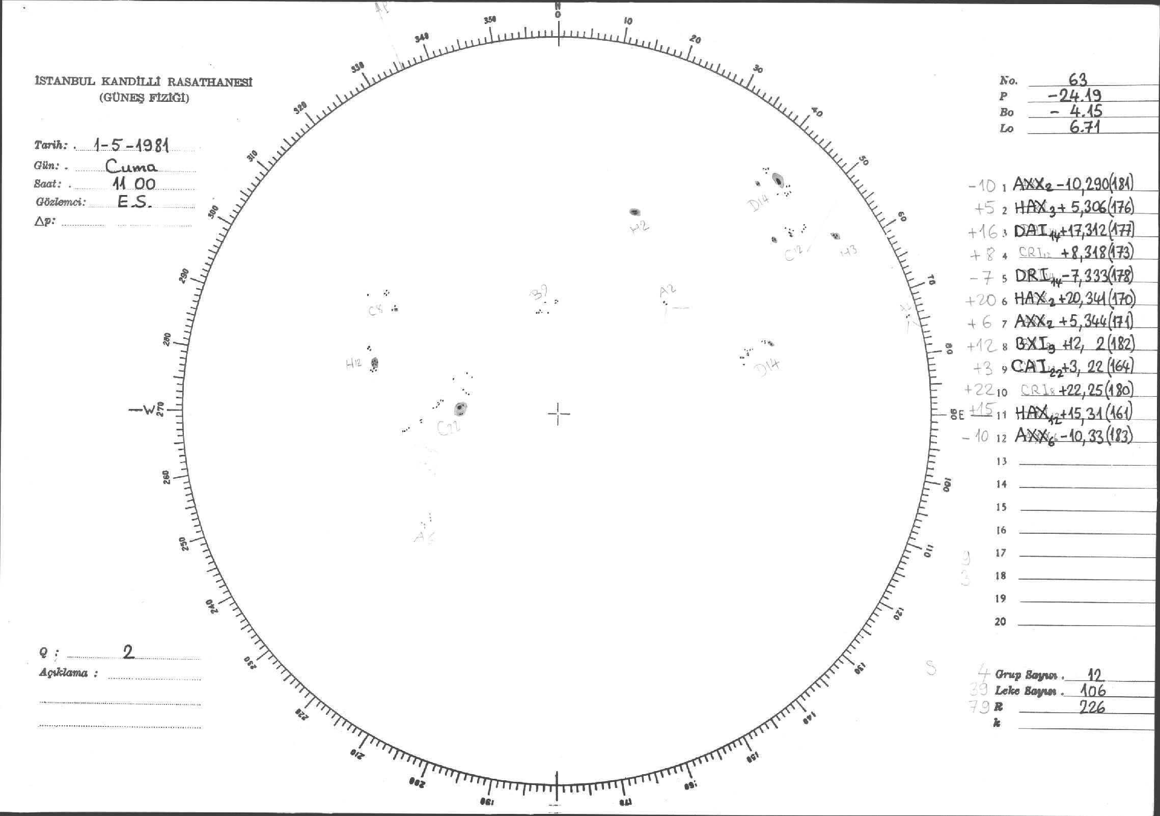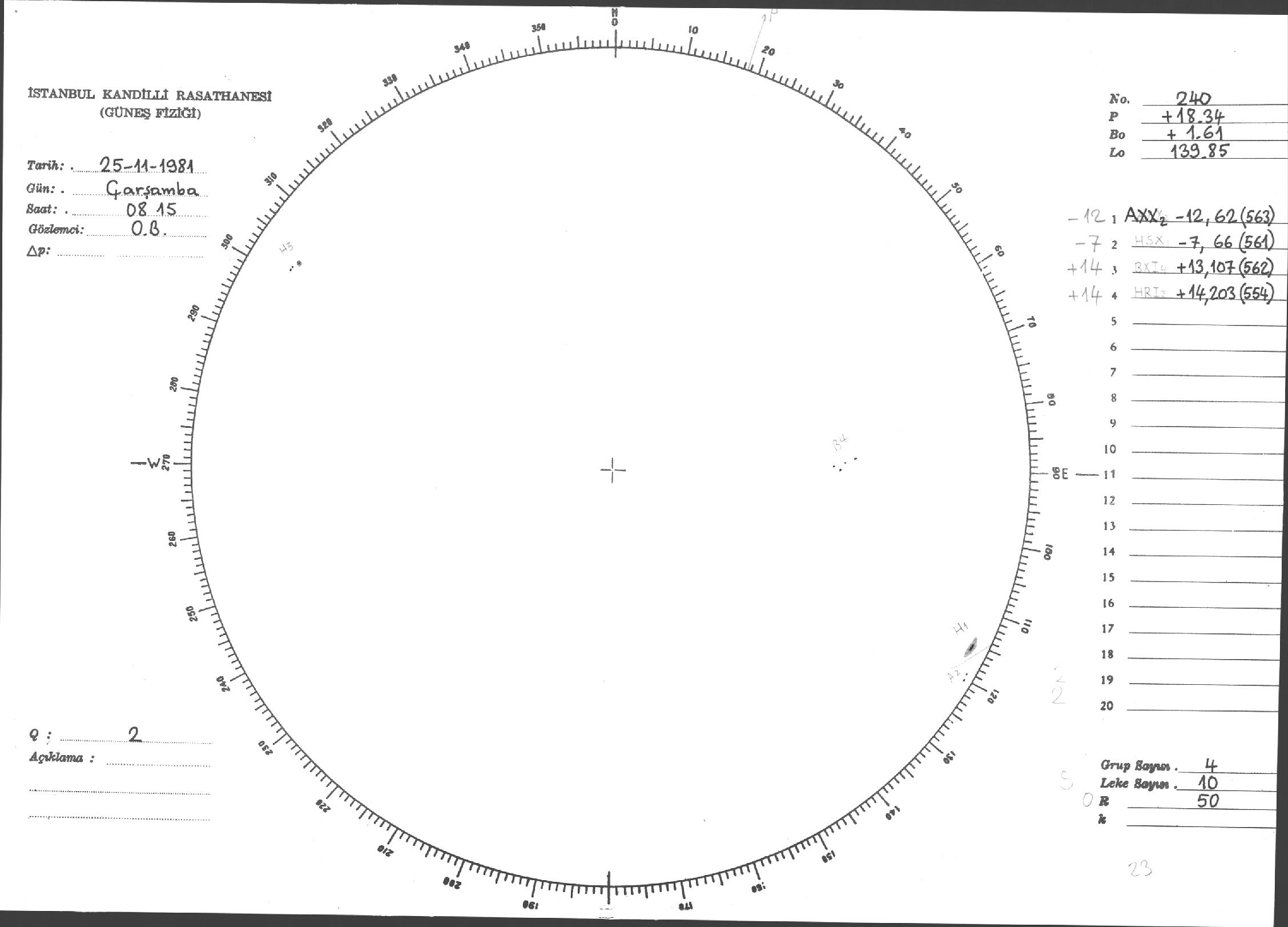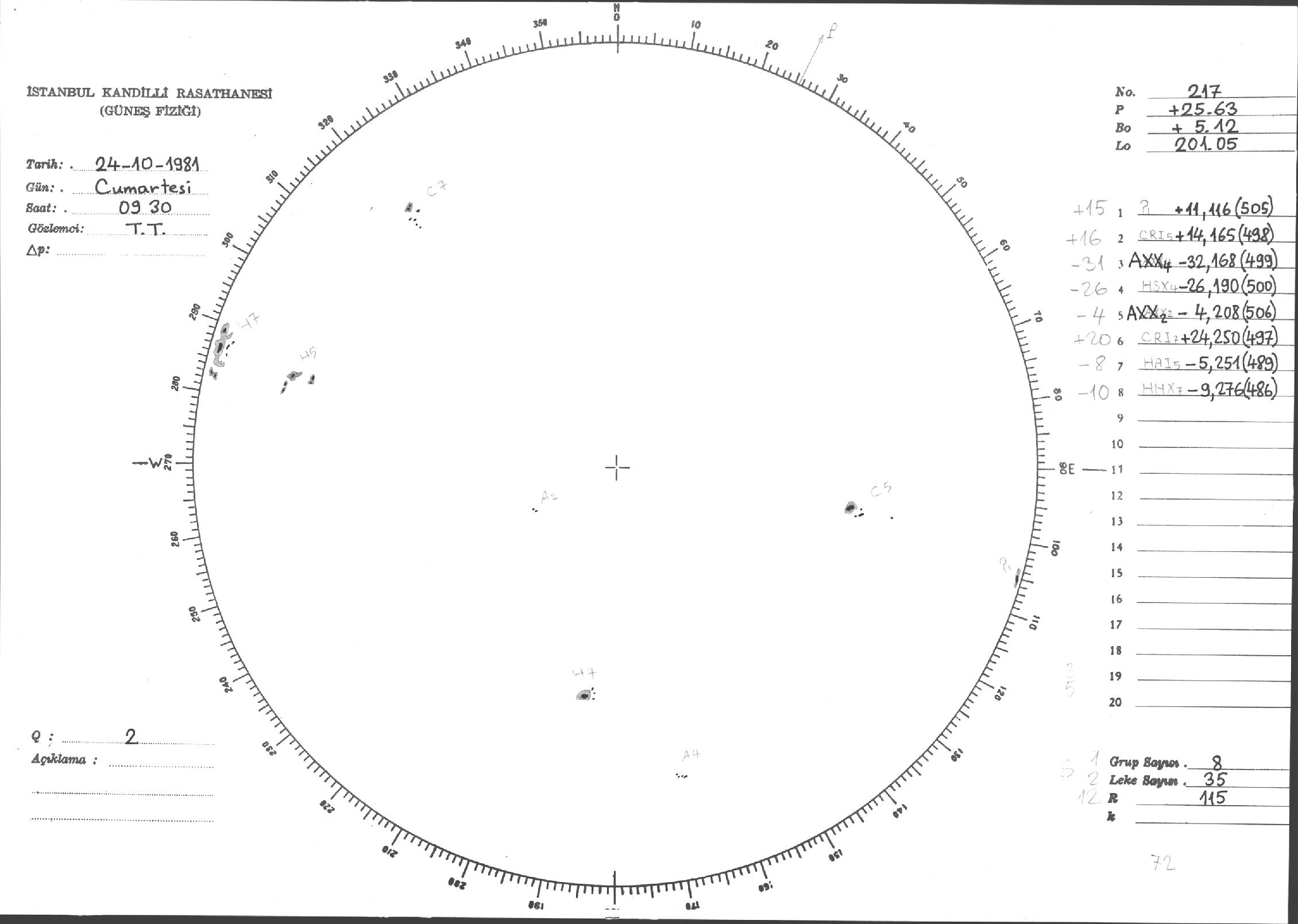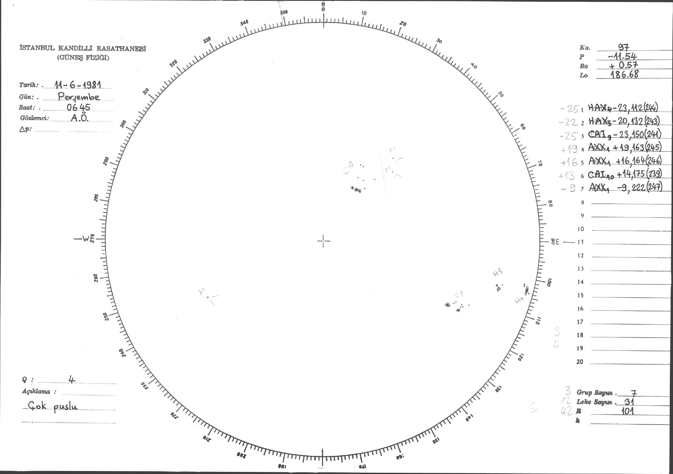 Güneş Lekesi Çizimleri / Kandilli Sunspot Drawings