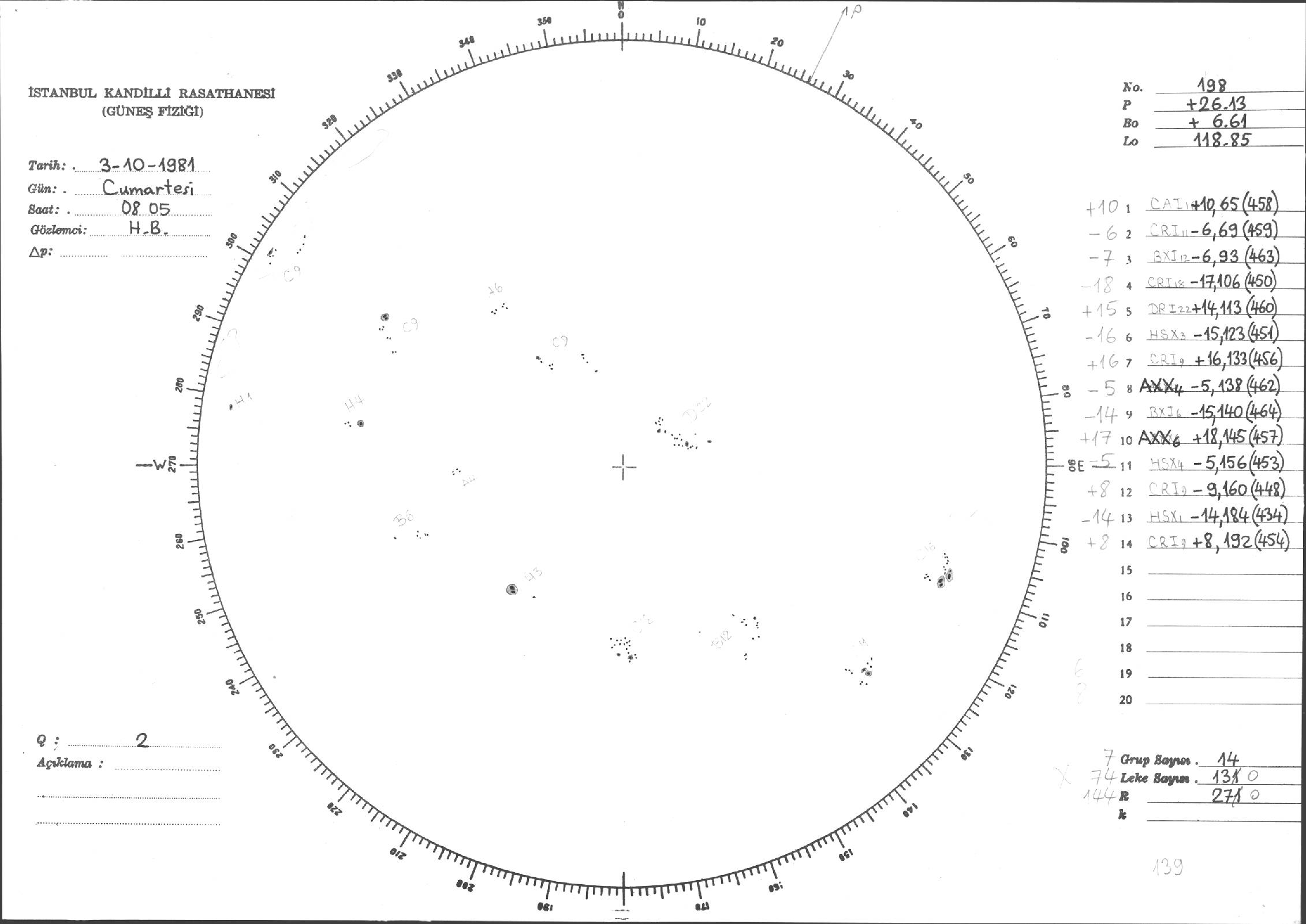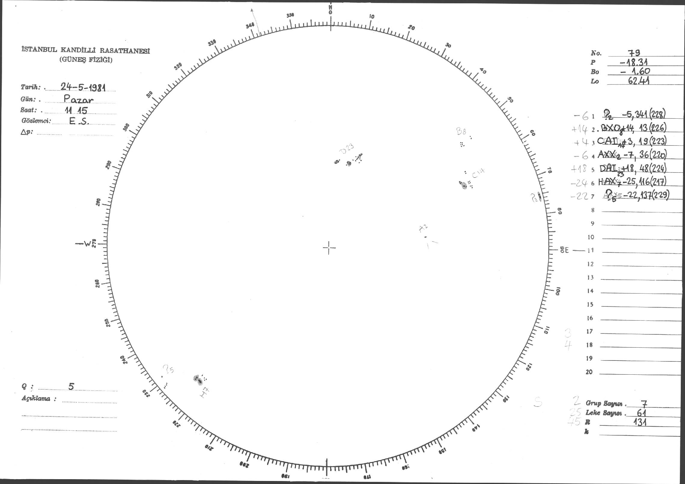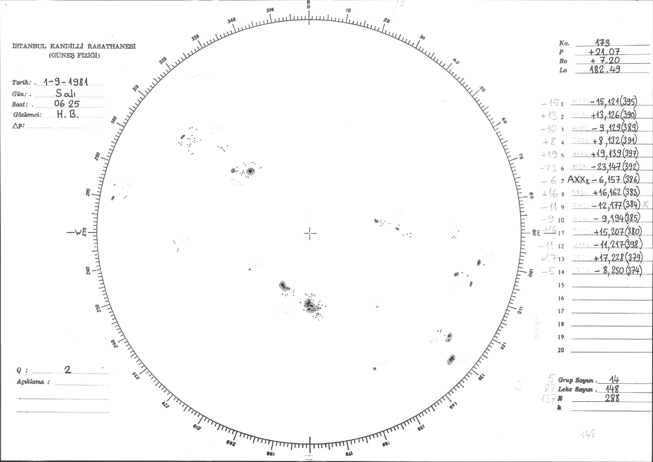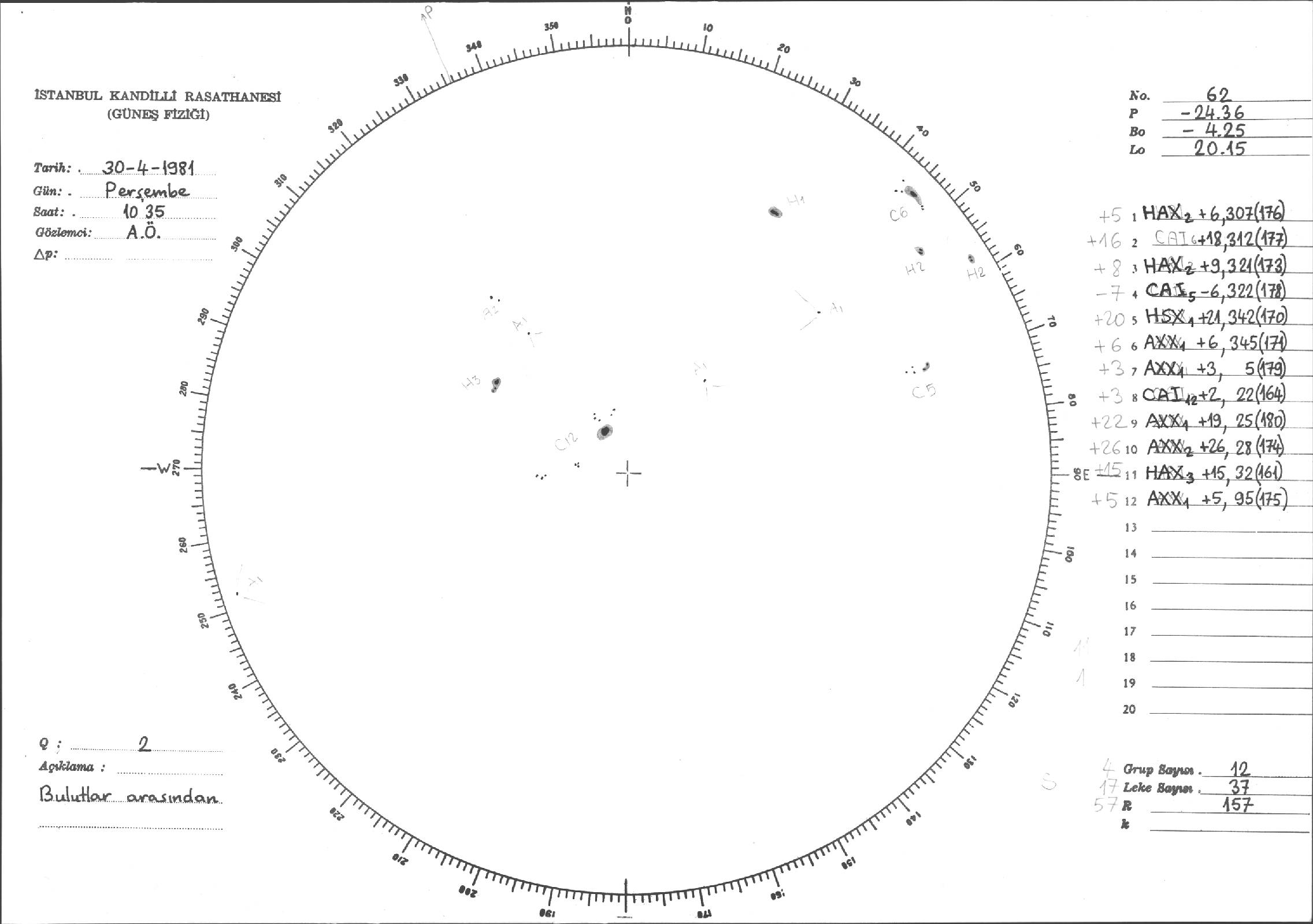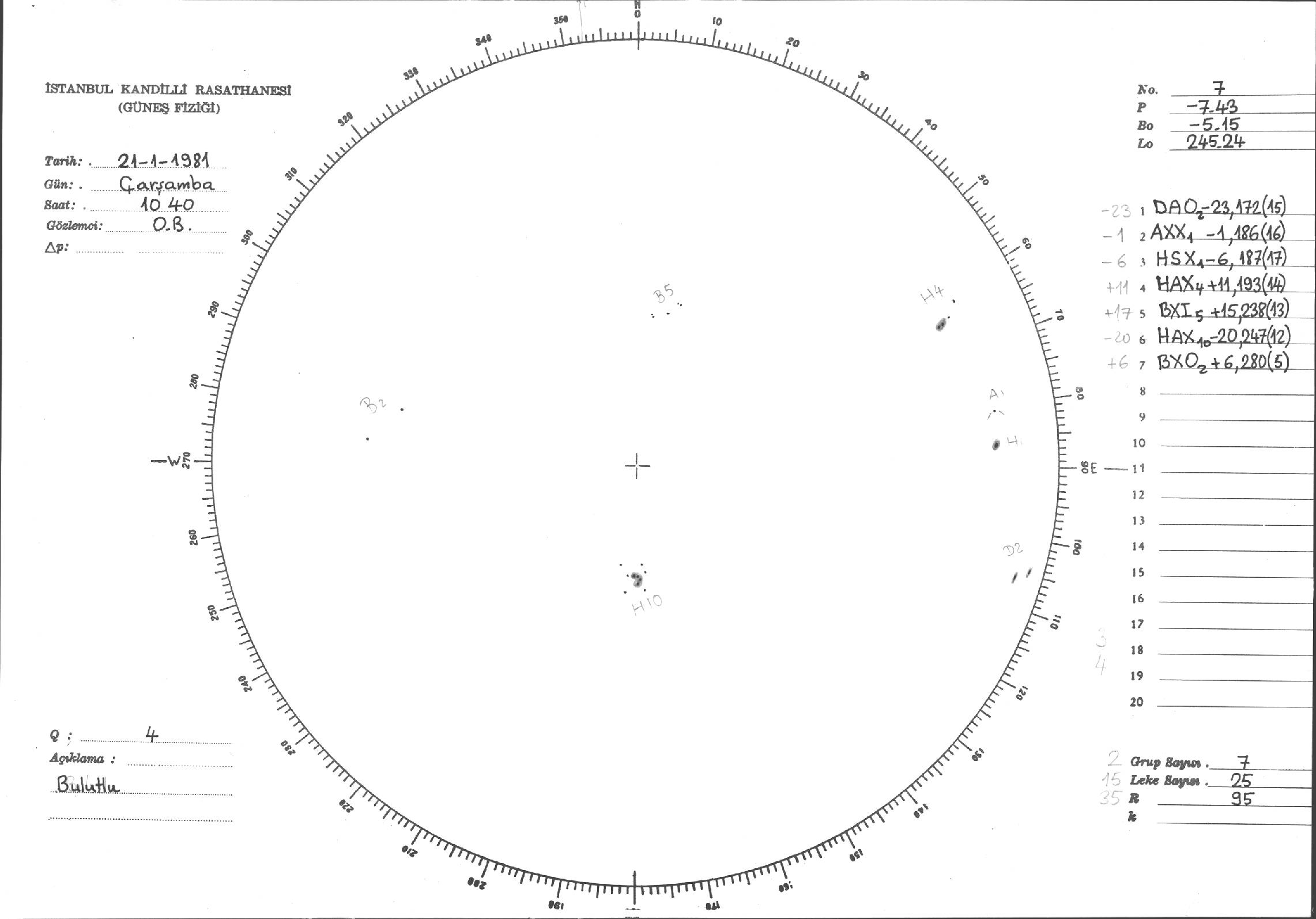 Güneş Lekesi Çizimleri / Kandilli Sunspot Drawings