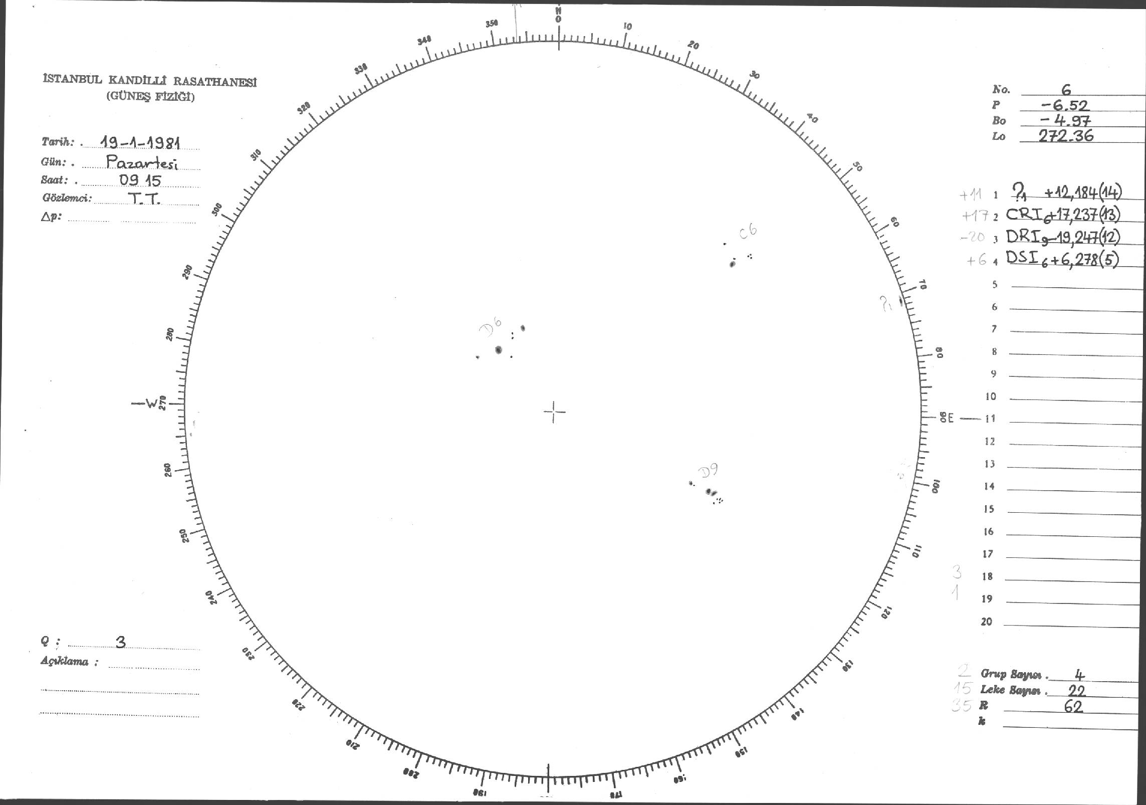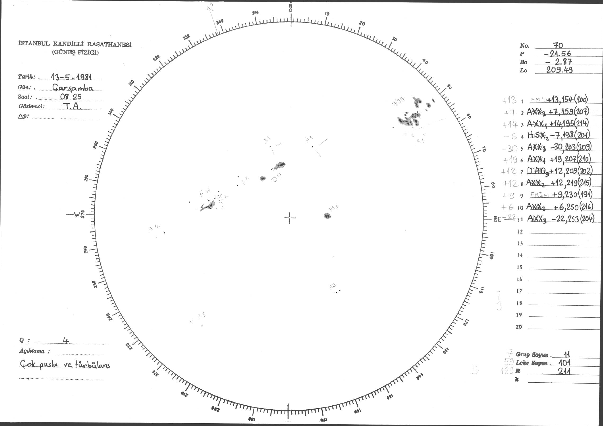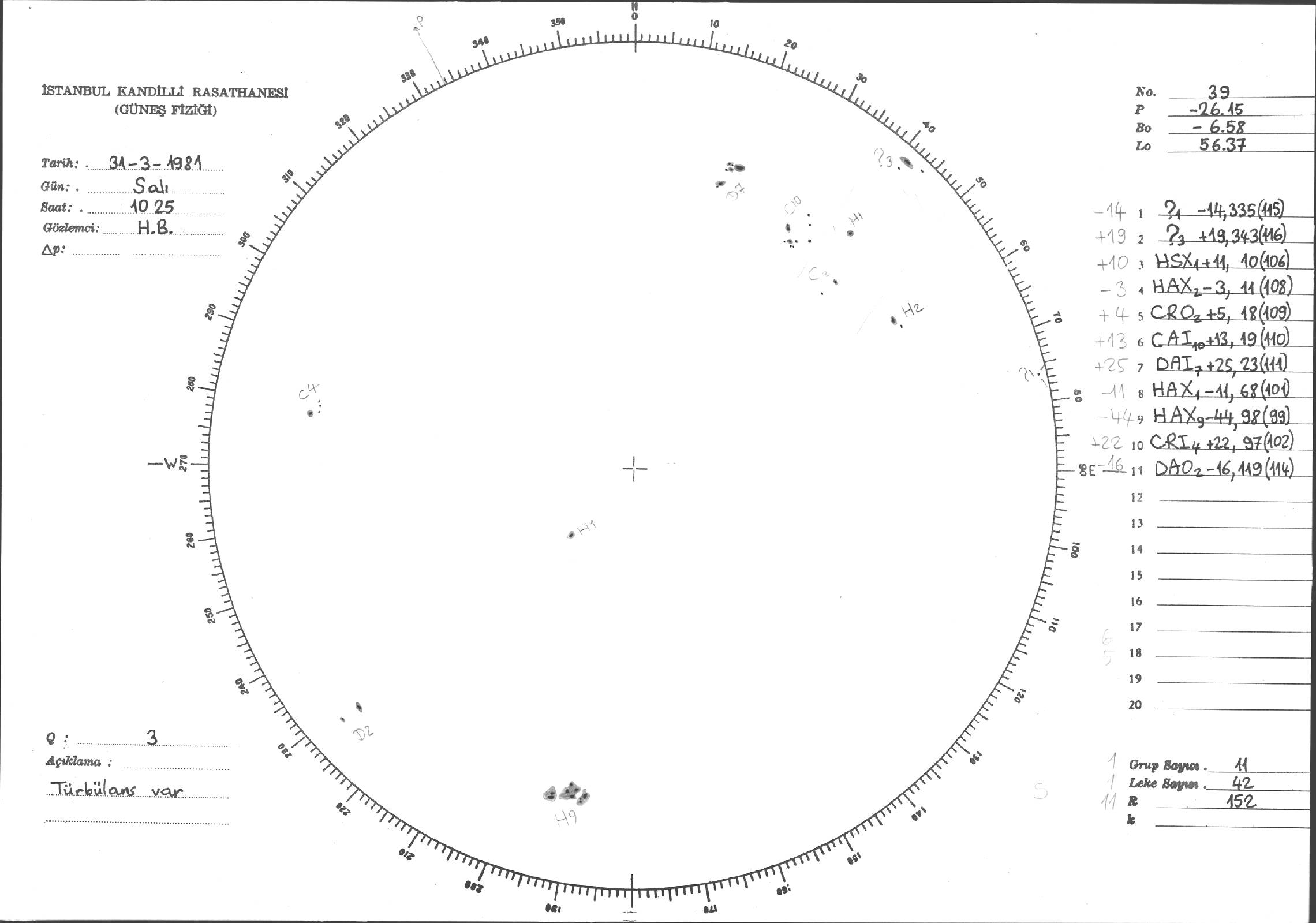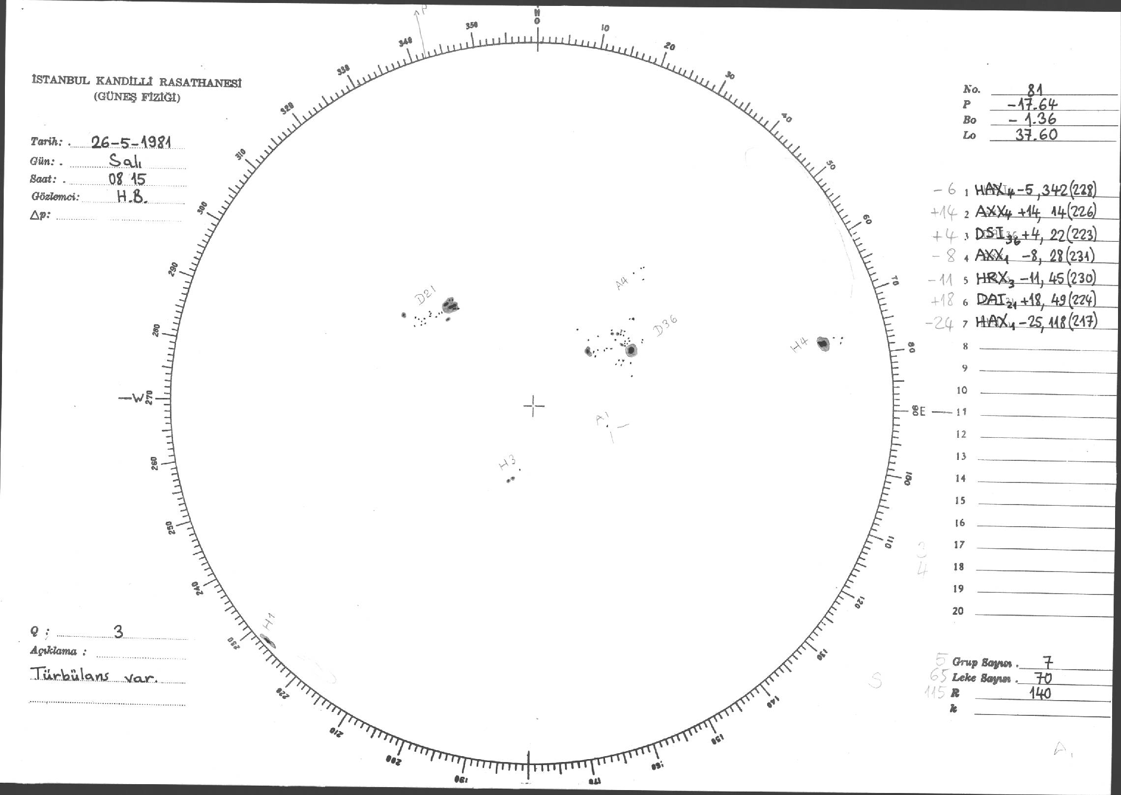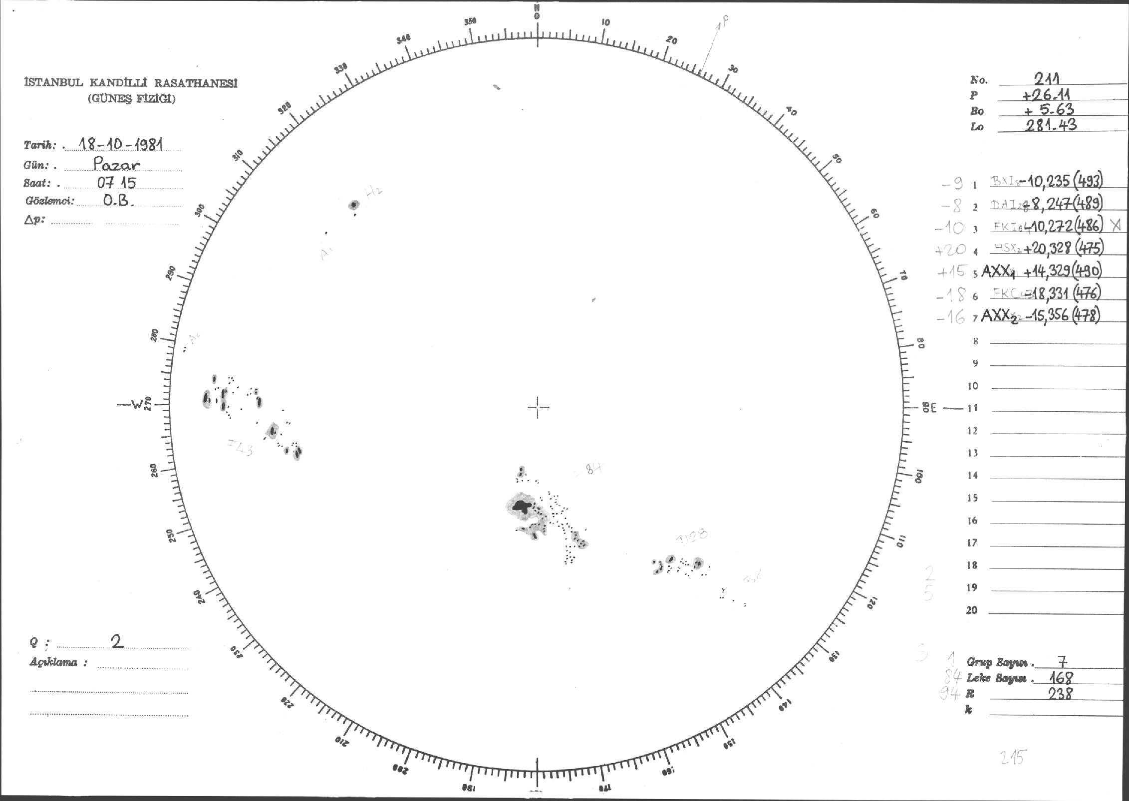 Güneş Lekesi Çizimleri / Kandilli Sunspot Drawings