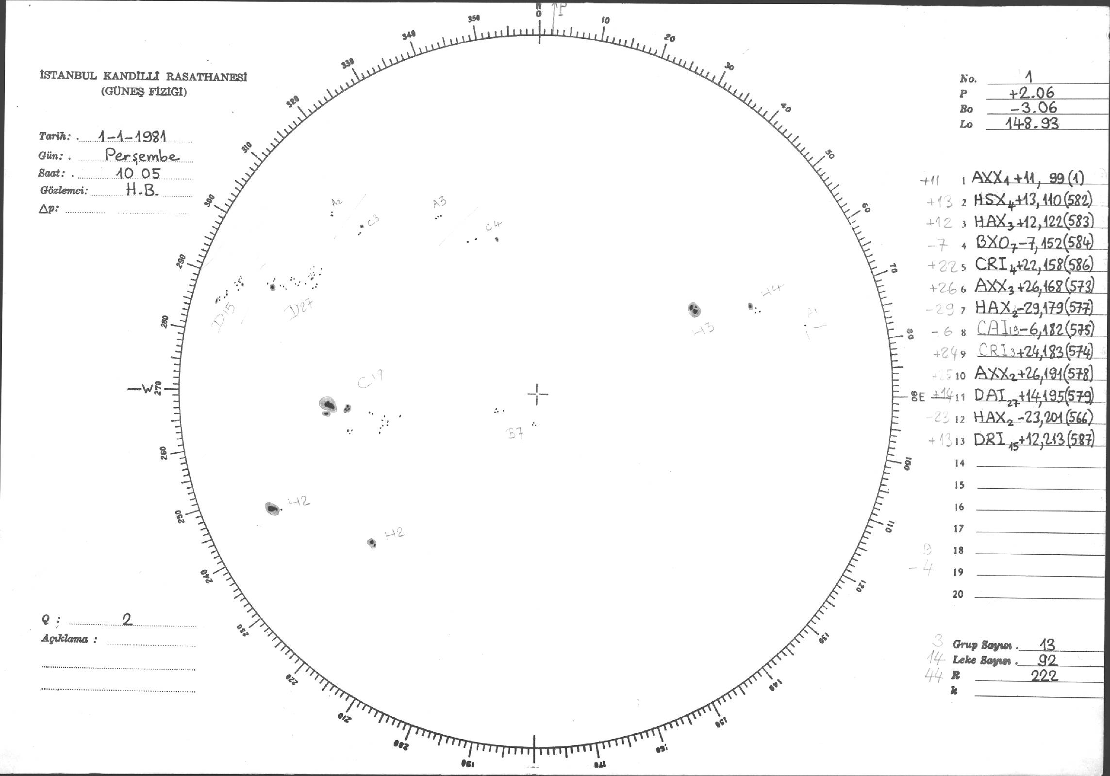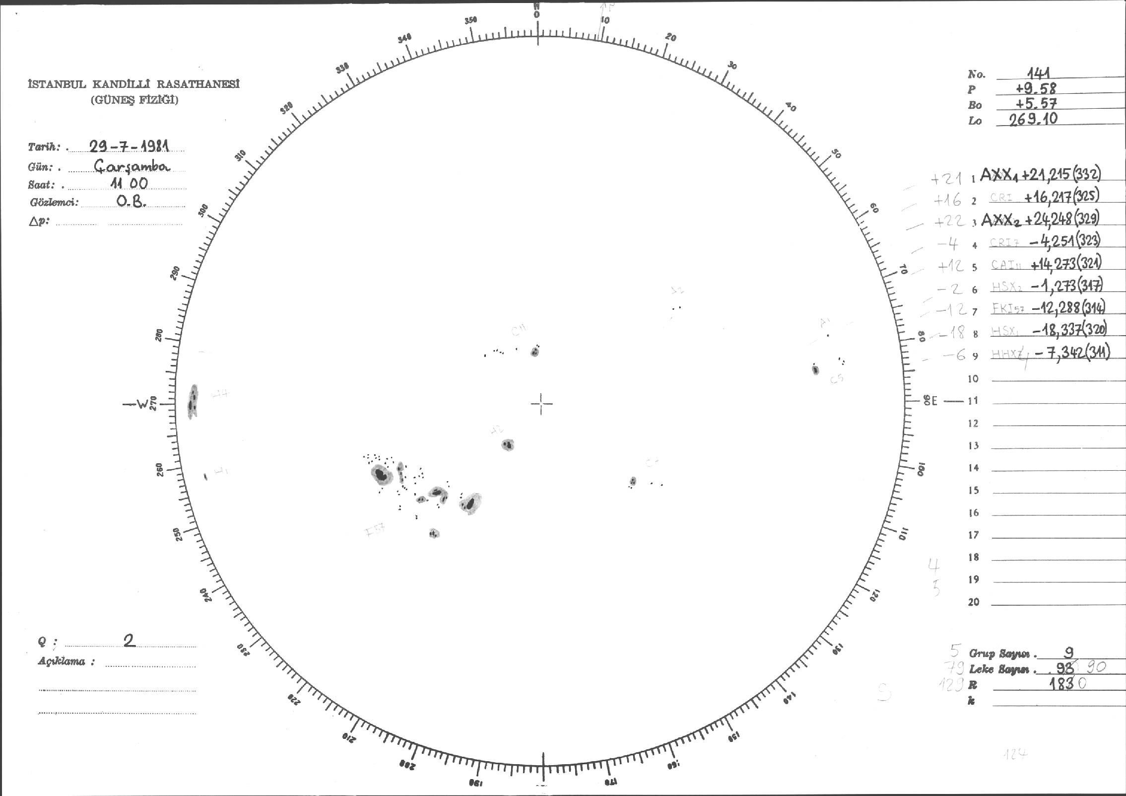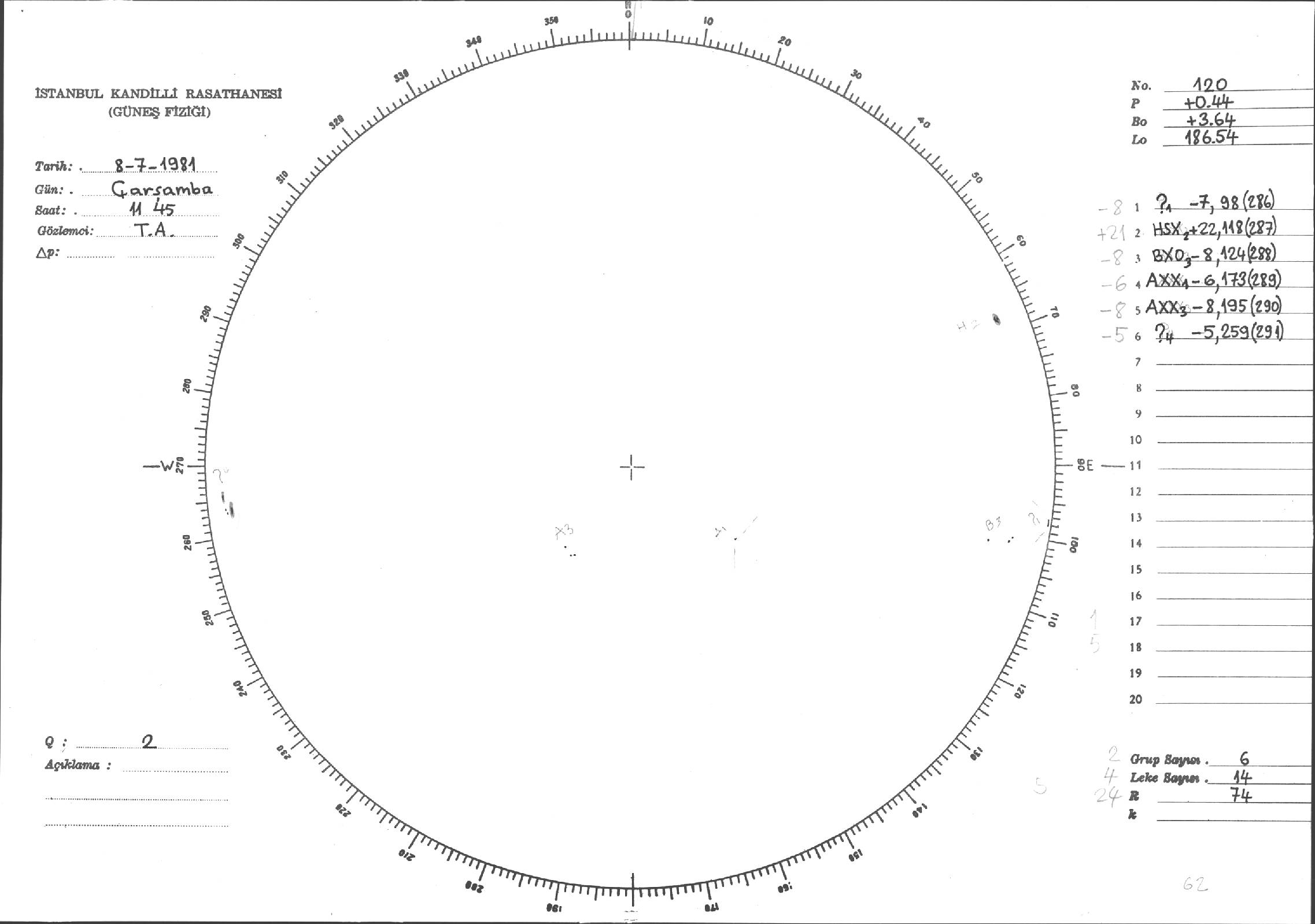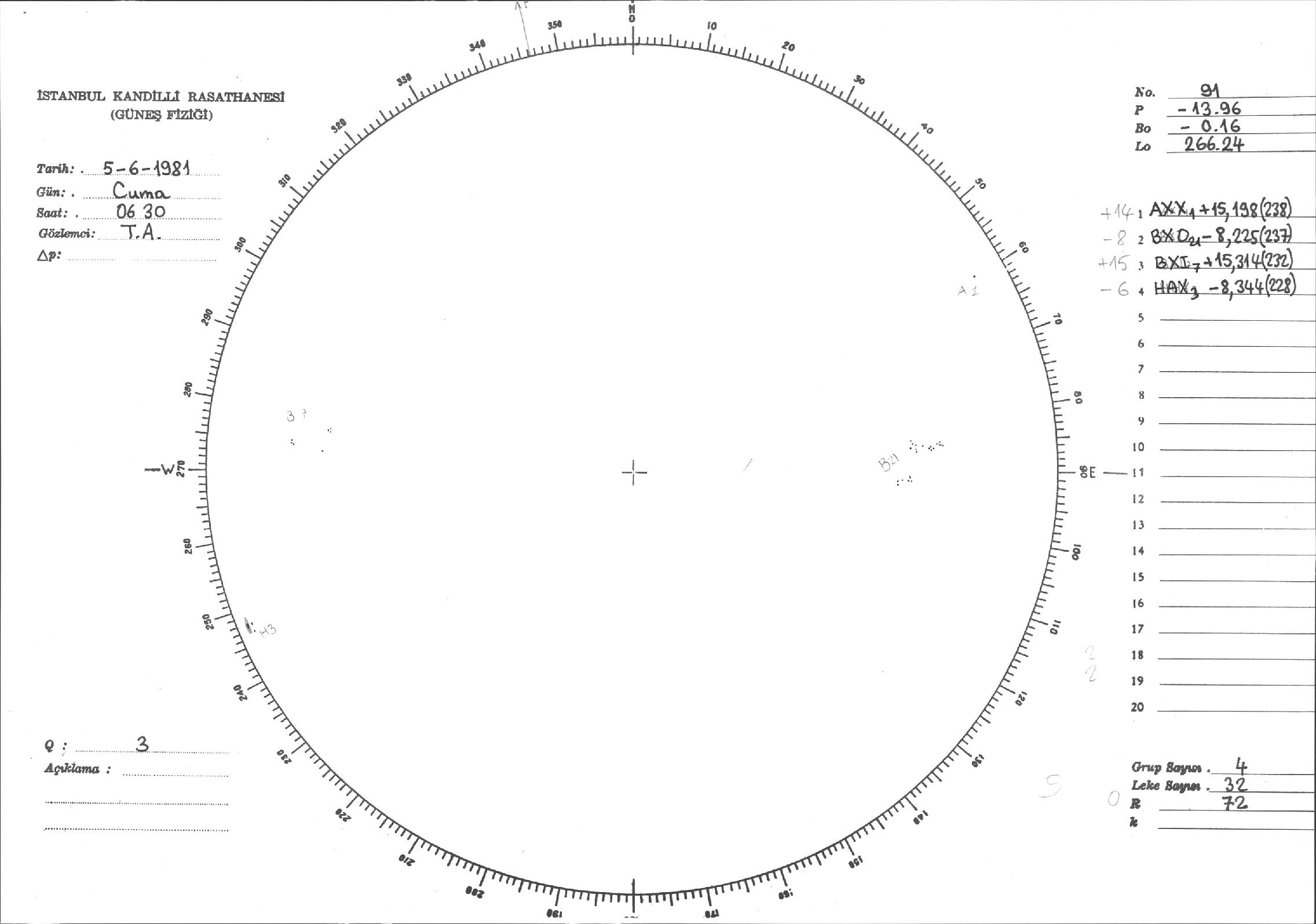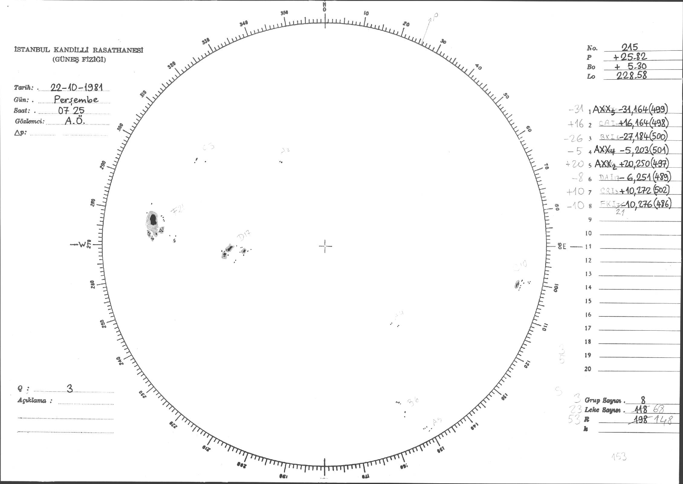 Güneş Lekesi Çizimleri / Kandilli Sunspot Drawings
