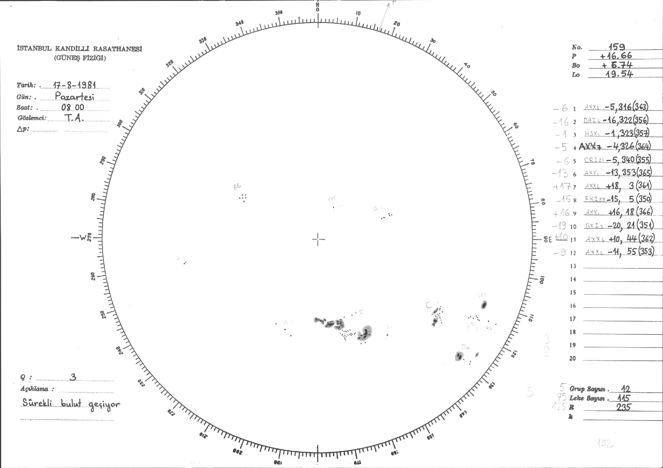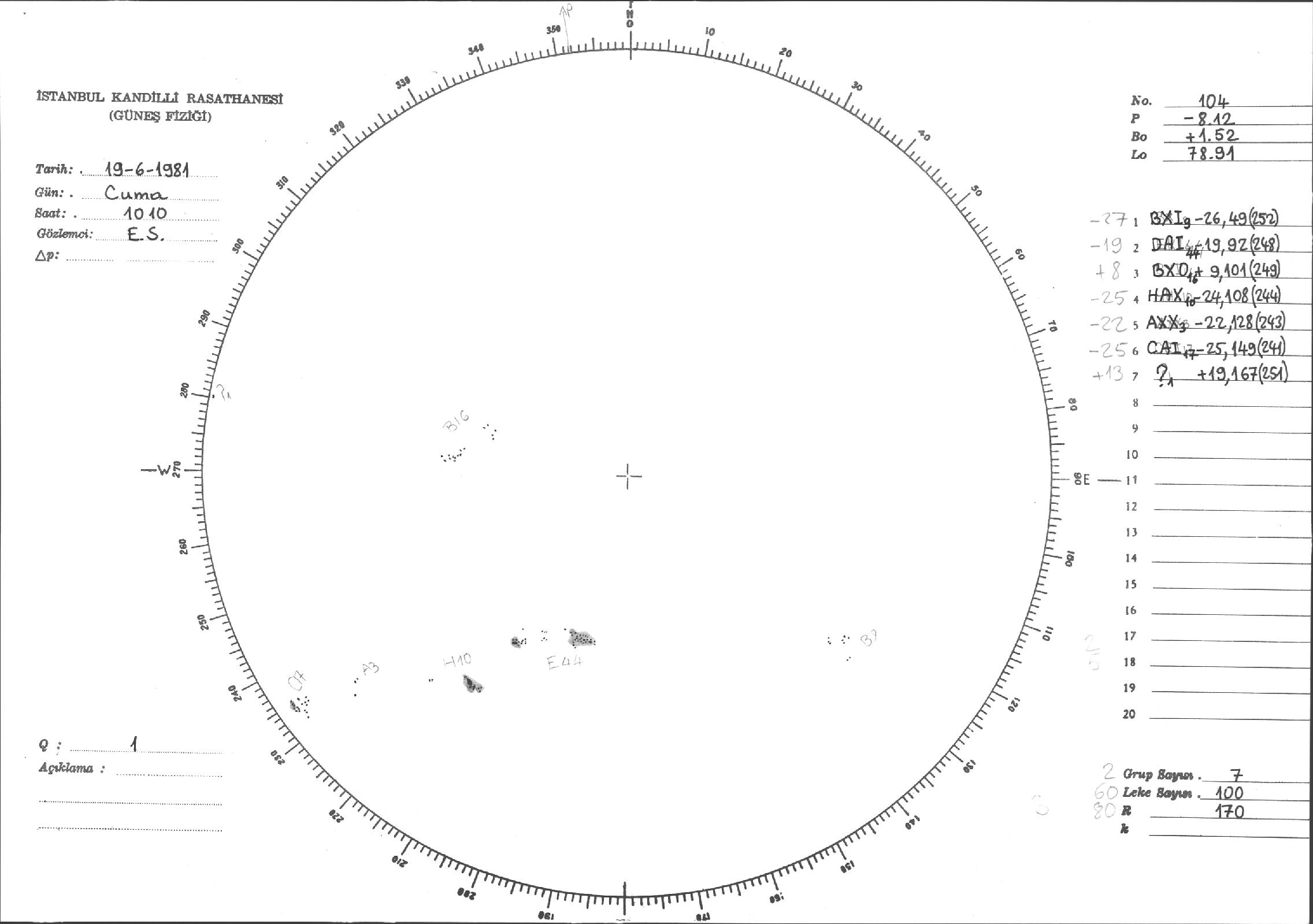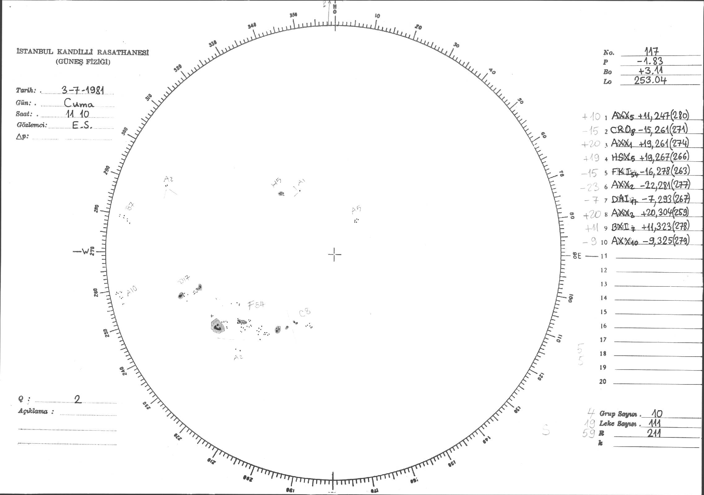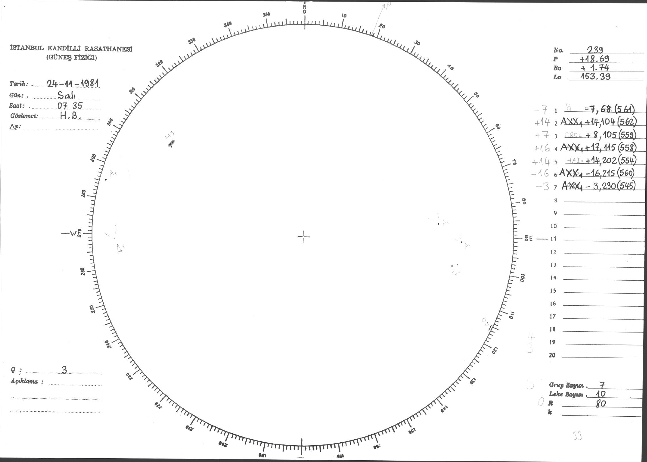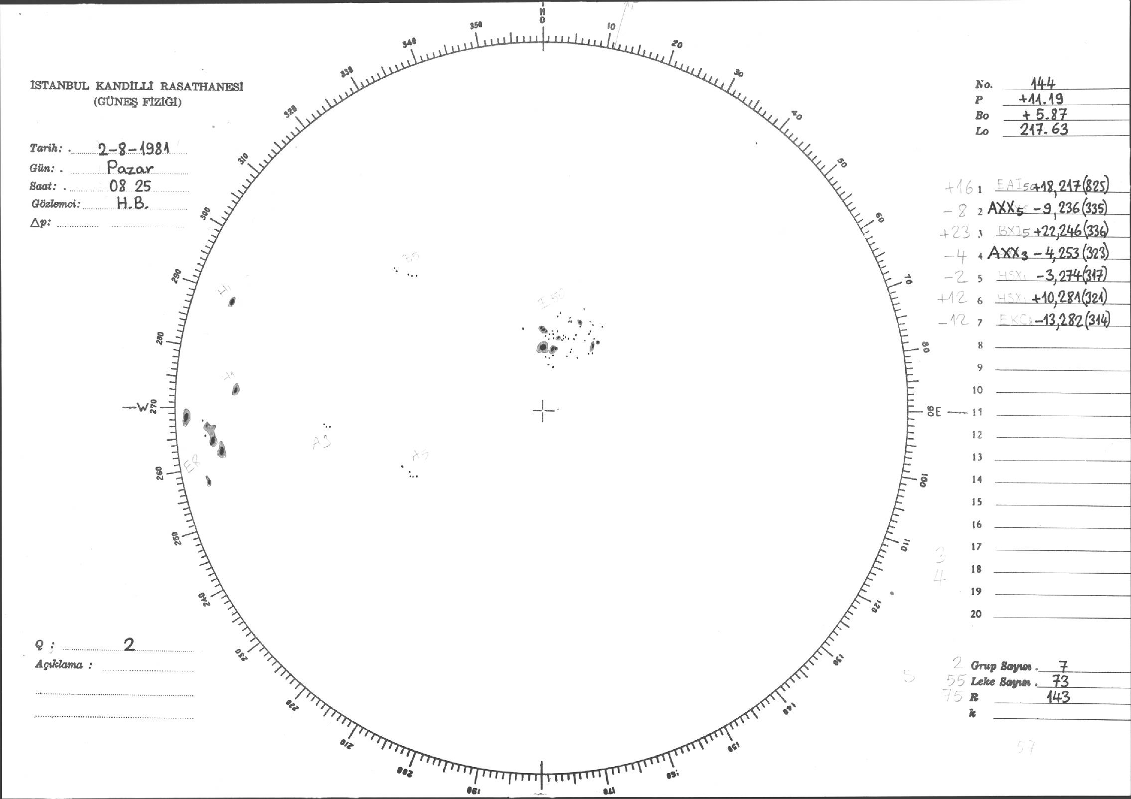 Güneş Lekesi Çizimleri / Kandilli Sunspot Drawings