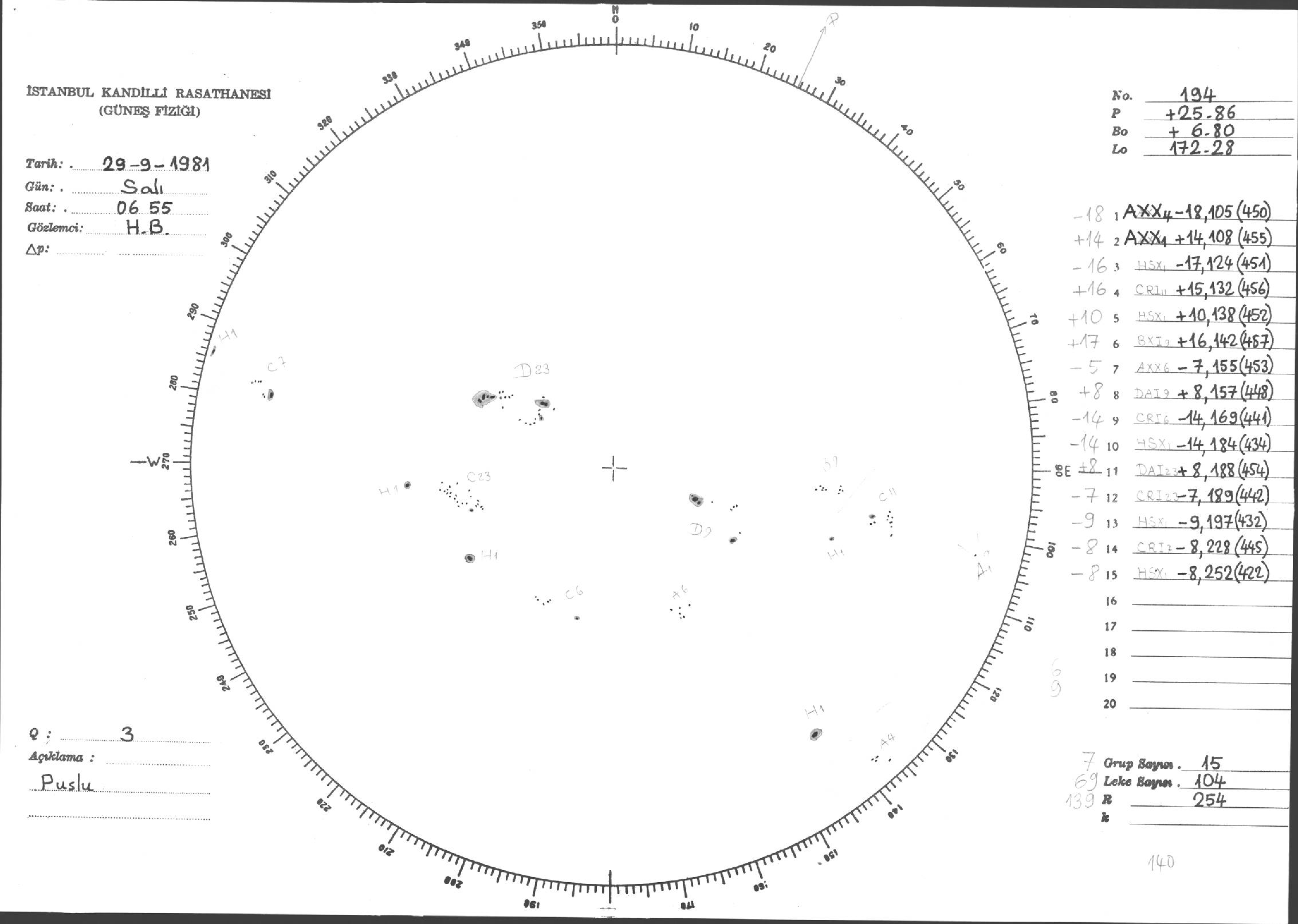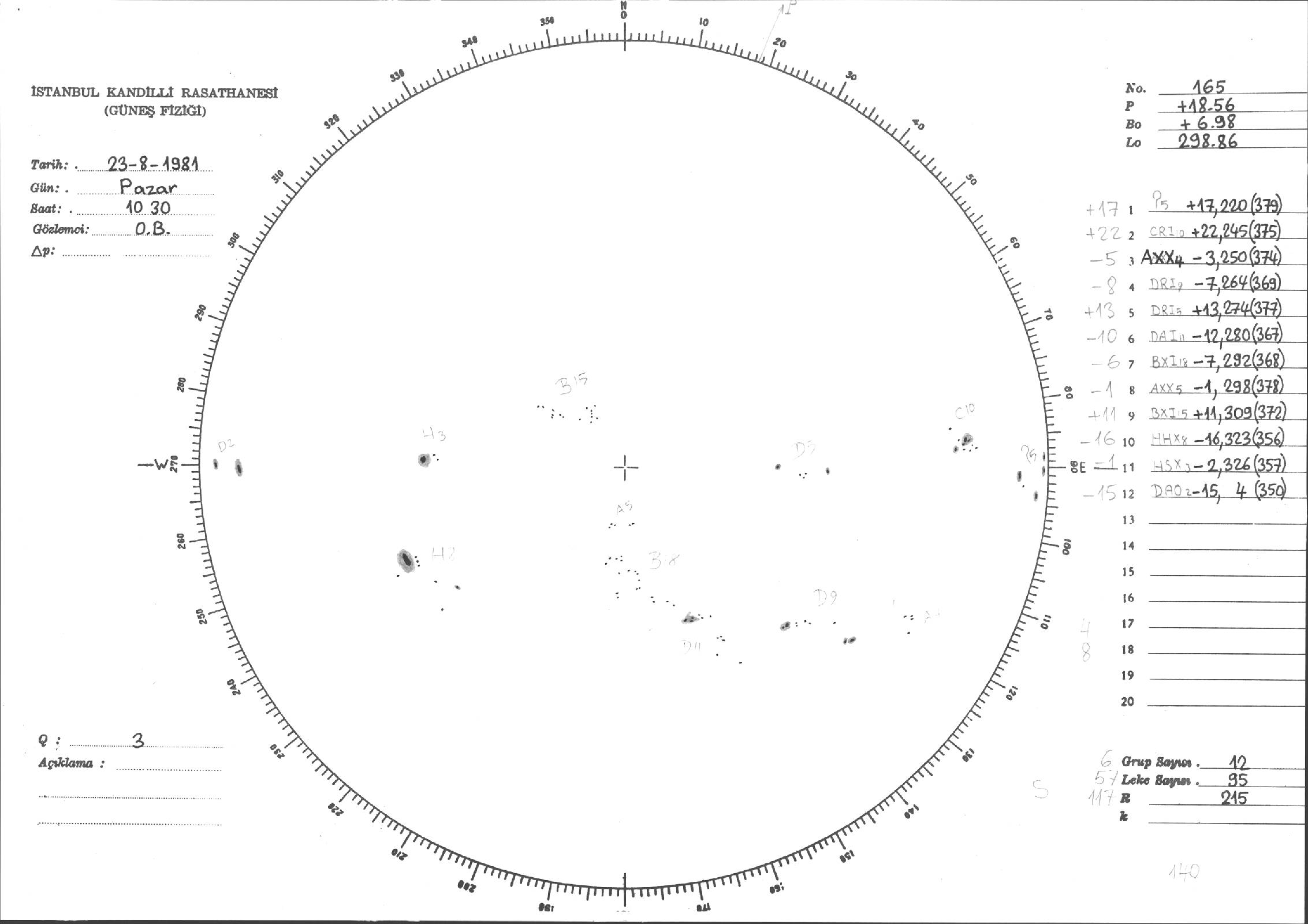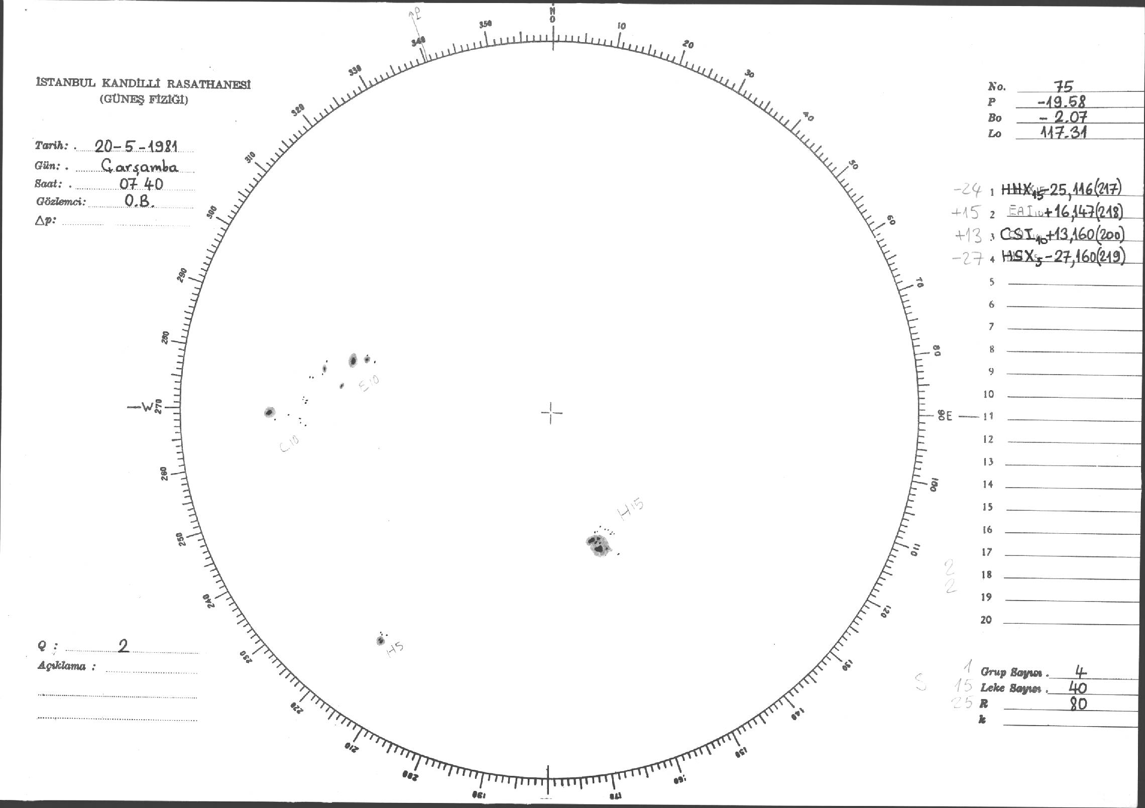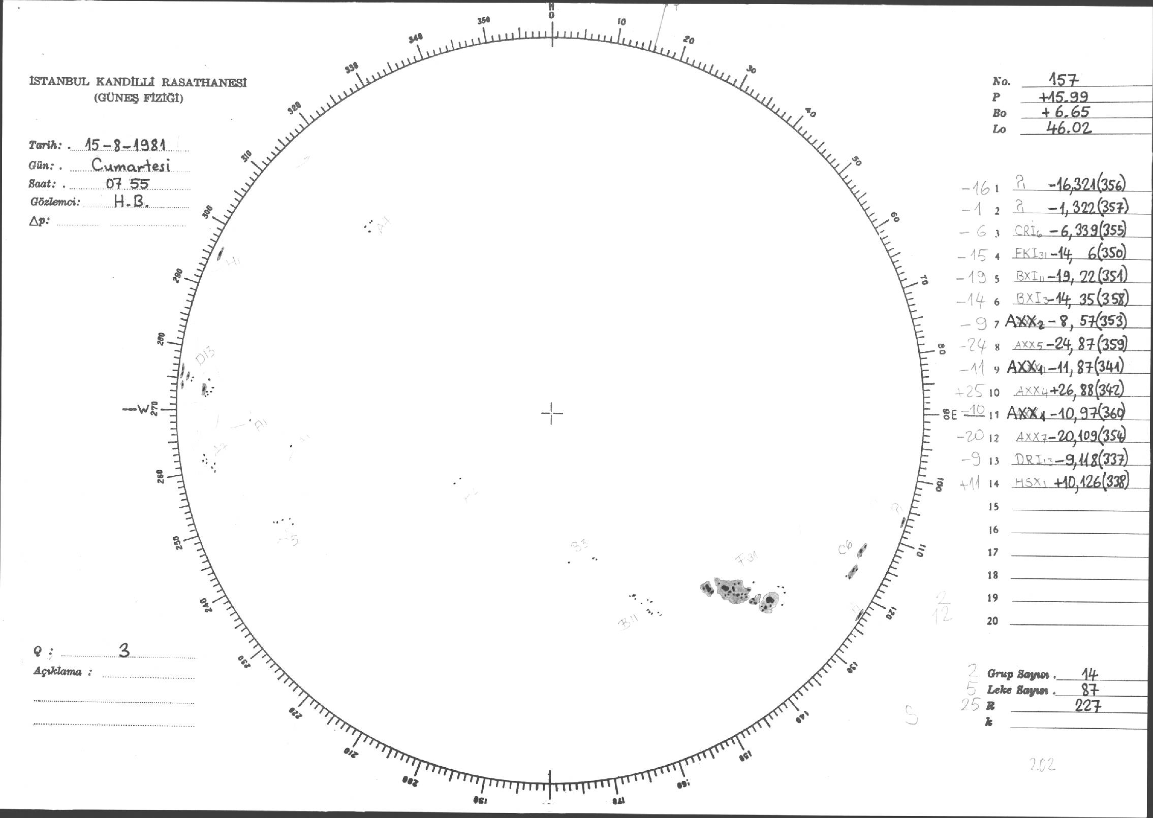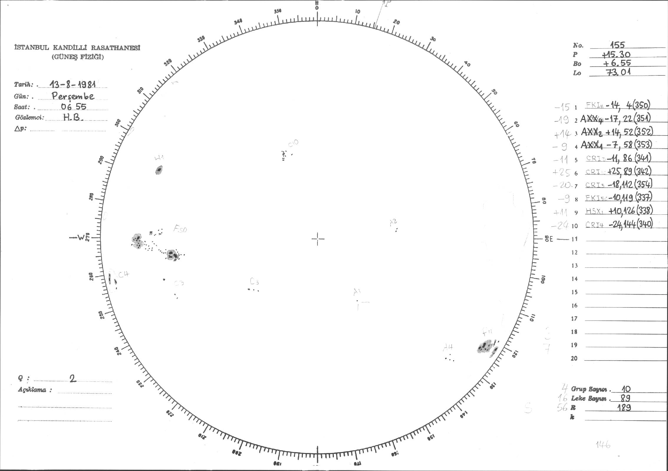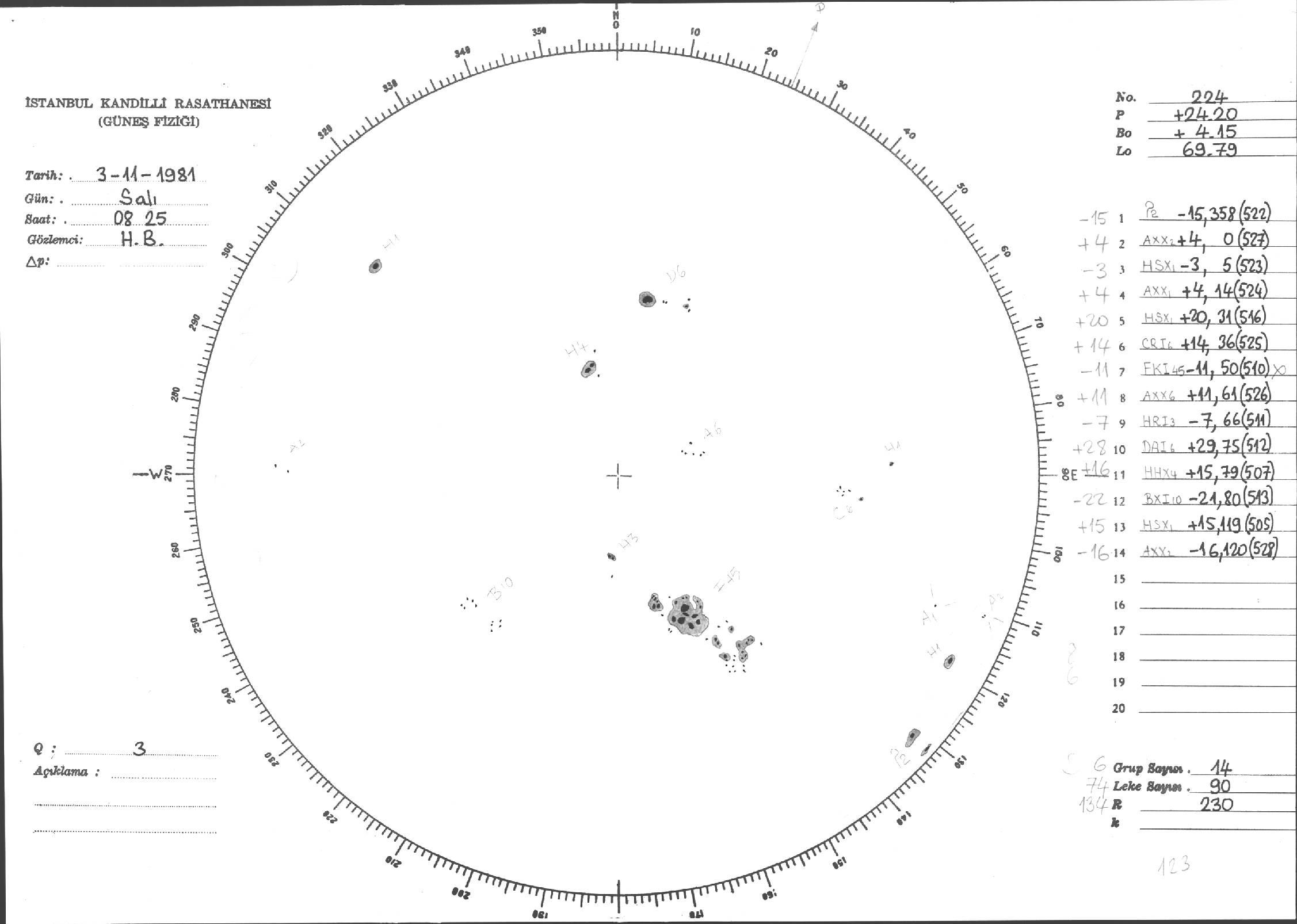 Güneş Lekesi Çizimleri / Kandilli Sunspot Drawings