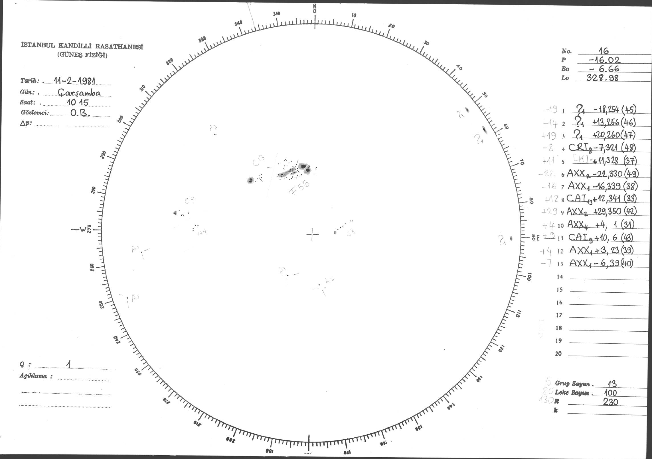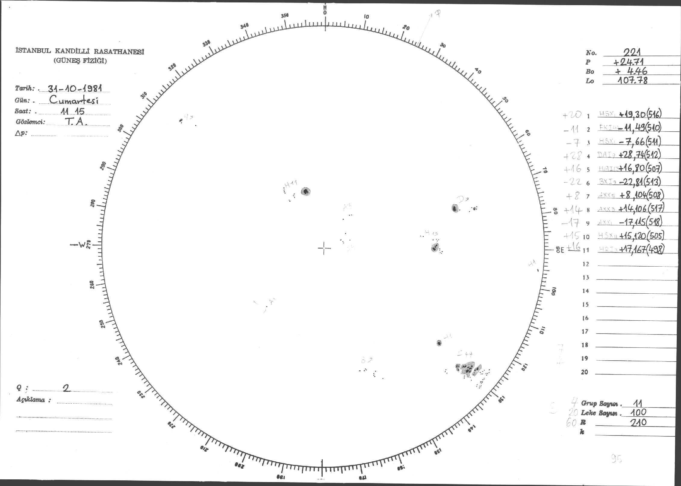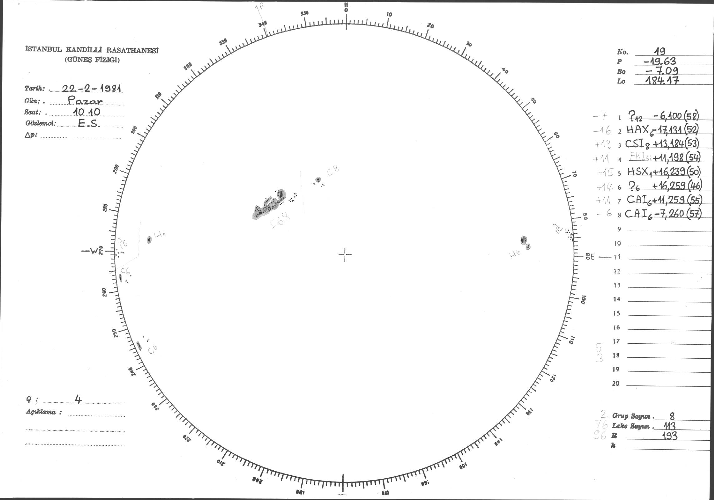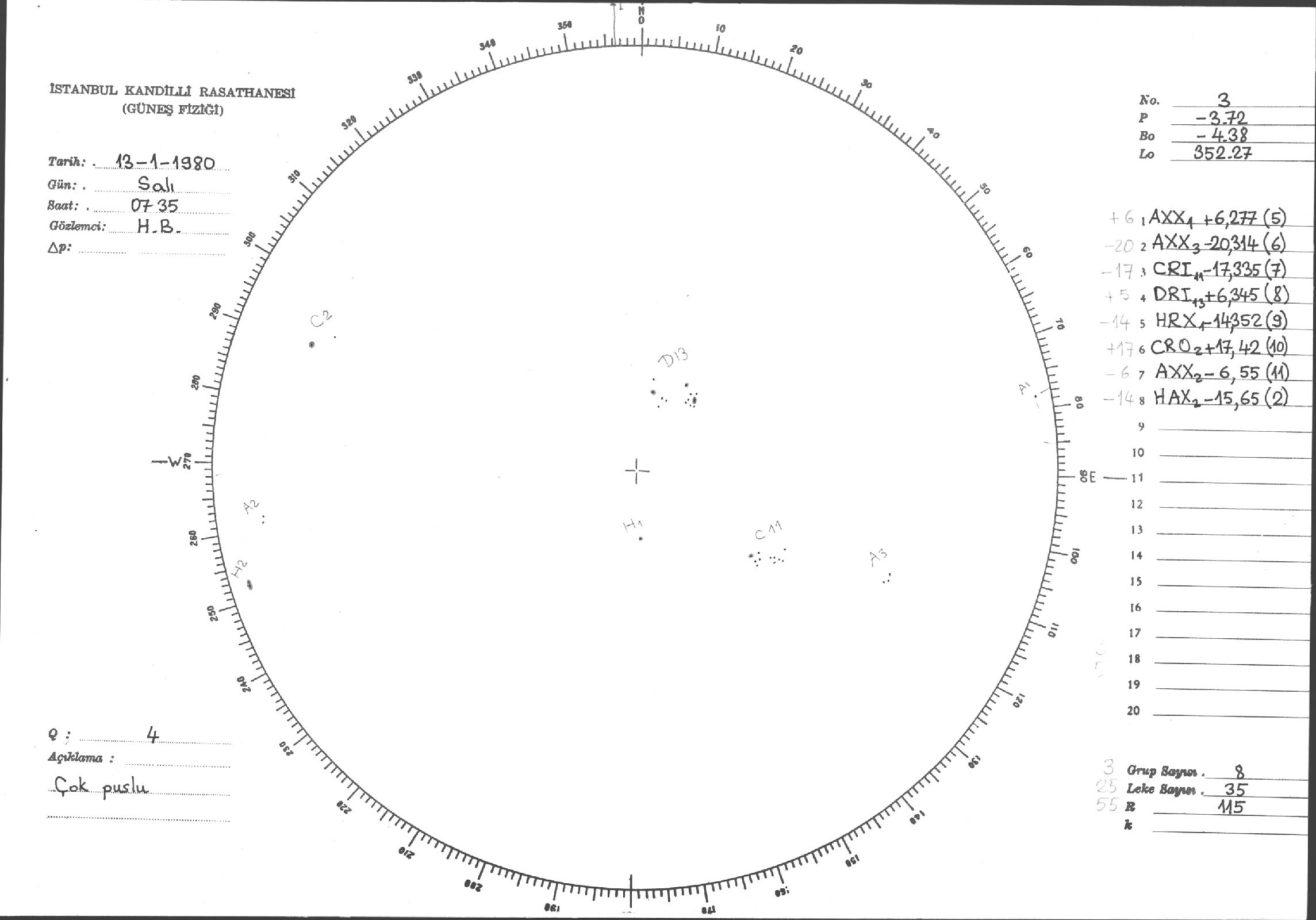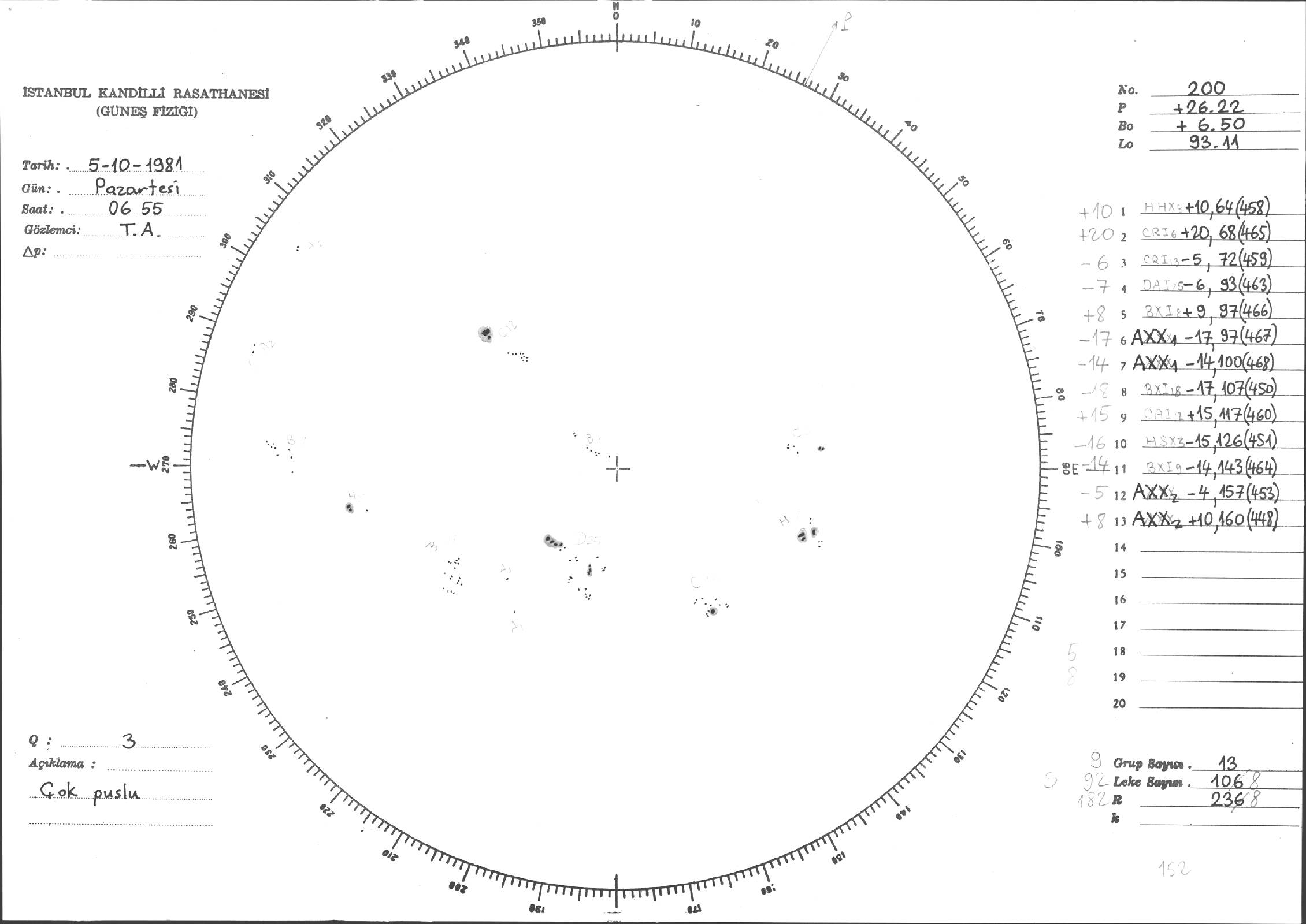 Güneş Lekesi Çizimleri / Kandilli Sunspot Drawings