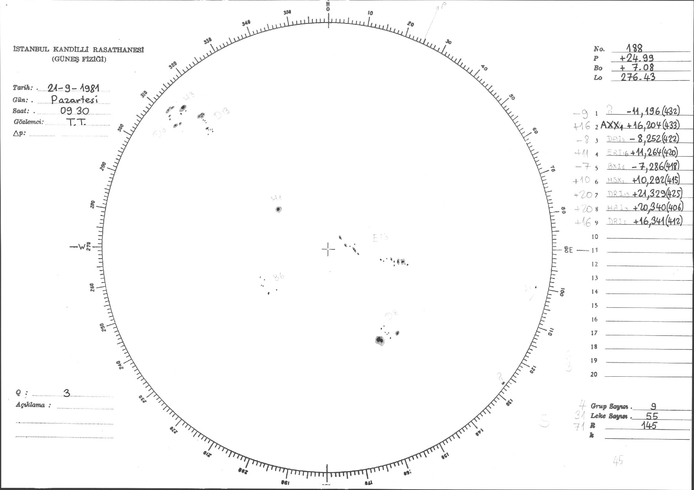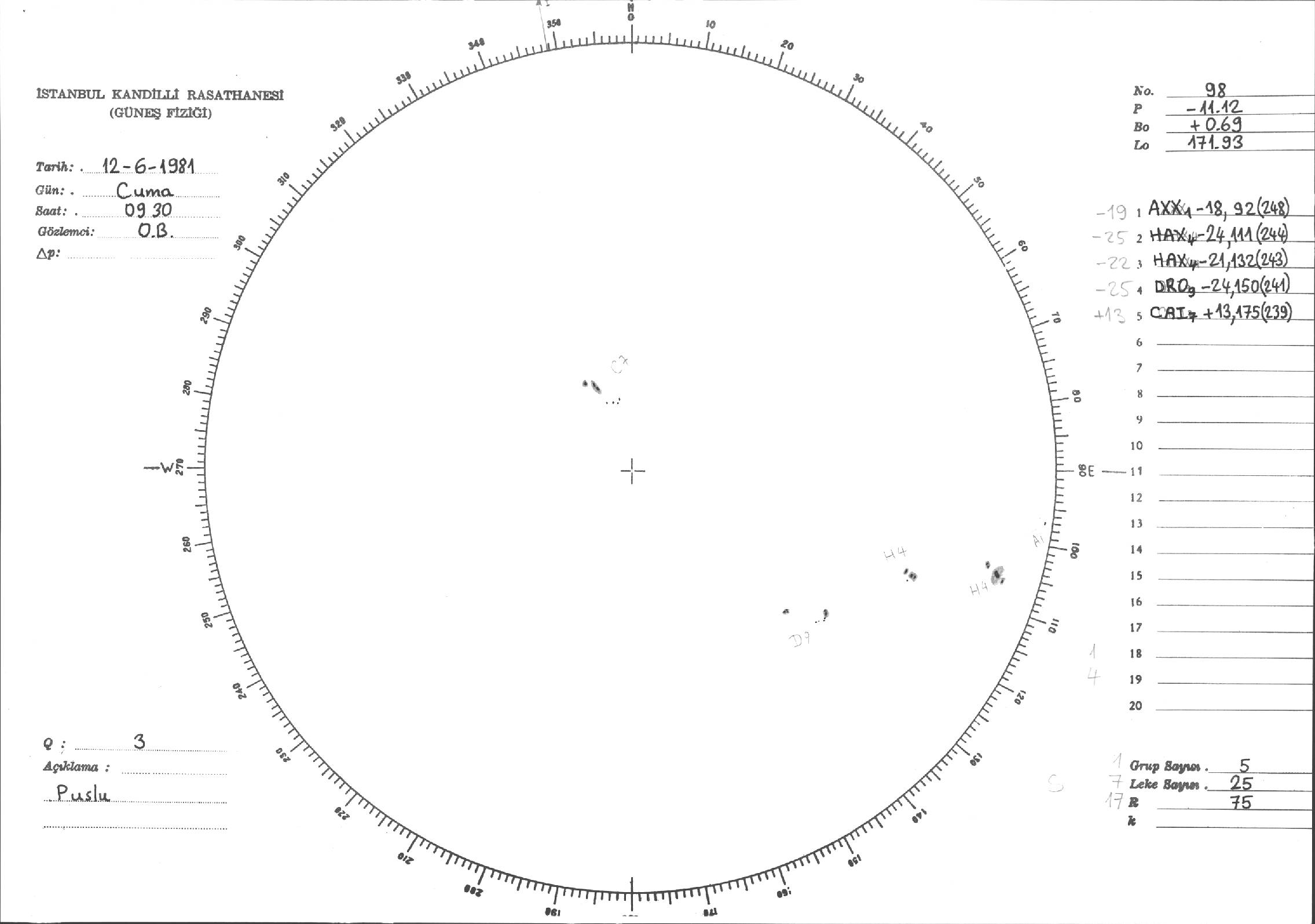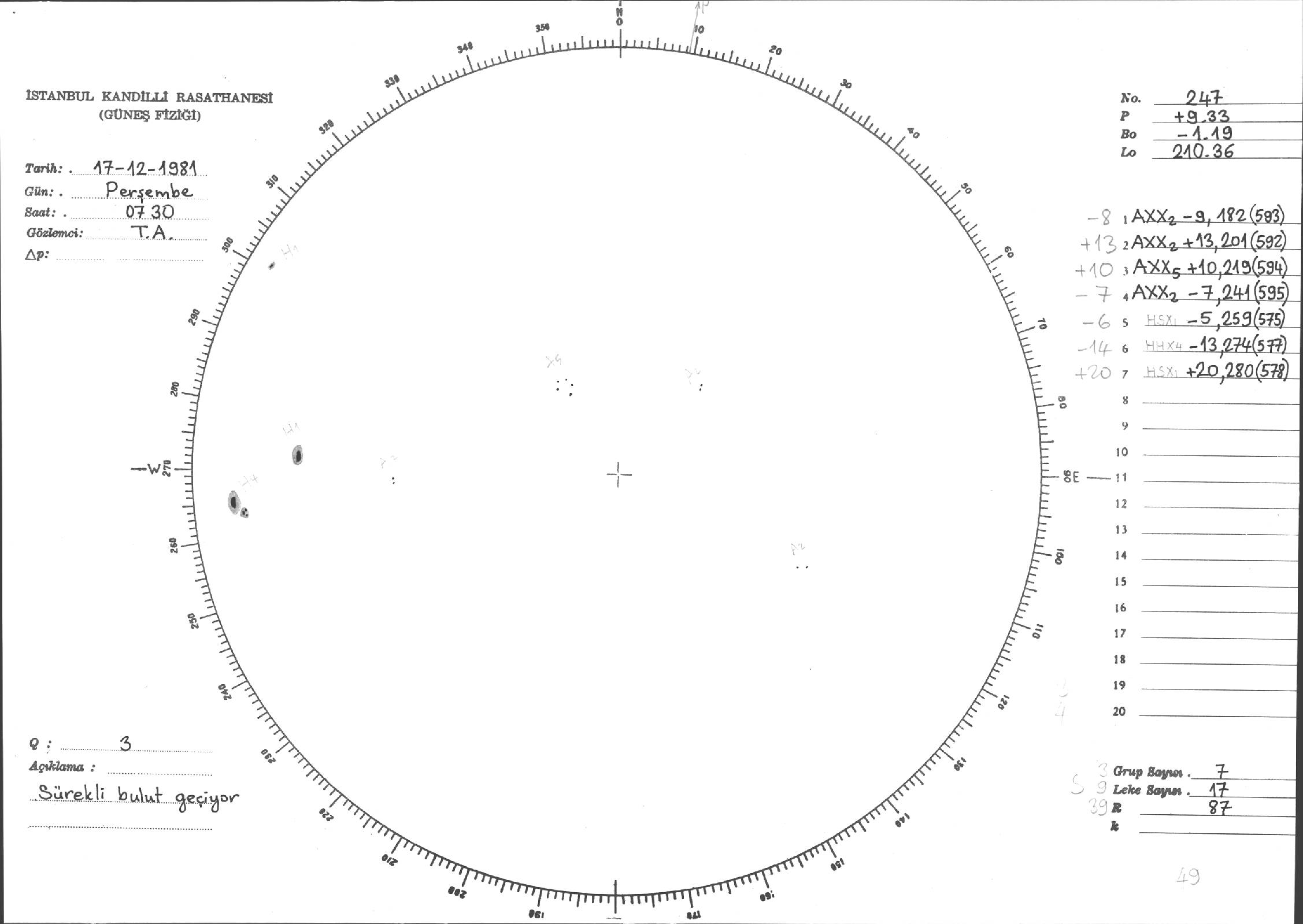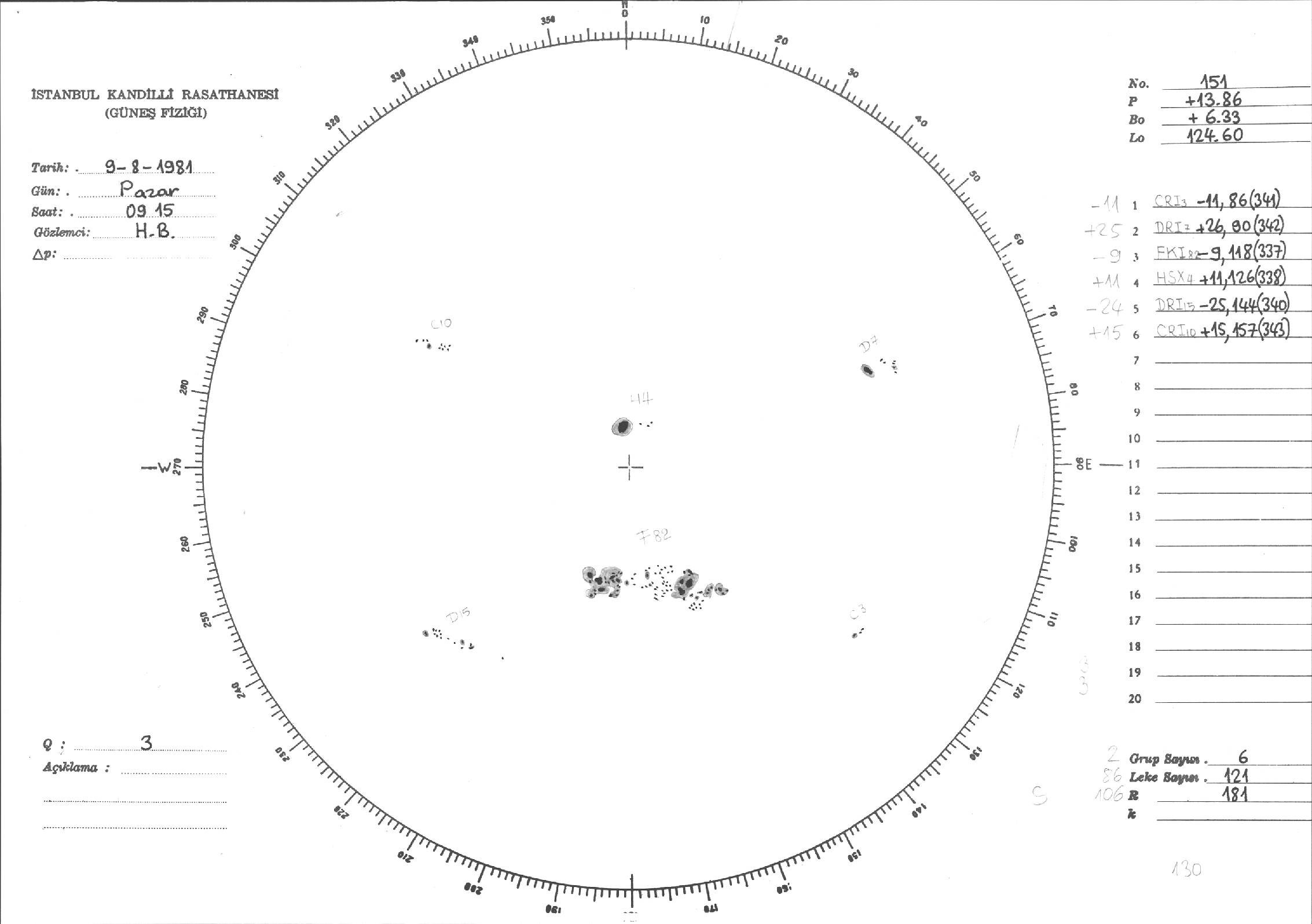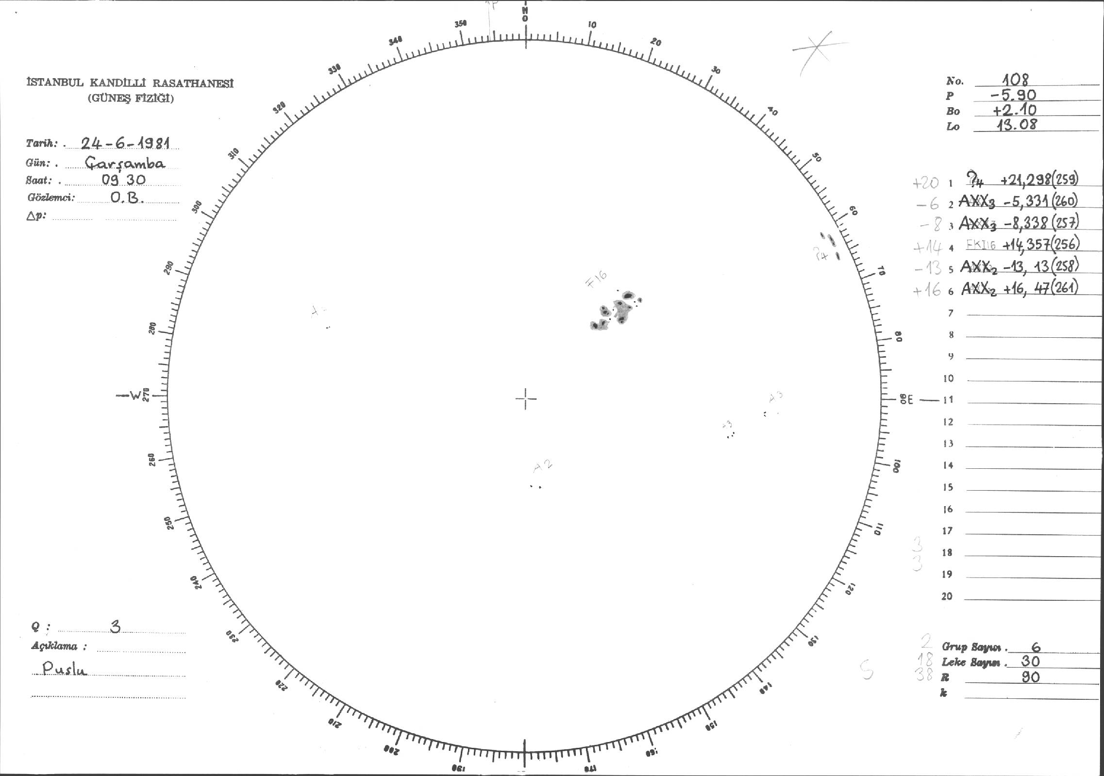Güneş Lekesi Çizimleri / Kandilli Sunspot Drawings