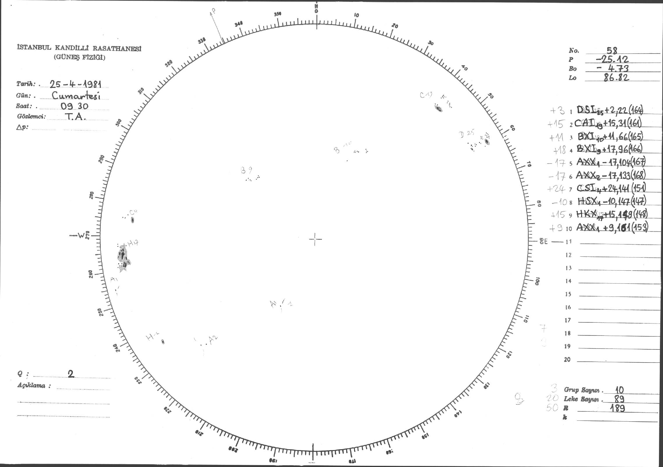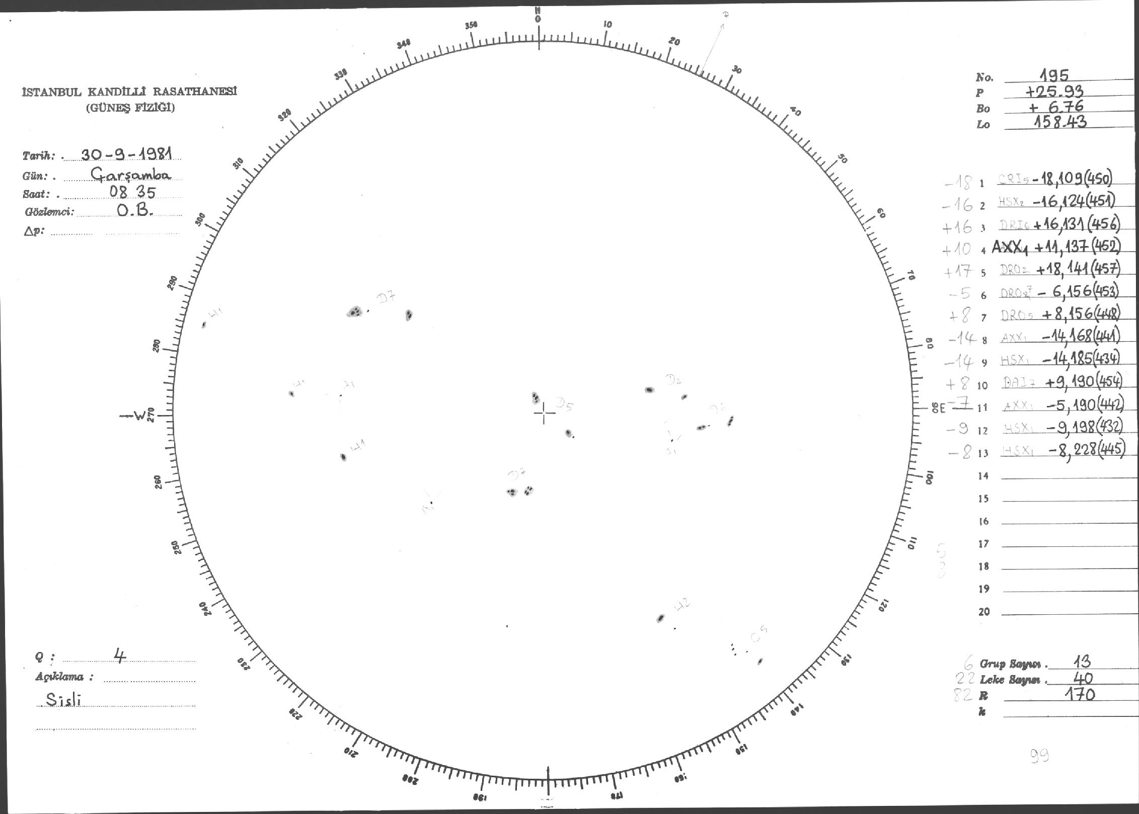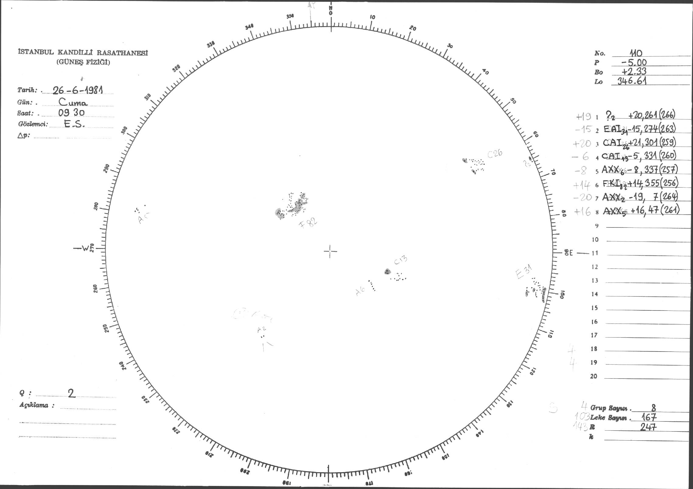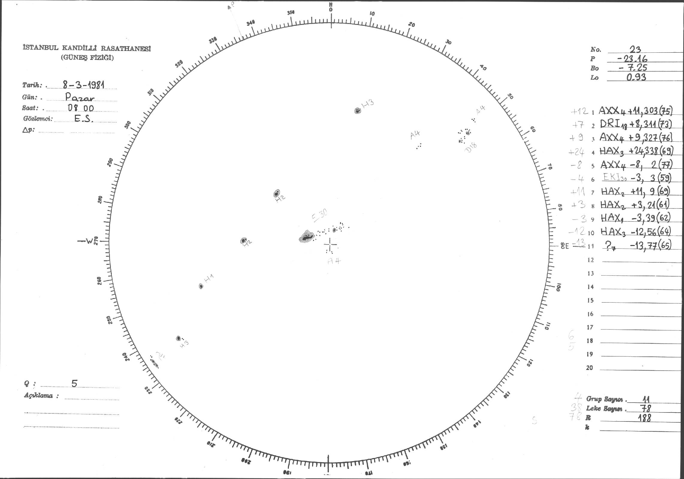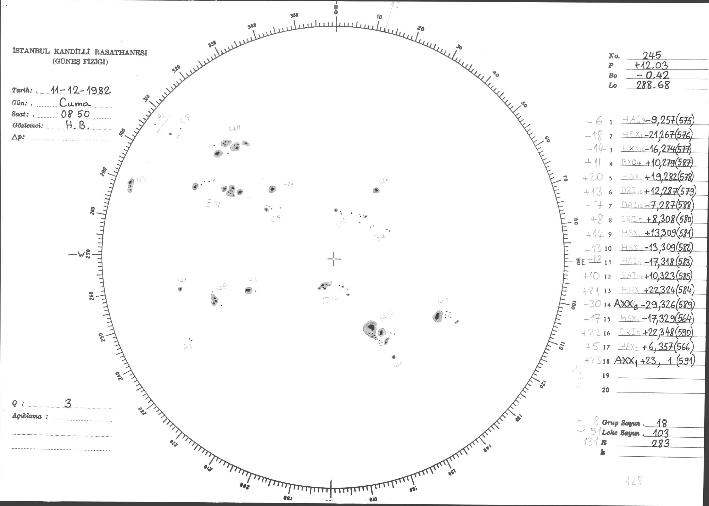 Güneş Lekesi Çizimleri / Kandilli Sunspot Drawings