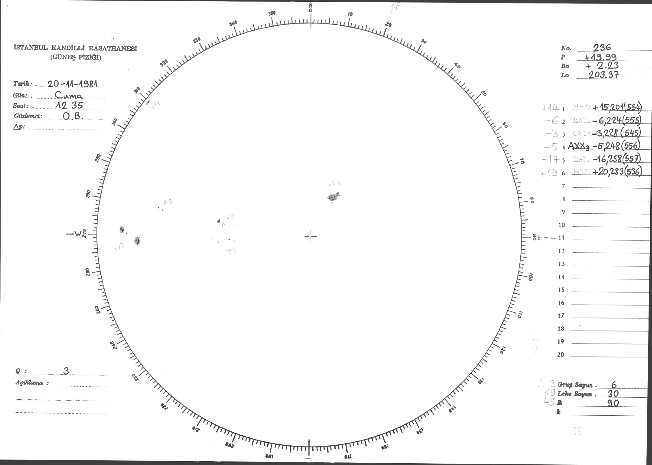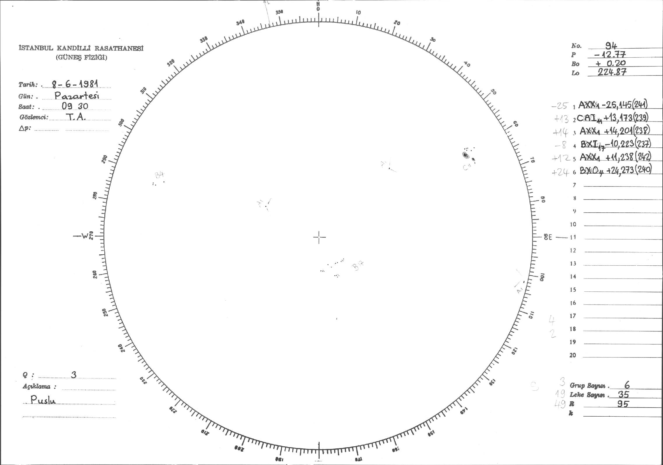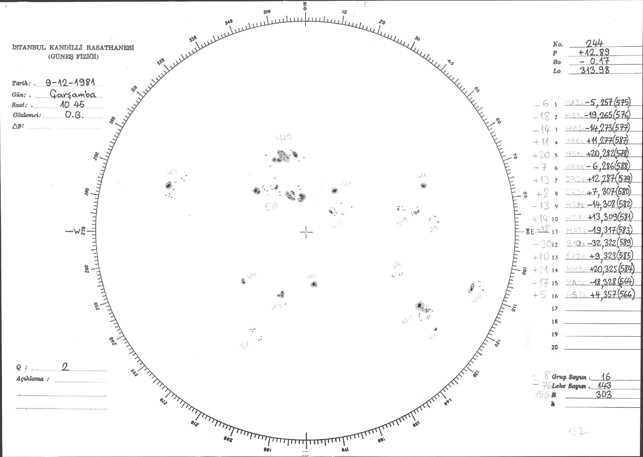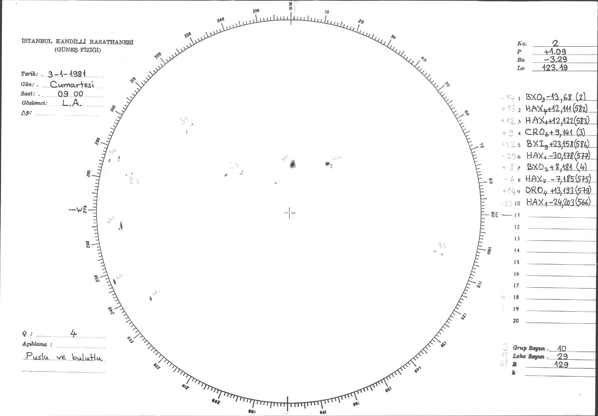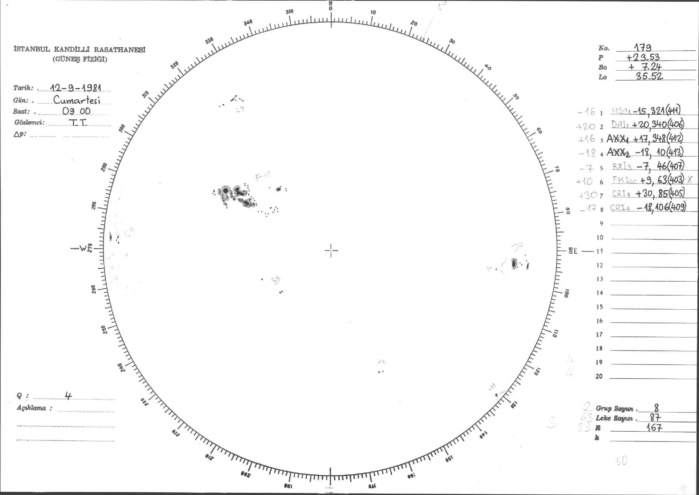 Güneş Lekesi Çizimleri / Kandilli Sunspot Drawings