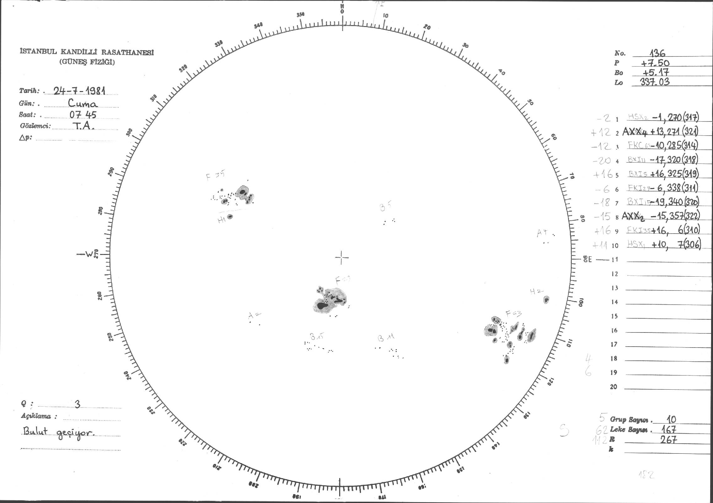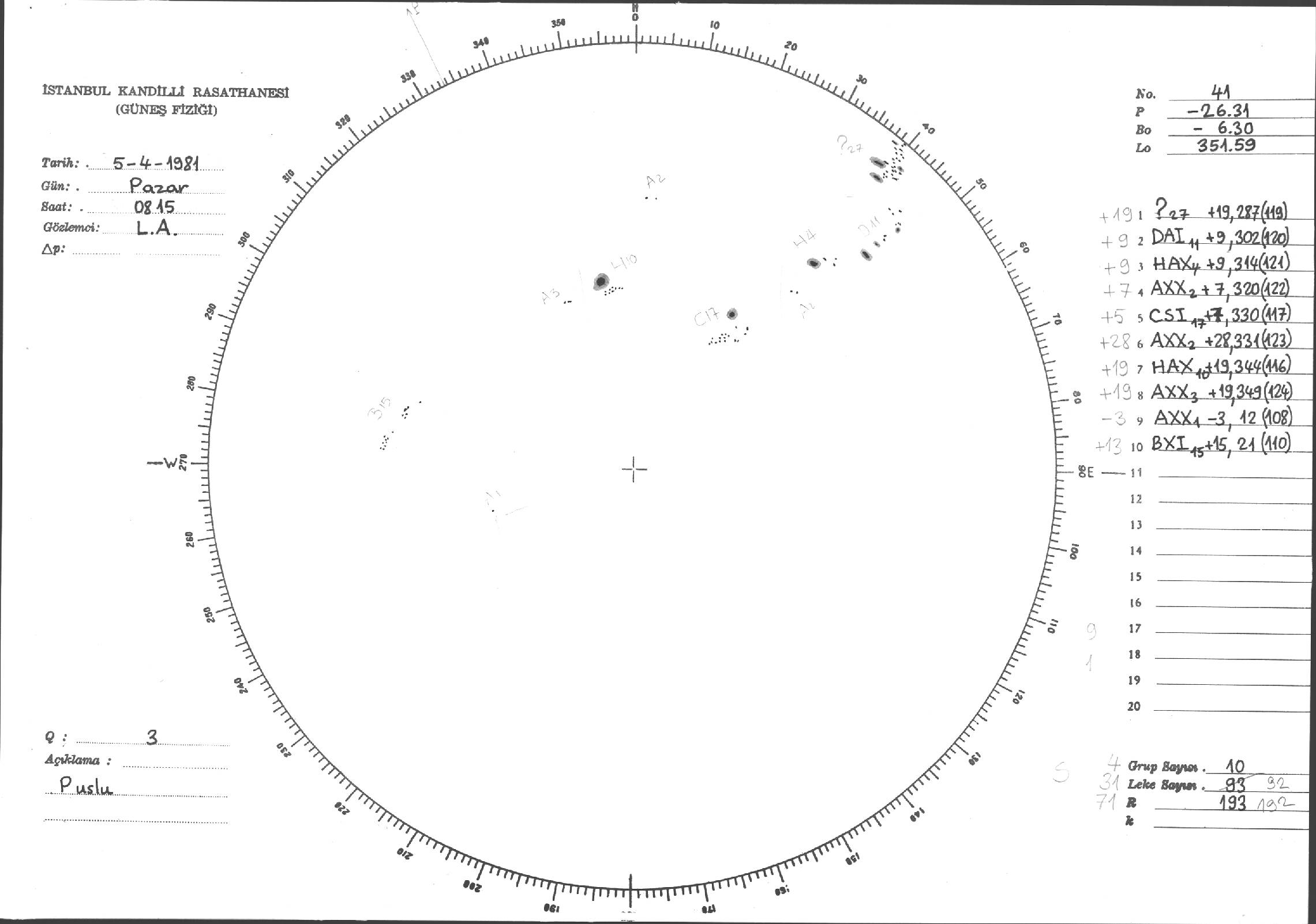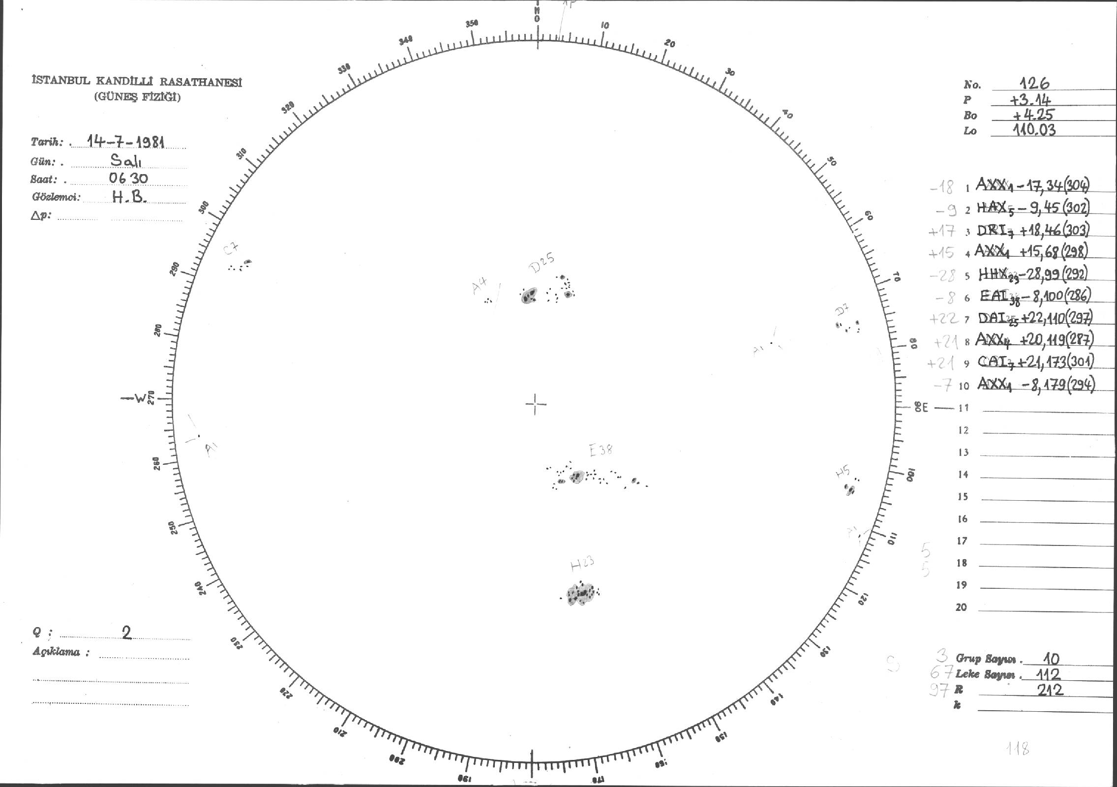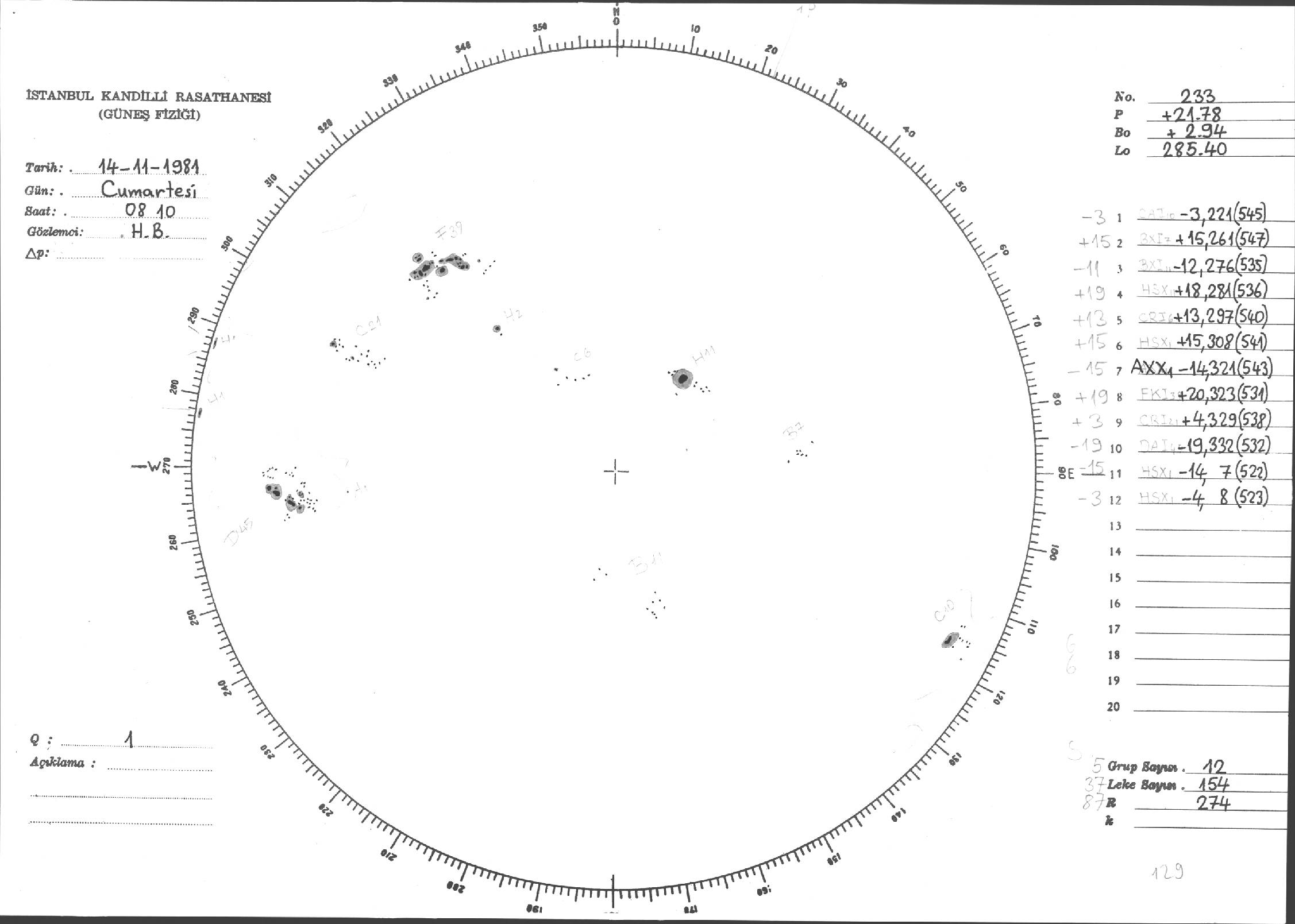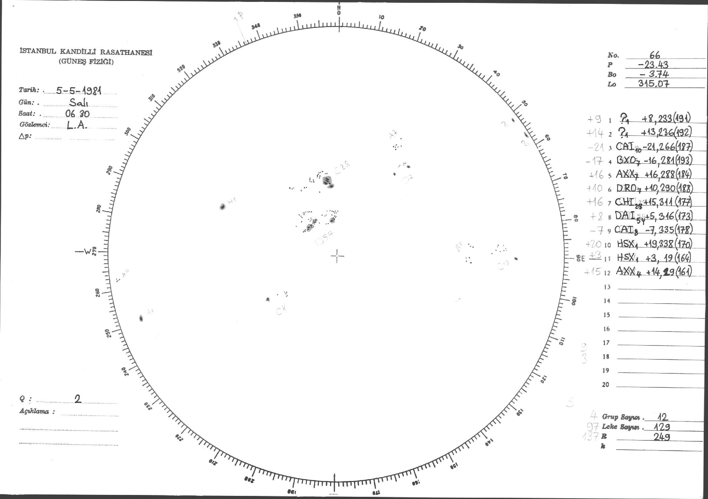 Güneş Lekesi Çizimleri / Kandilli Sunspot Drawings