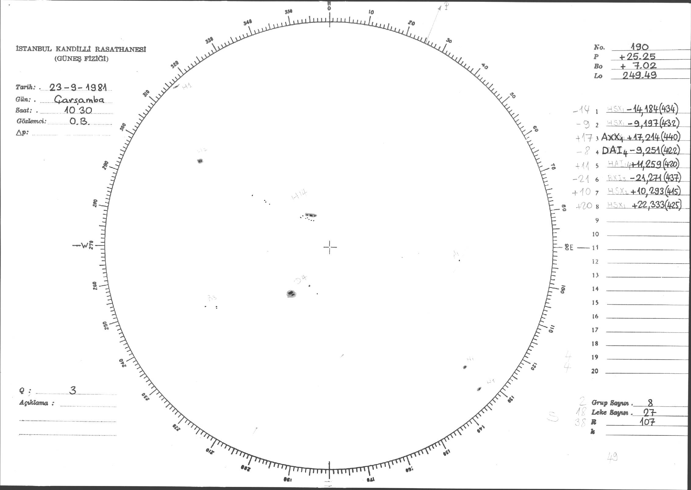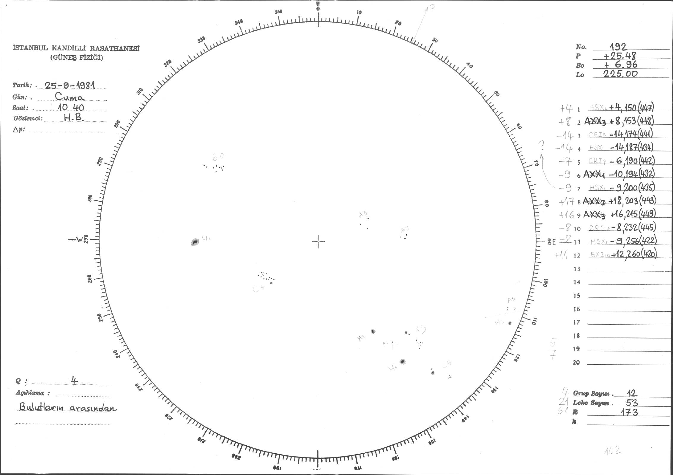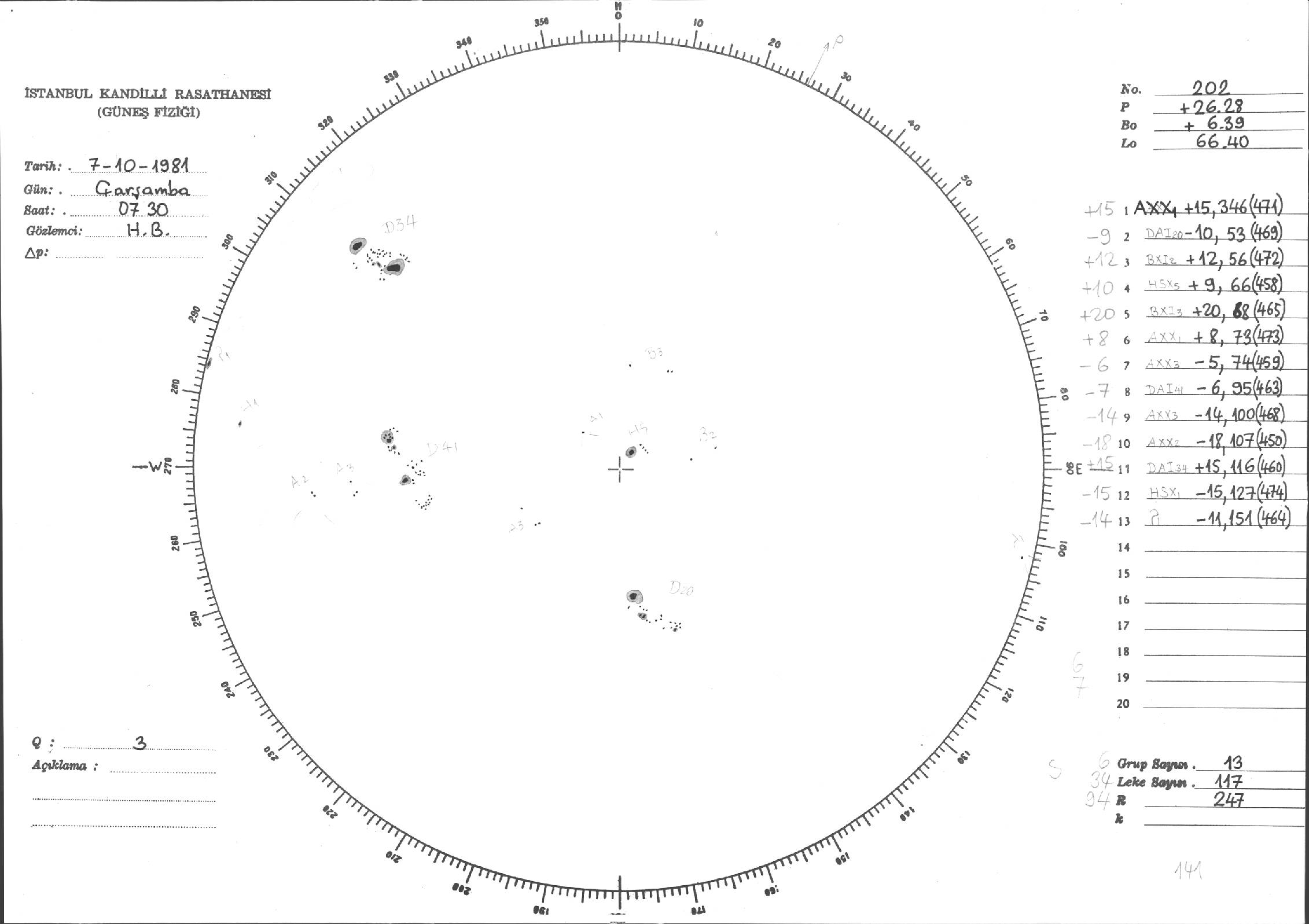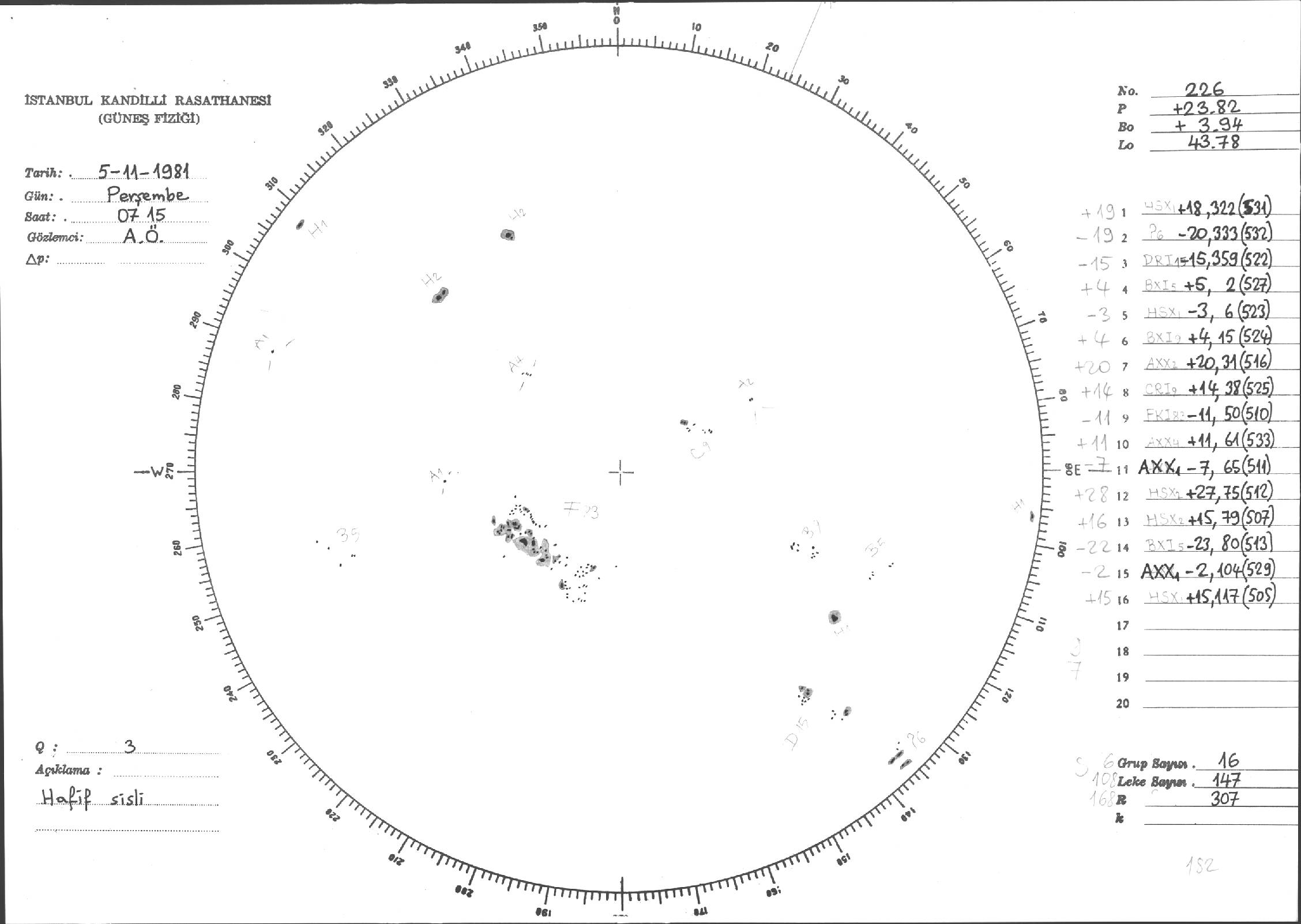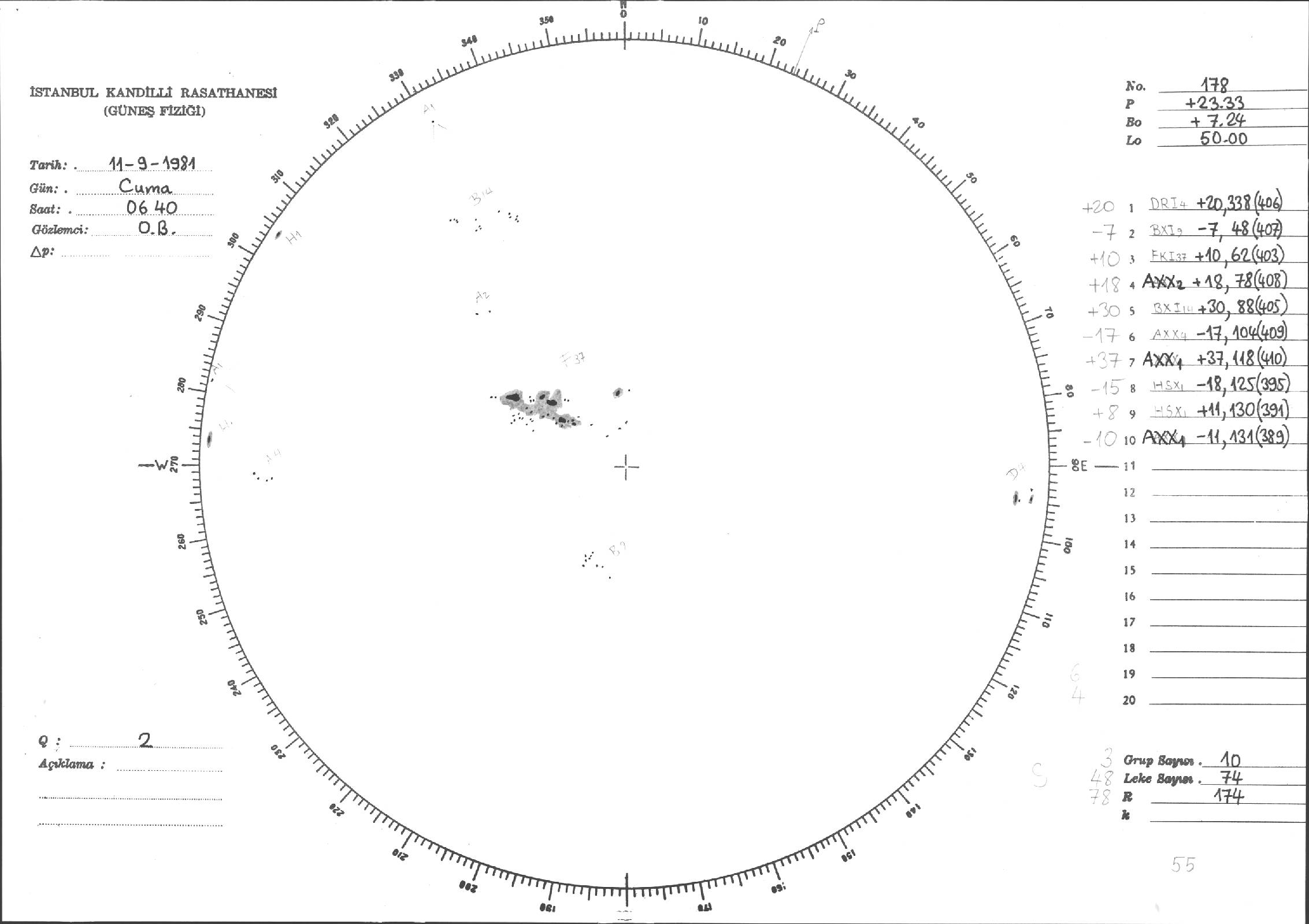 Güneş Lekesi Çizimleri / Kandilli Sunspot Drawings