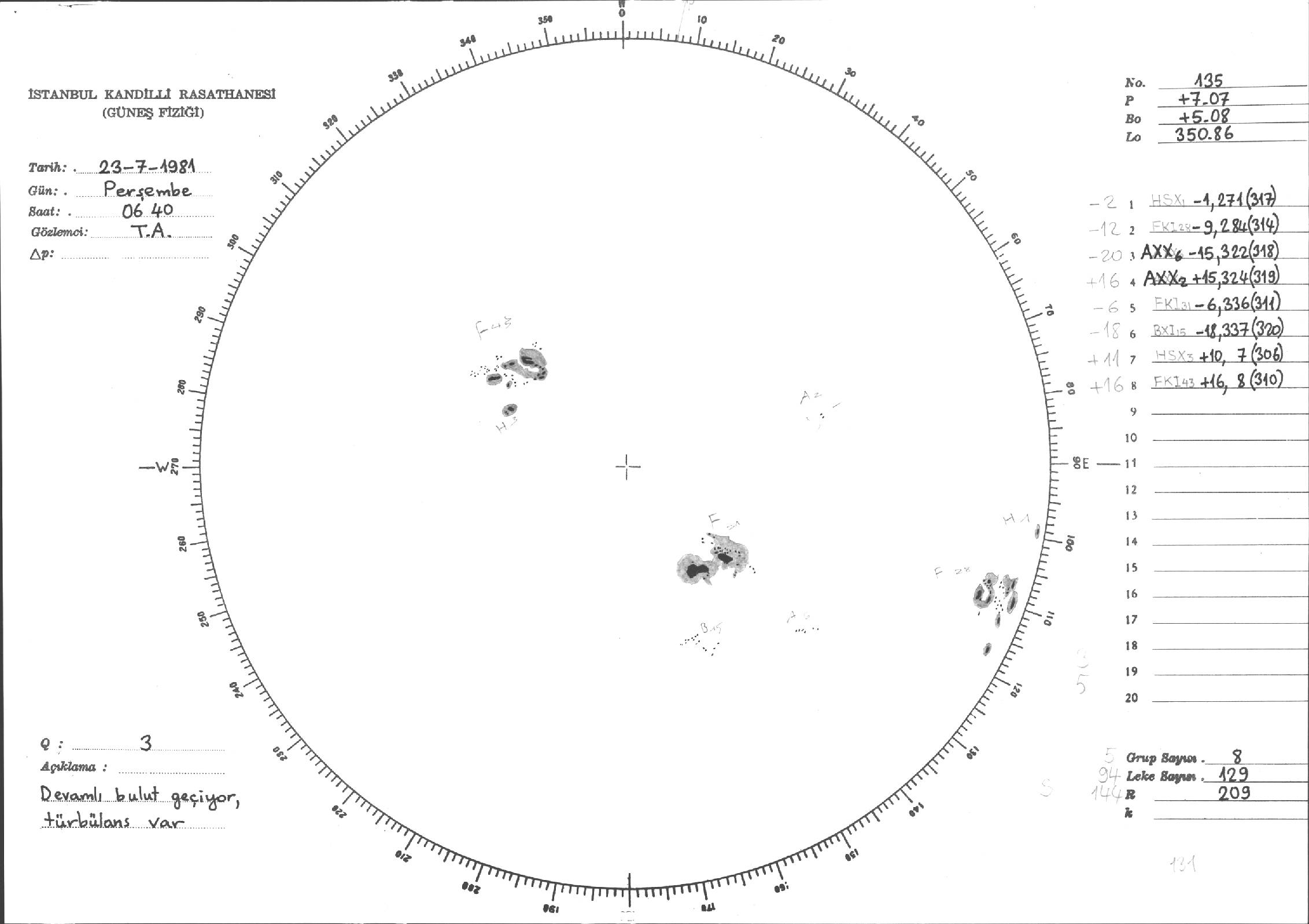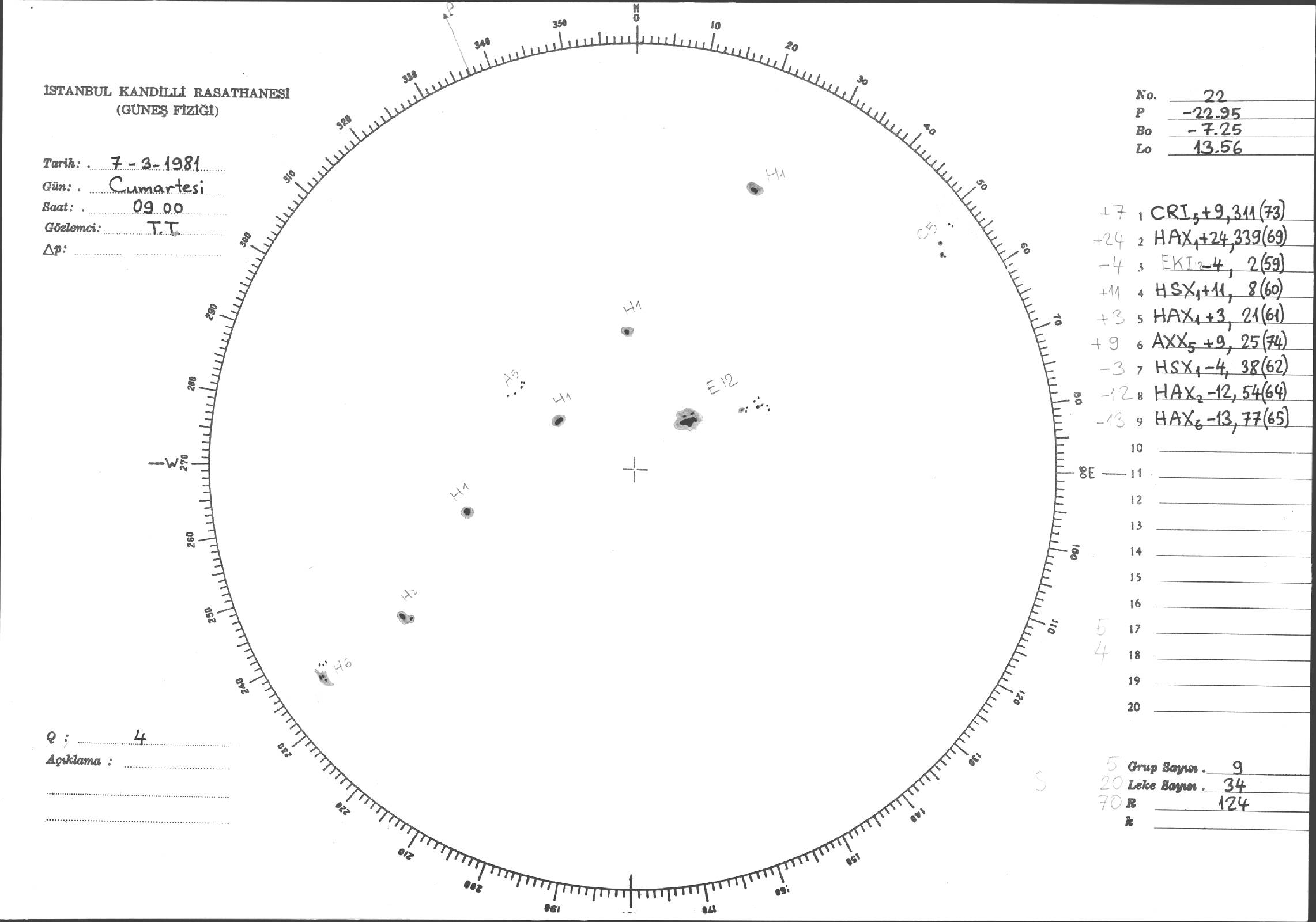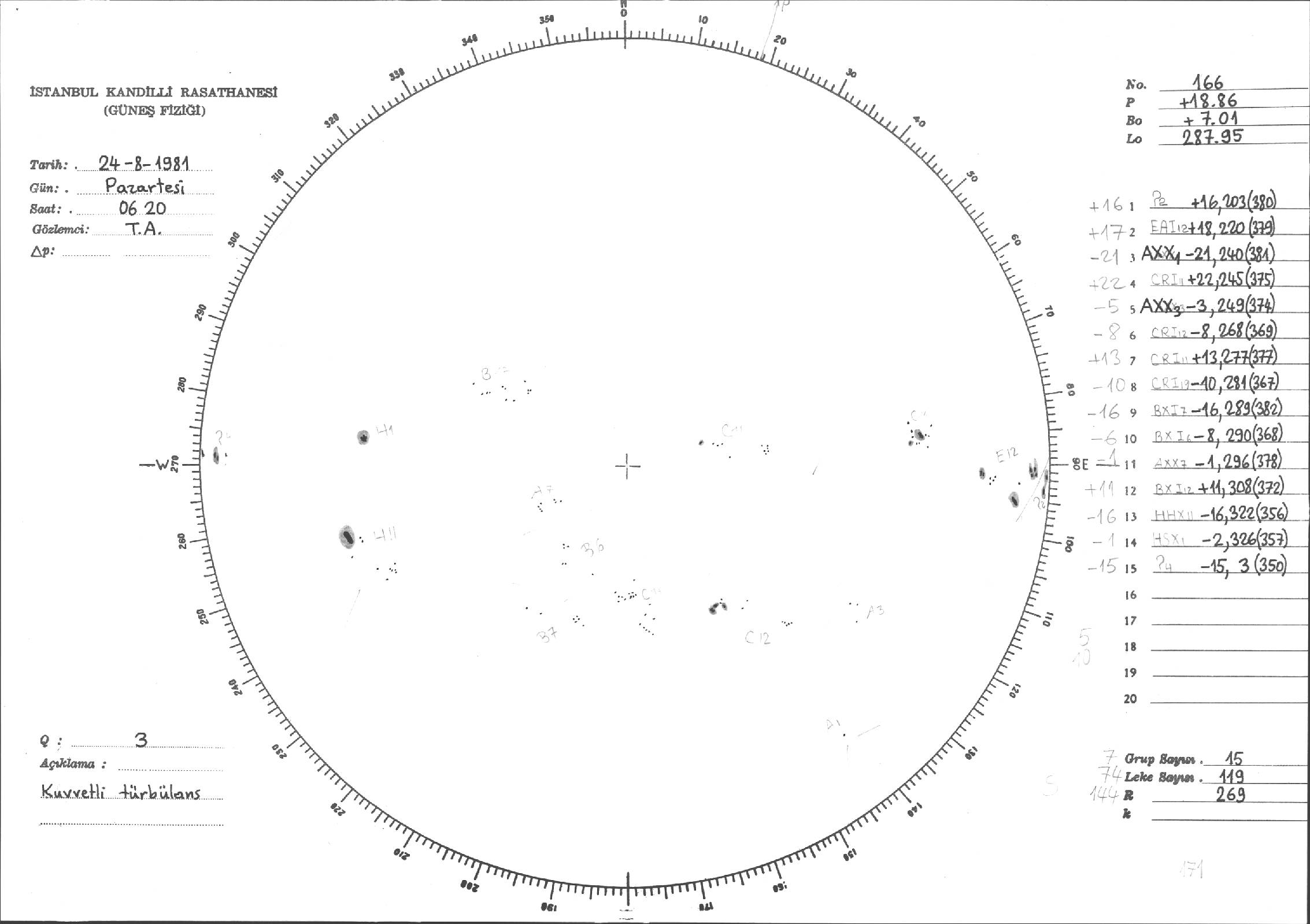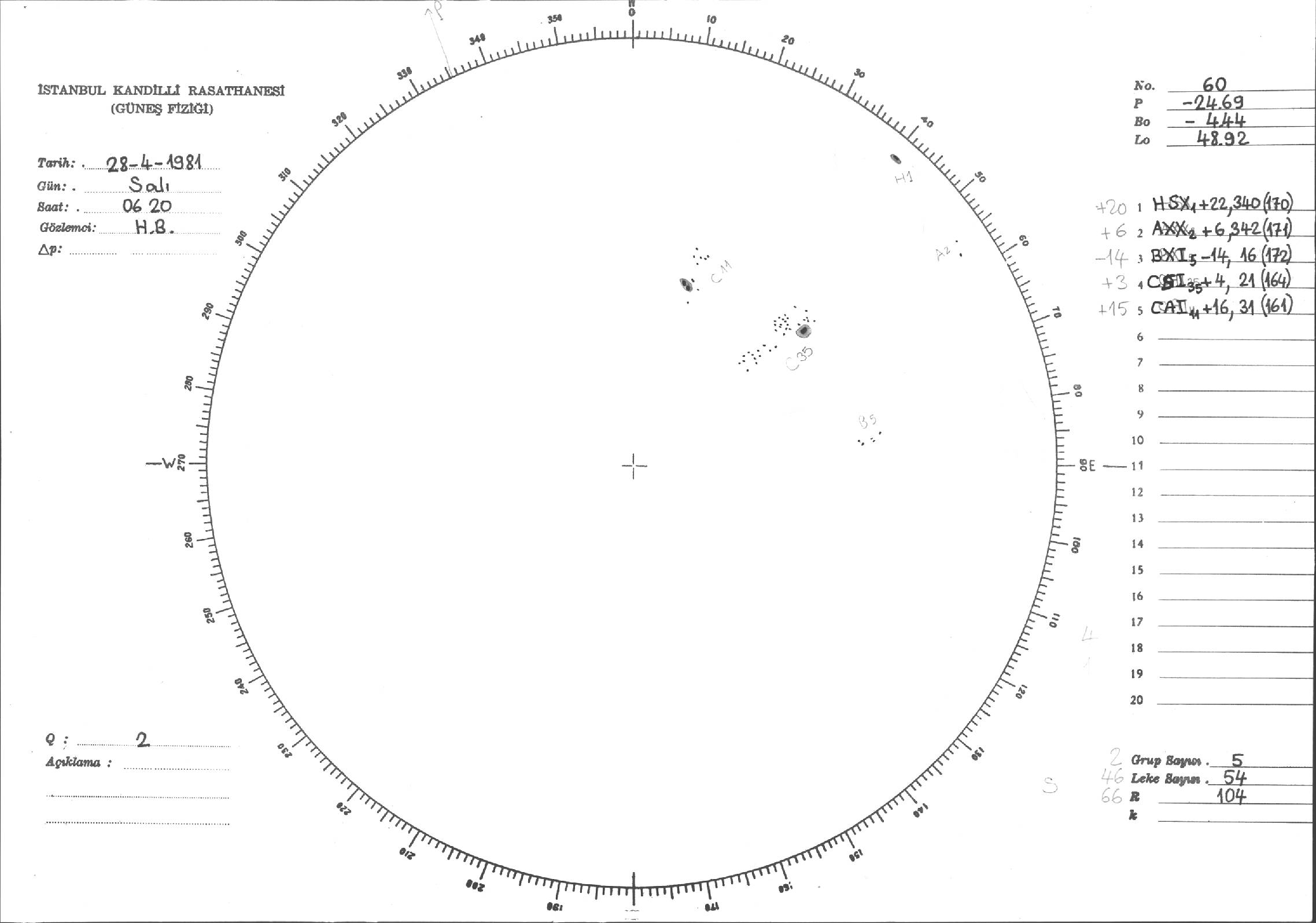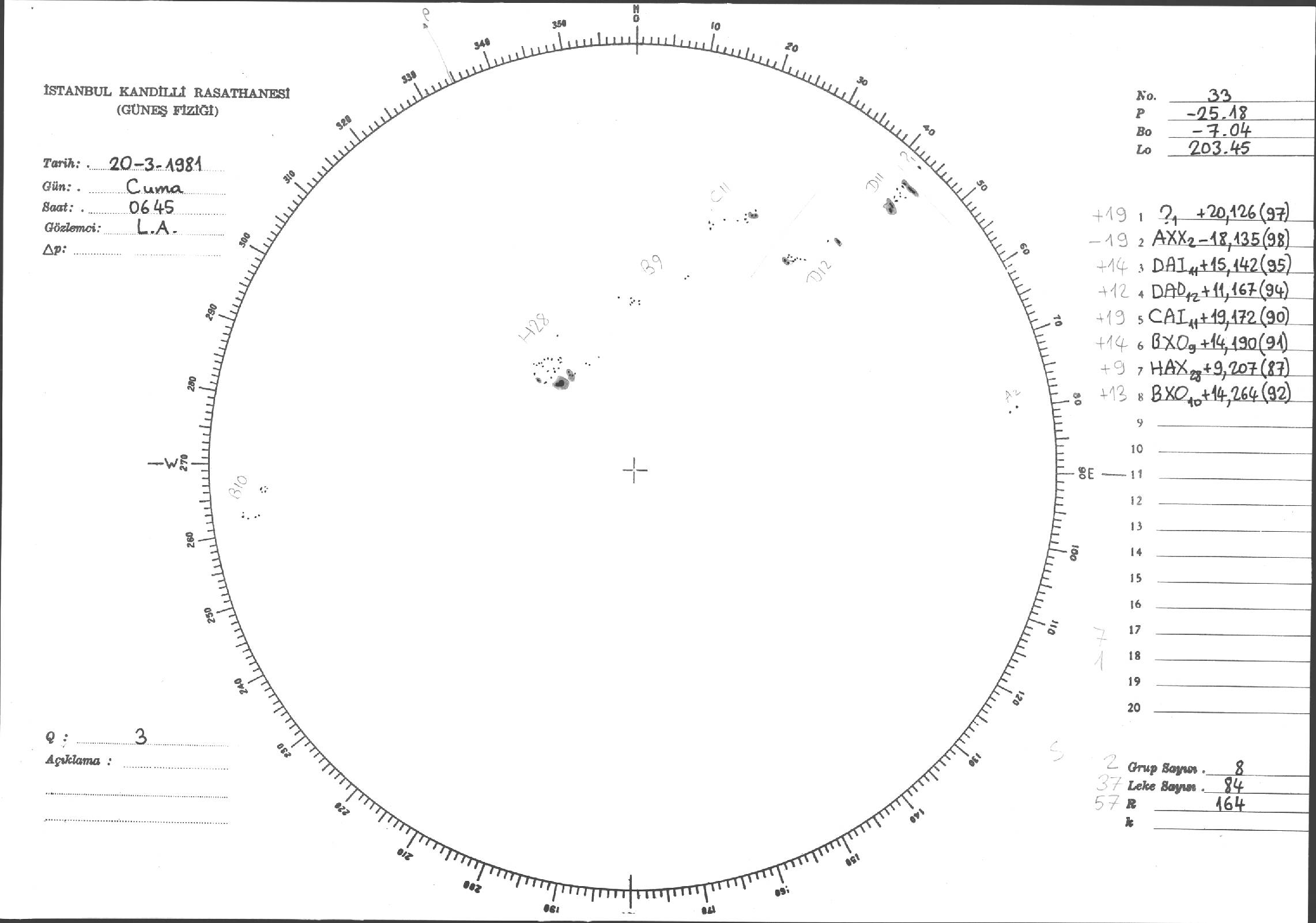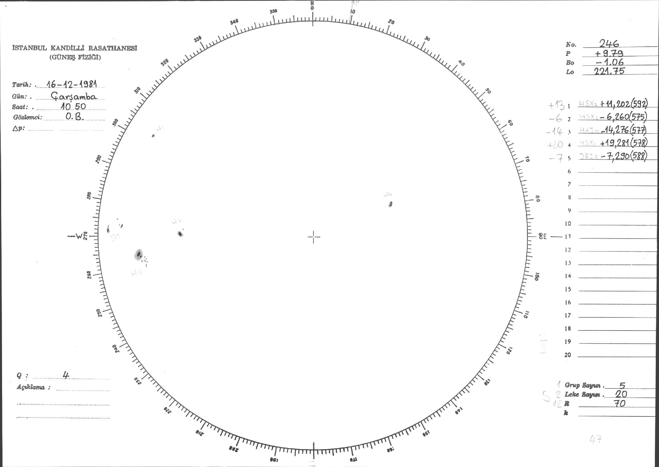 Güneş Lekesi Çizimleri / Kandilli Sunspot Drawings