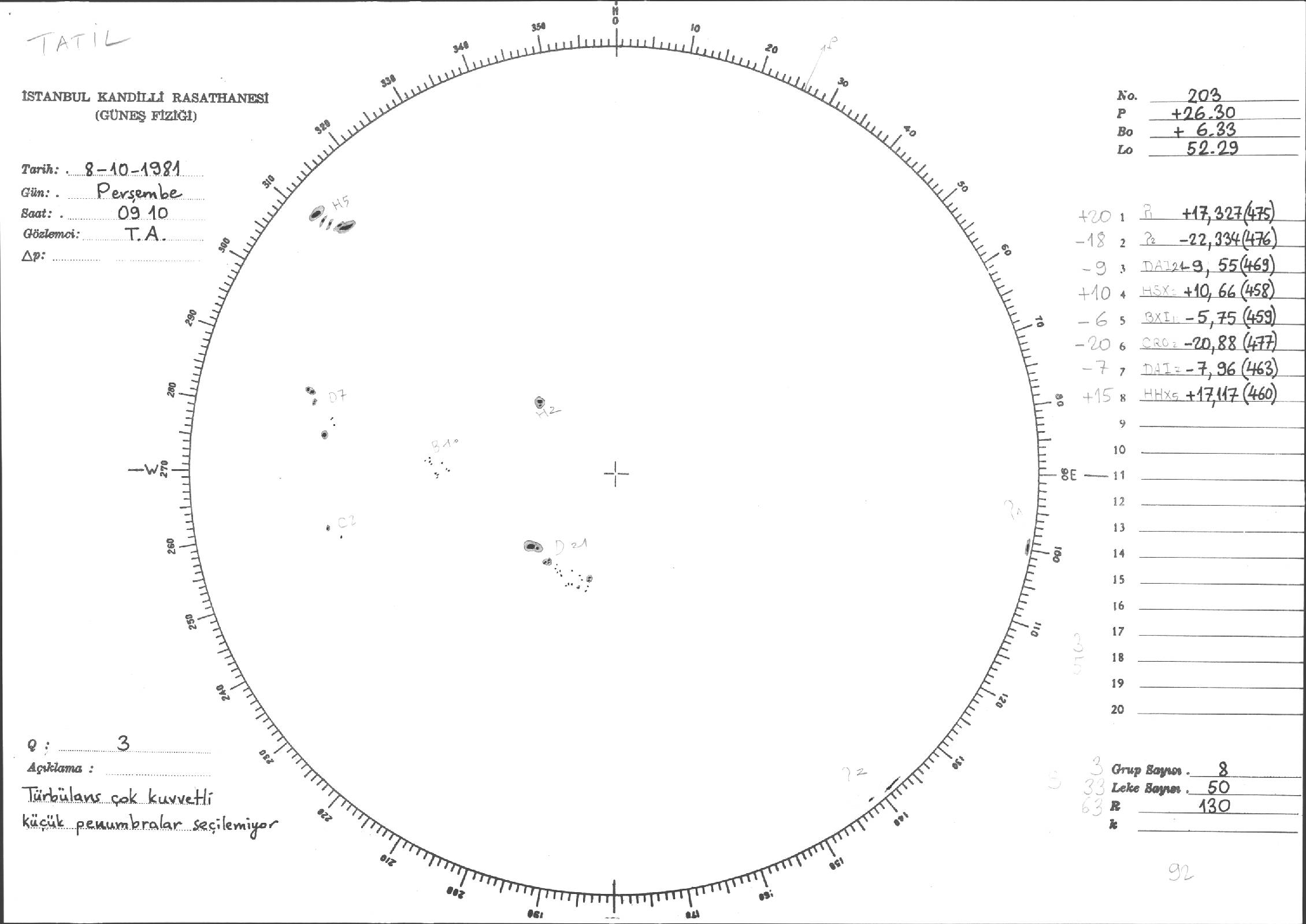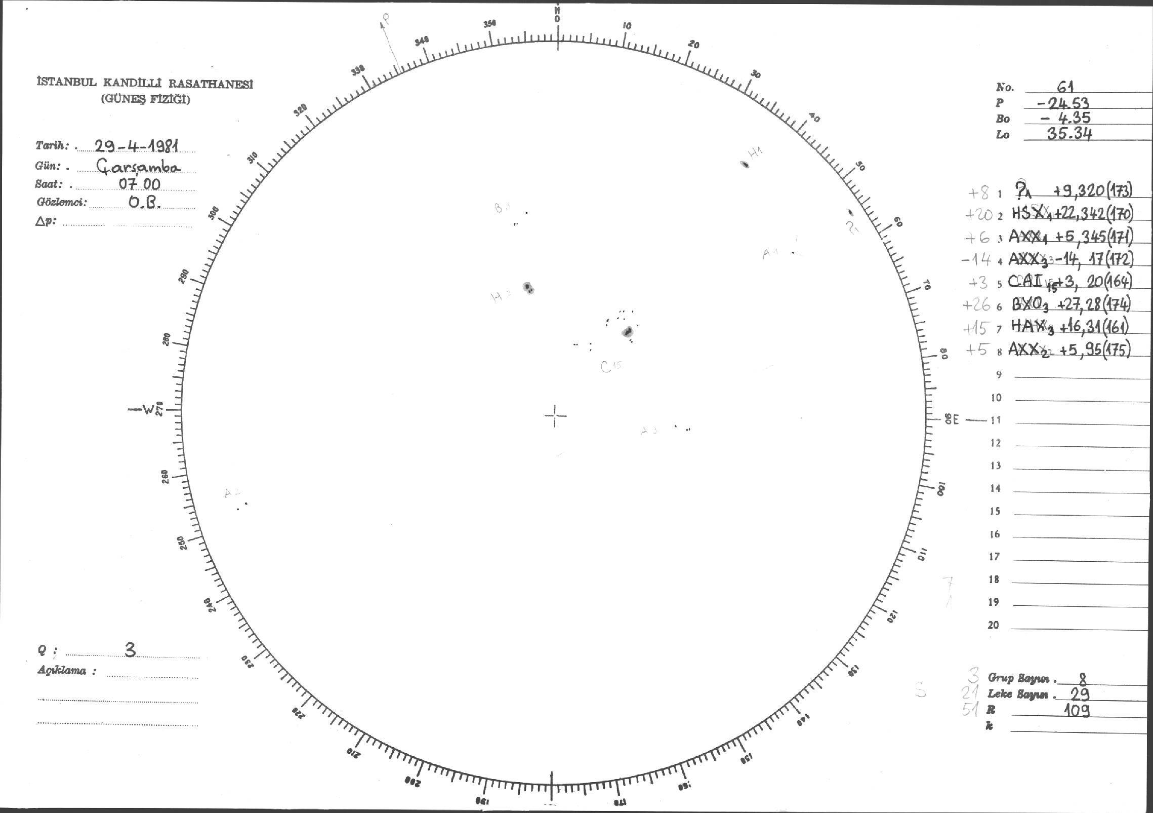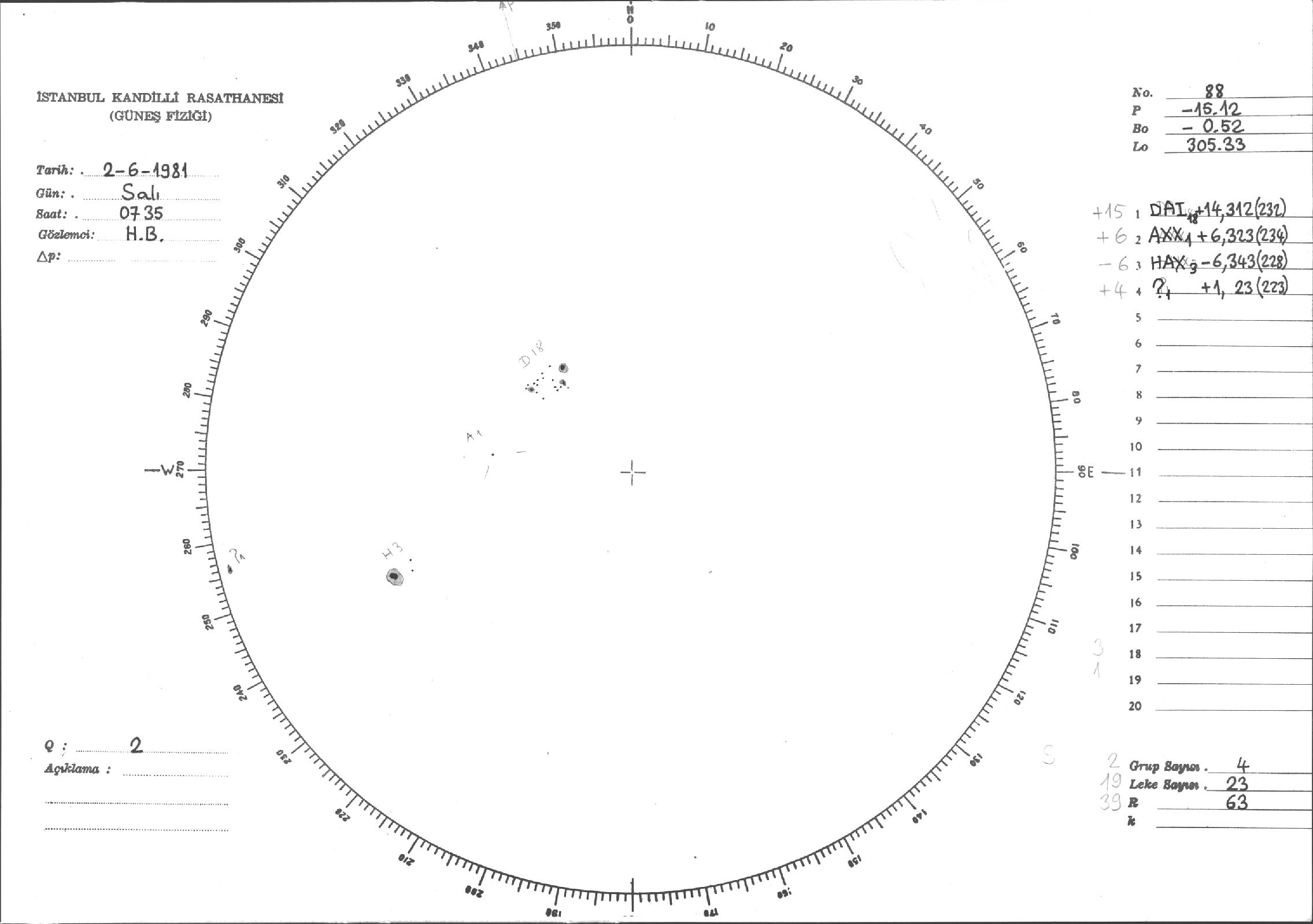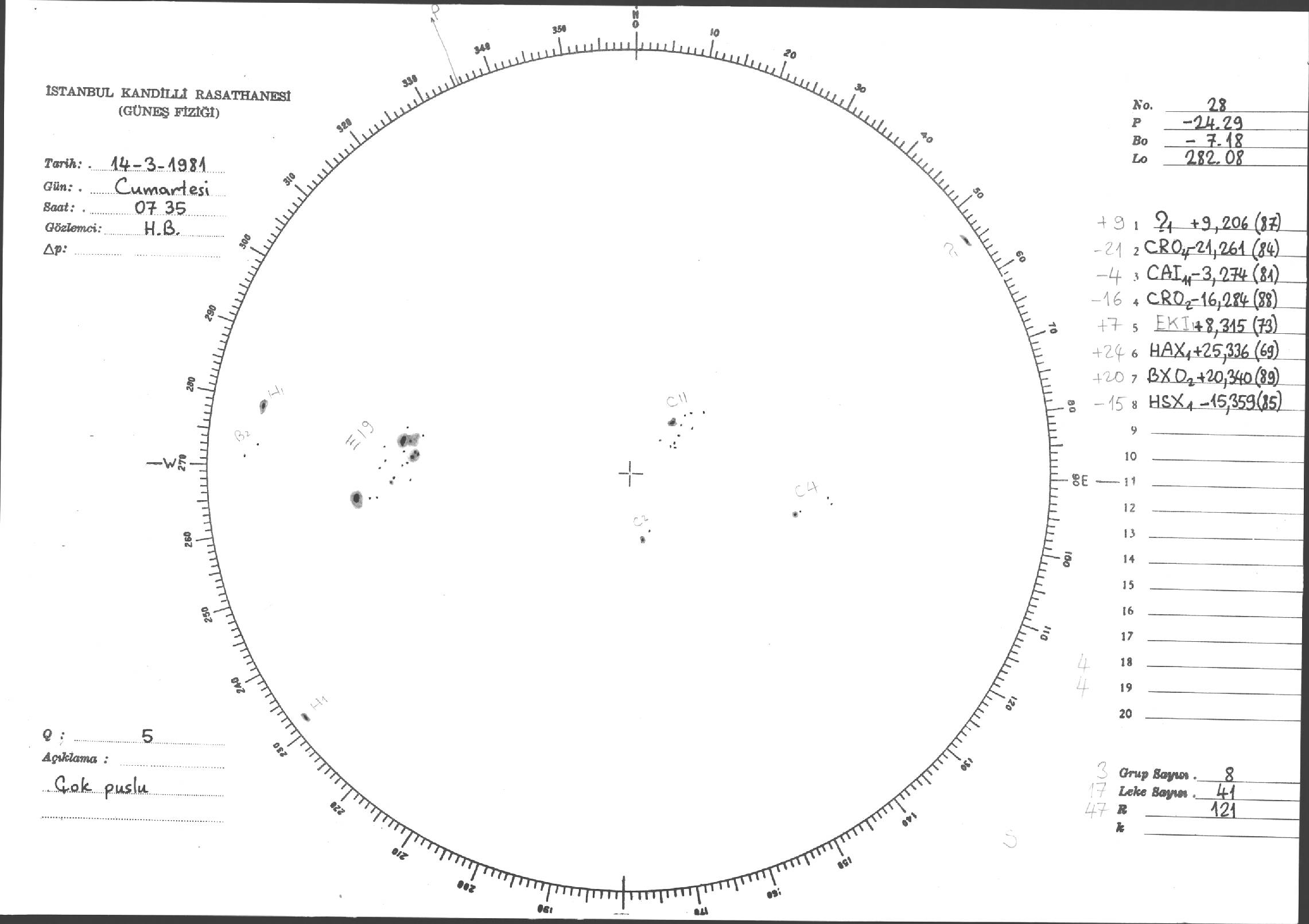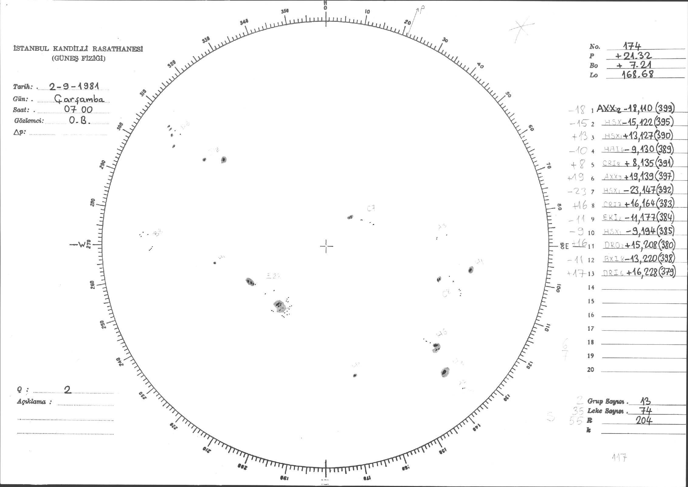 Güneş Lekesi Çizimleri / Kandilli Sunspot Drawings