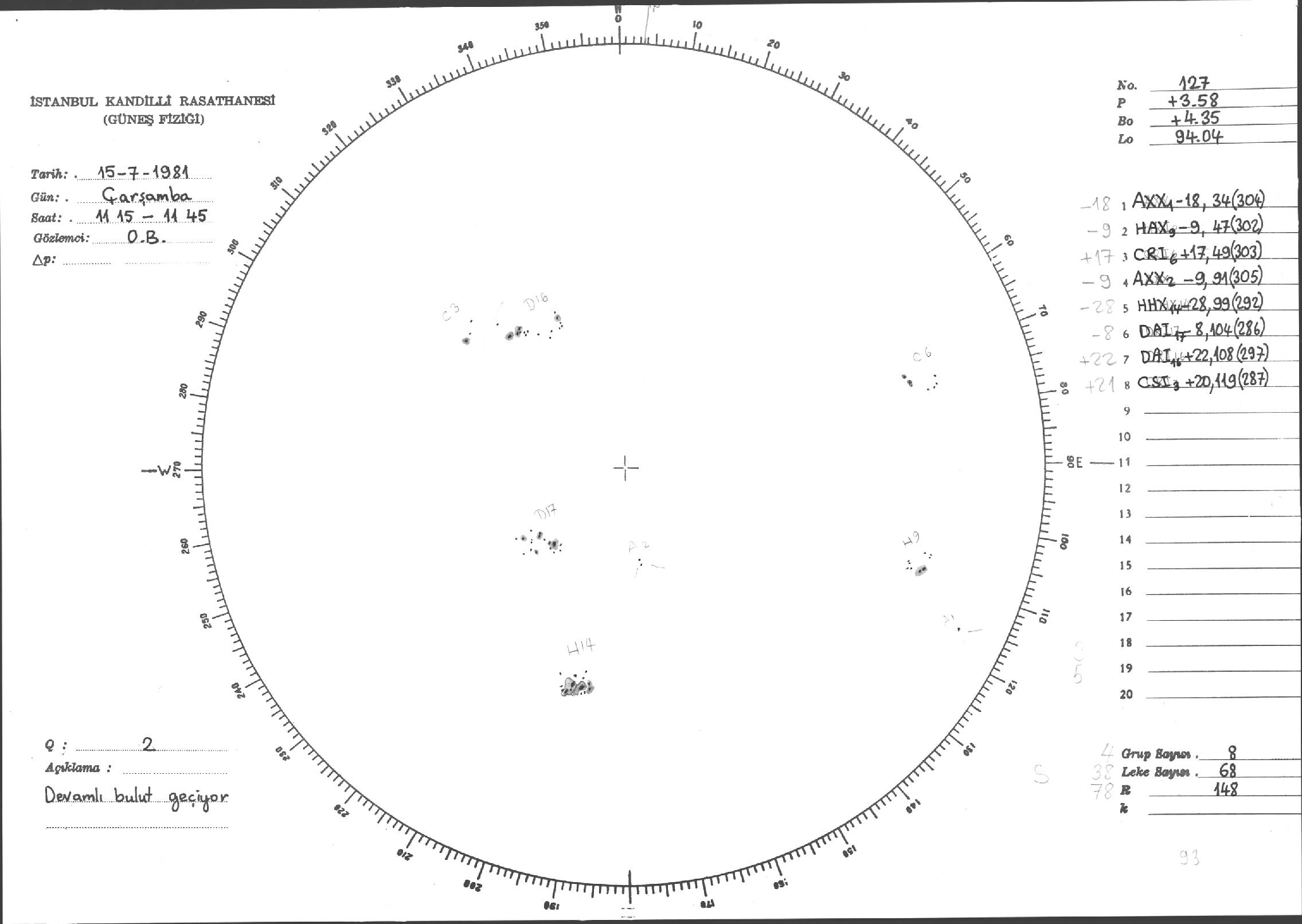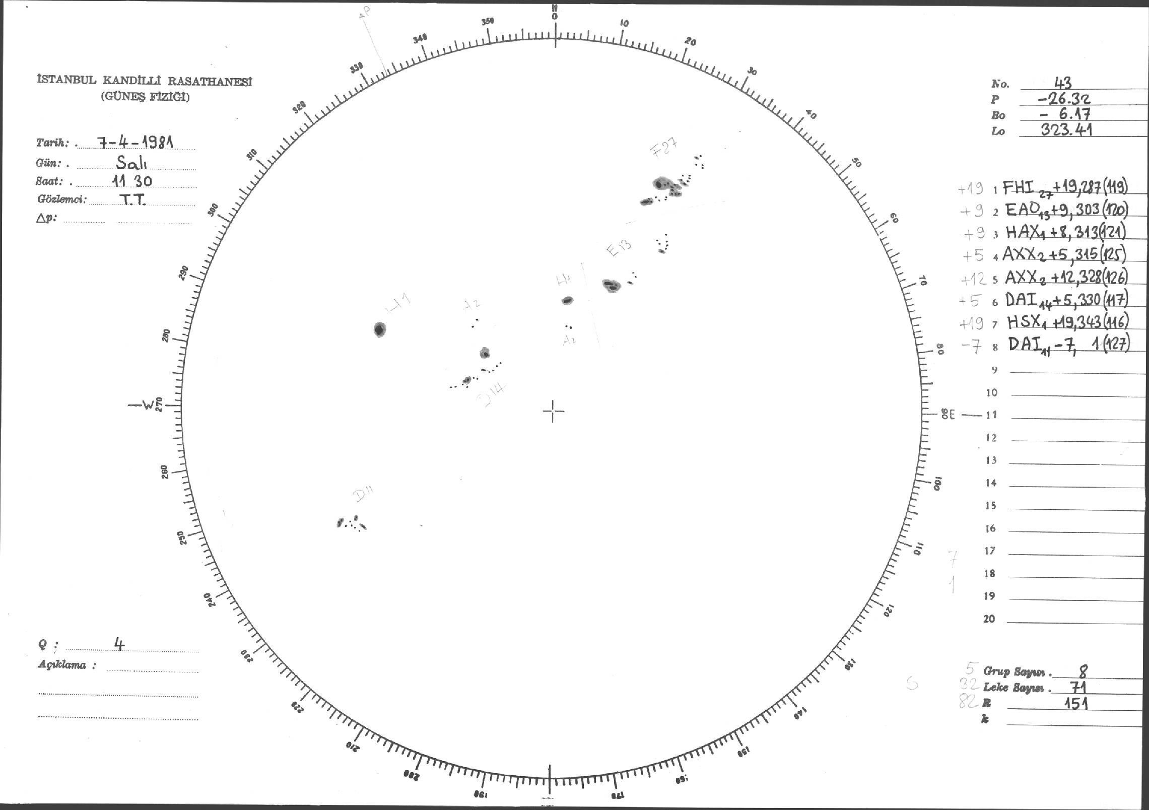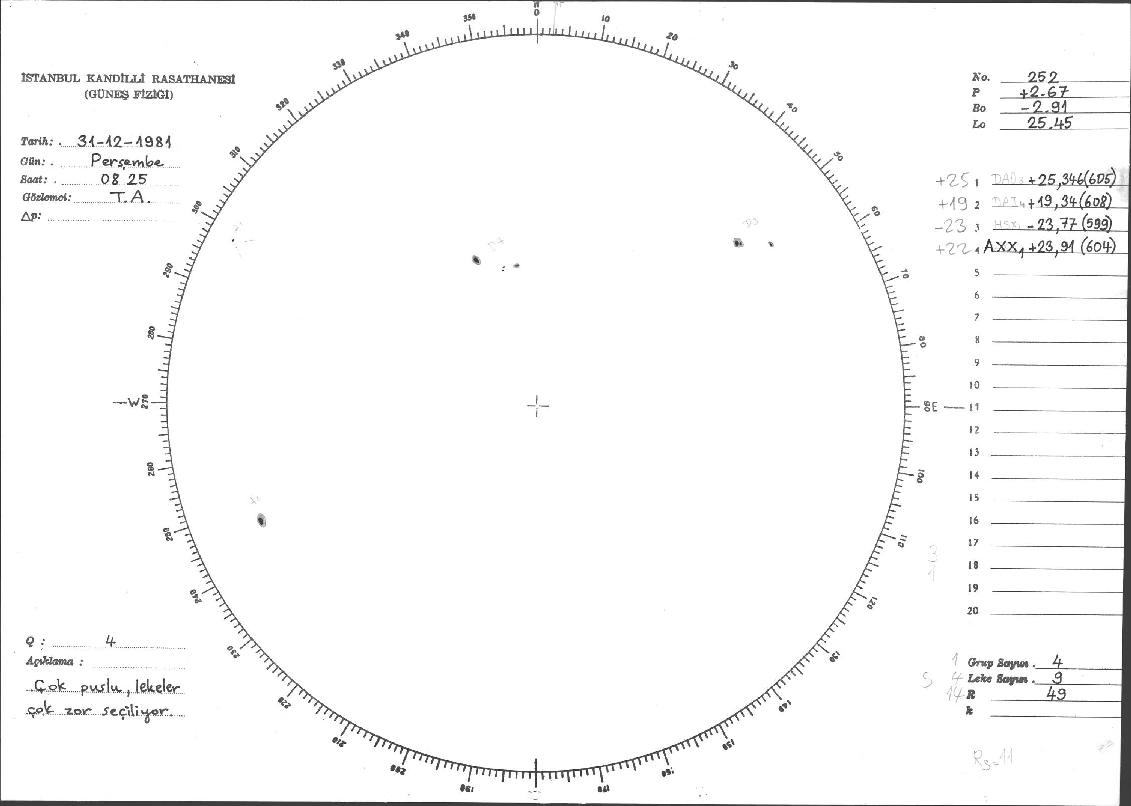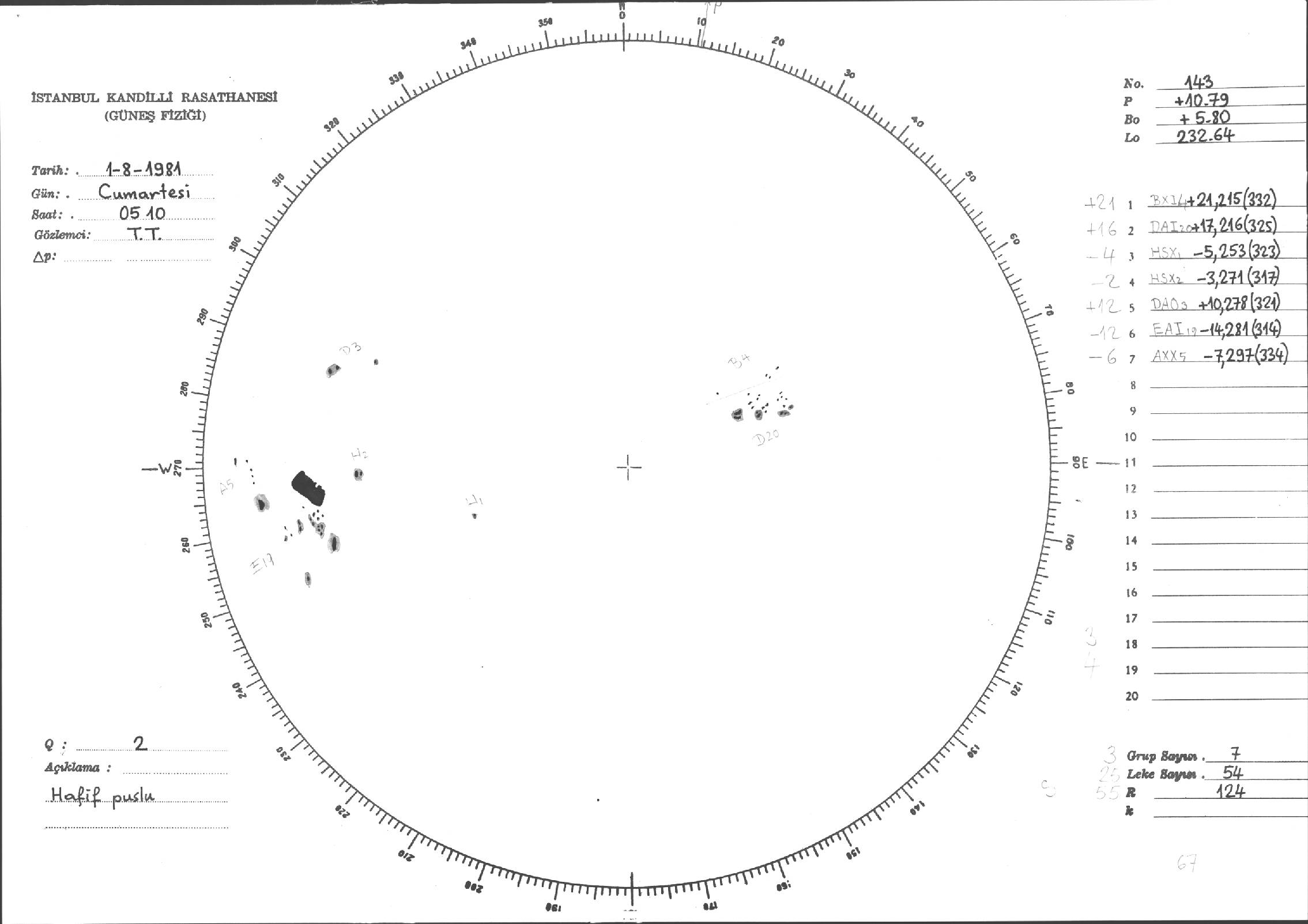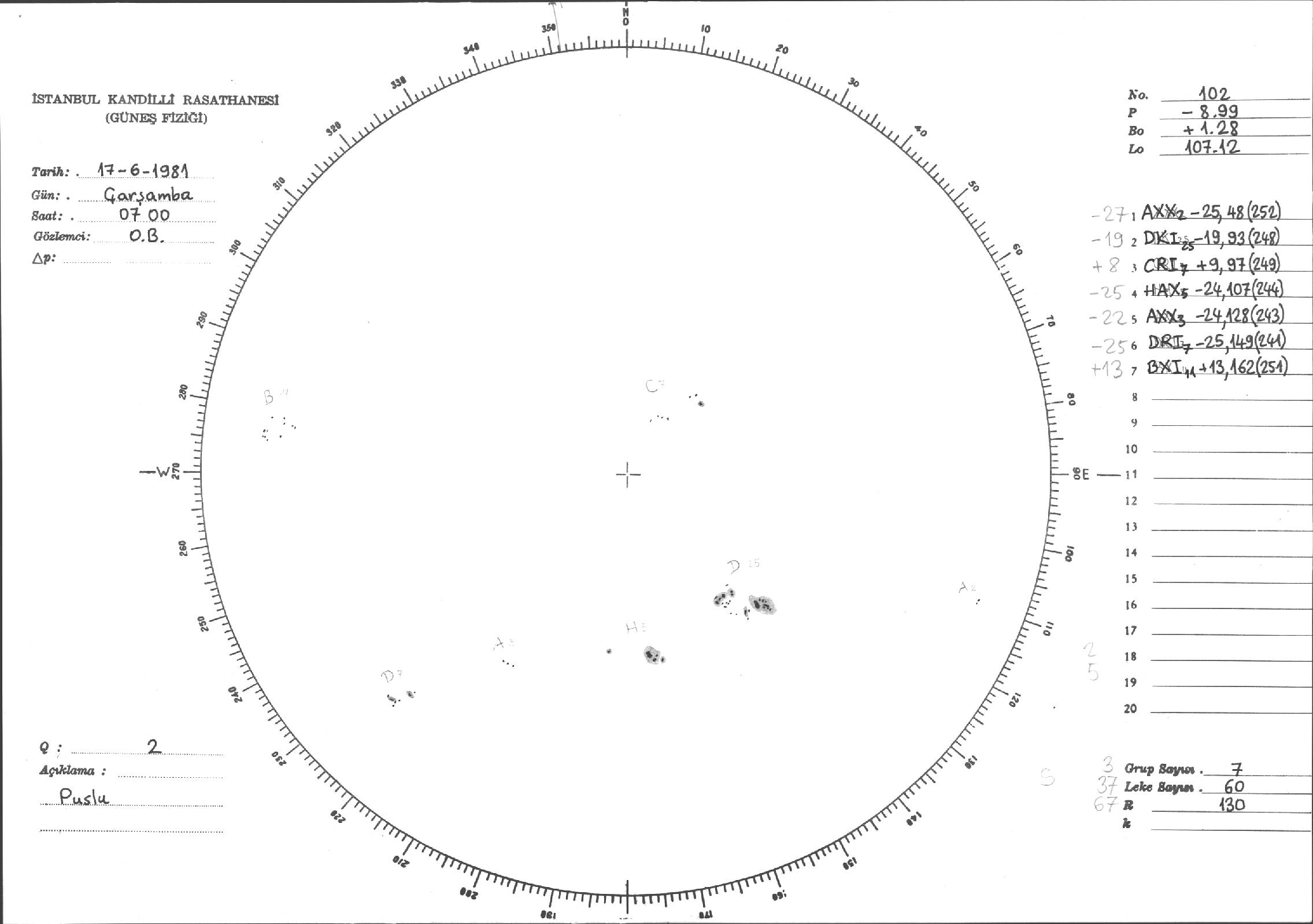 Güneş Lekesi Çizimleri / Kandilli Sunspot Drawings