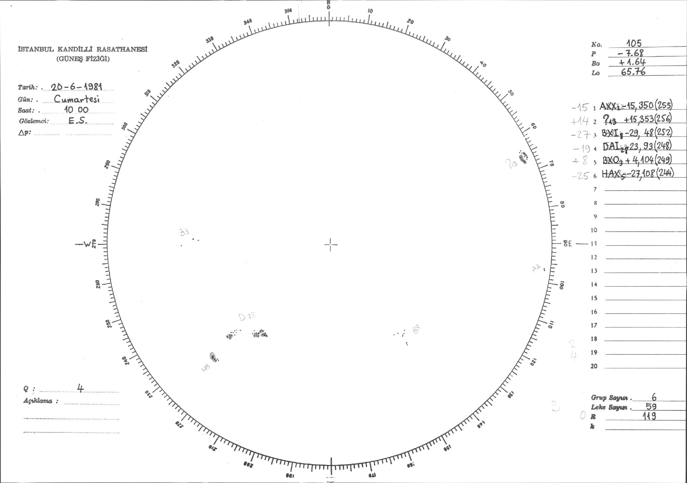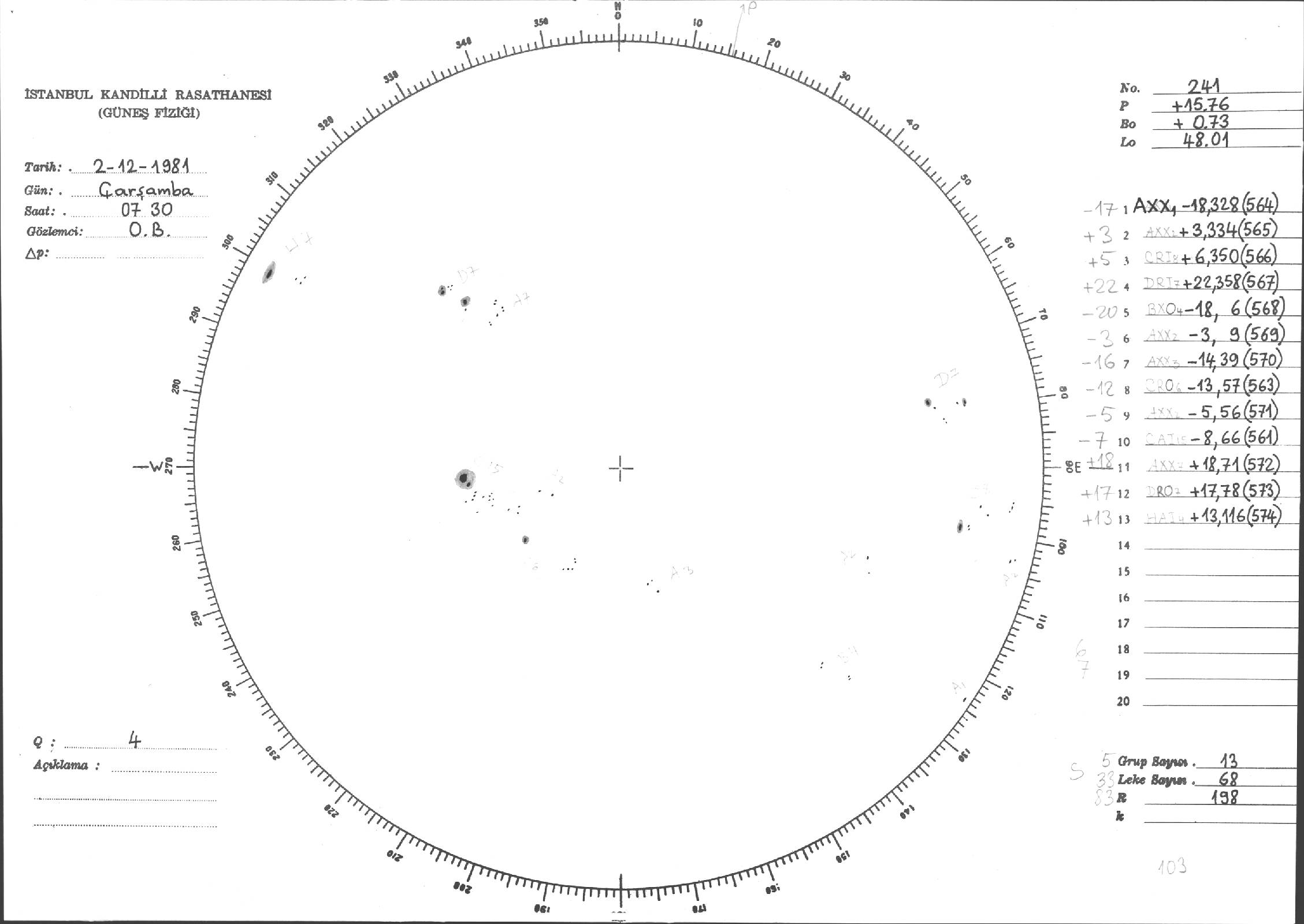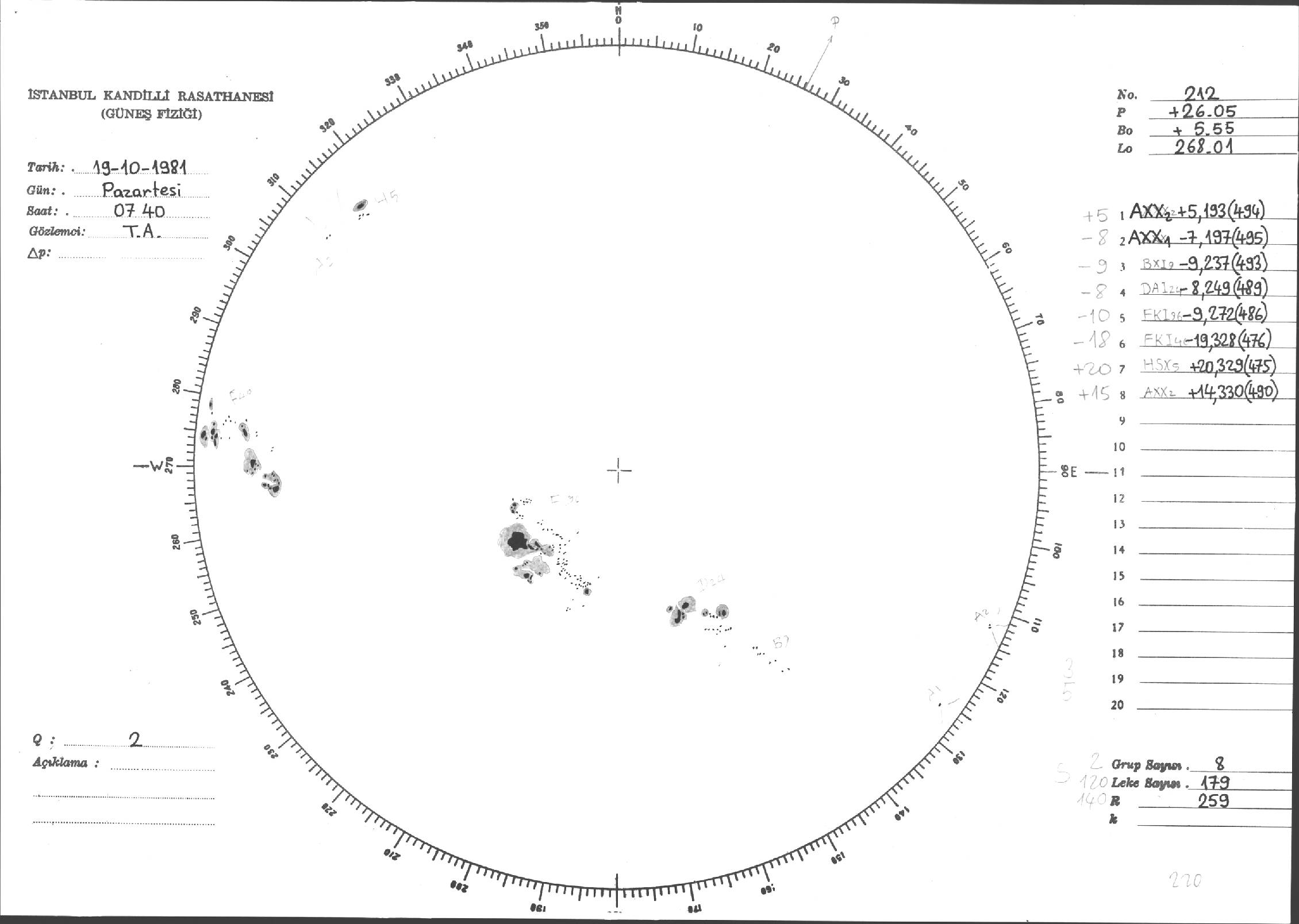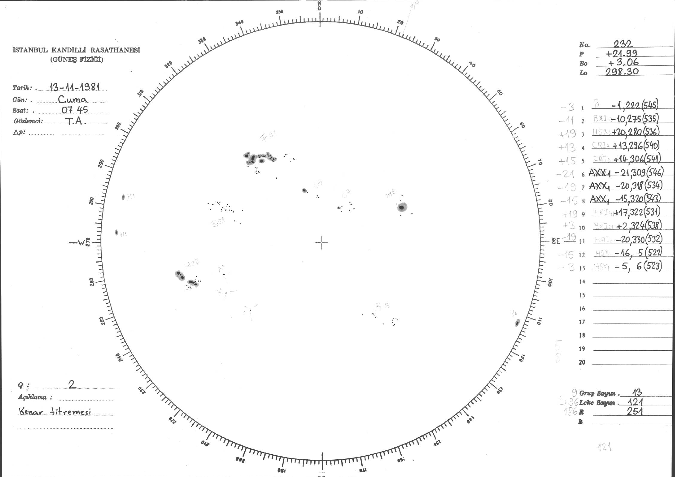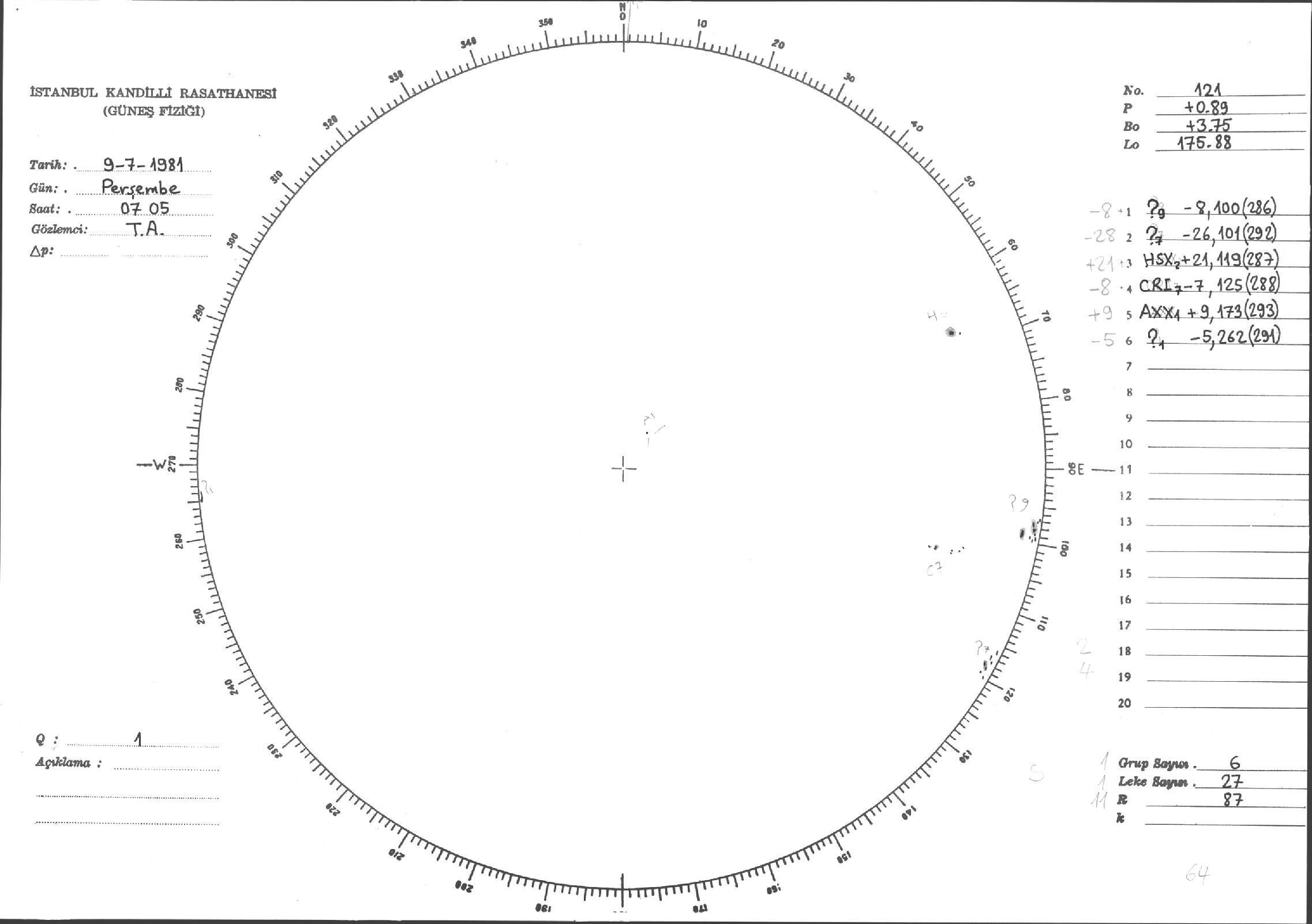Güneş Lekesi Çizimleri / Kandilli Sunspot Drawings