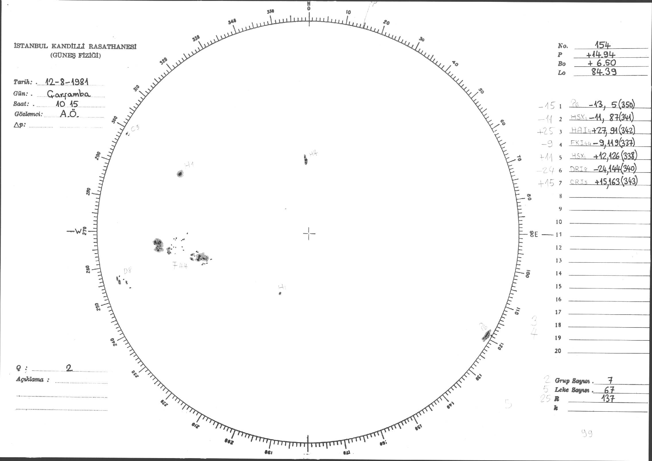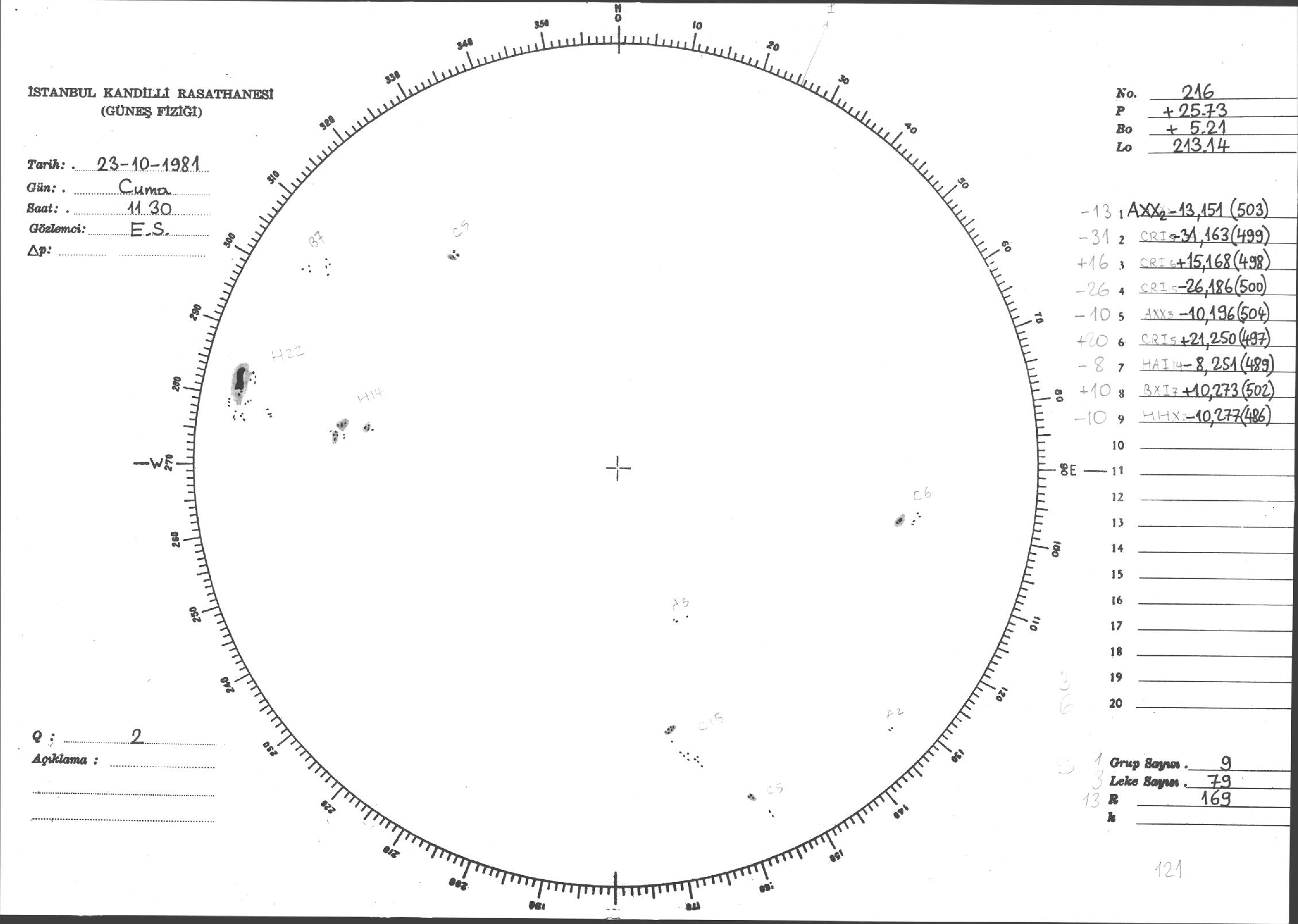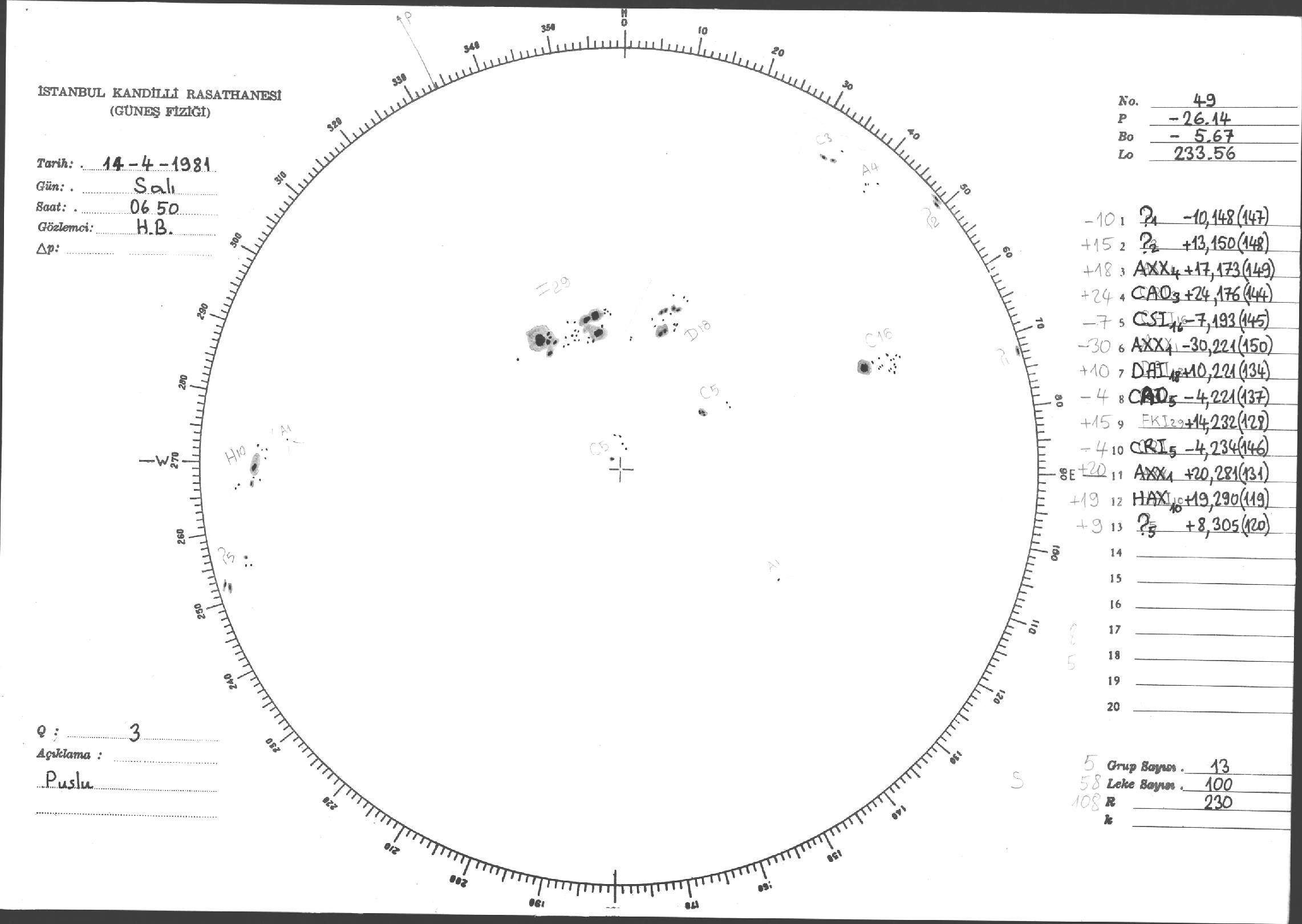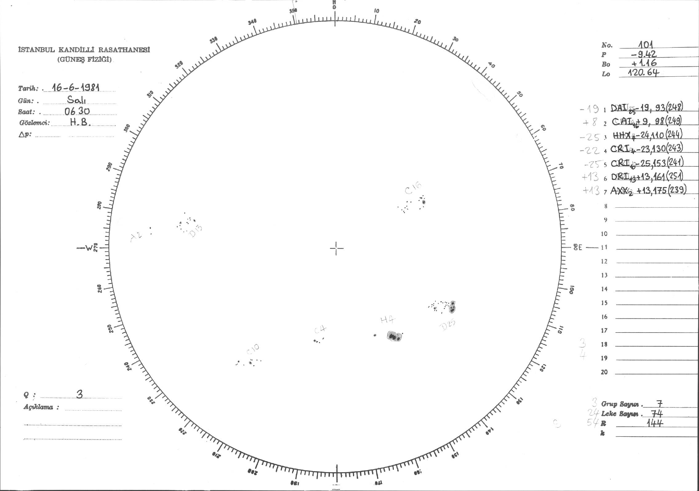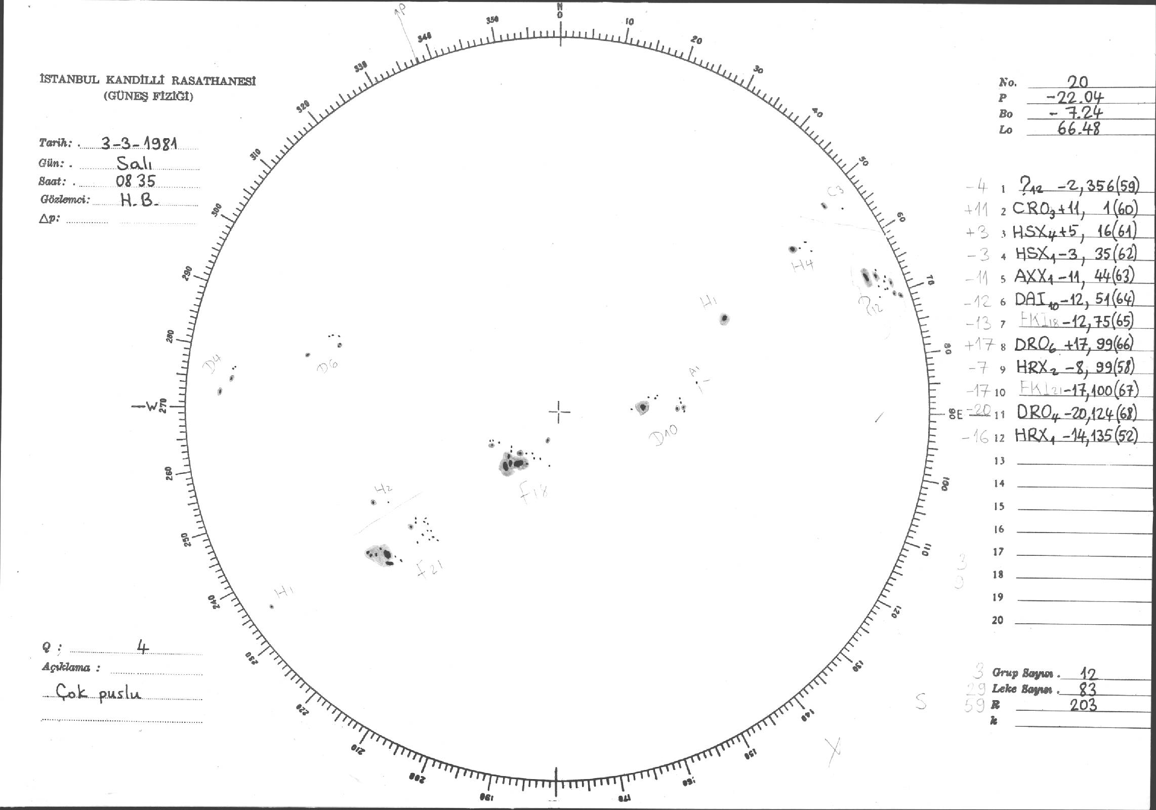 Güneş Lekesi Çizimleri / Kandilli Sunspot Drawings