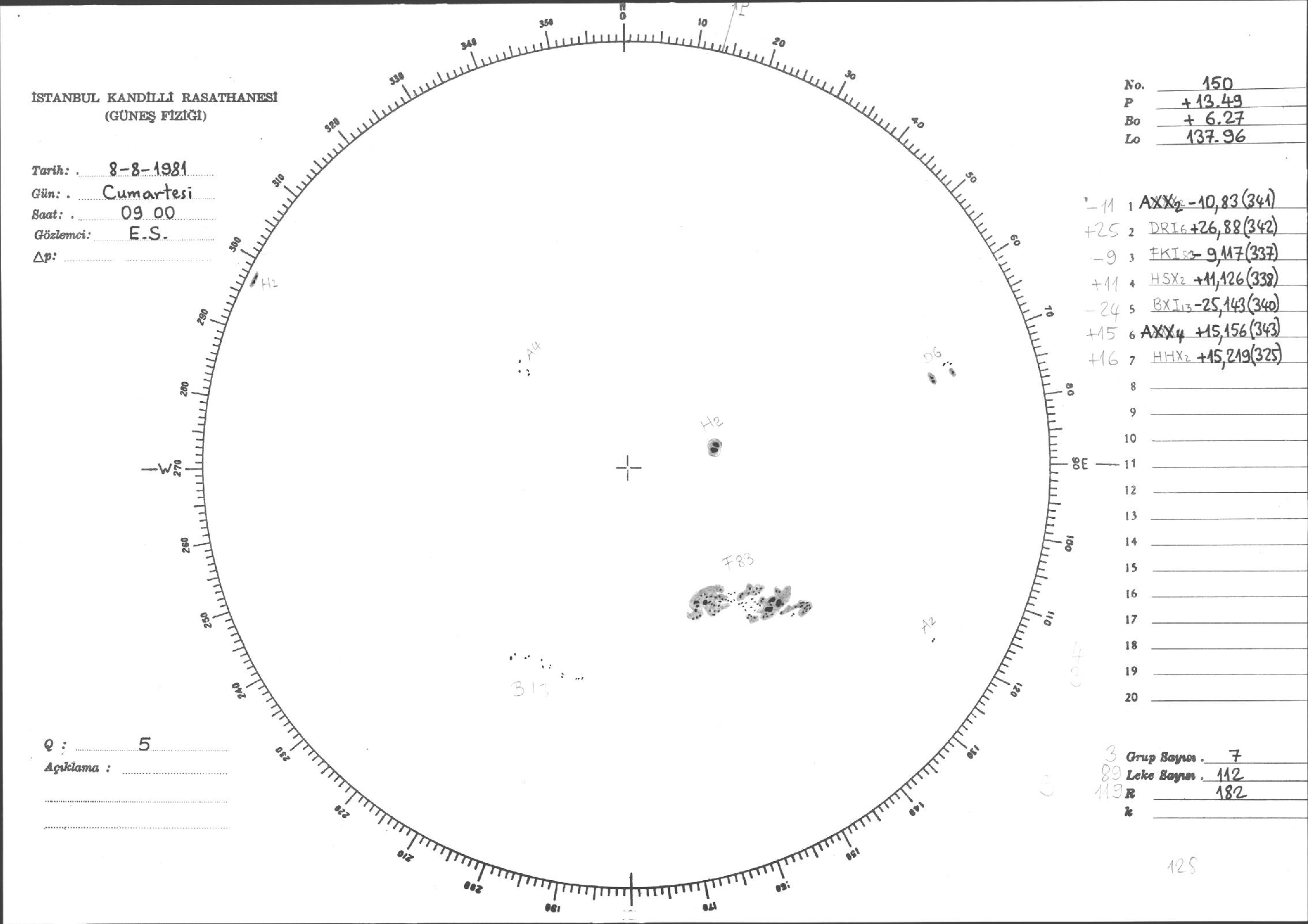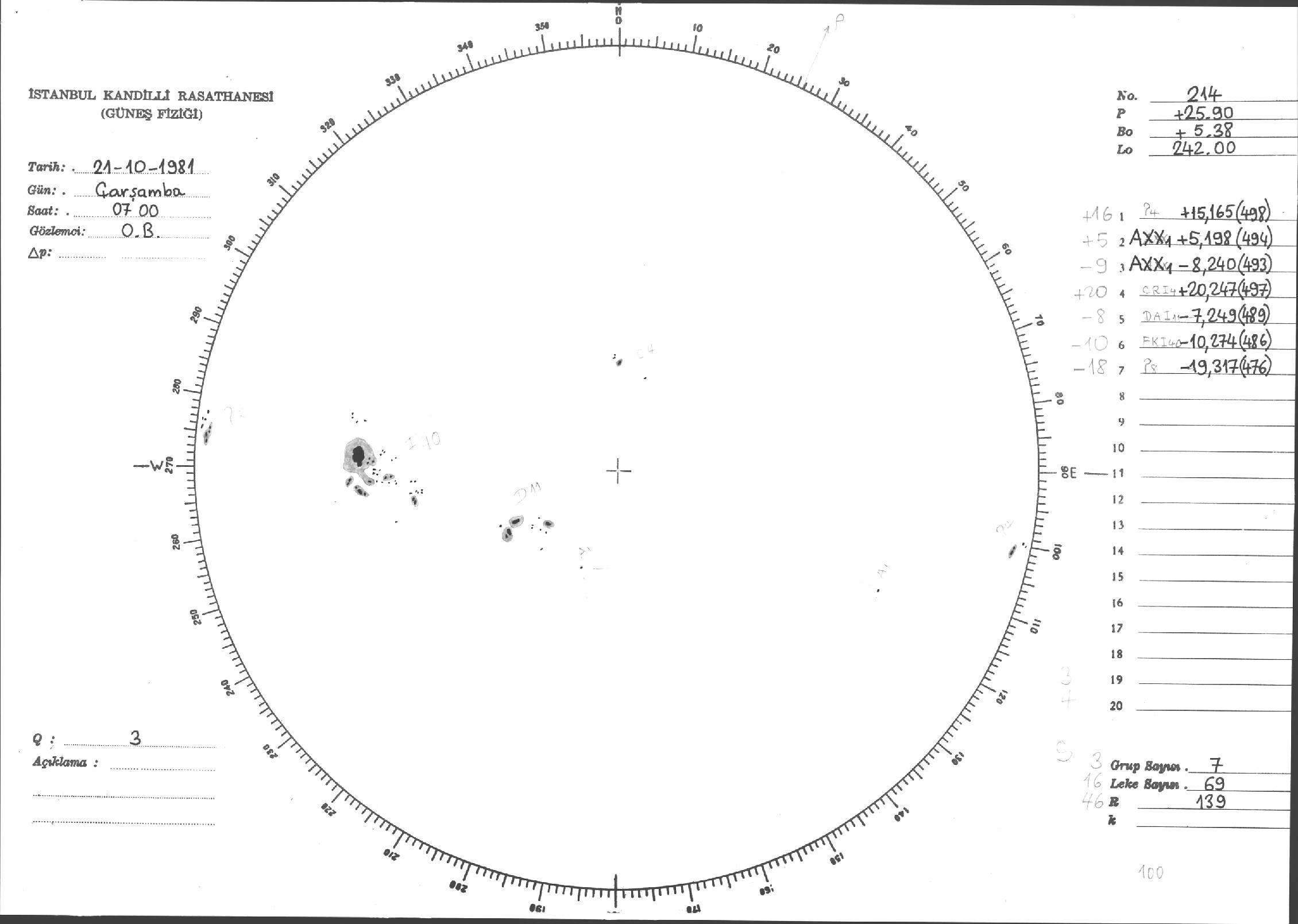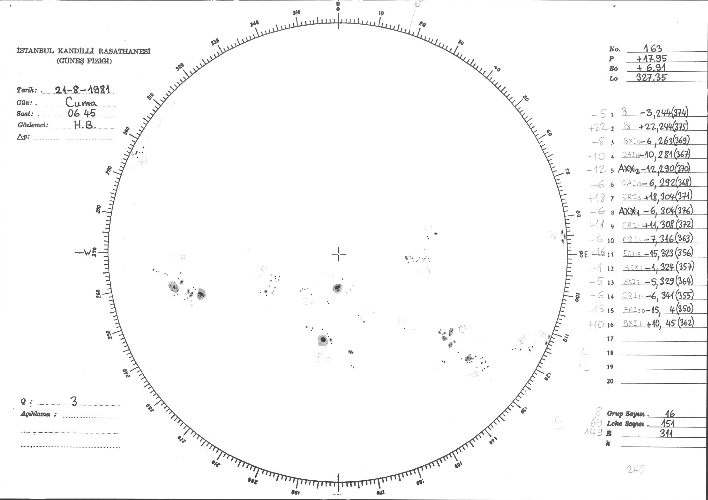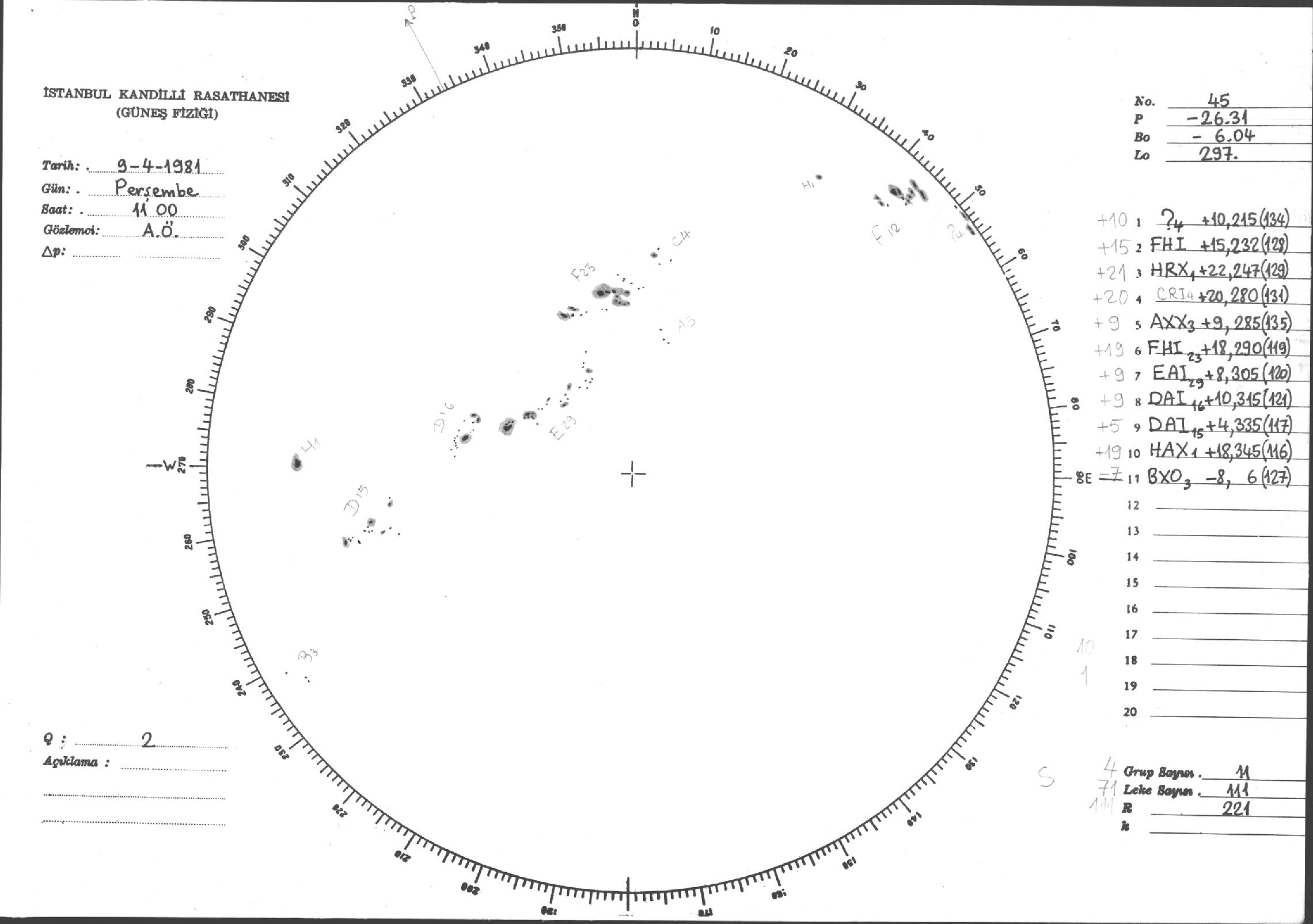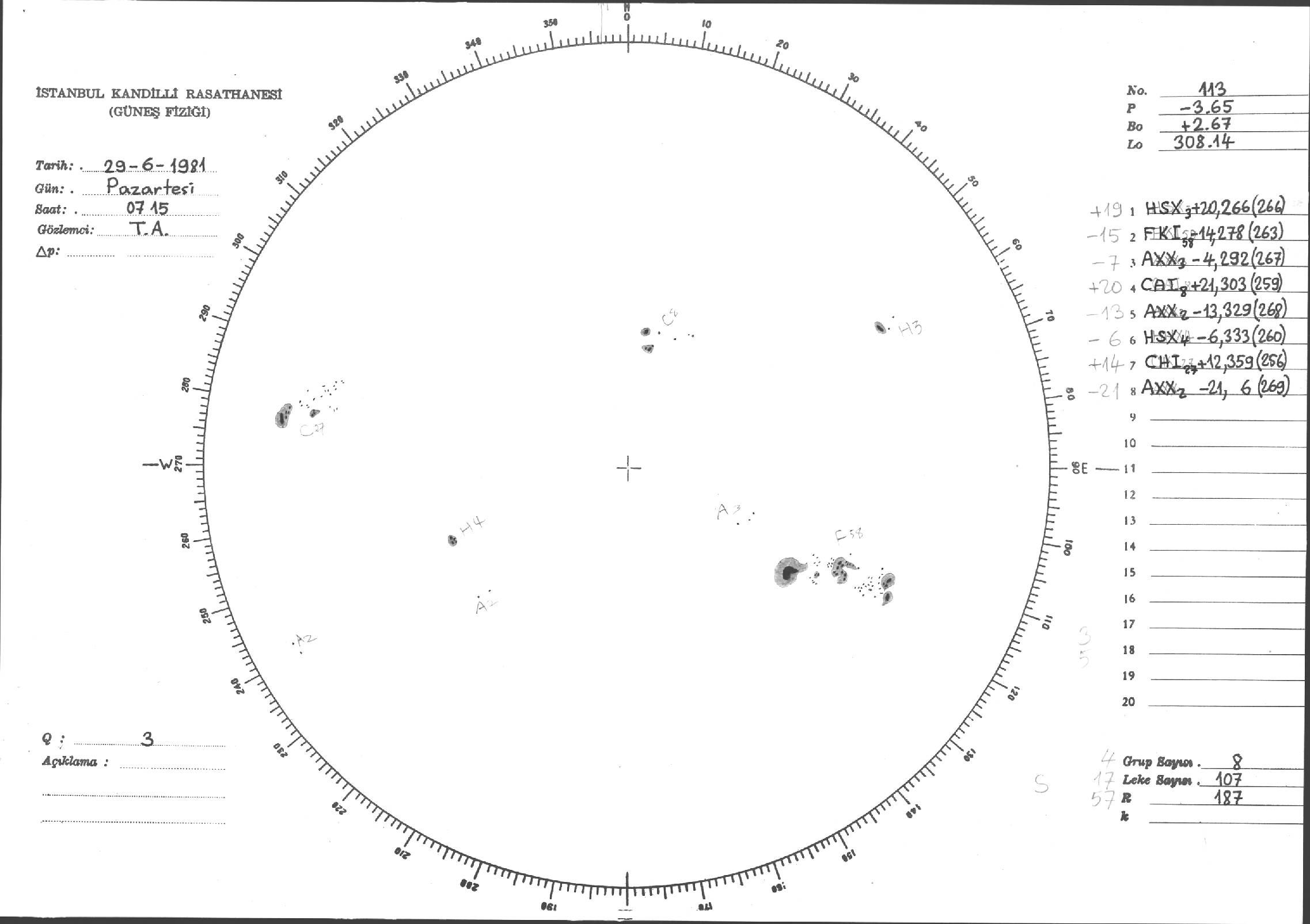 Güneş Lekesi Çizimleri / Kandilli Sunspot Drawings