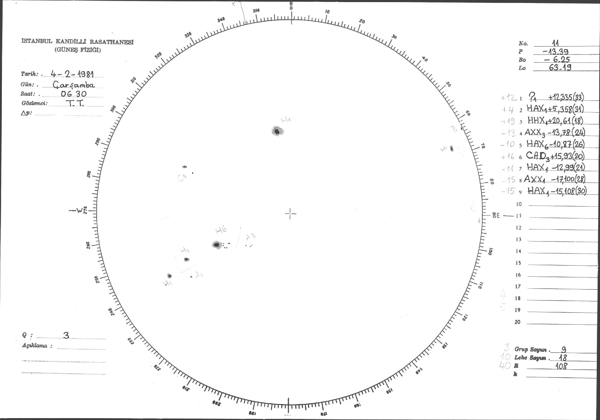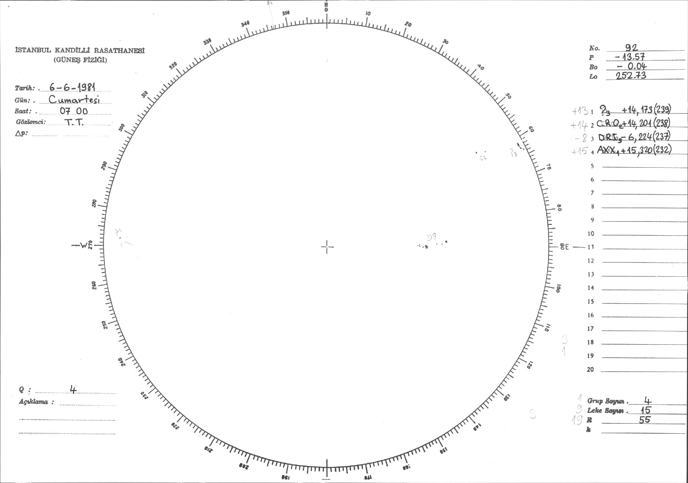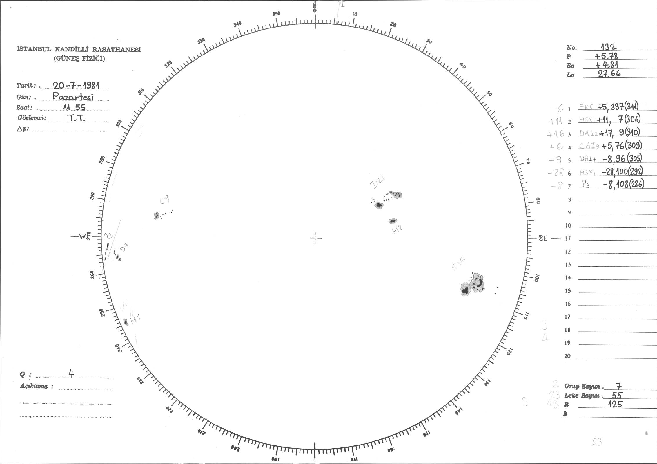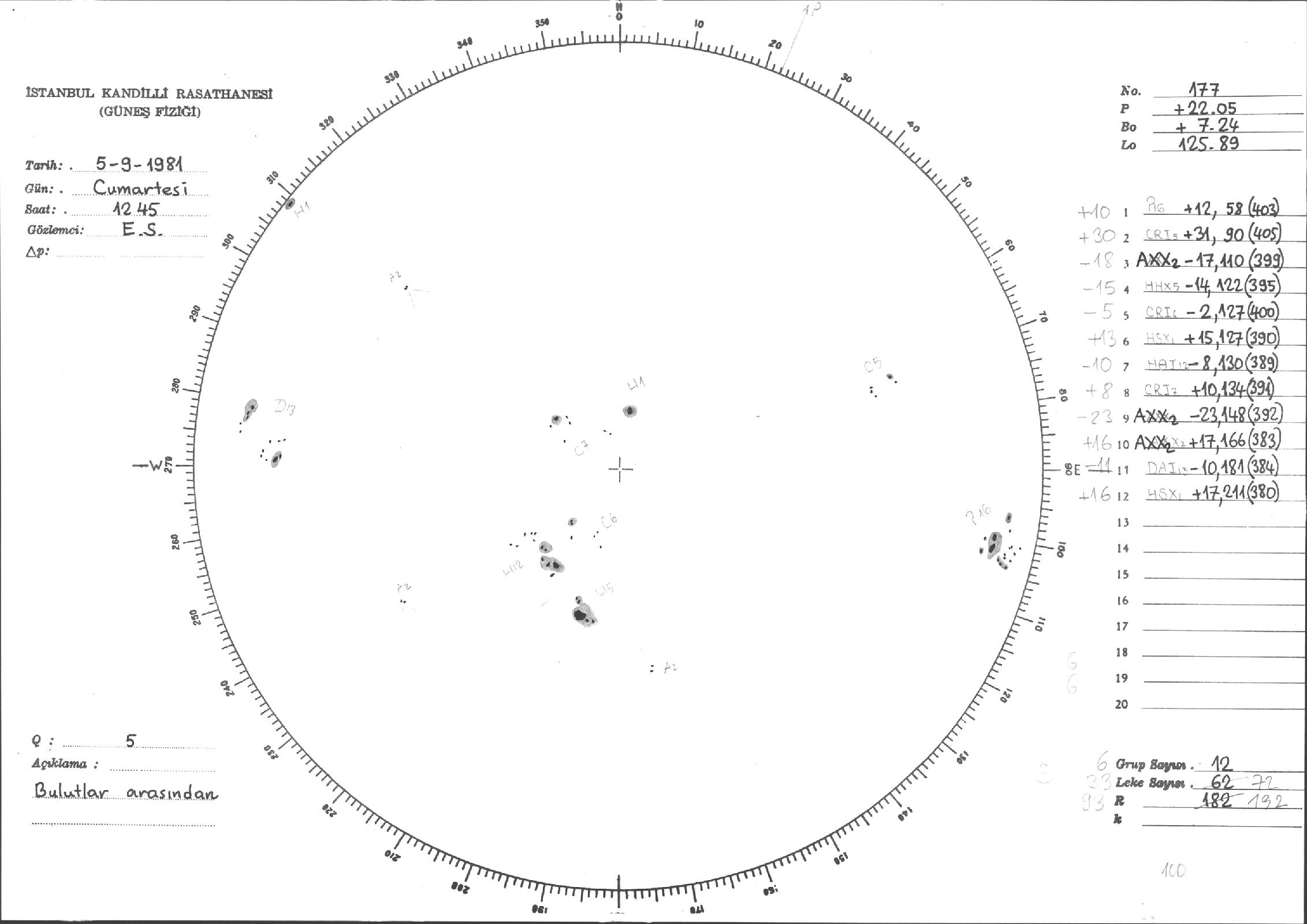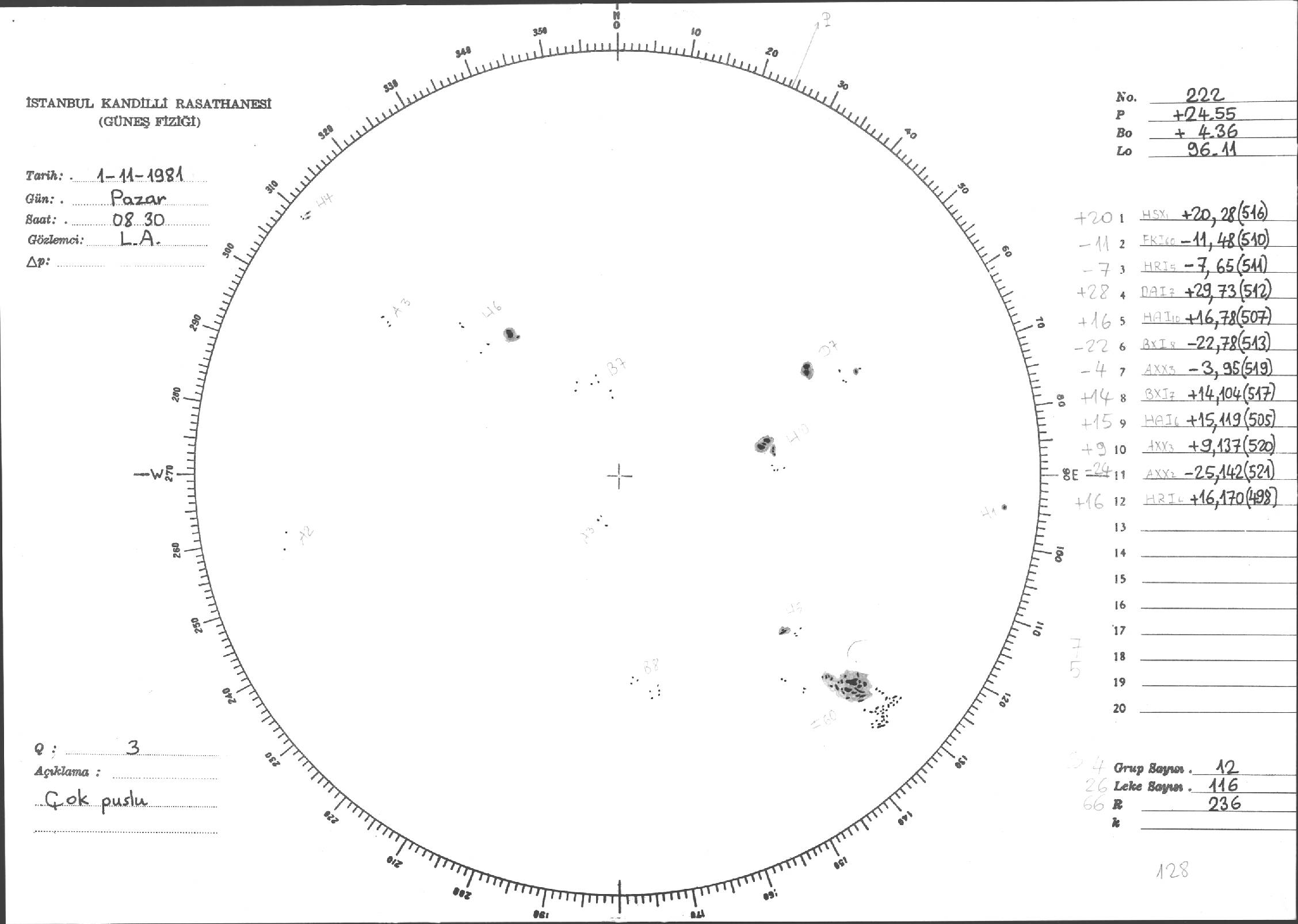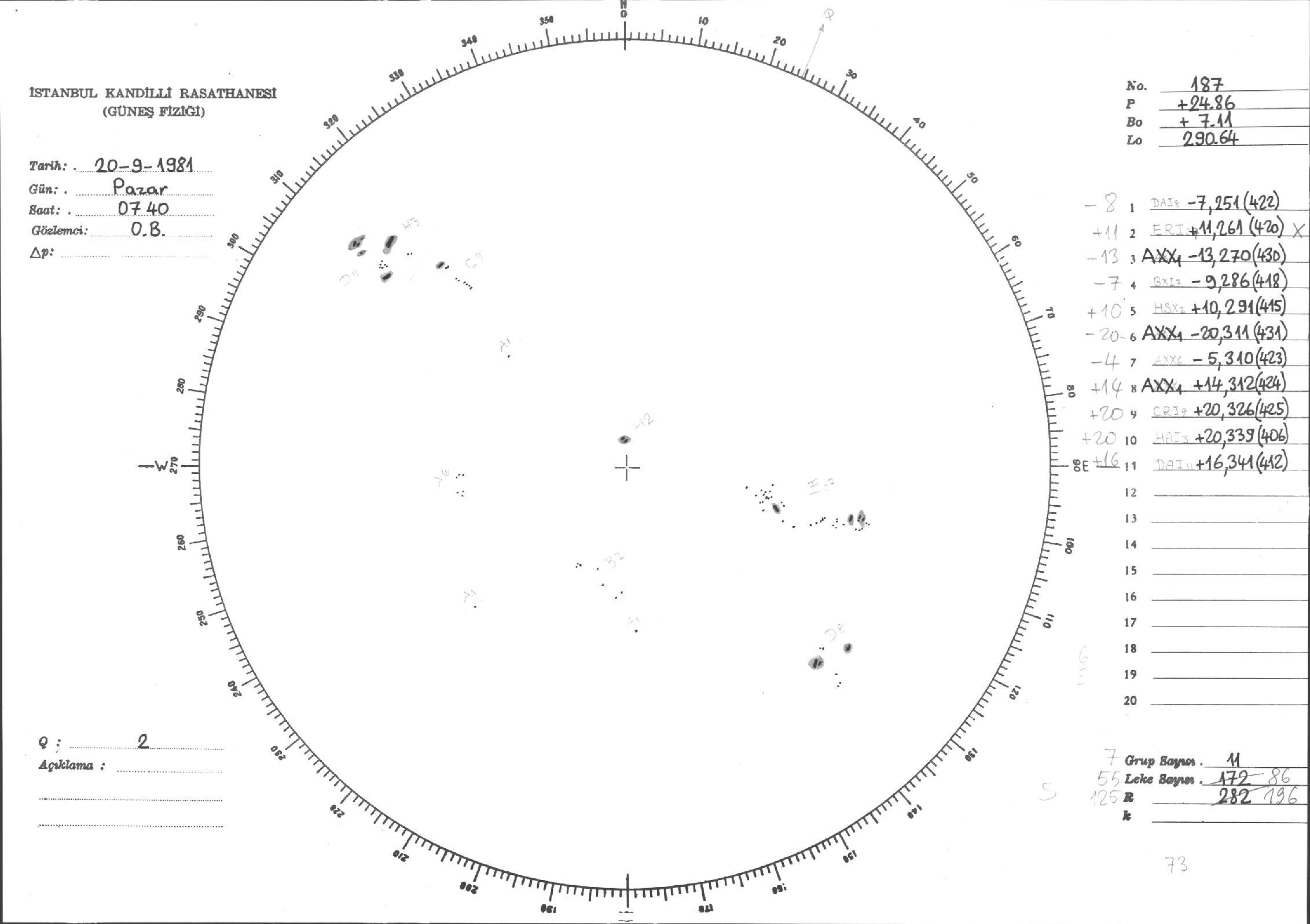 Güneş Lekesi Çizimleri / Kandilli Sunspot Drawings