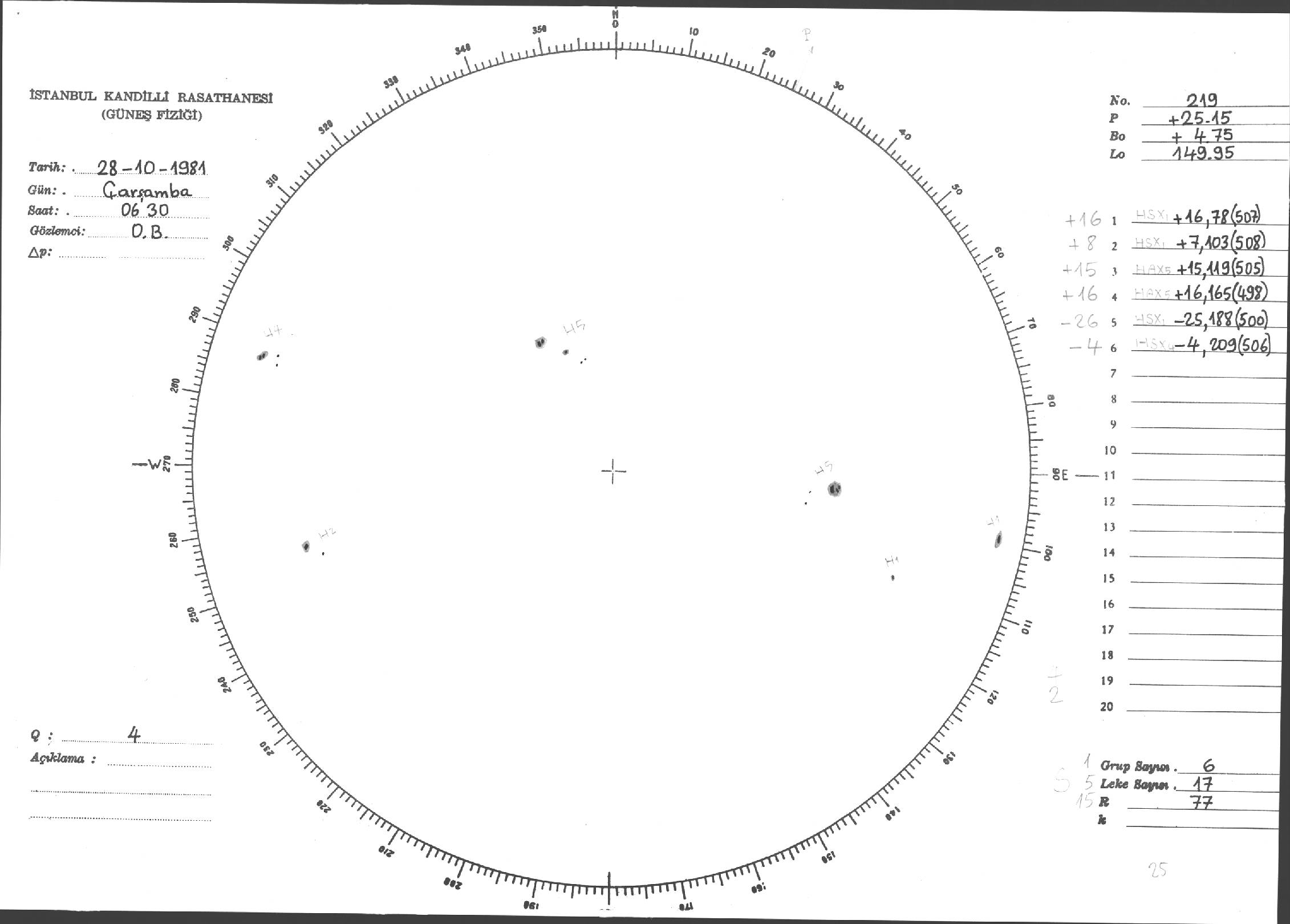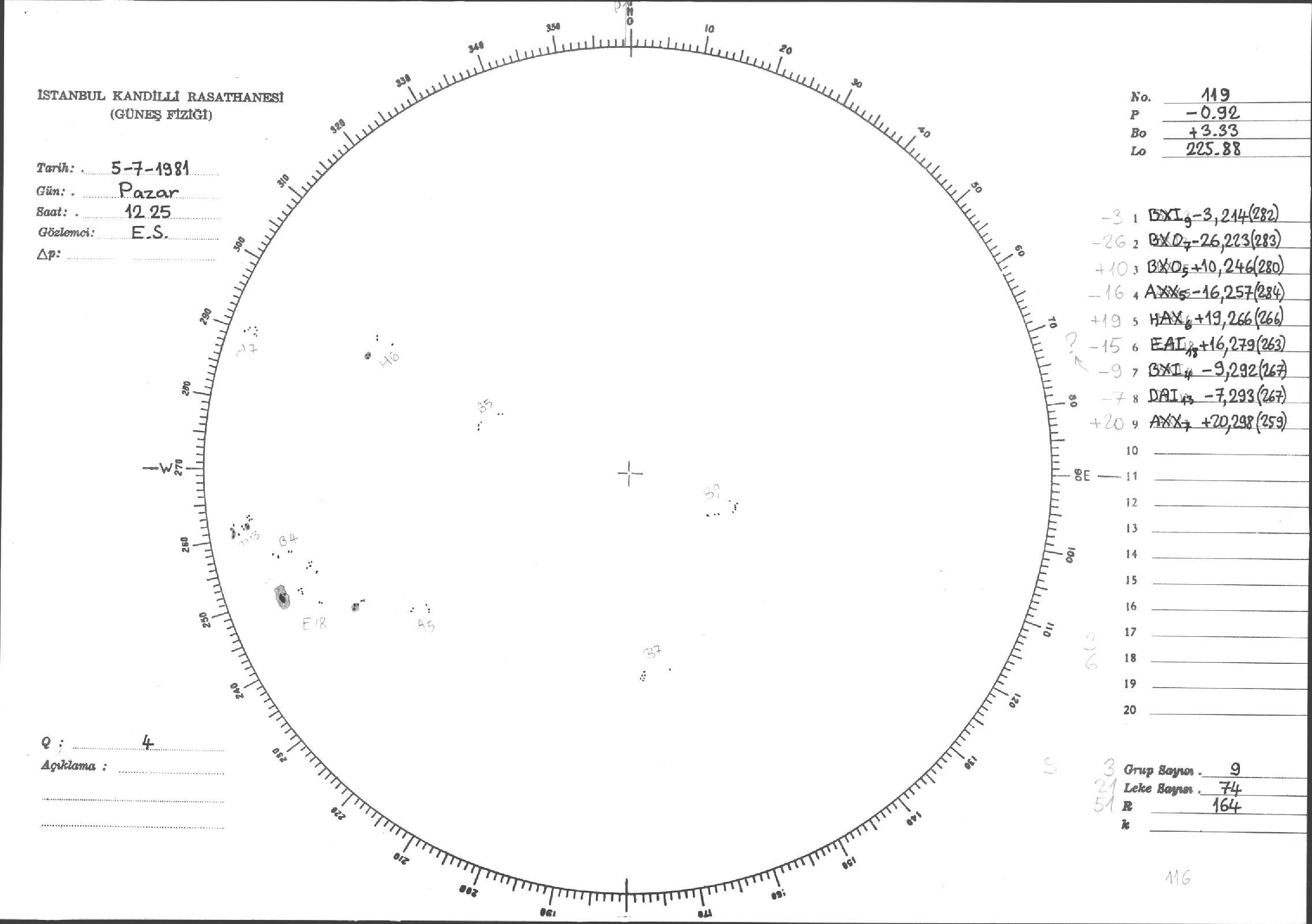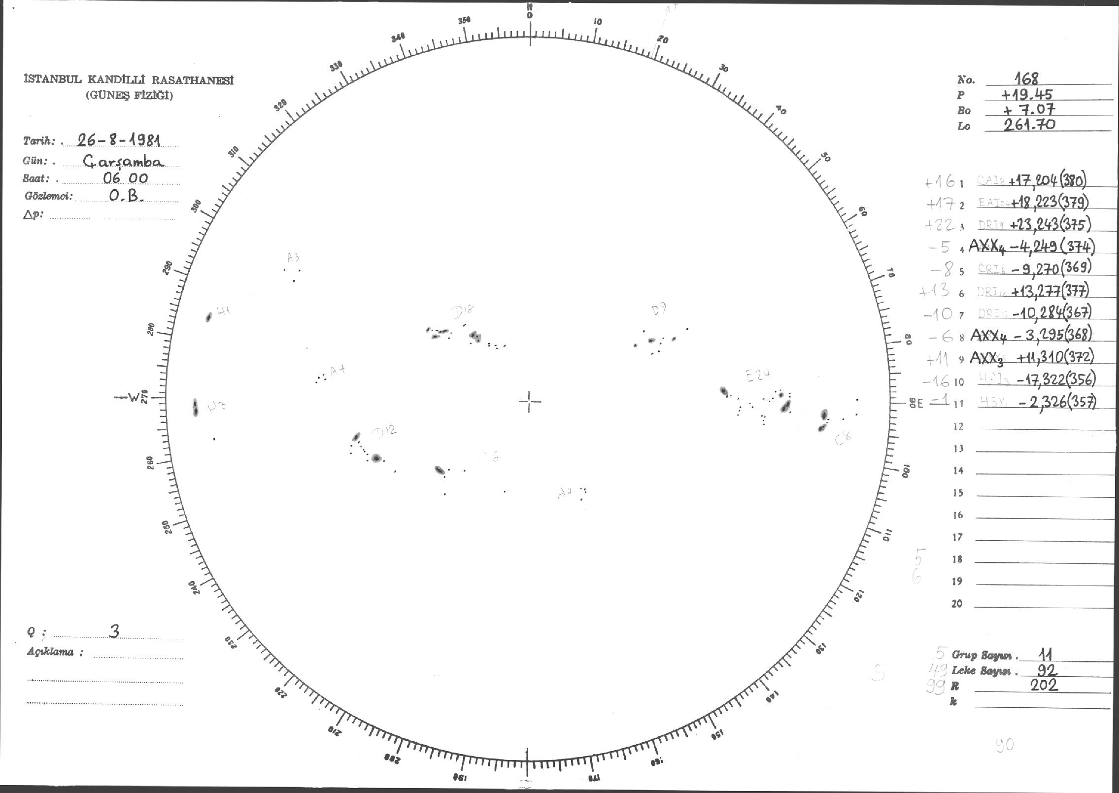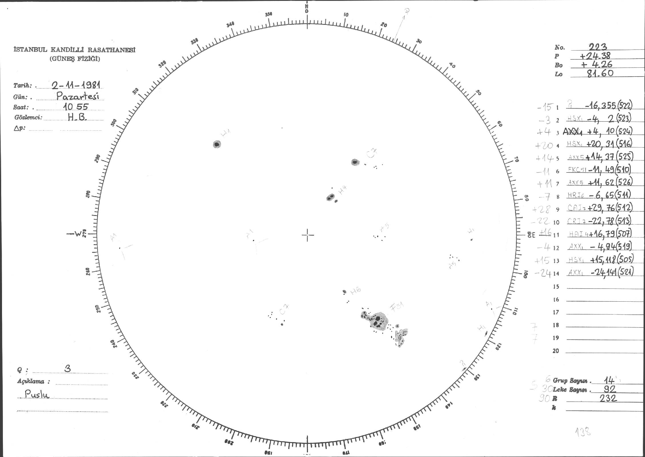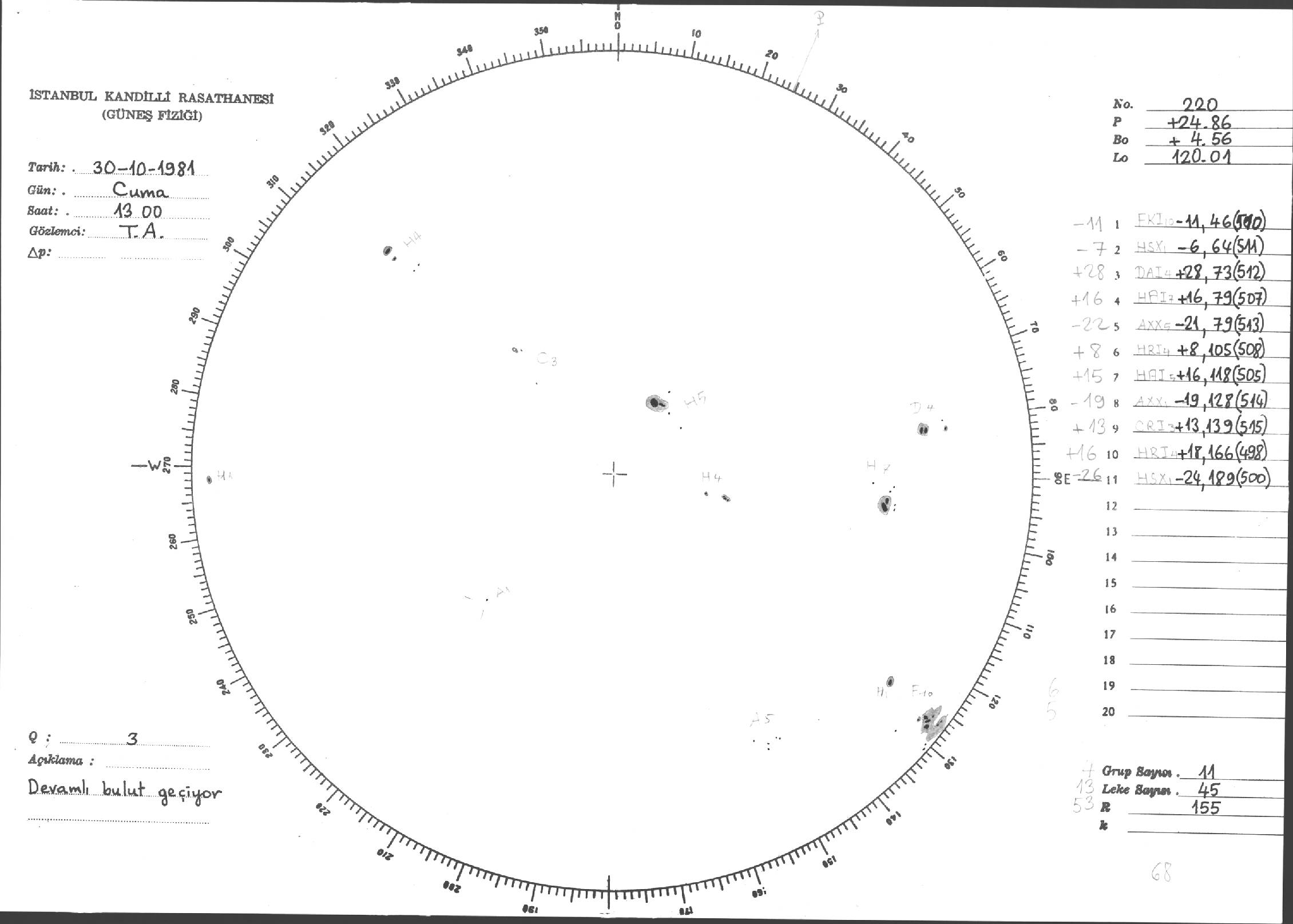 Güneş Lekesi Çizimleri / Kandilli Sunspot Drawings