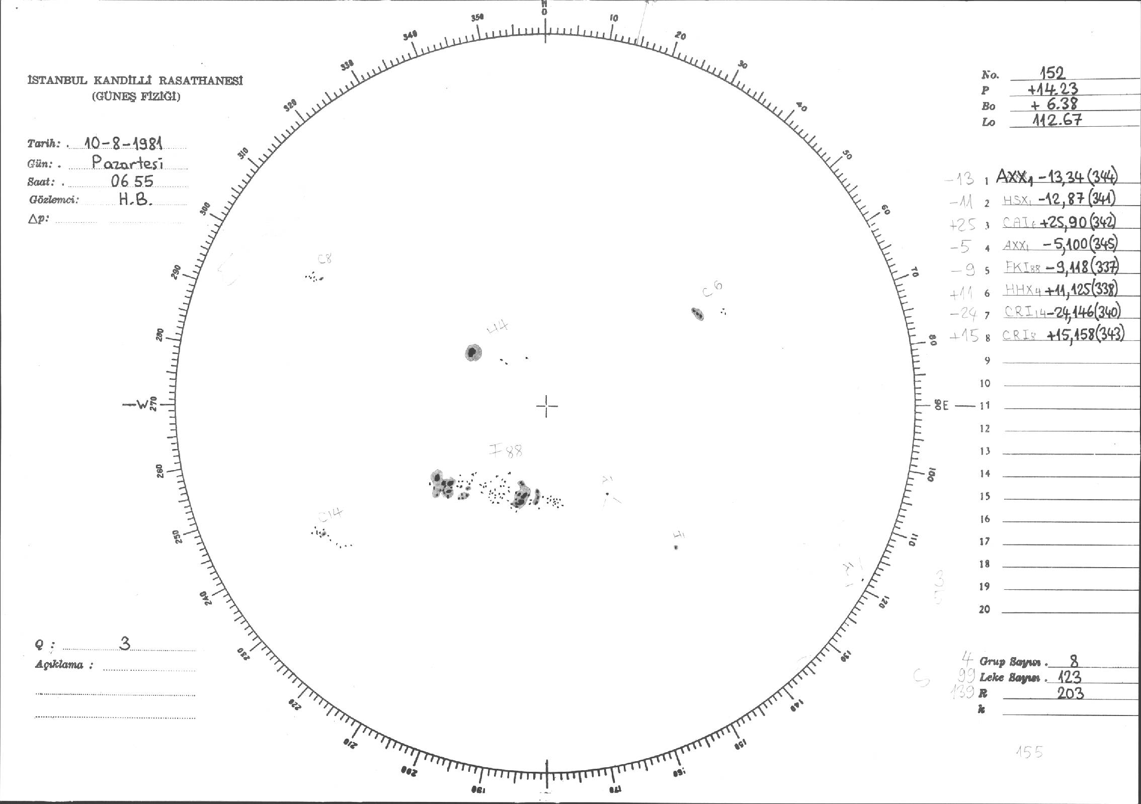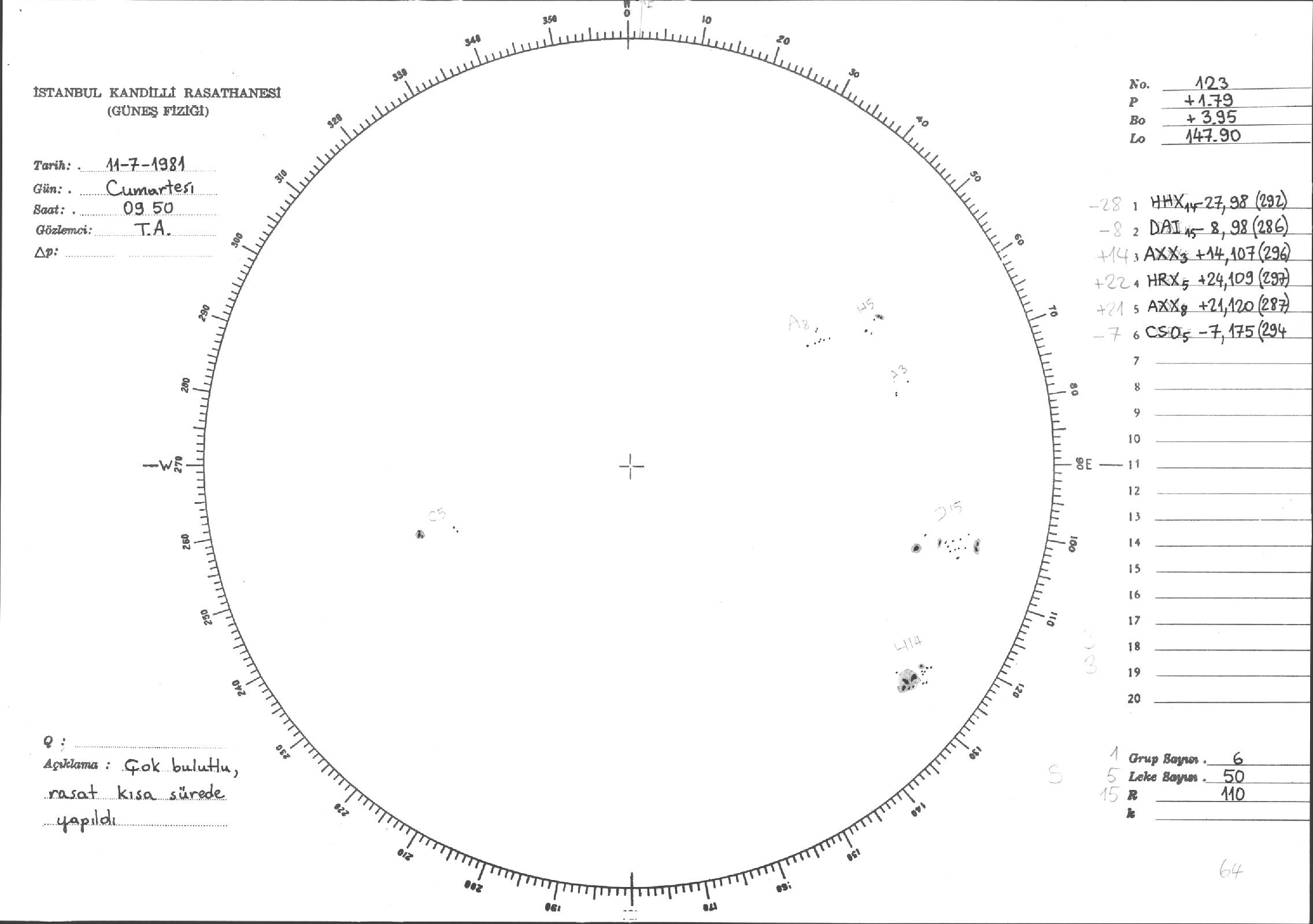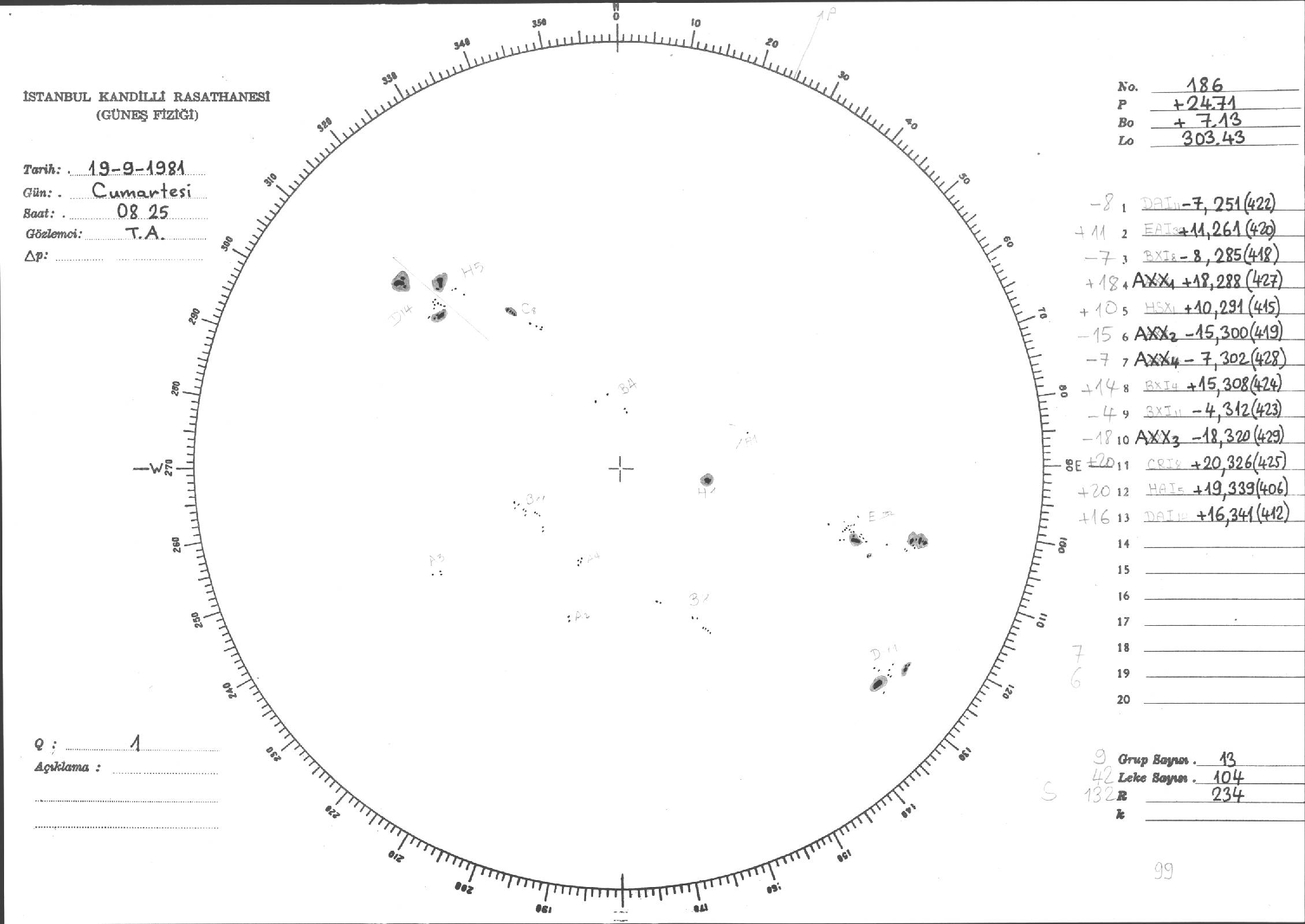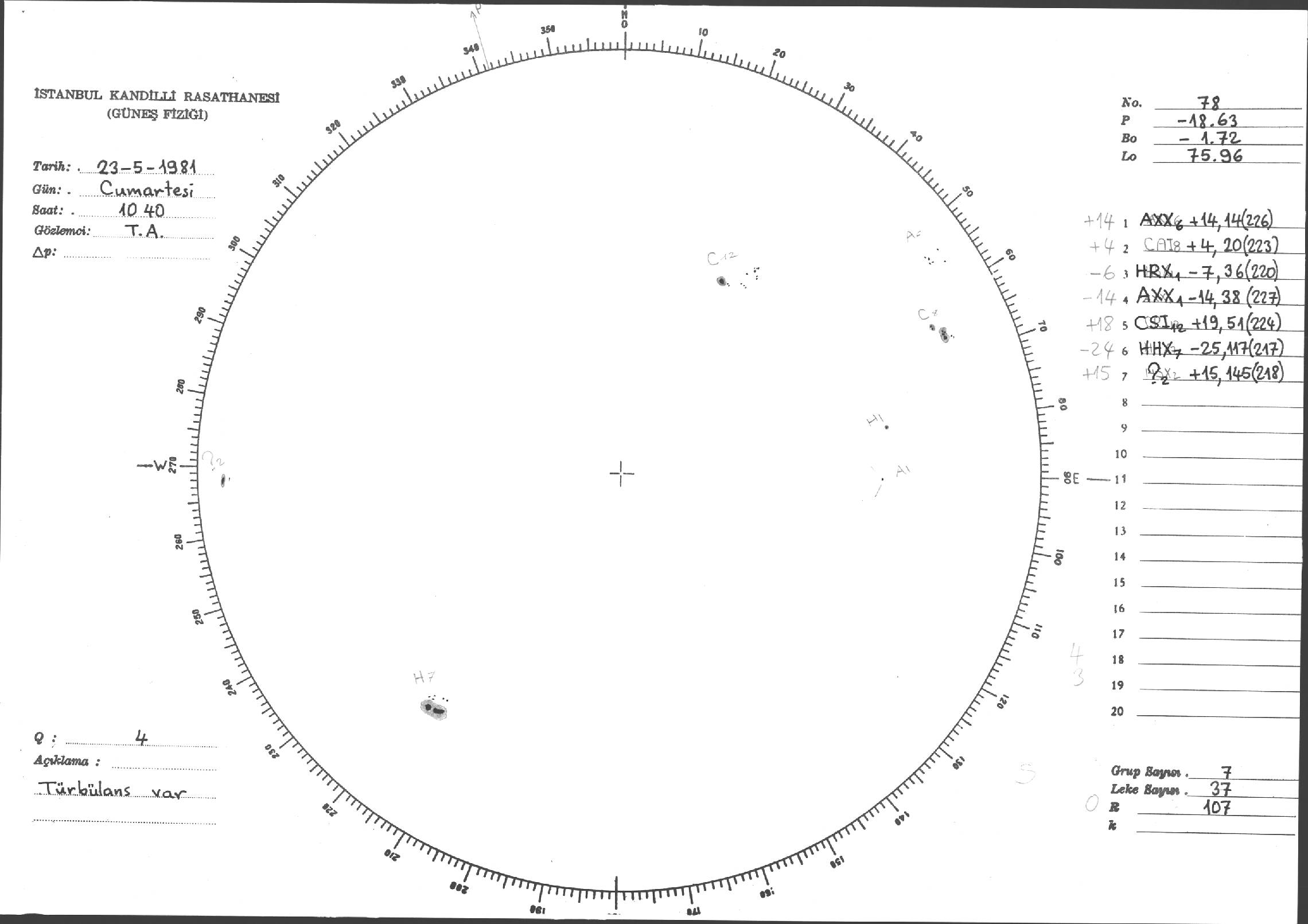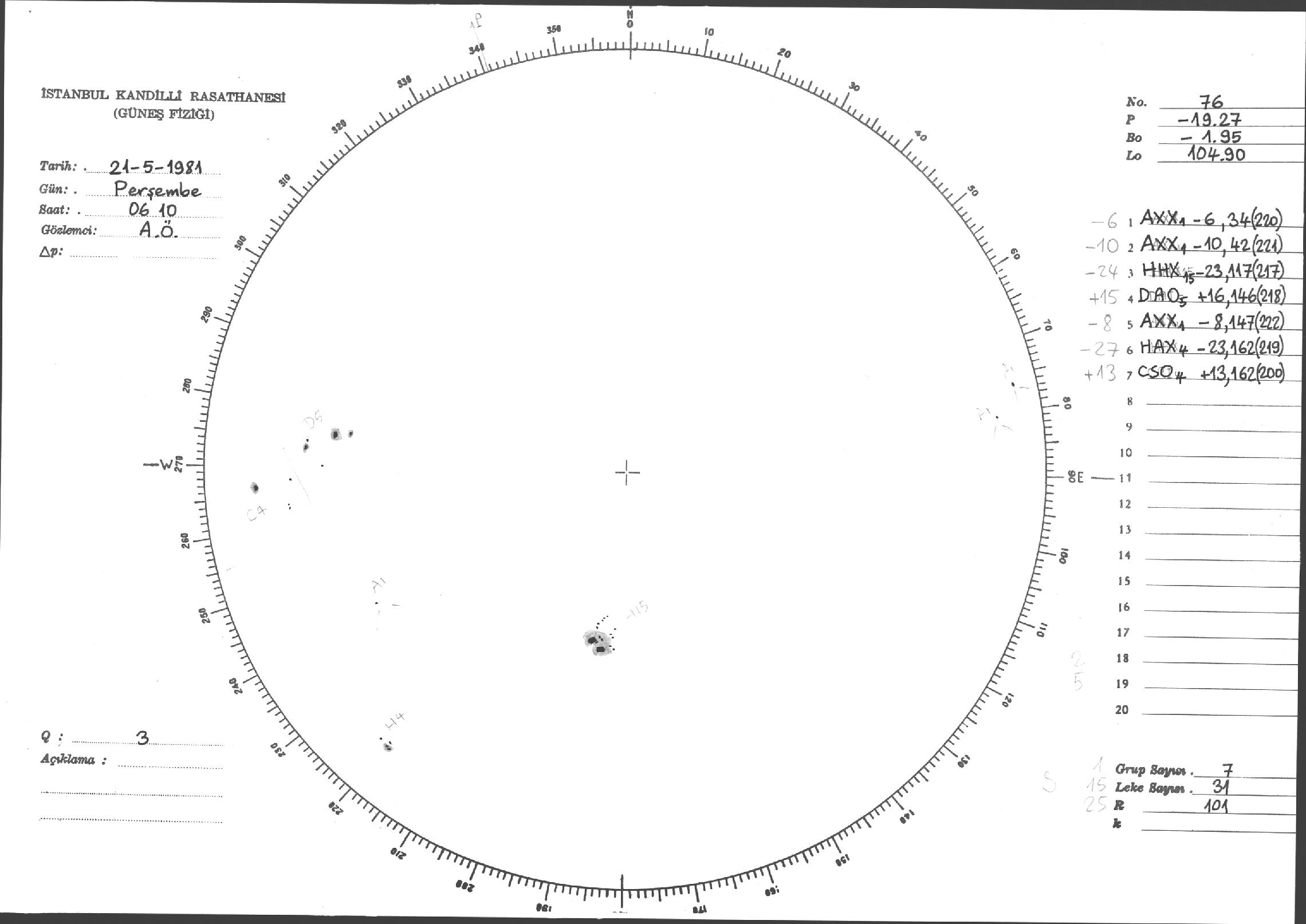 Güneş Lekesi Çizimleri / Kandilli Sunspot Drawings