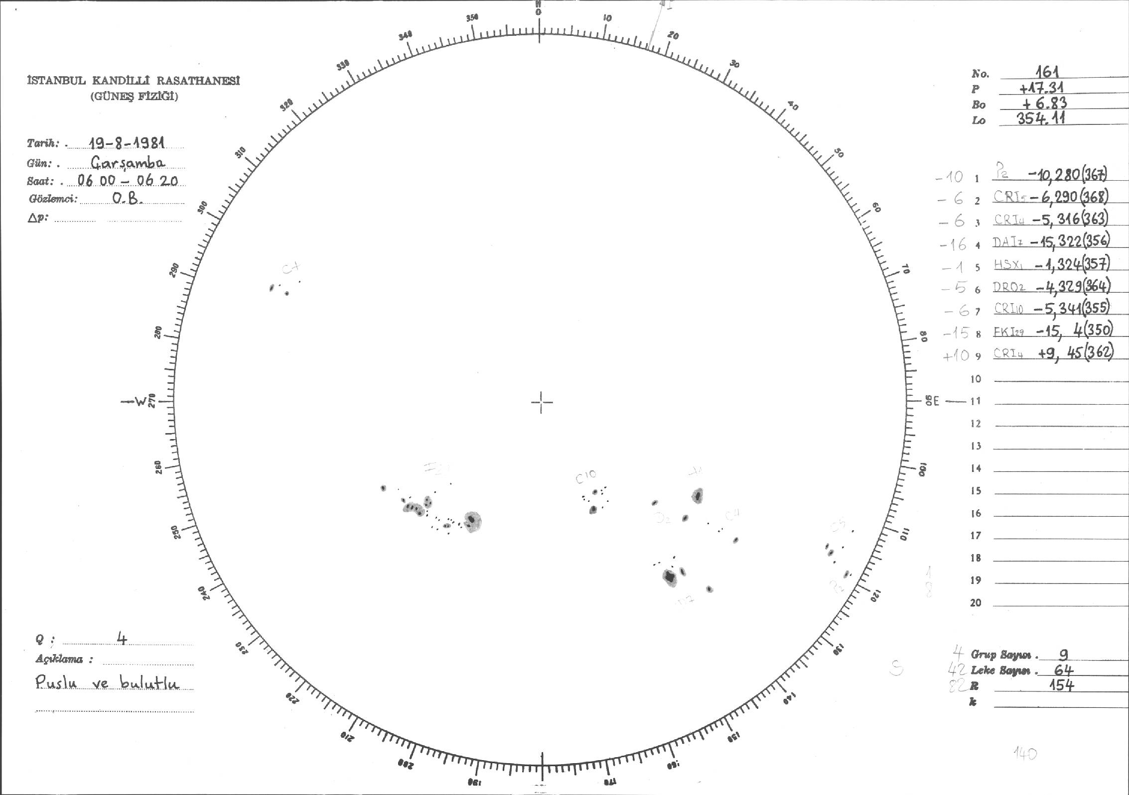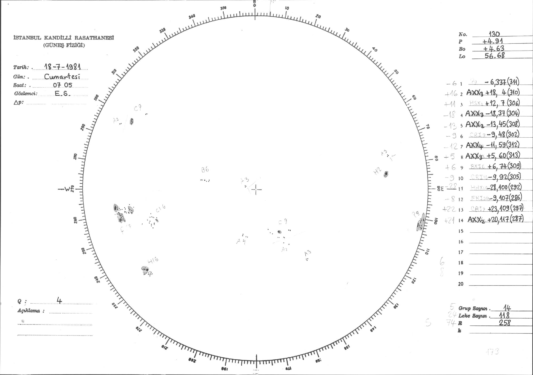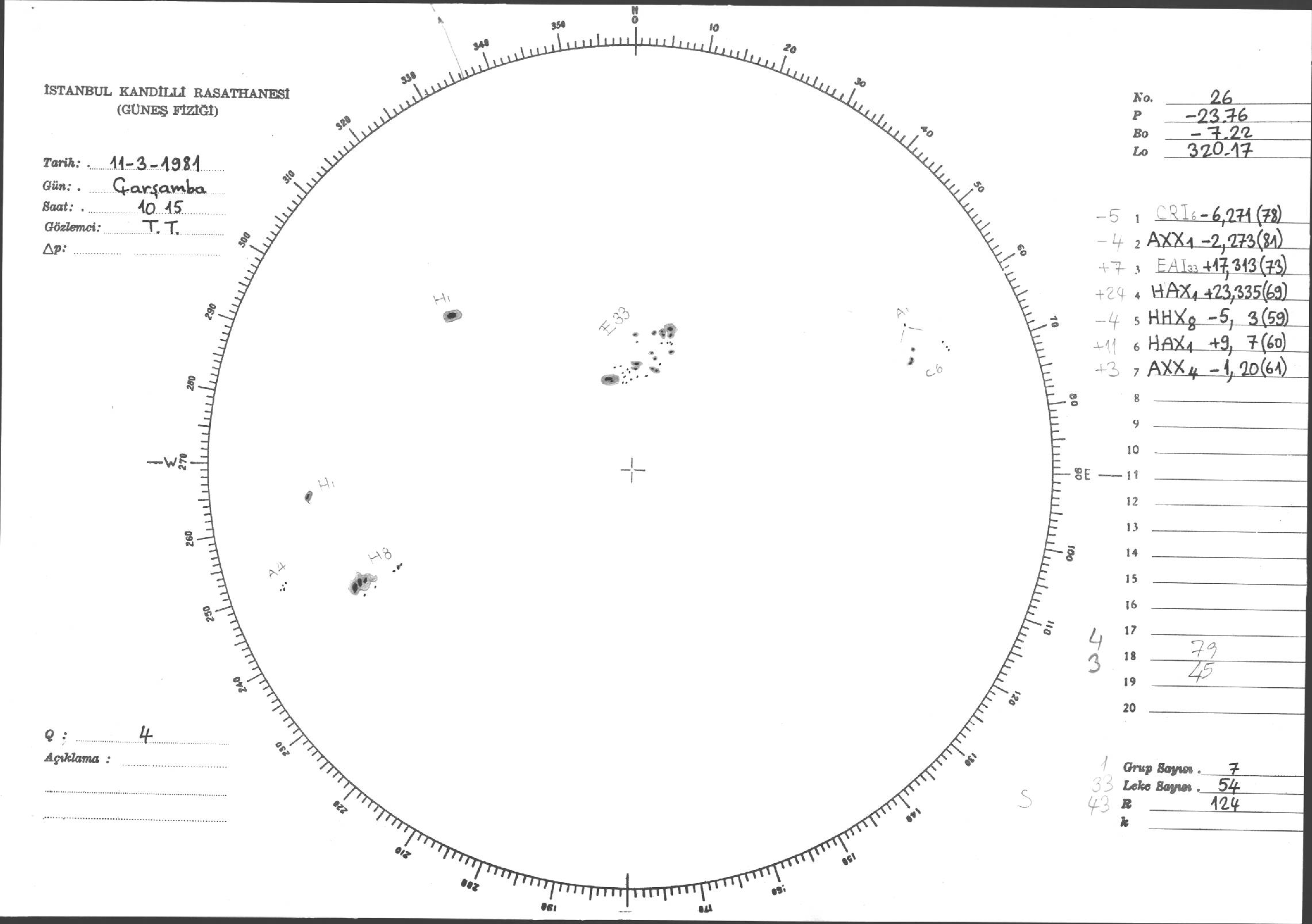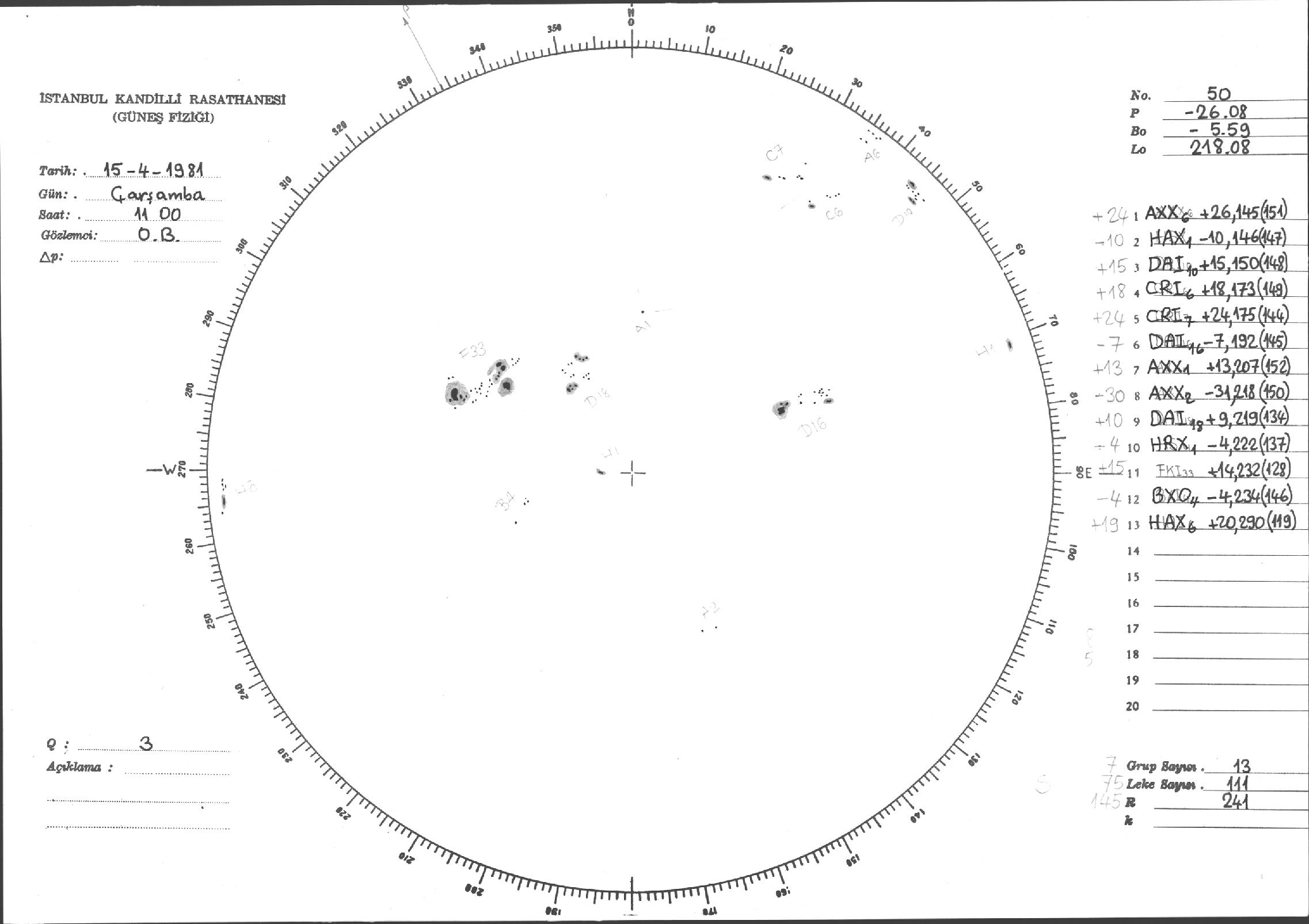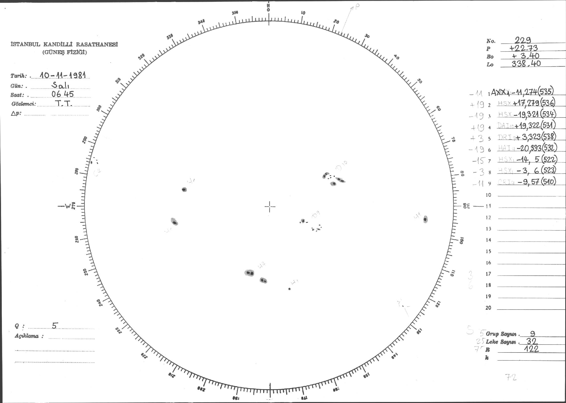 Güneş Lekesi Çizimleri / Kandilli Sunspot Drawings