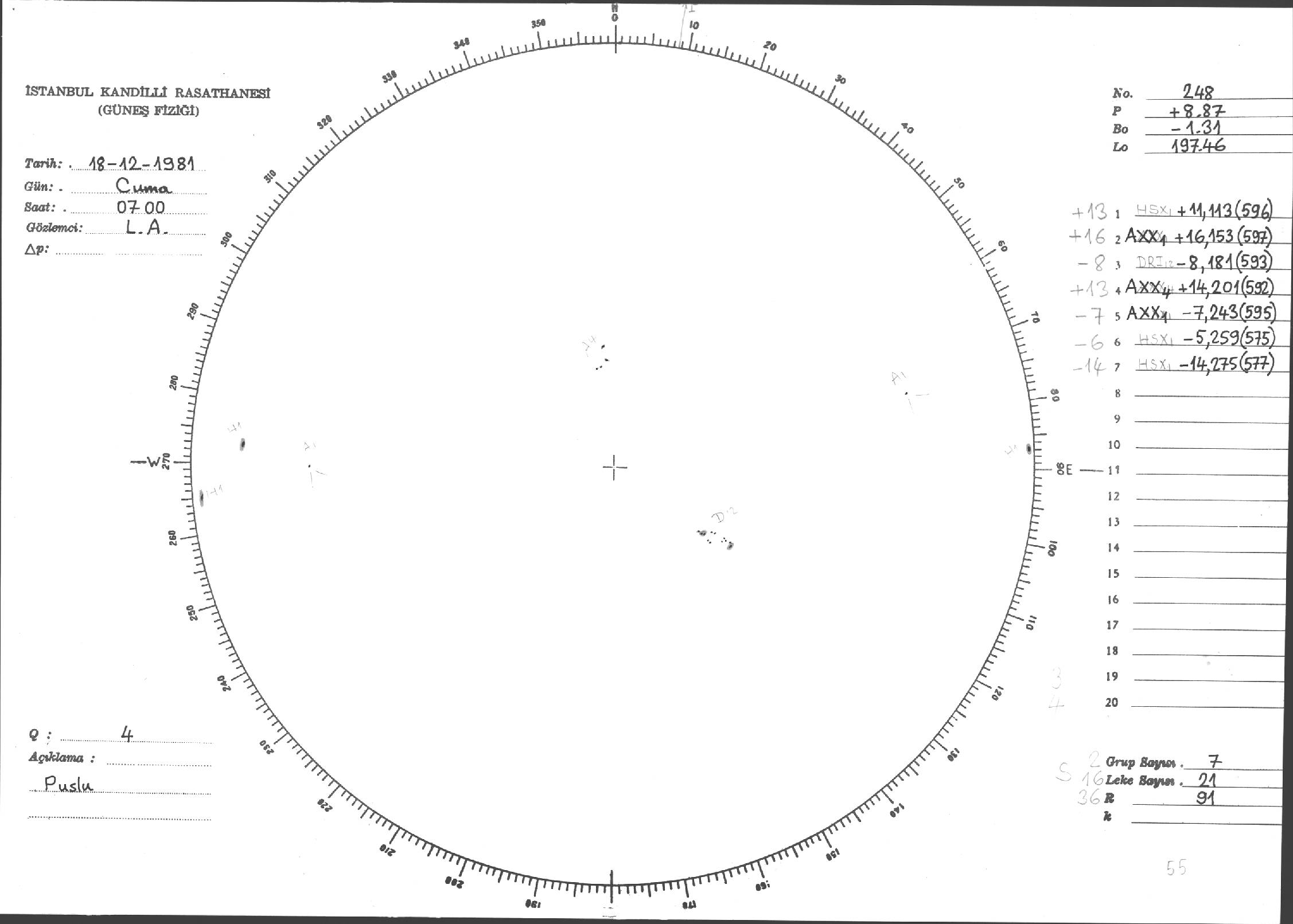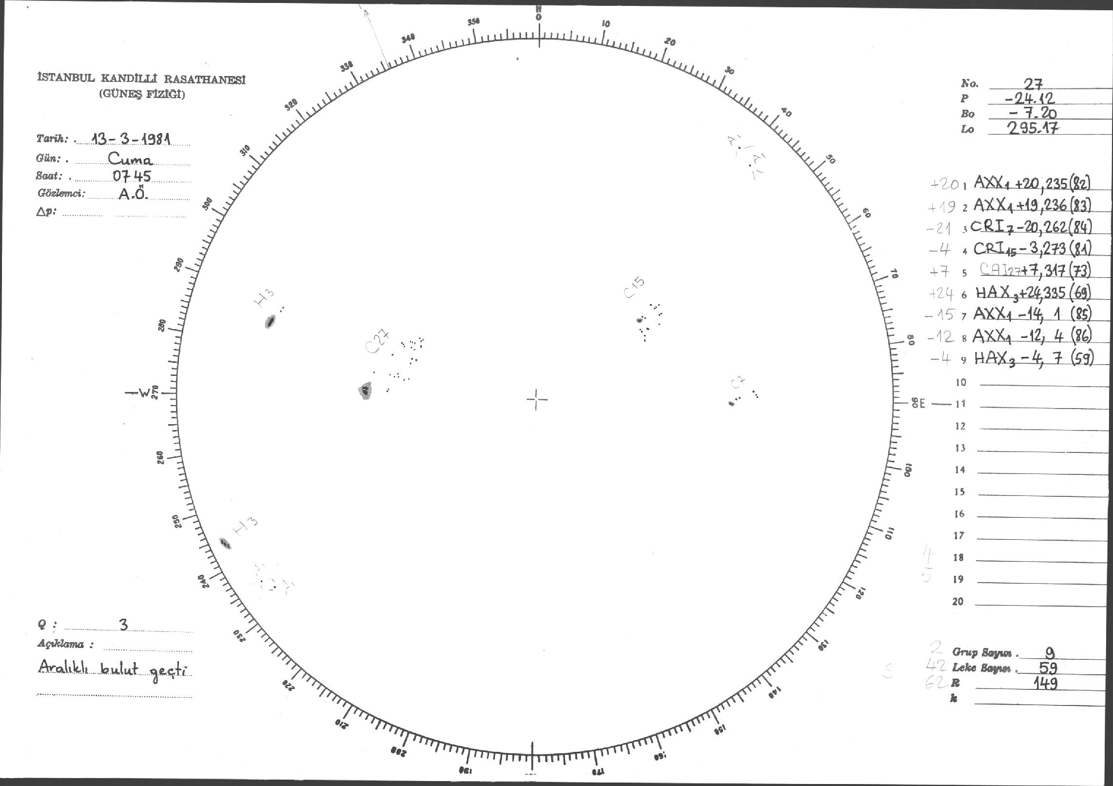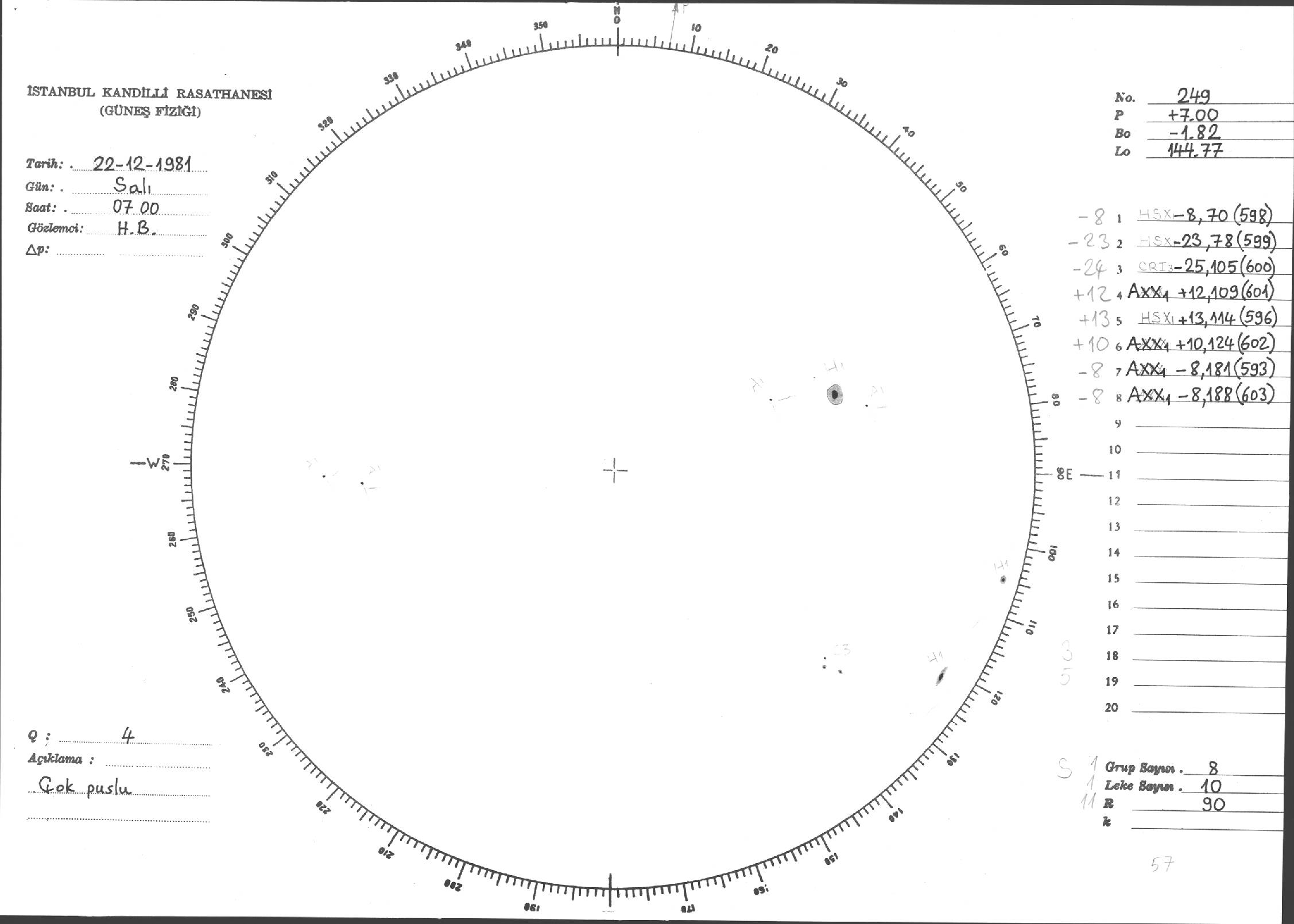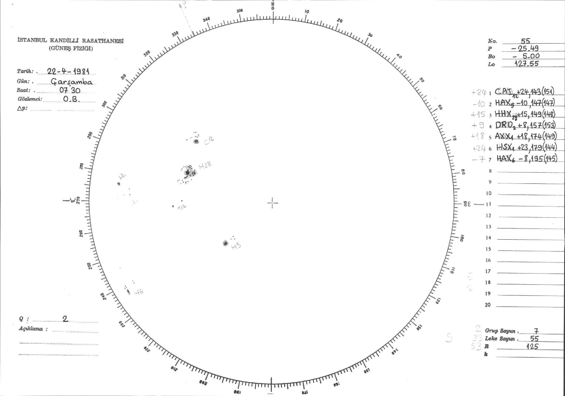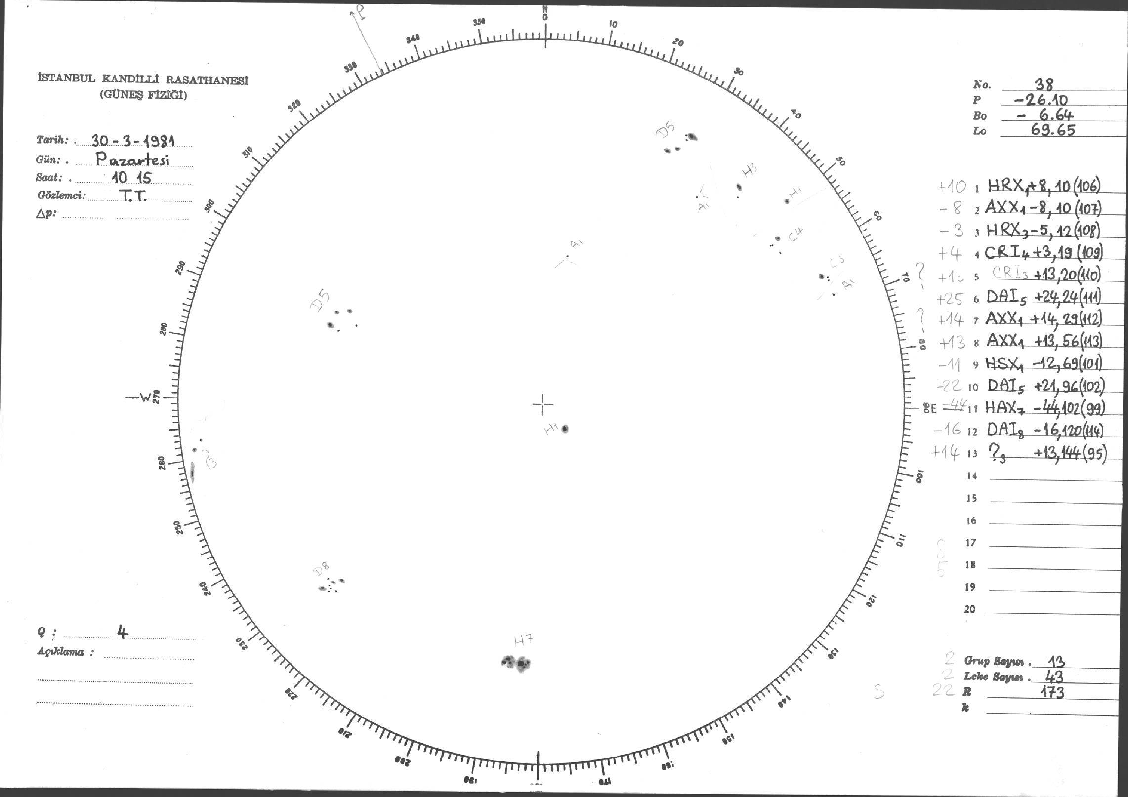 Güneş Lekesi Çizimleri / Kandilli Sunspot Drawings