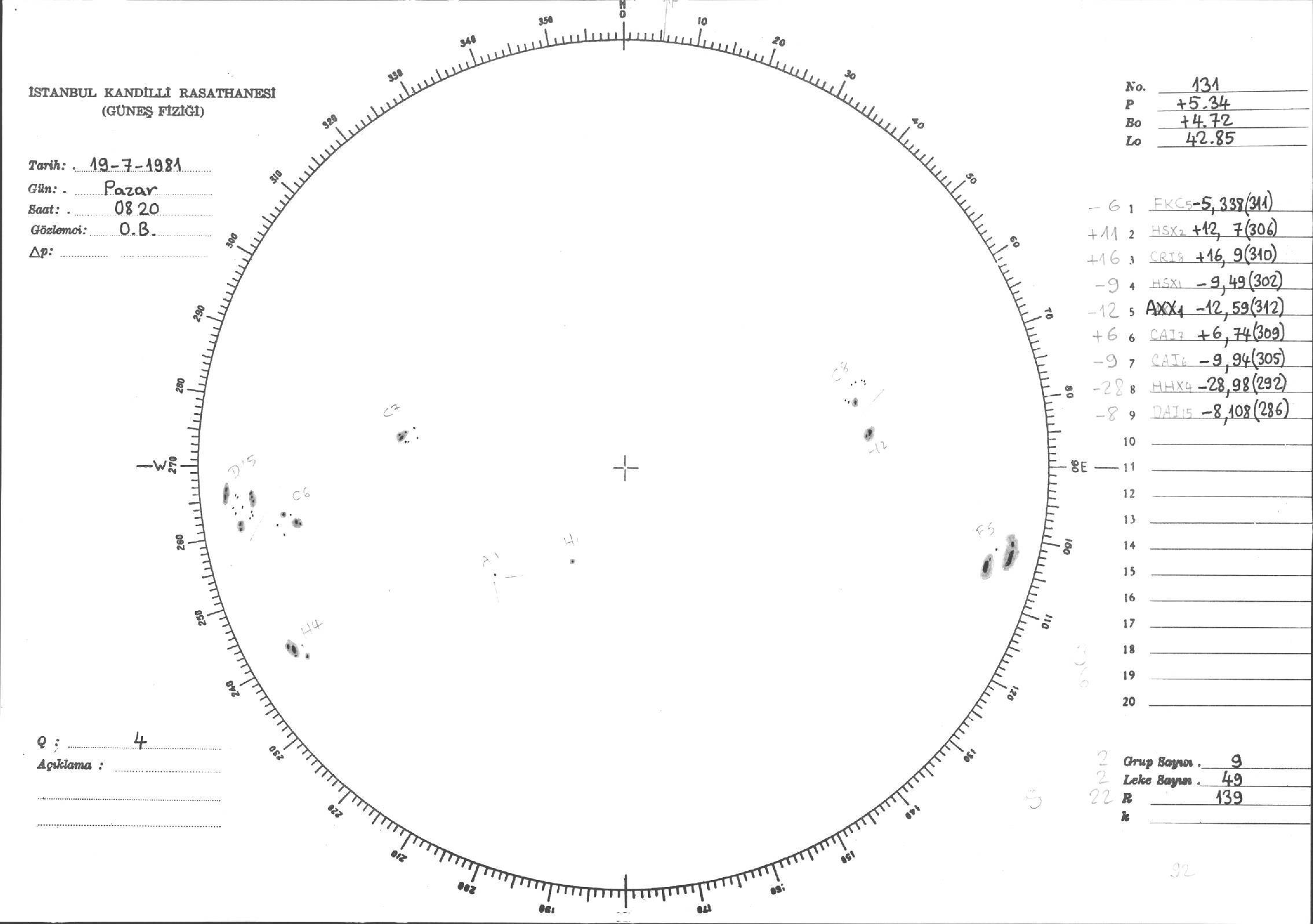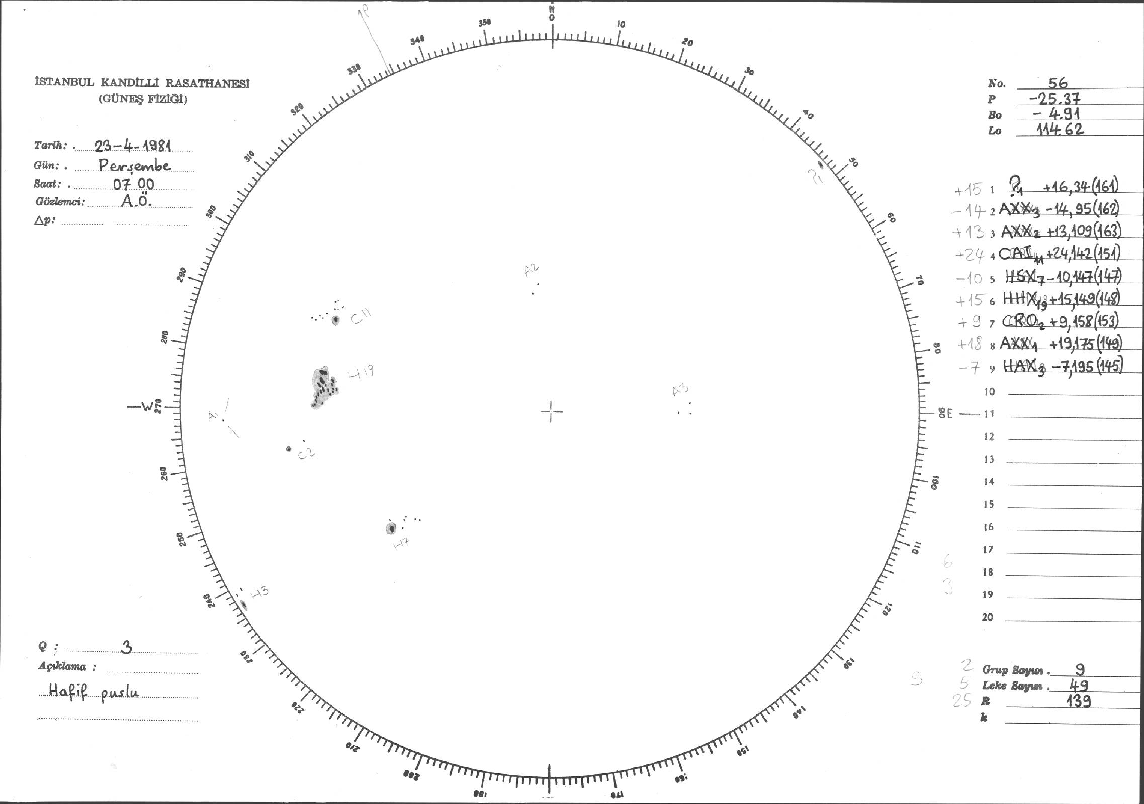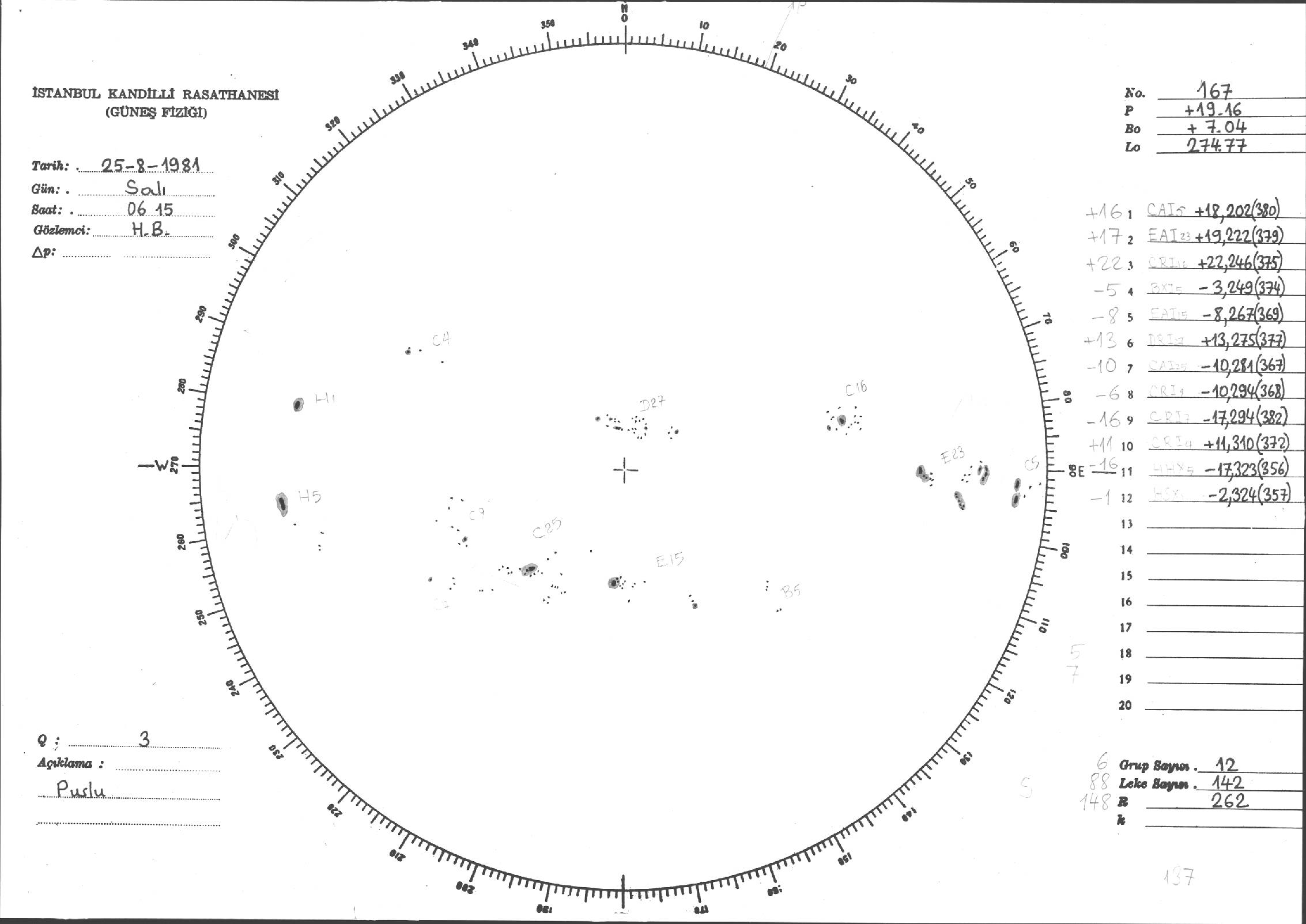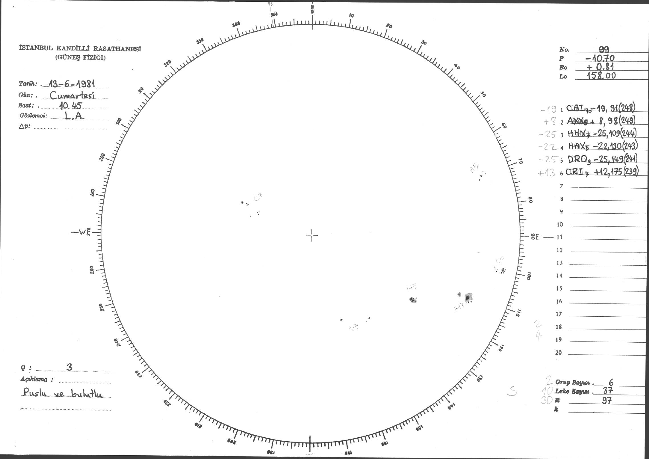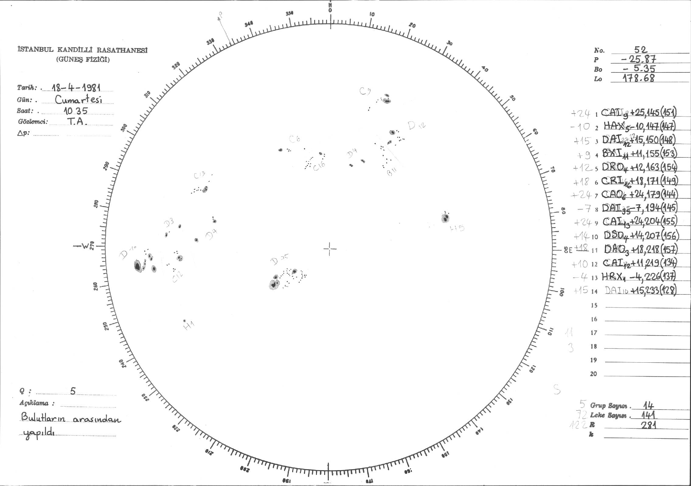 Güneş Lekesi Çizimleri / Kandilli Sunspot Drawings