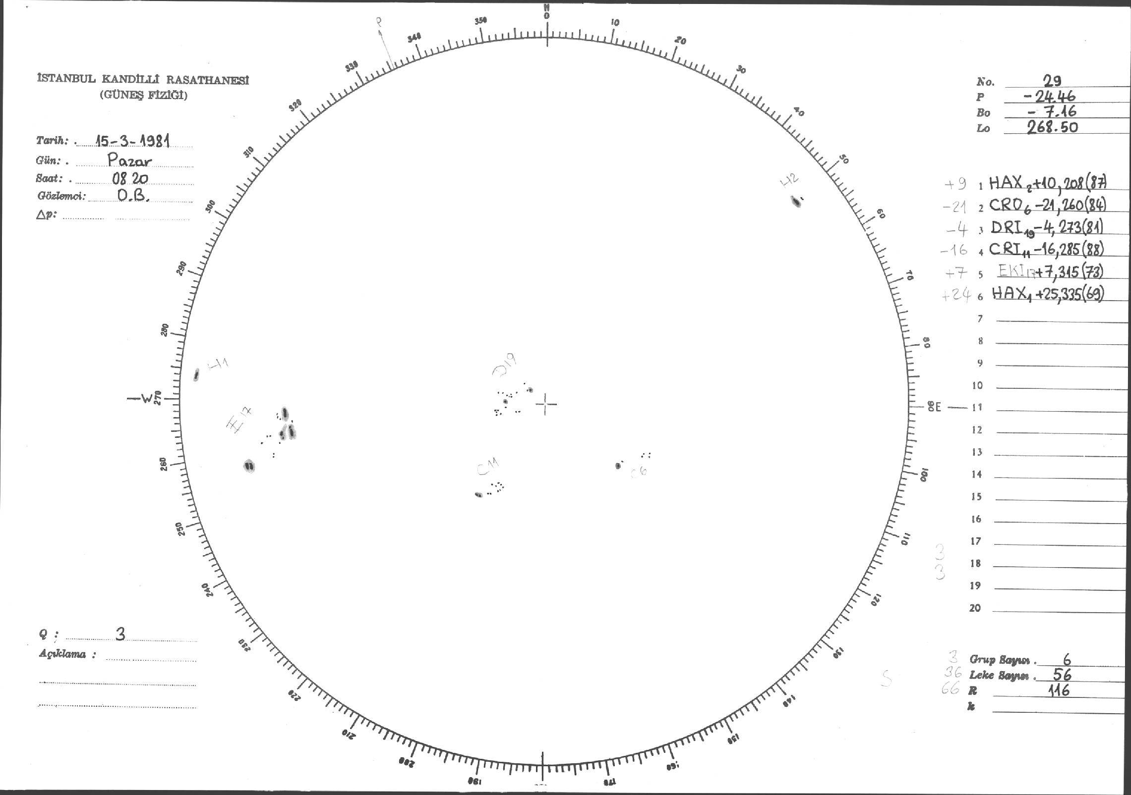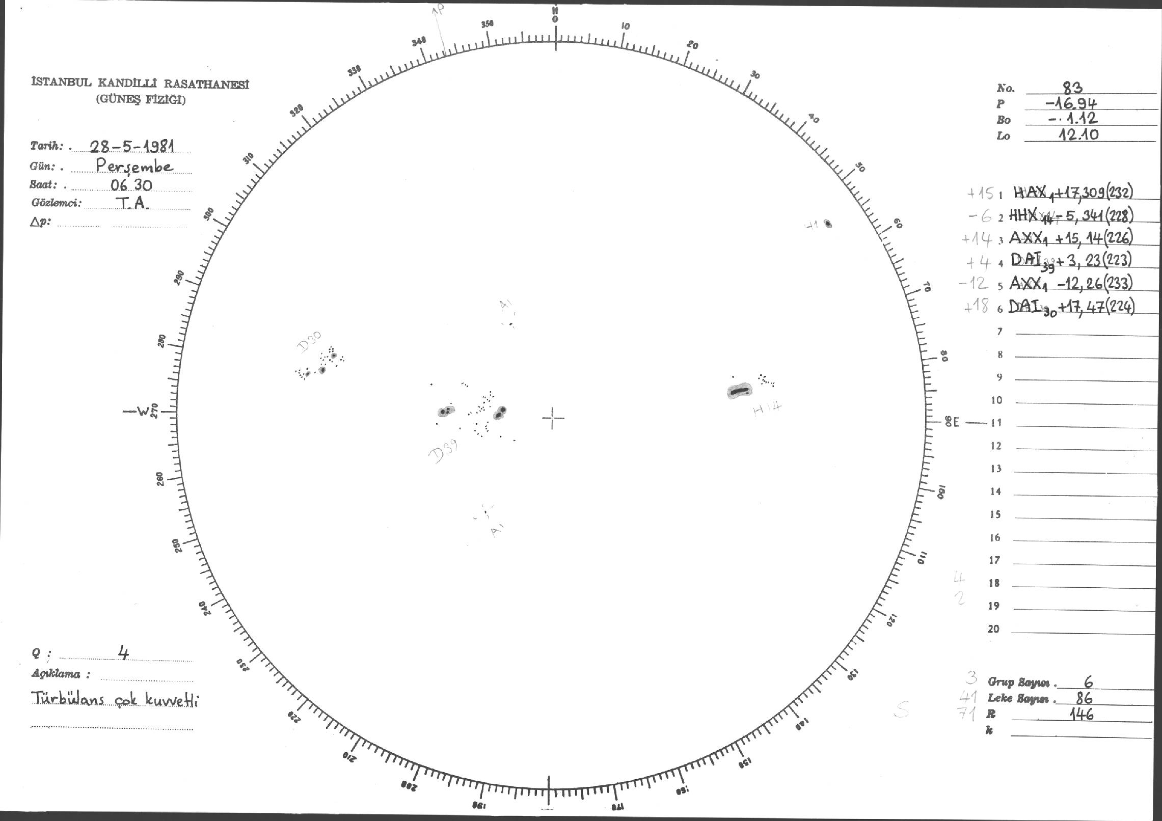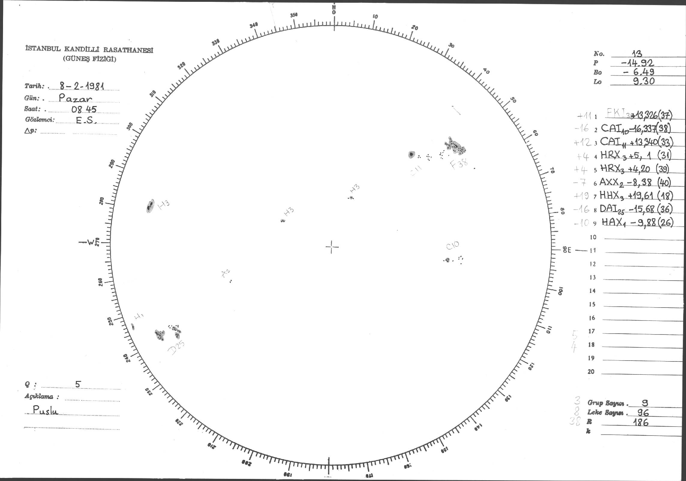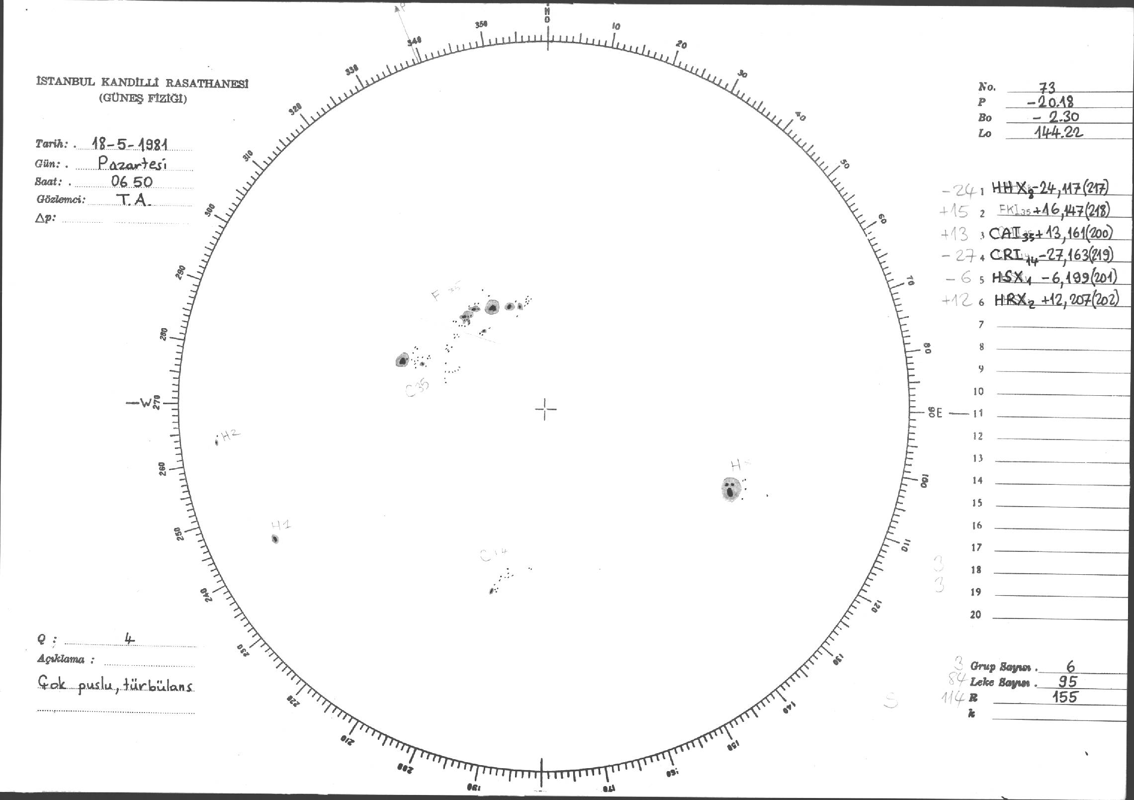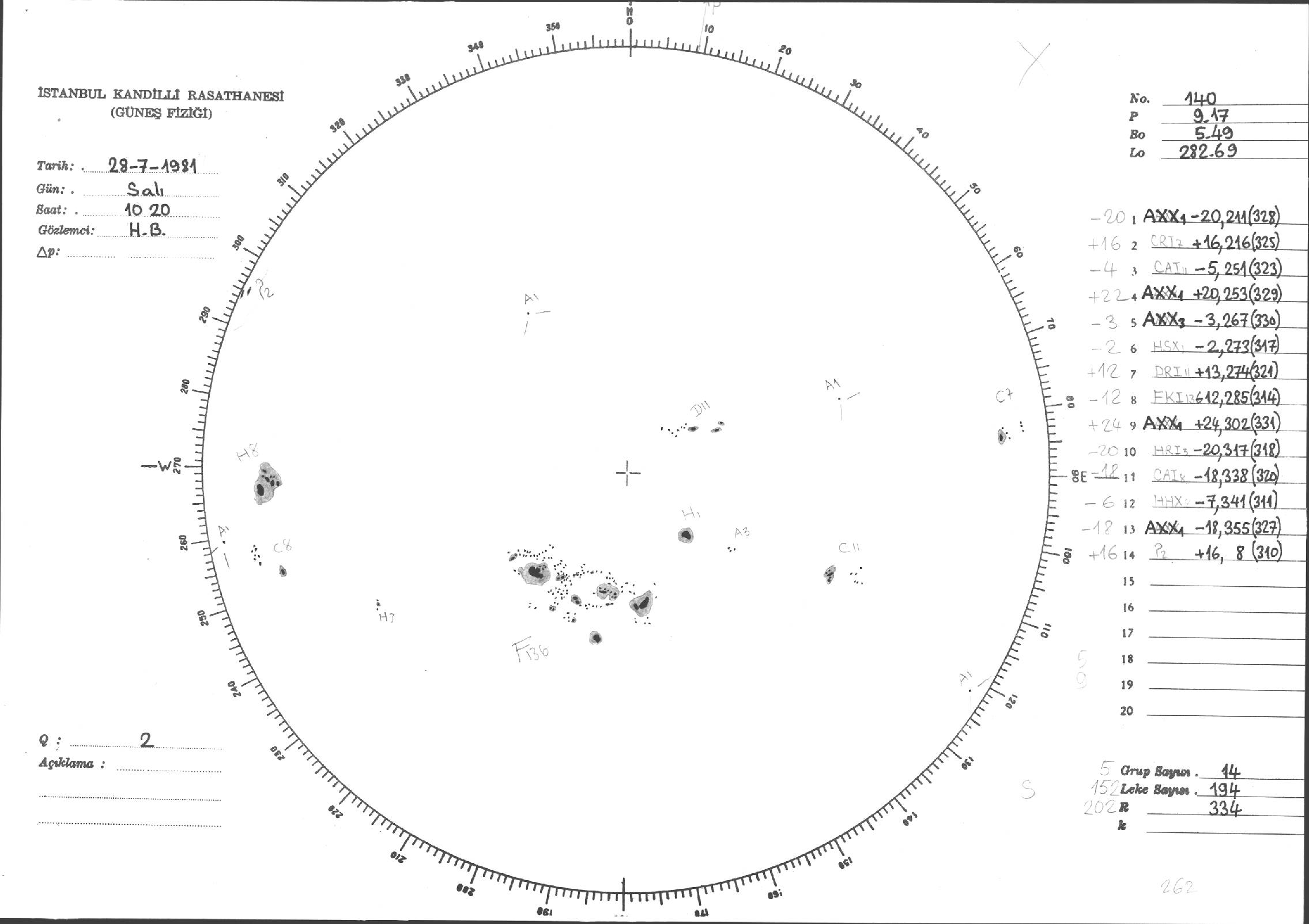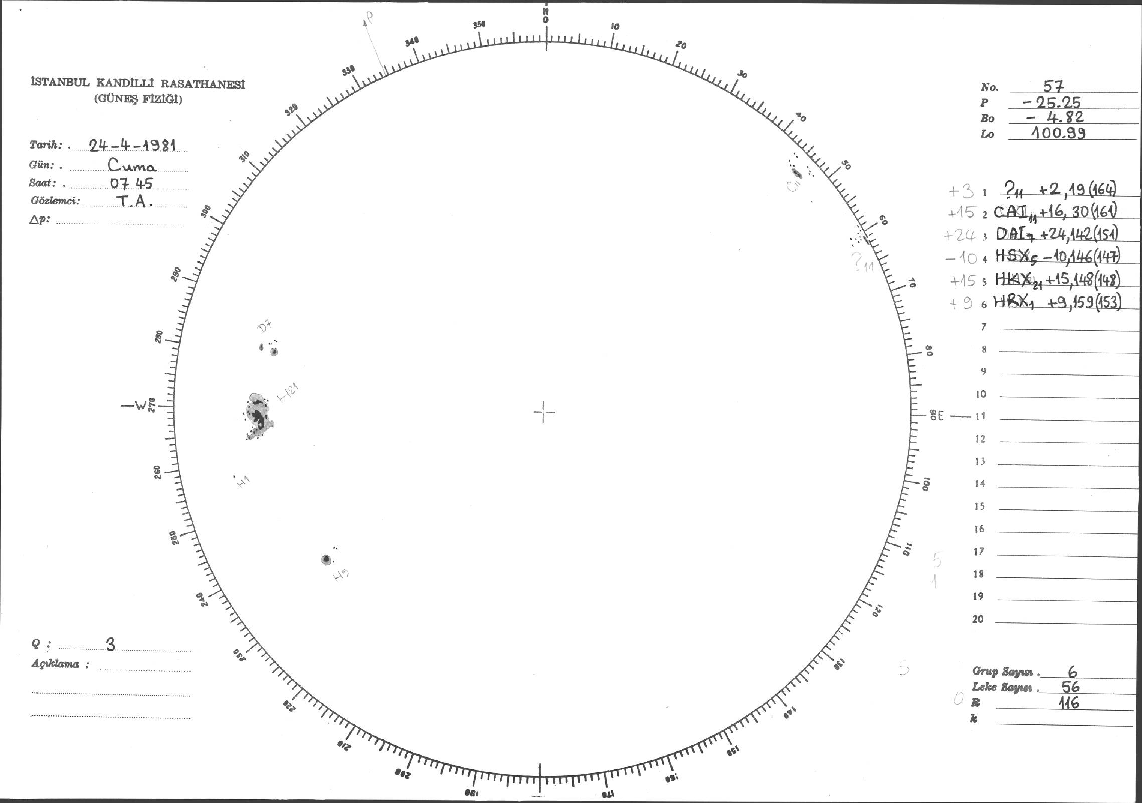 Güneş Lekesi Çizimleri / Kandilli Sunspot Drawings