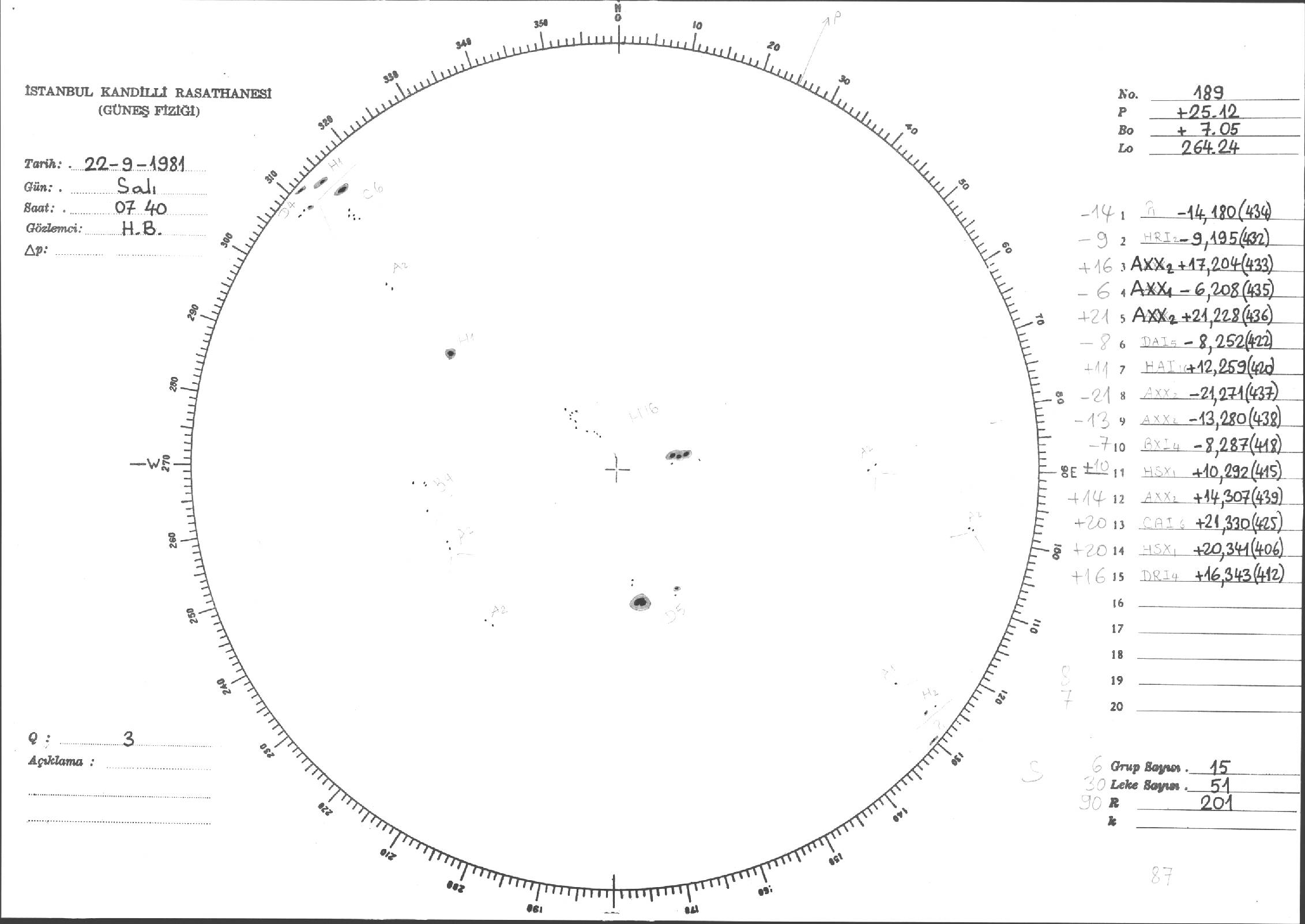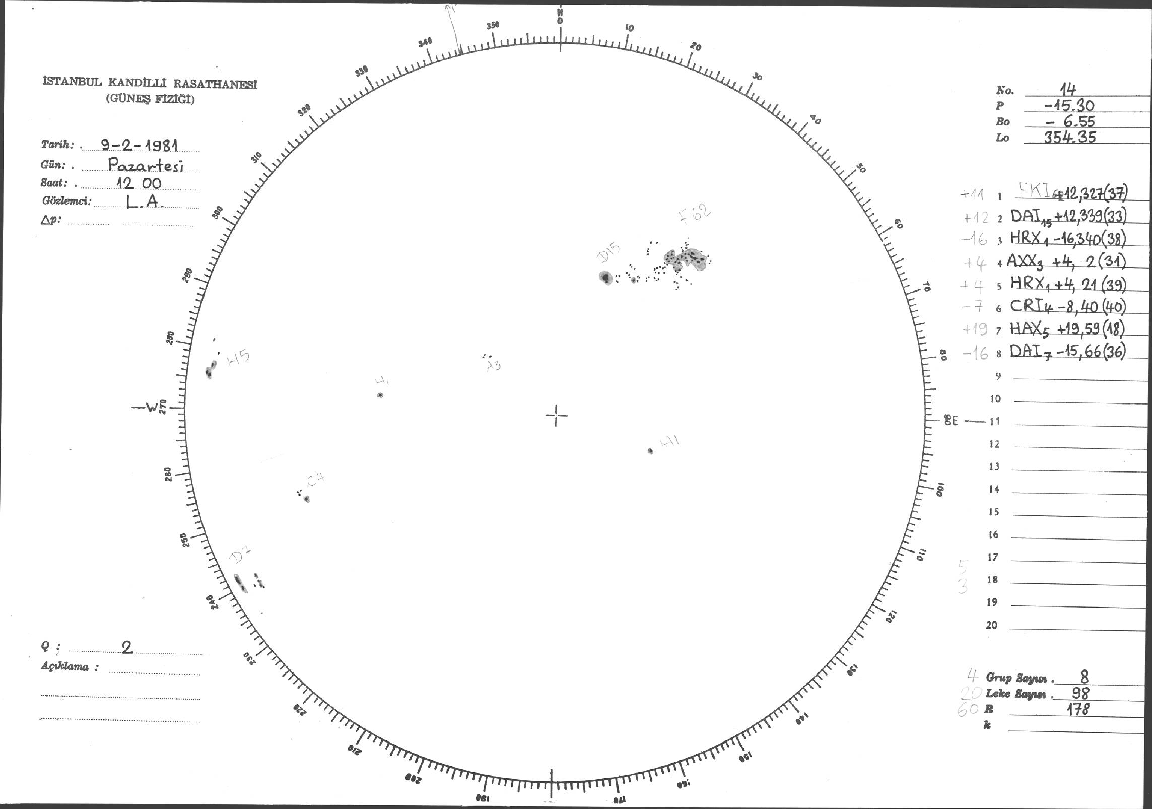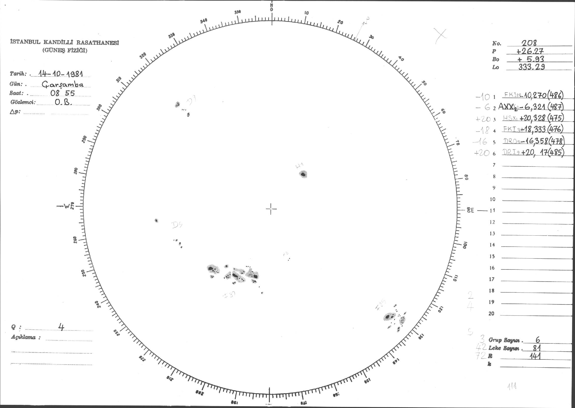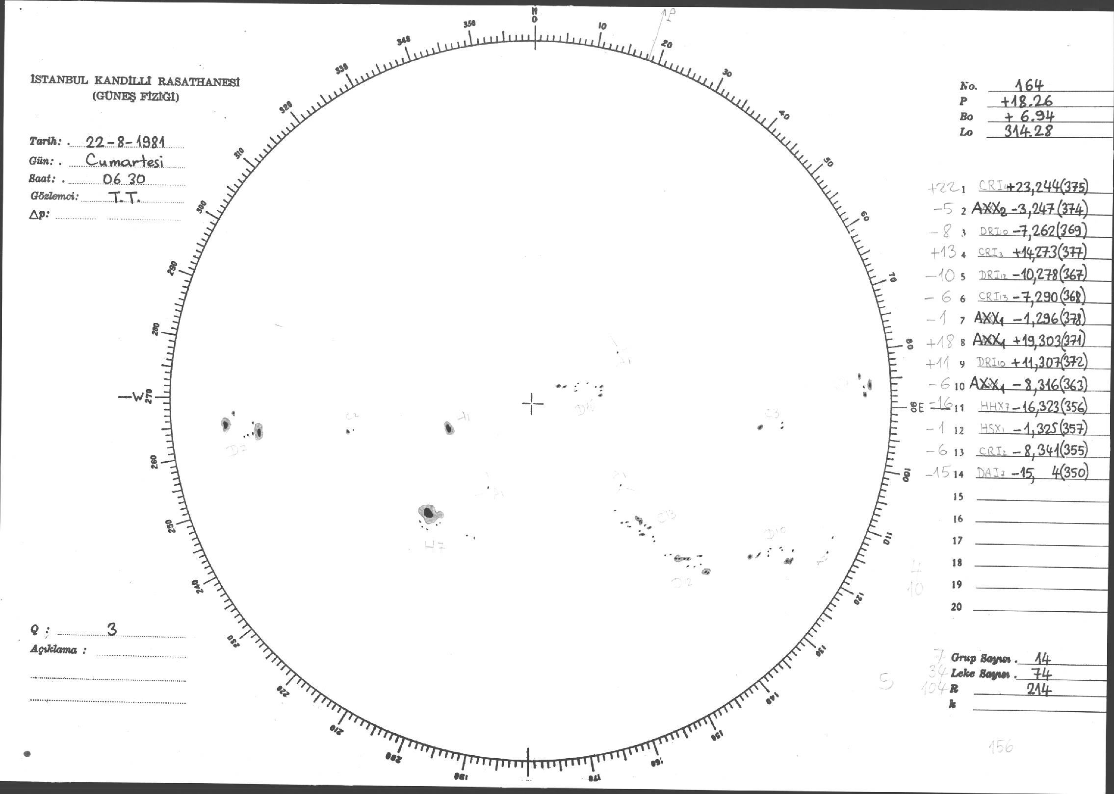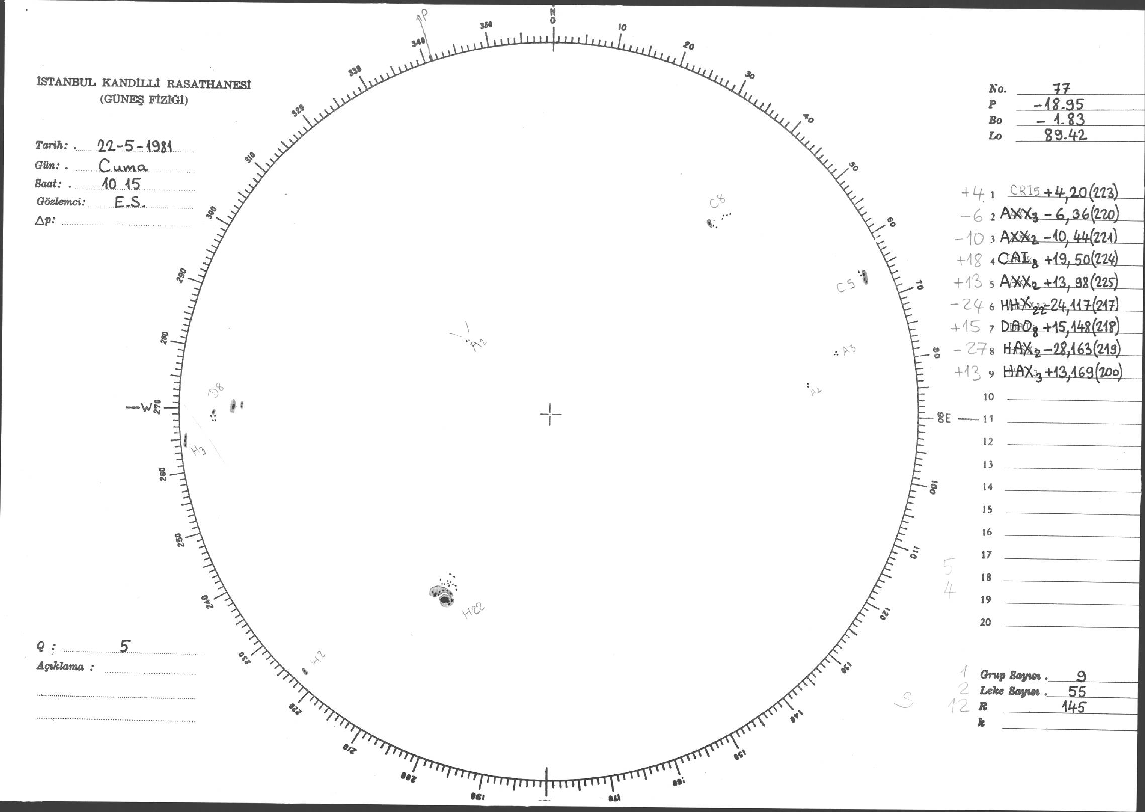 Güneş Lekesi Çizimleri / Kandilli Sunspot Drawings