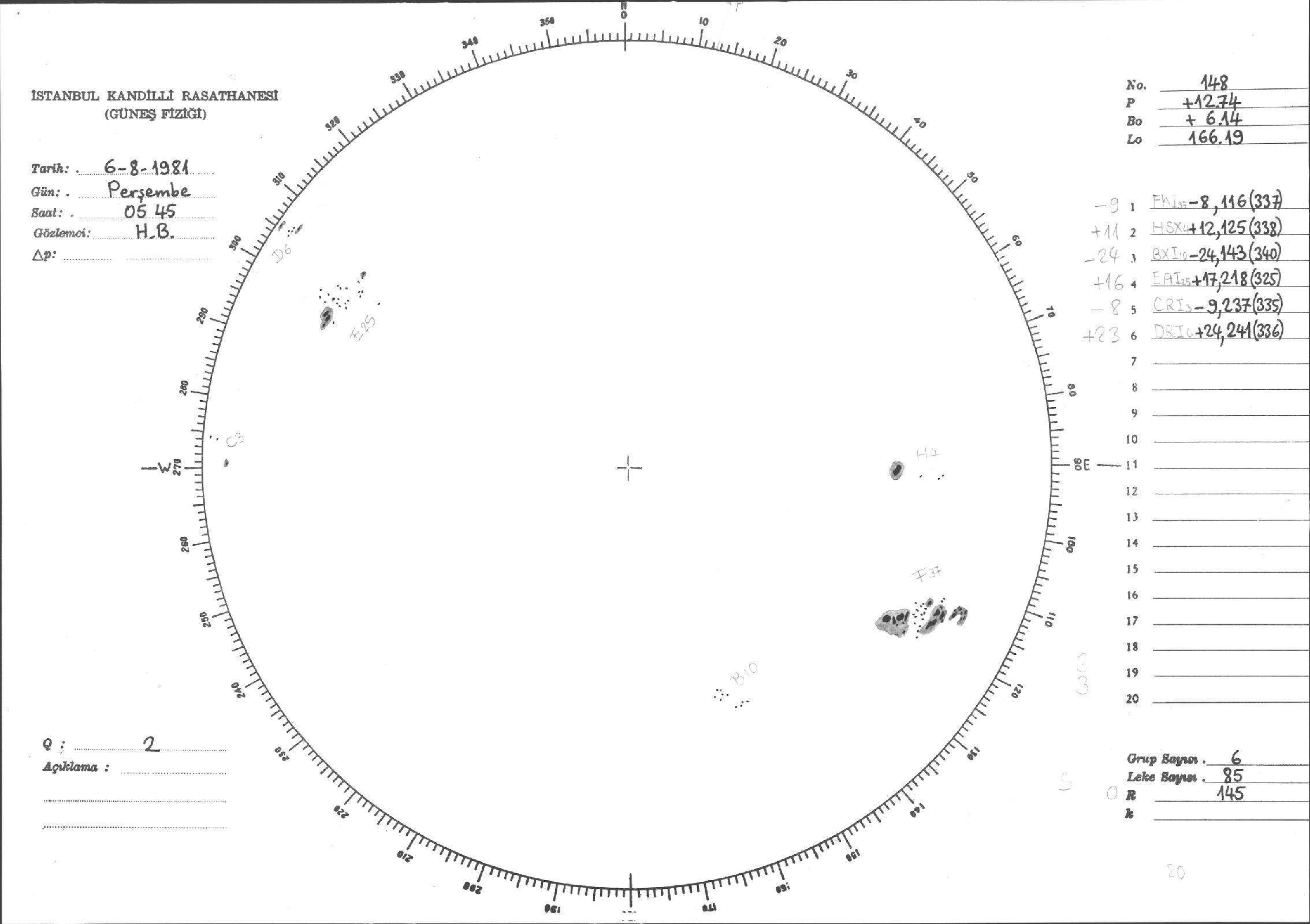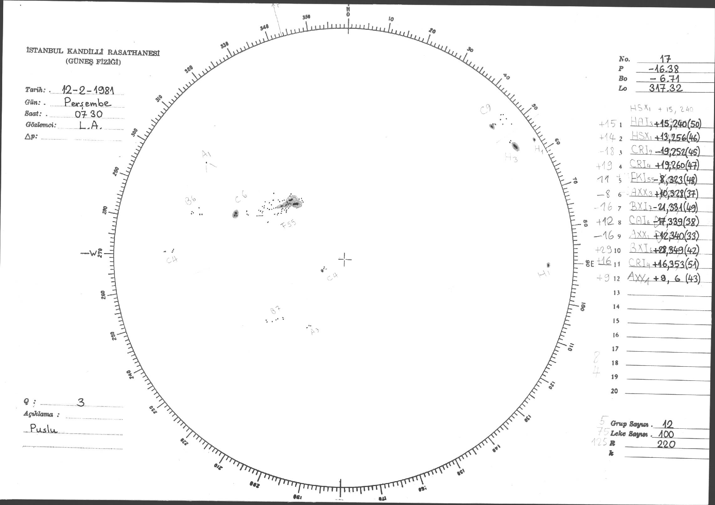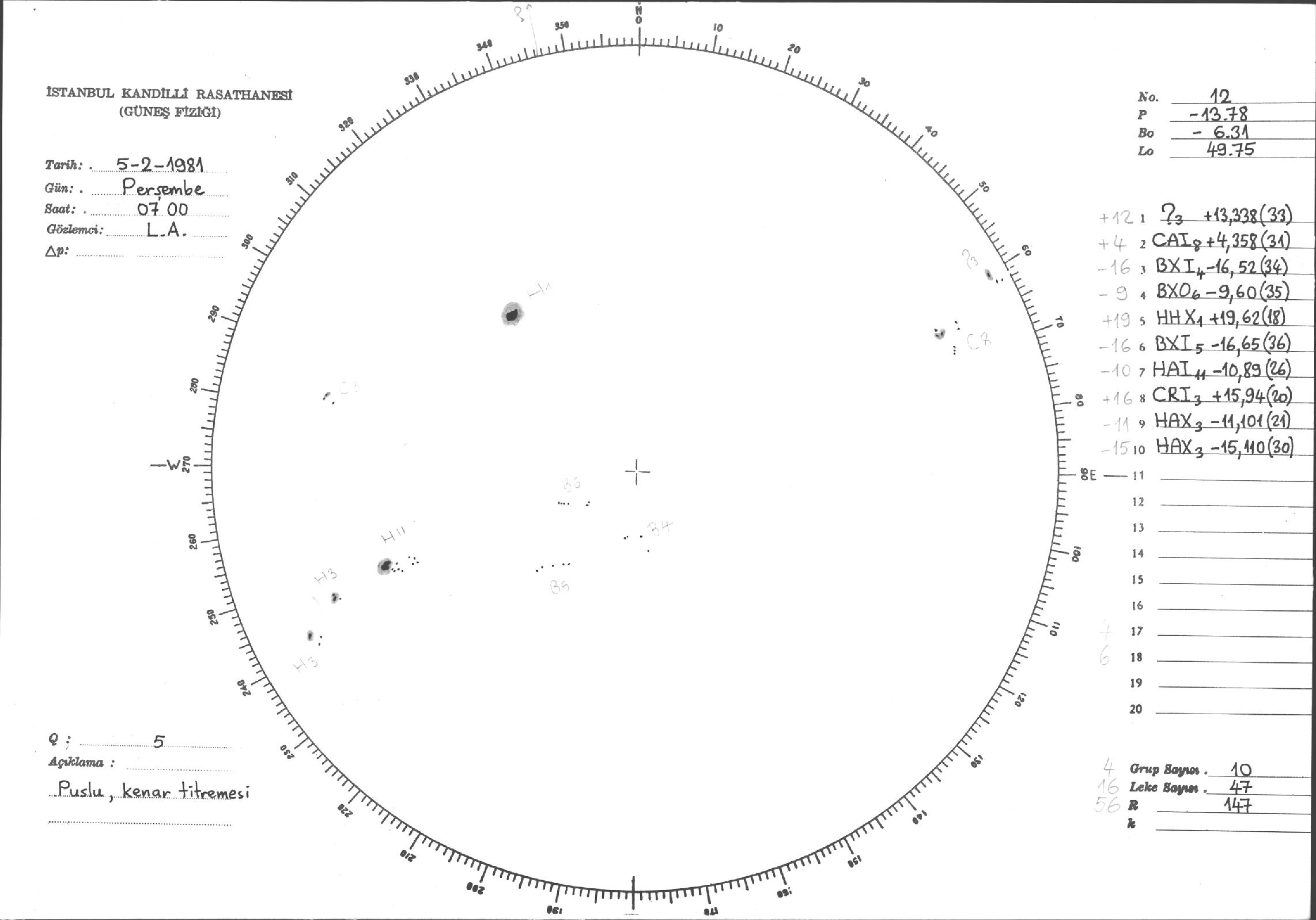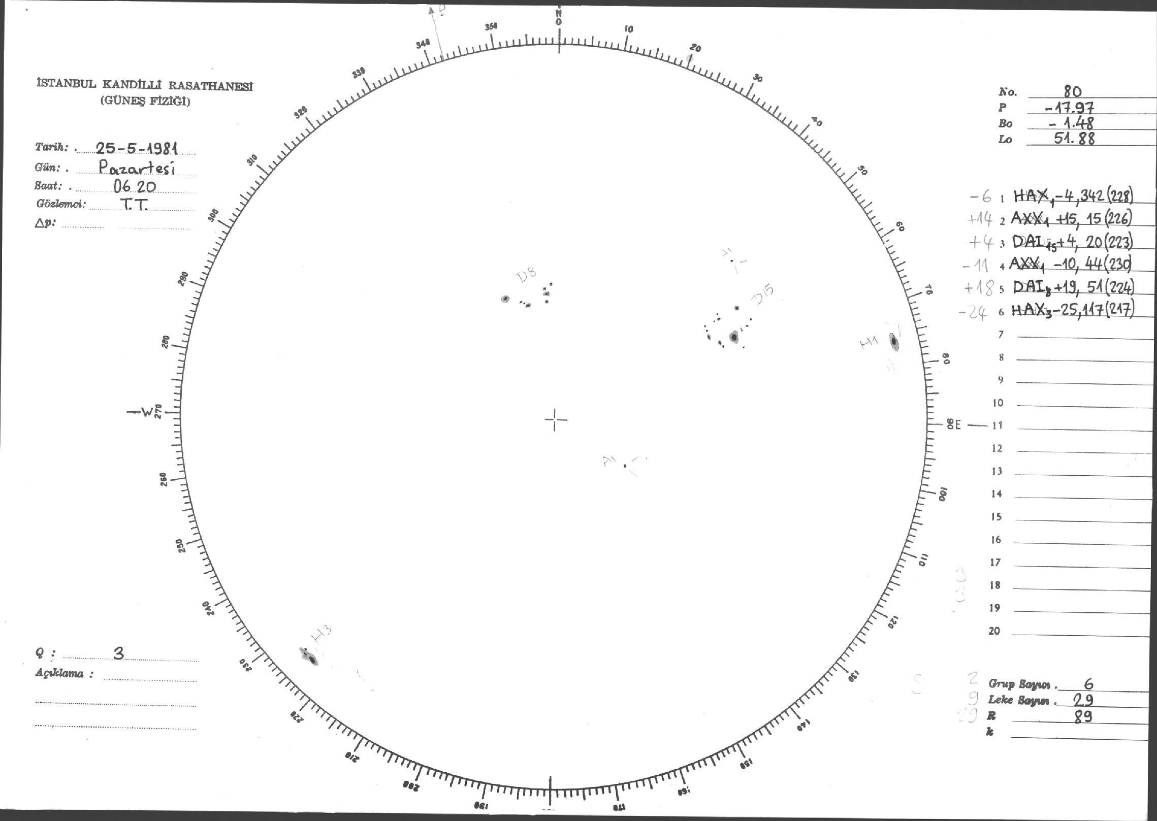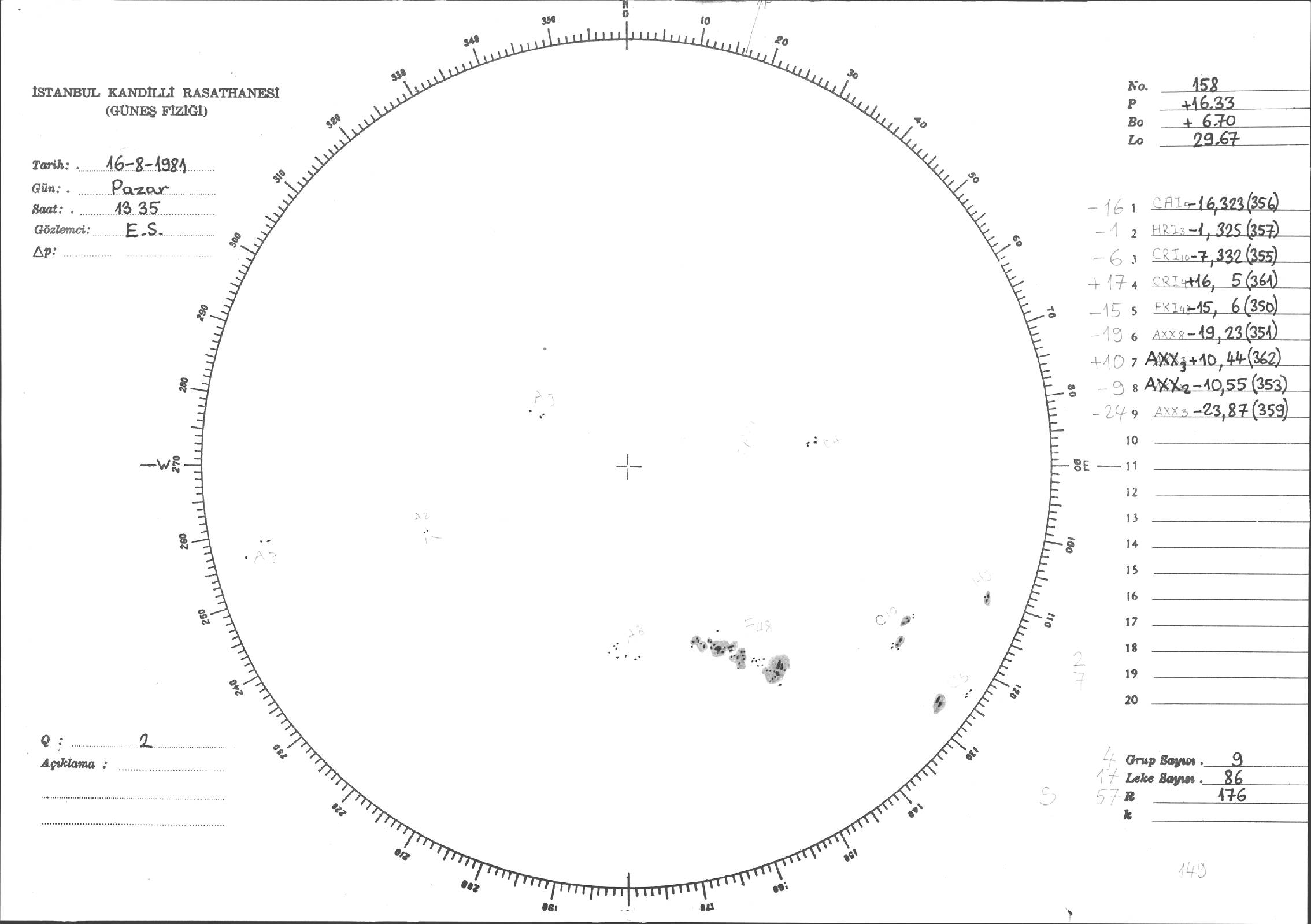 Güneş Lekesi Çizimleri / Kandilli Sunspot Drawings