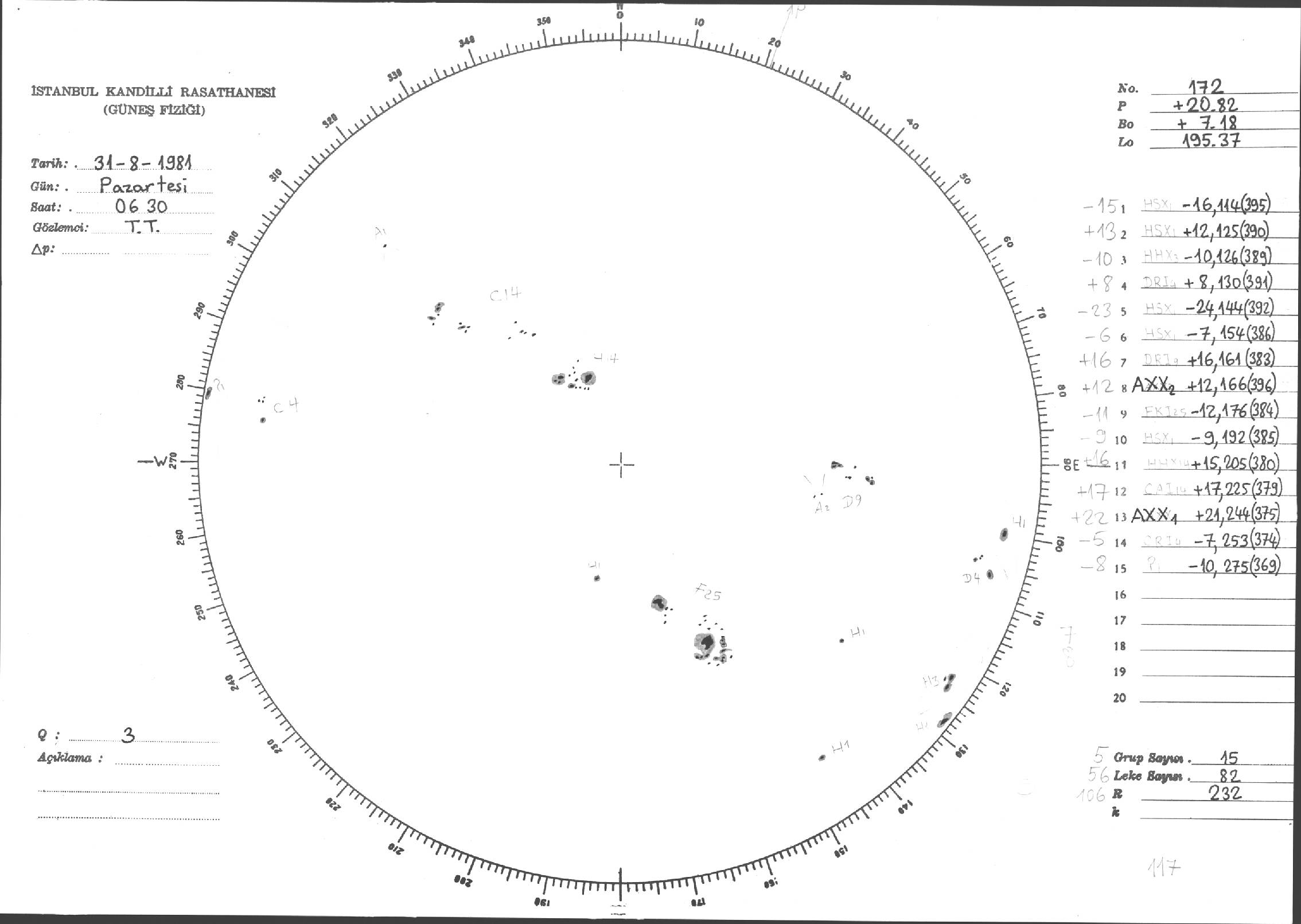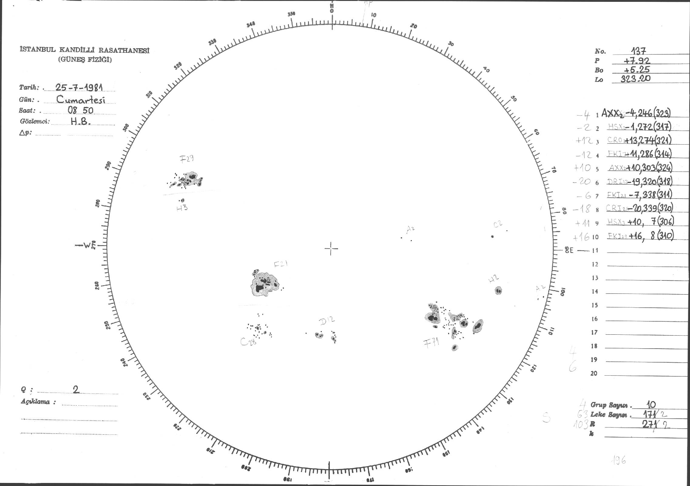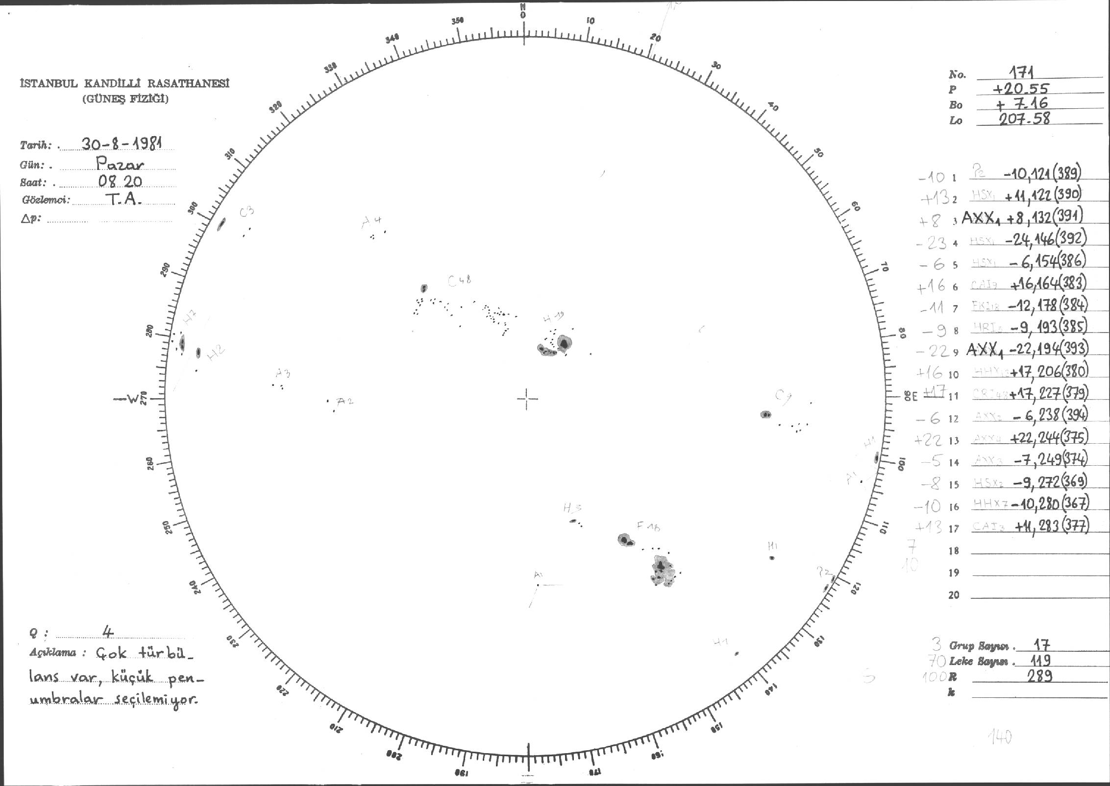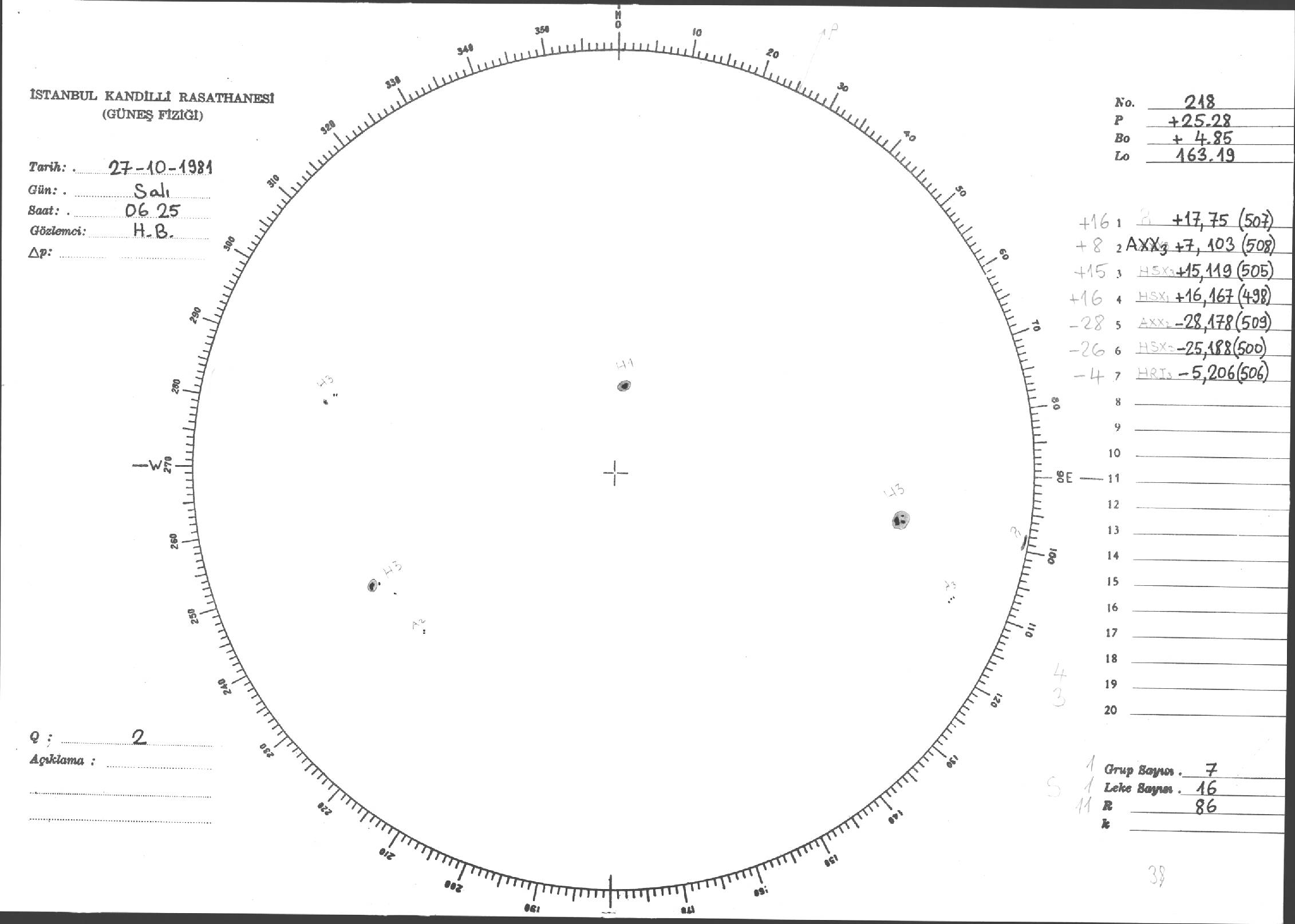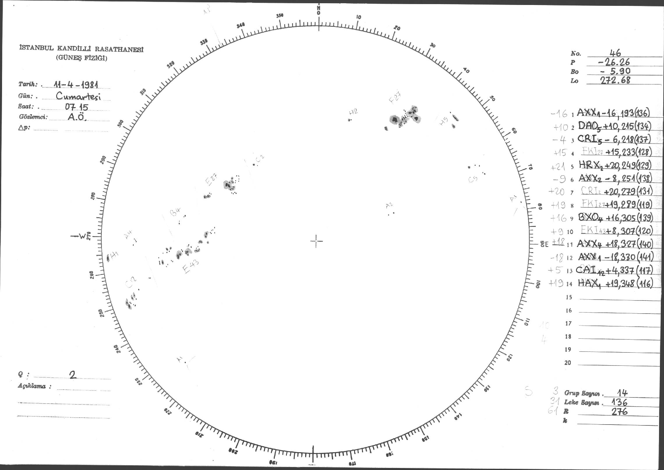 Güneş Lekesi Çizimleri / Kandilli Sunspot Drawings