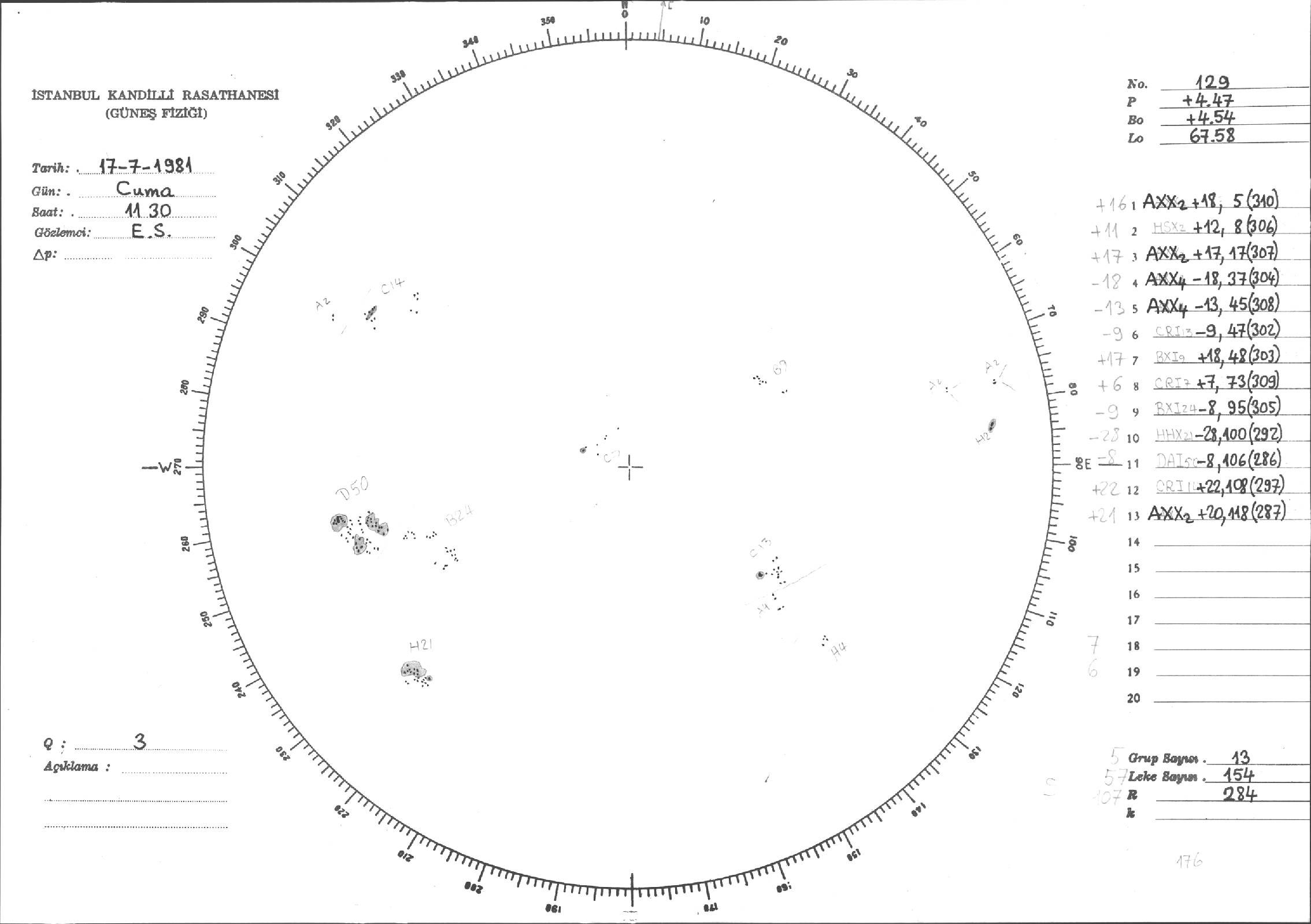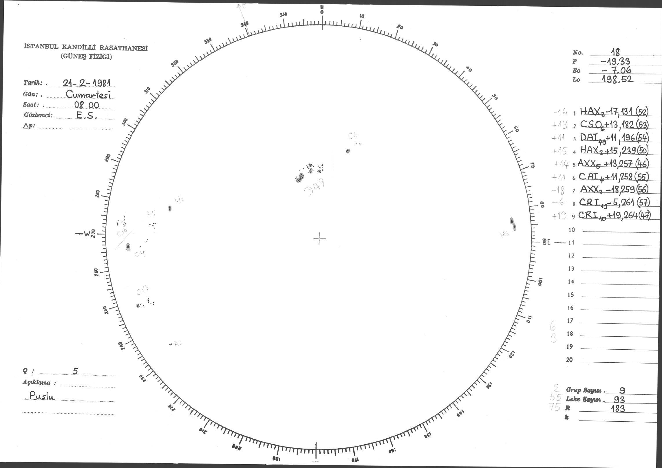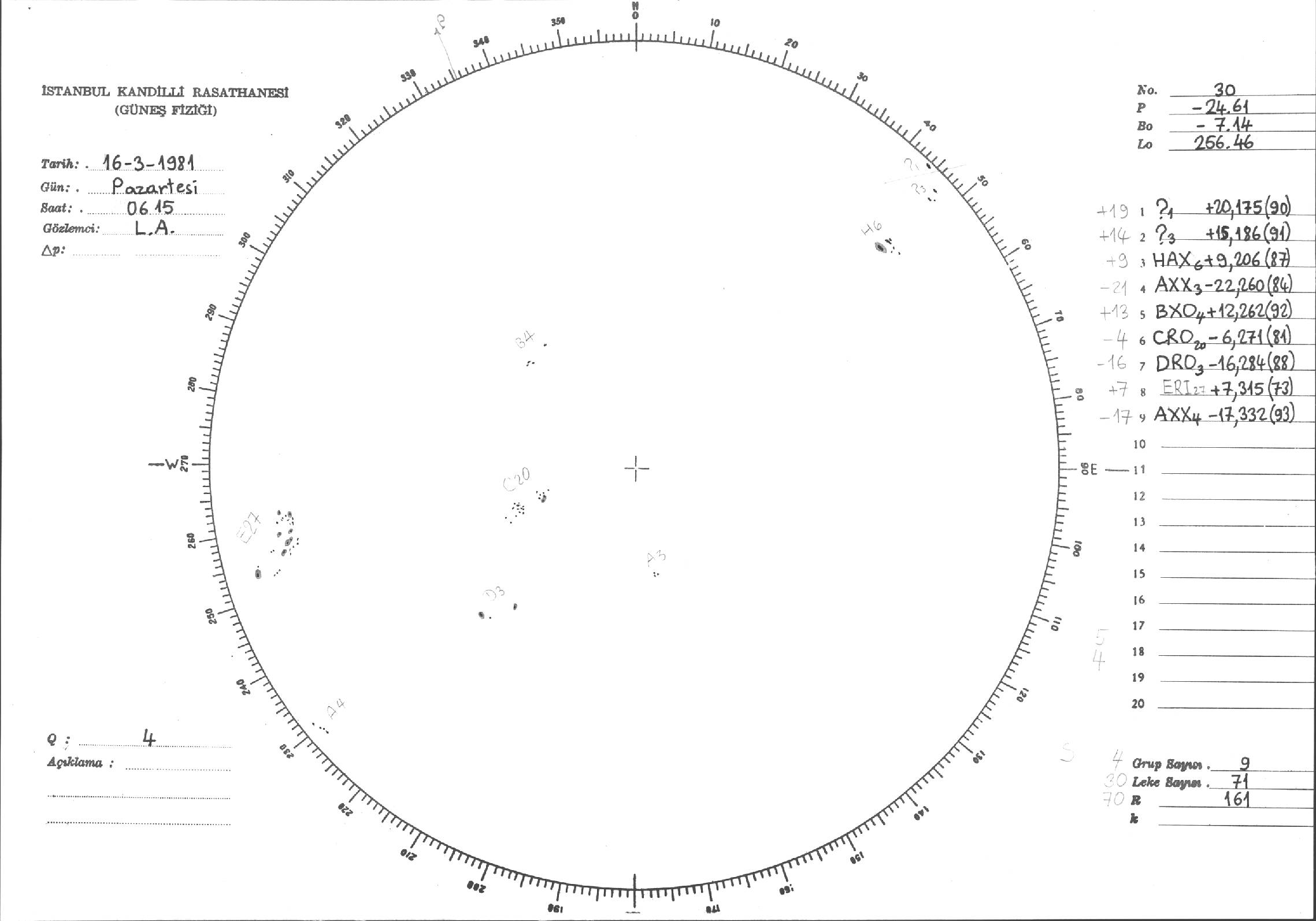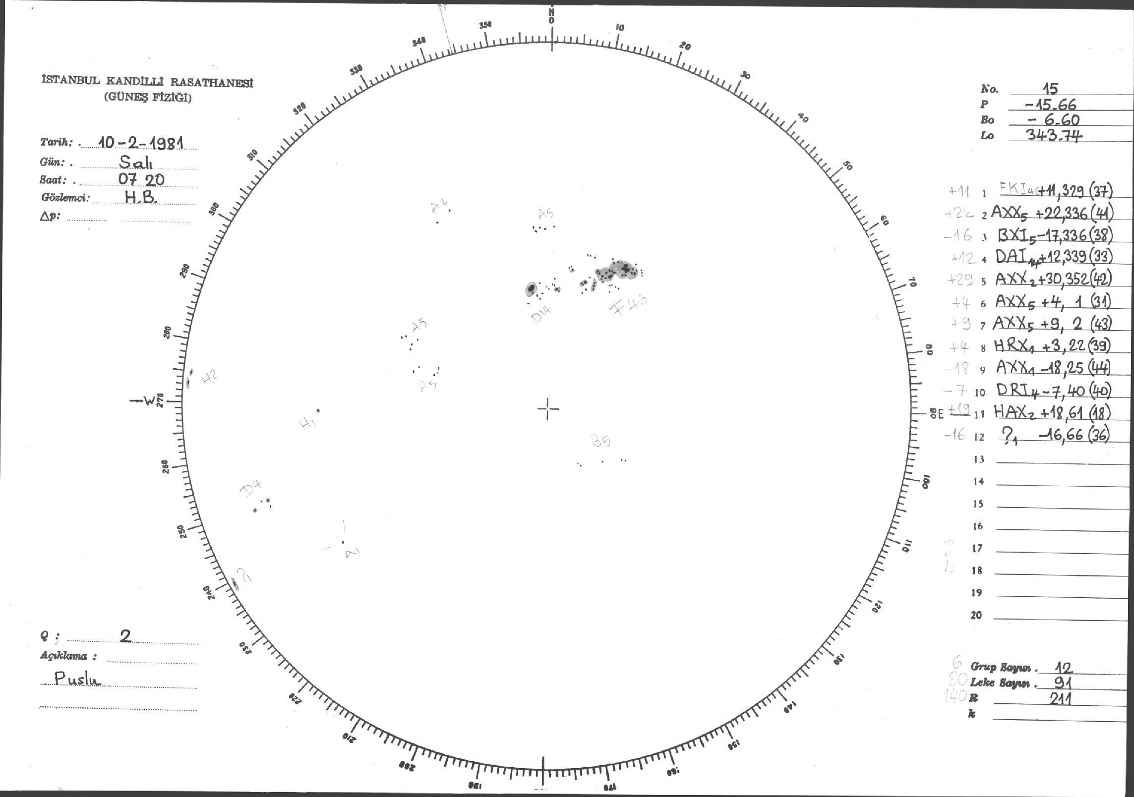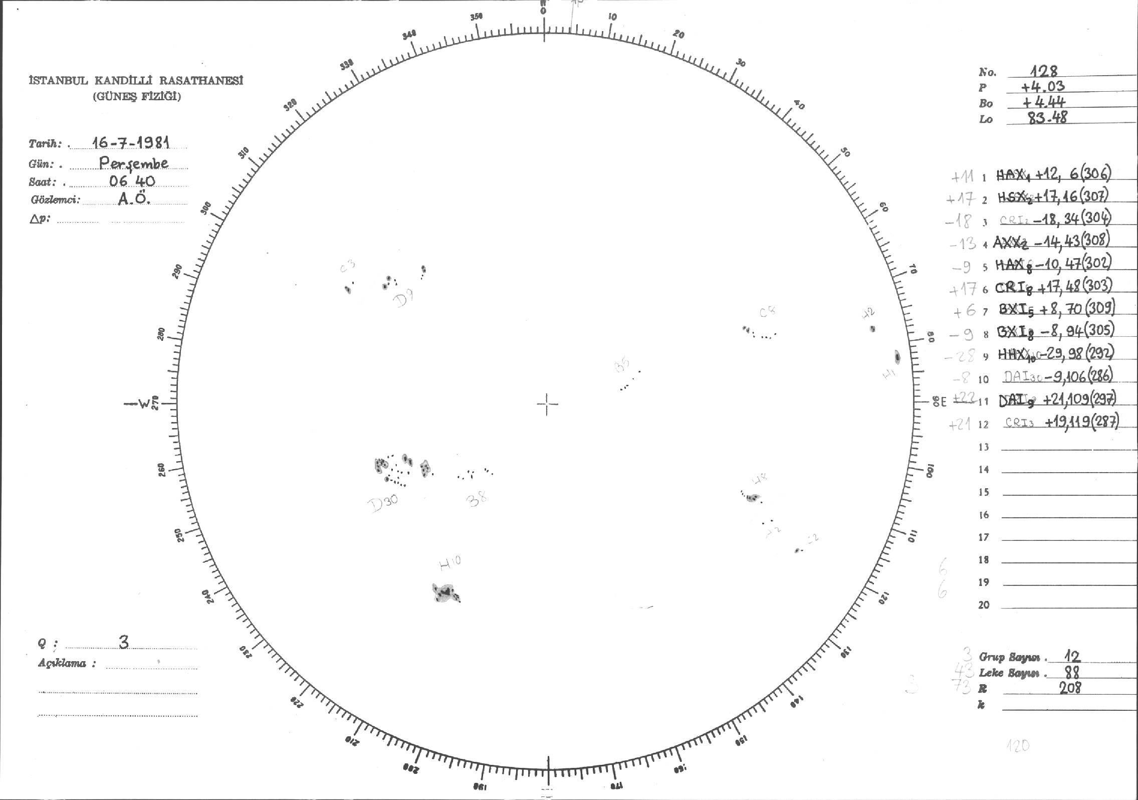 Güneş Lekesi Çizimleri / Kandilli Sunspot Drawings